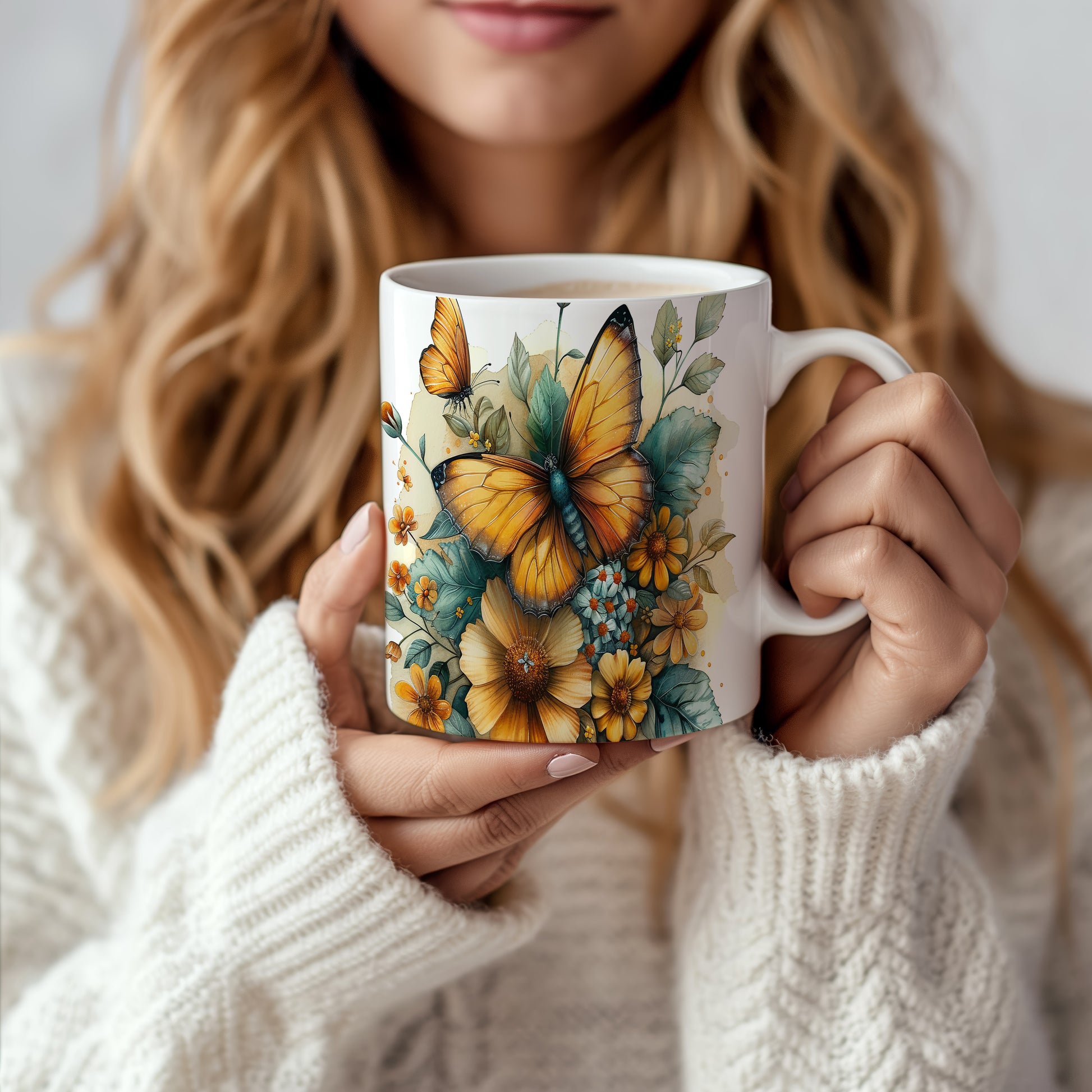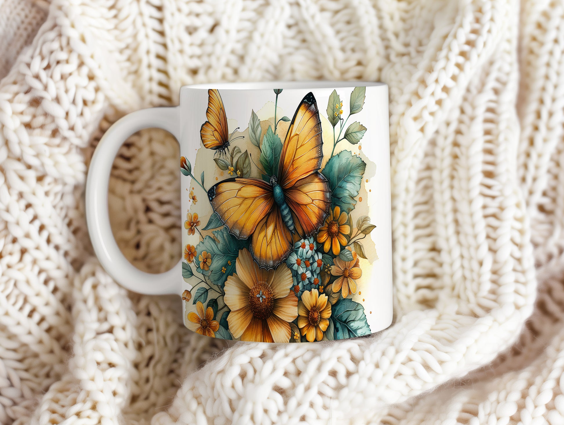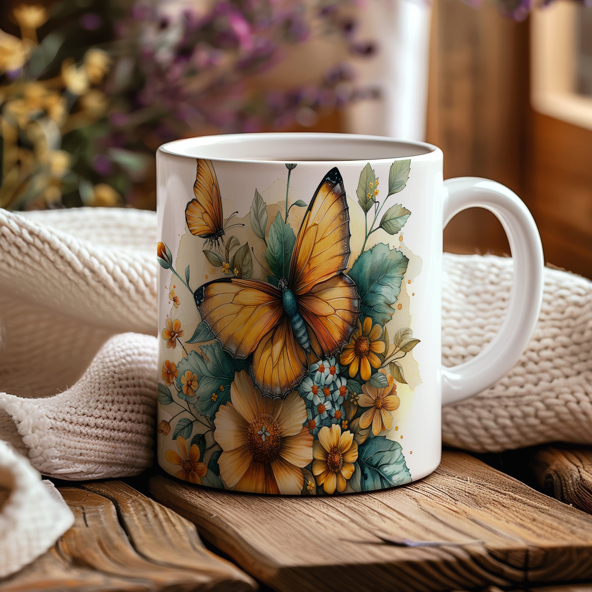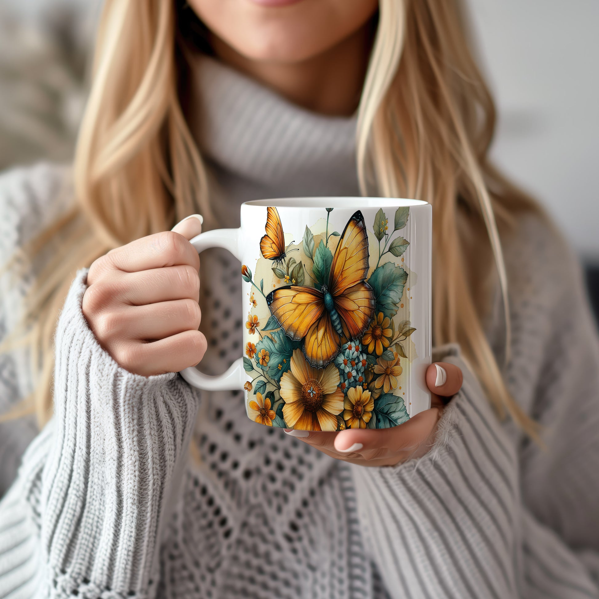 Tento keramický hrnek zobrazuje krásný motiv motýla mezi květinami, který přináší lehkost a přírodní krásu. Je ideální pro každodenní použití a skvělým dárkem pro milovníky přírody. Materiál: keramika. Objem: 330 ml. Vhodné do myčky i mikrovlnky. Používáním tohoto hrnku si užijete nejen stylový design, ale i pohodlné pití vašeho oblíbeného nápoje.