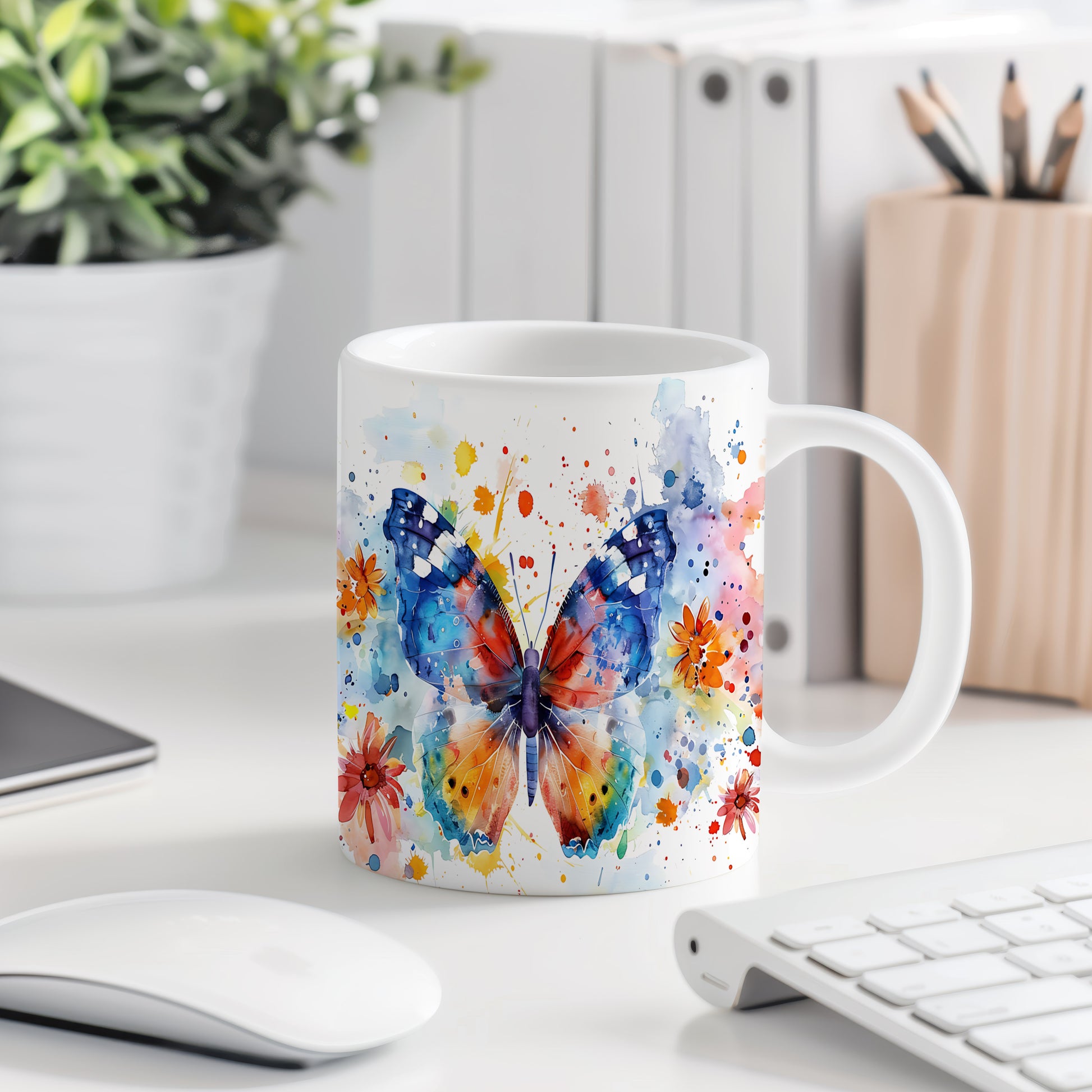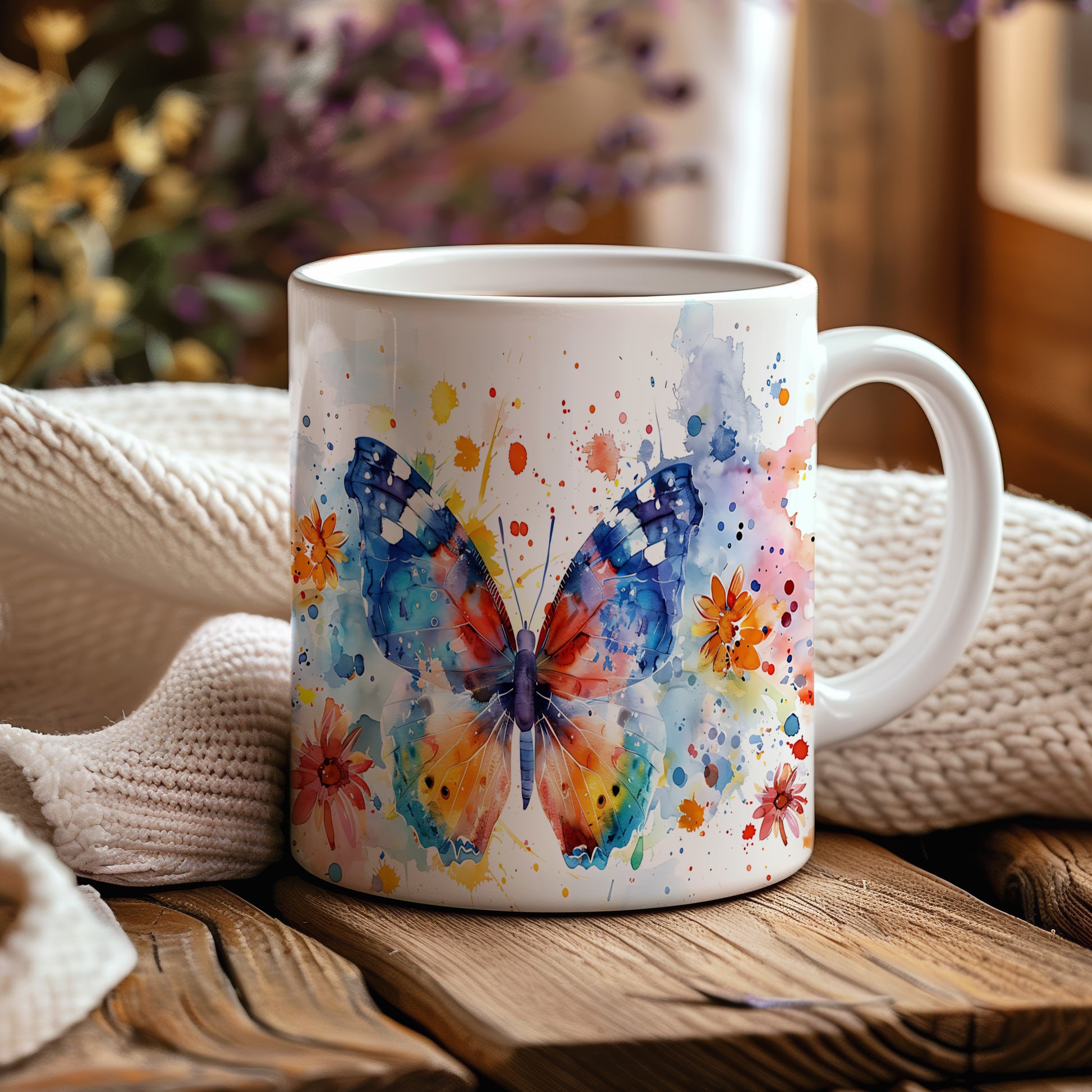 Tento hrnek zobrazuje krásného motýla v živých barvách s květinovými detaily. Je ideální pro milovníky přírody a skvělým dárkem pro každého, kdo ocení jedinečný design. Materiál: keramika. Objem: 330 ml. Vhodné do myčky i mikrovlnky. Díky svému stylovému vzhledu přináší radost do každodenního pití.