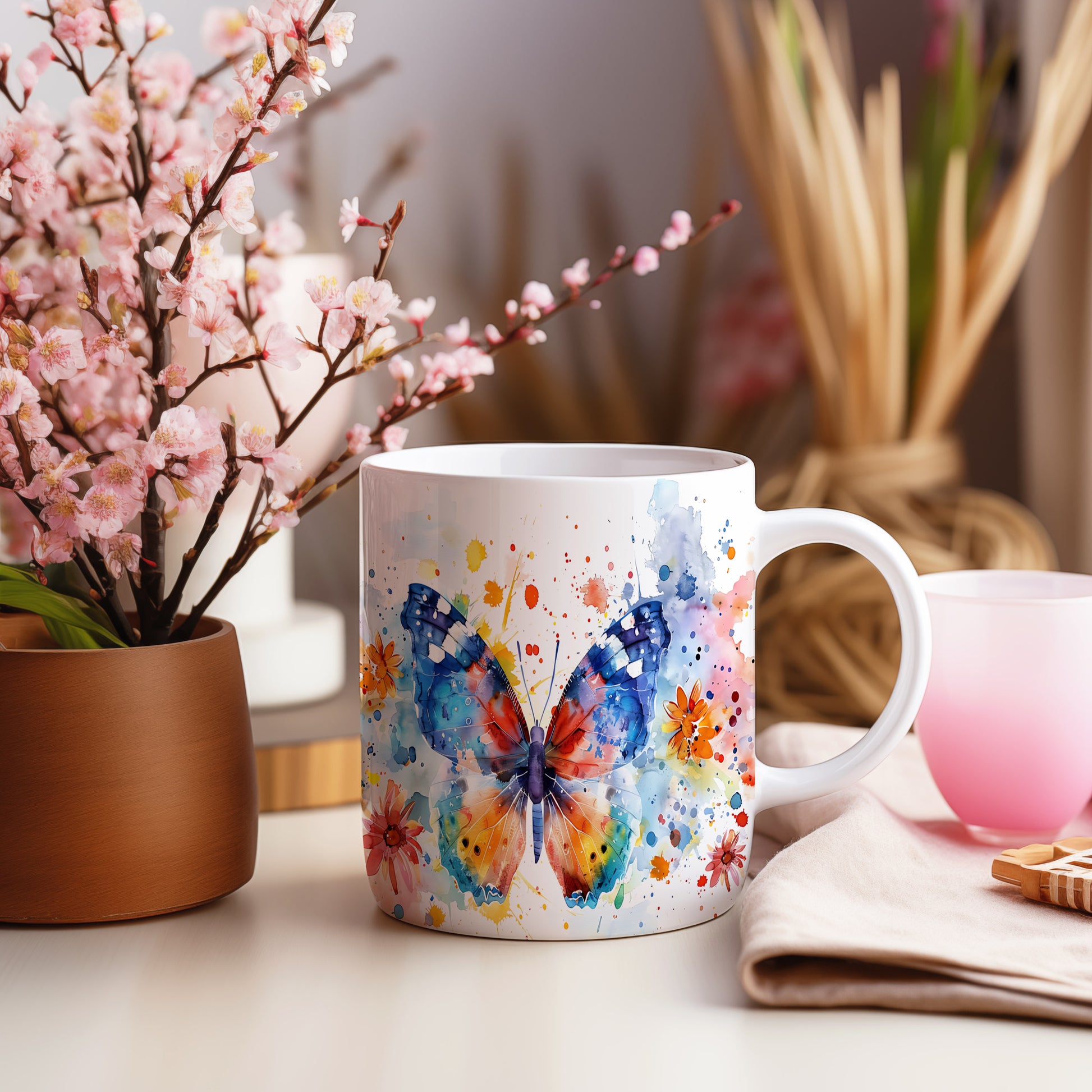 Hrnek s motýlem v barevném vzoru