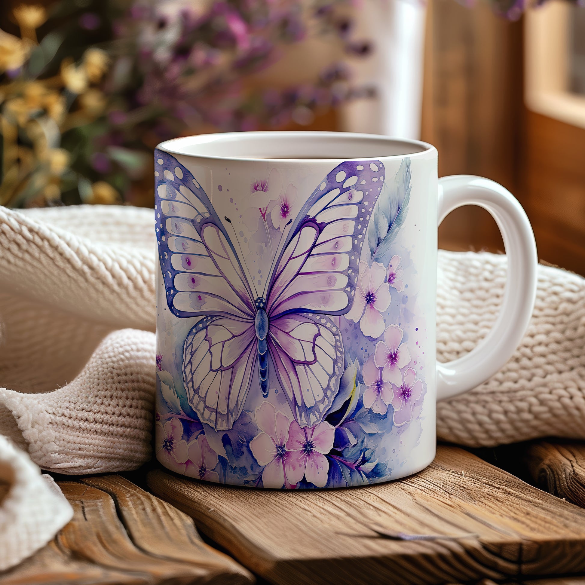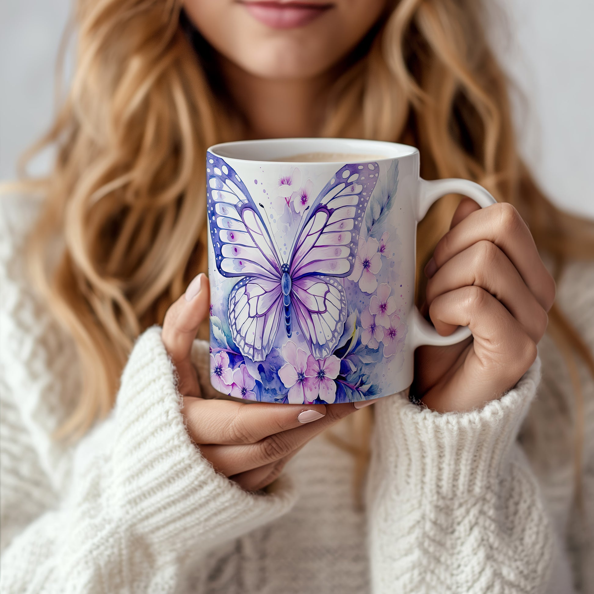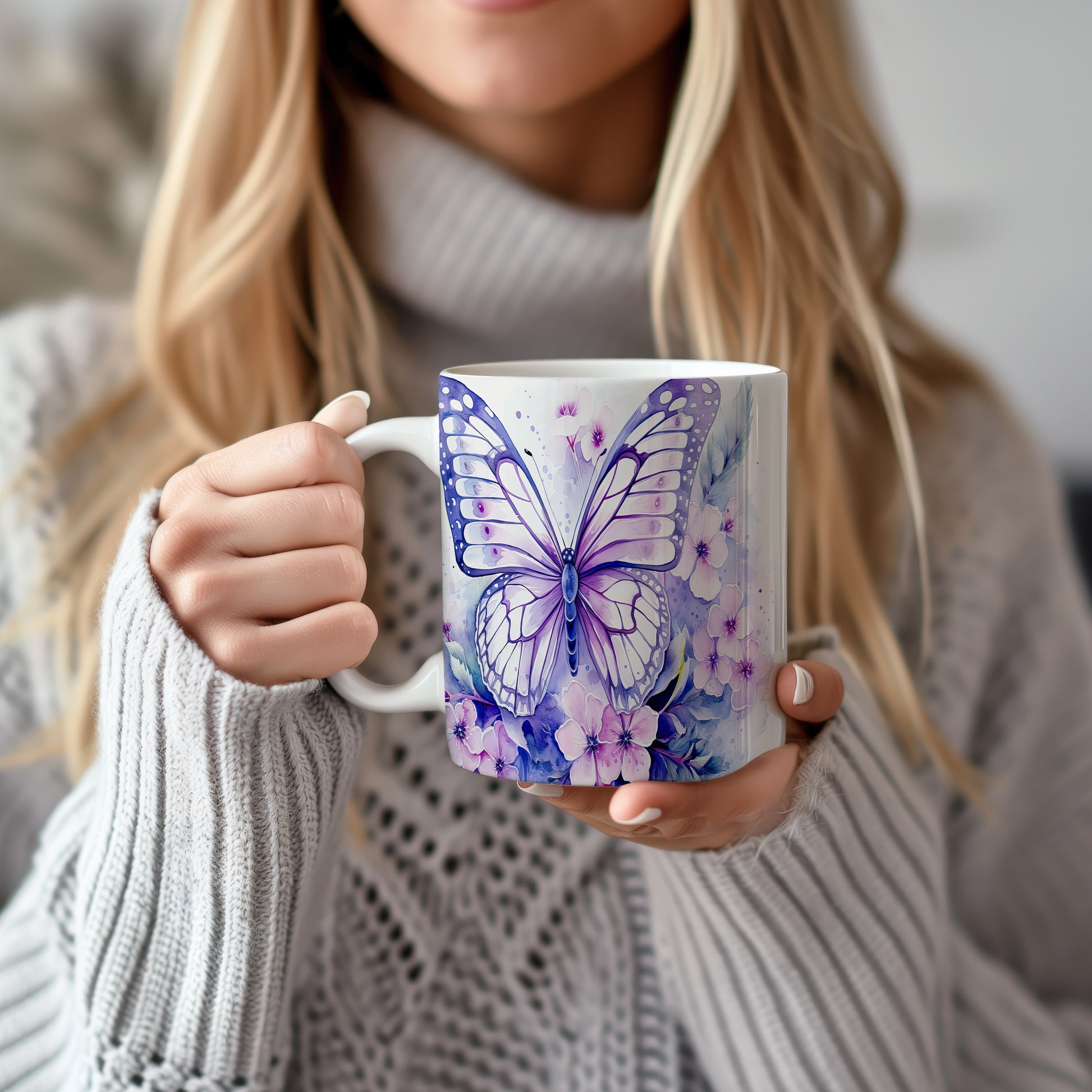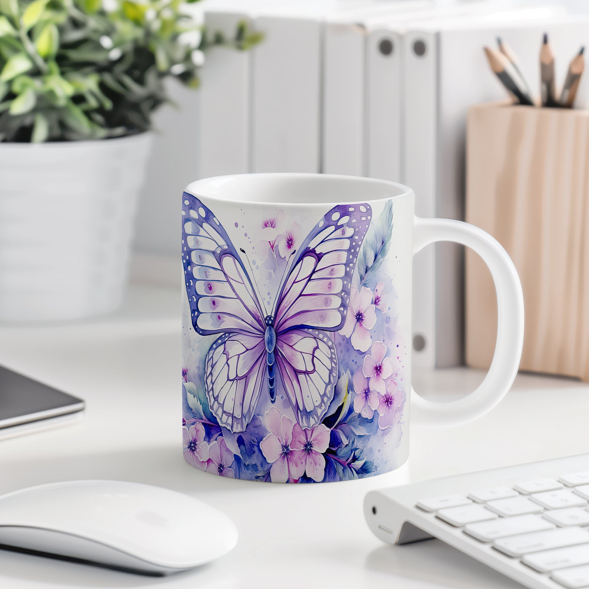 Tento hrnek s motivem motýla a květin v jemných purpurových a modrých tónech je skvělým kouskem pro milovníky přírody. Je ideální jako dárek pro přátele nebo rodinu, kteří si rádi vychutnávají kávu či čaj. Materiál: keramika. Objem: 330 ml. Vhodné do myčky i mikrovlnky. Díky svému designu přináší radost do každého dne.