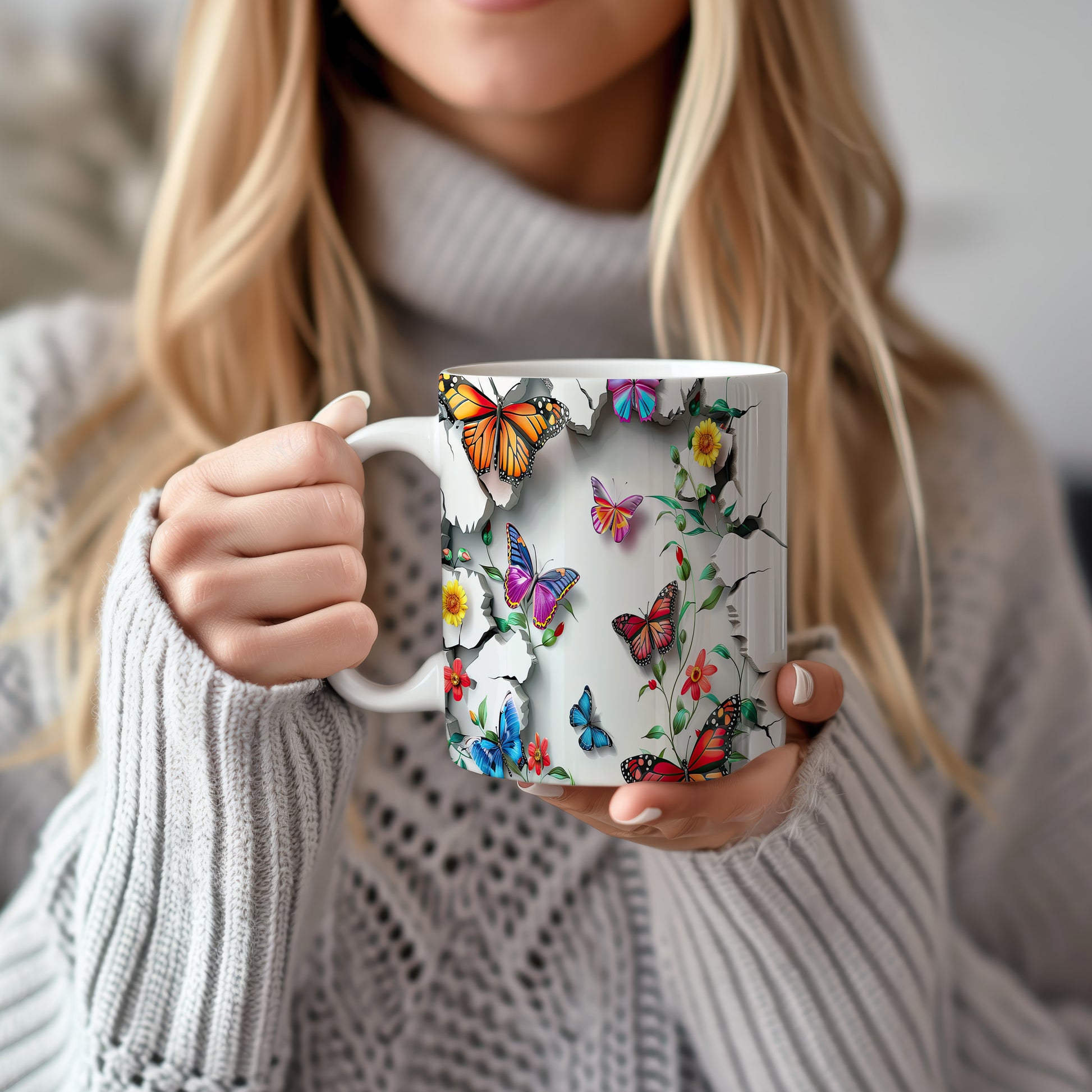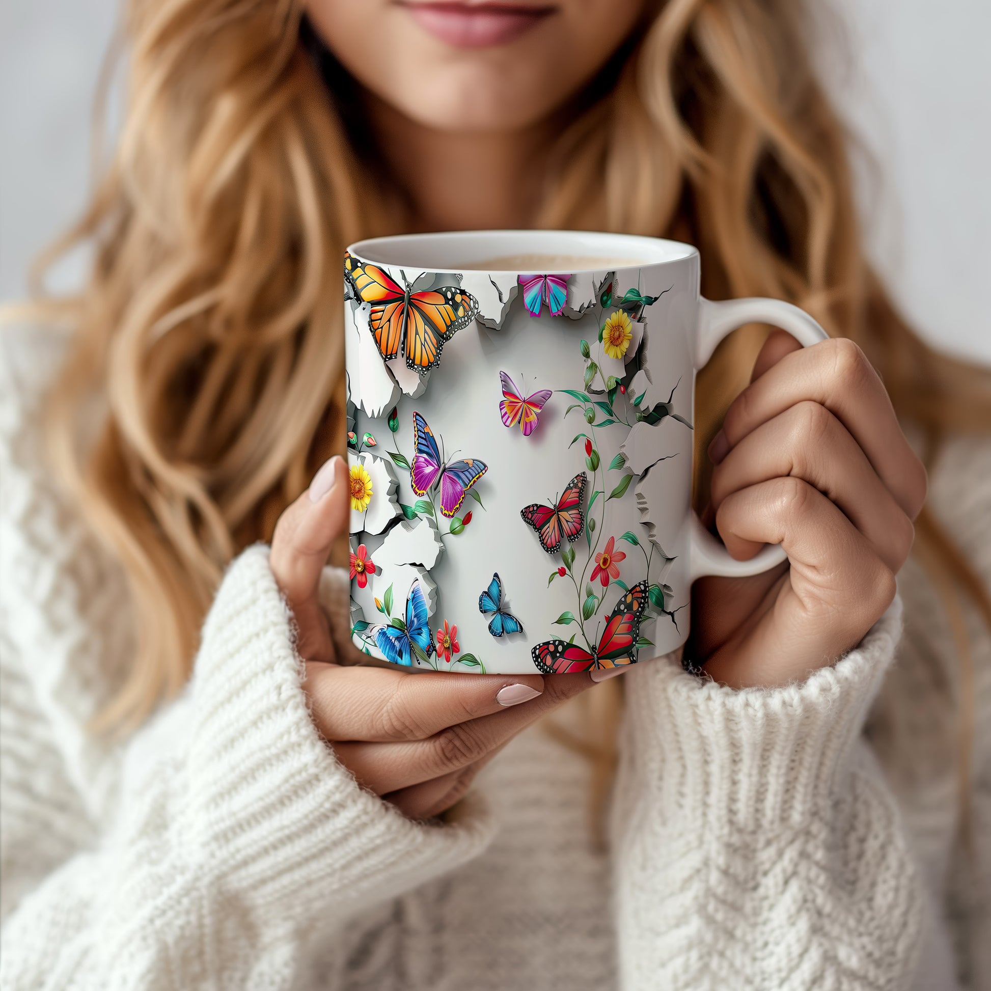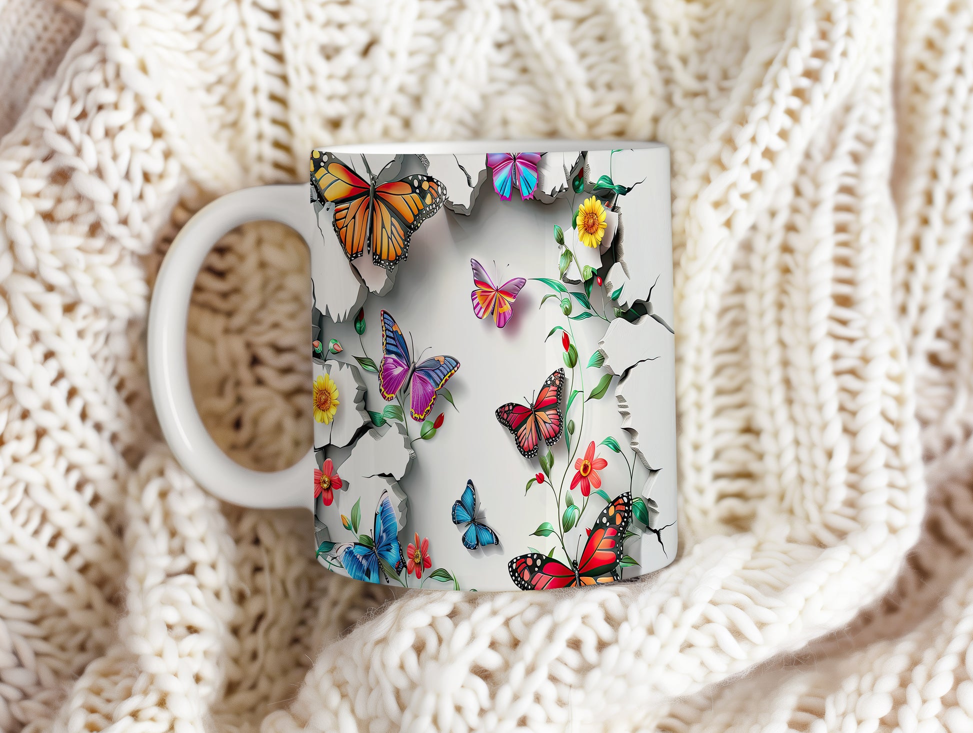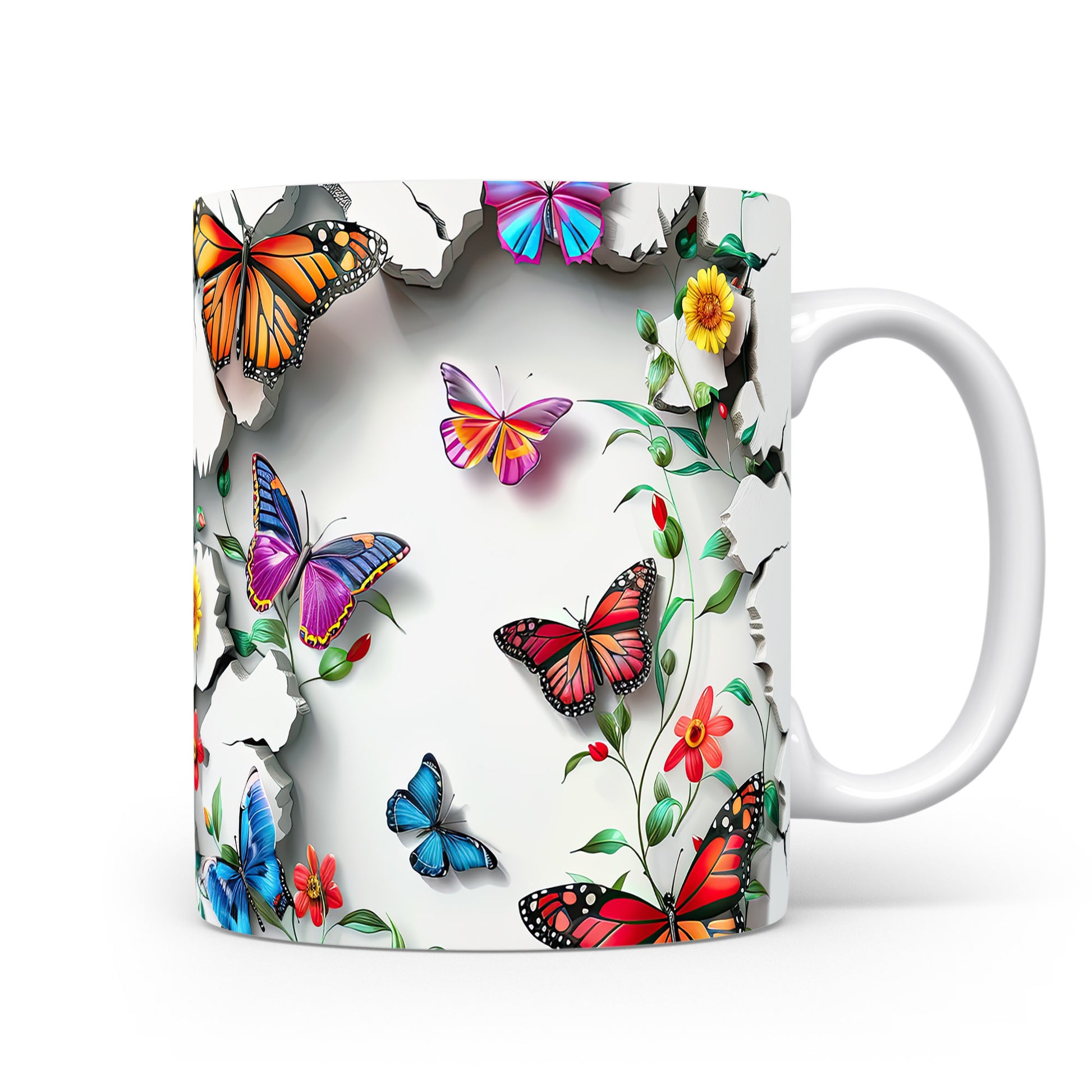 Hrnek s motýly a květinami – kontrastním vzhledem