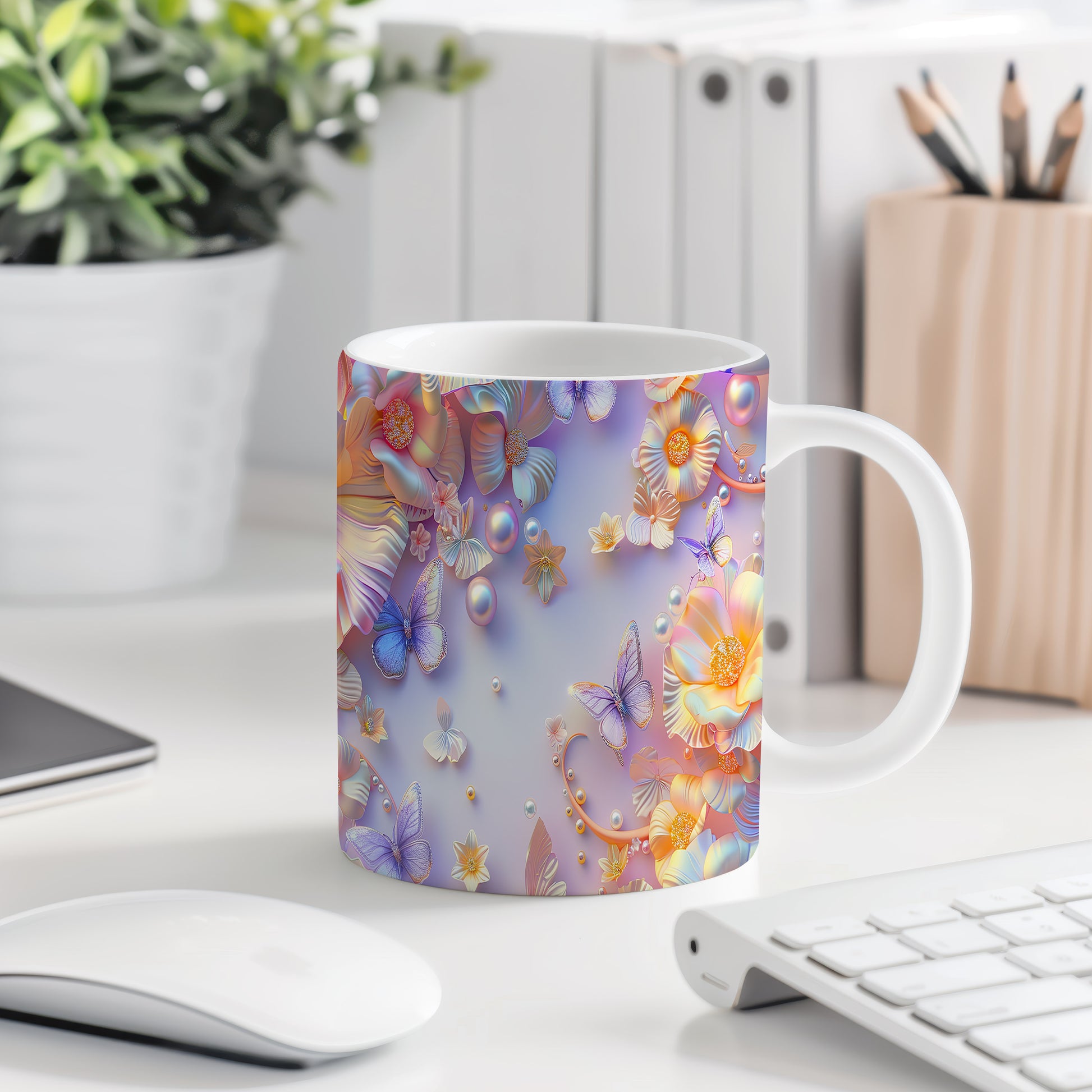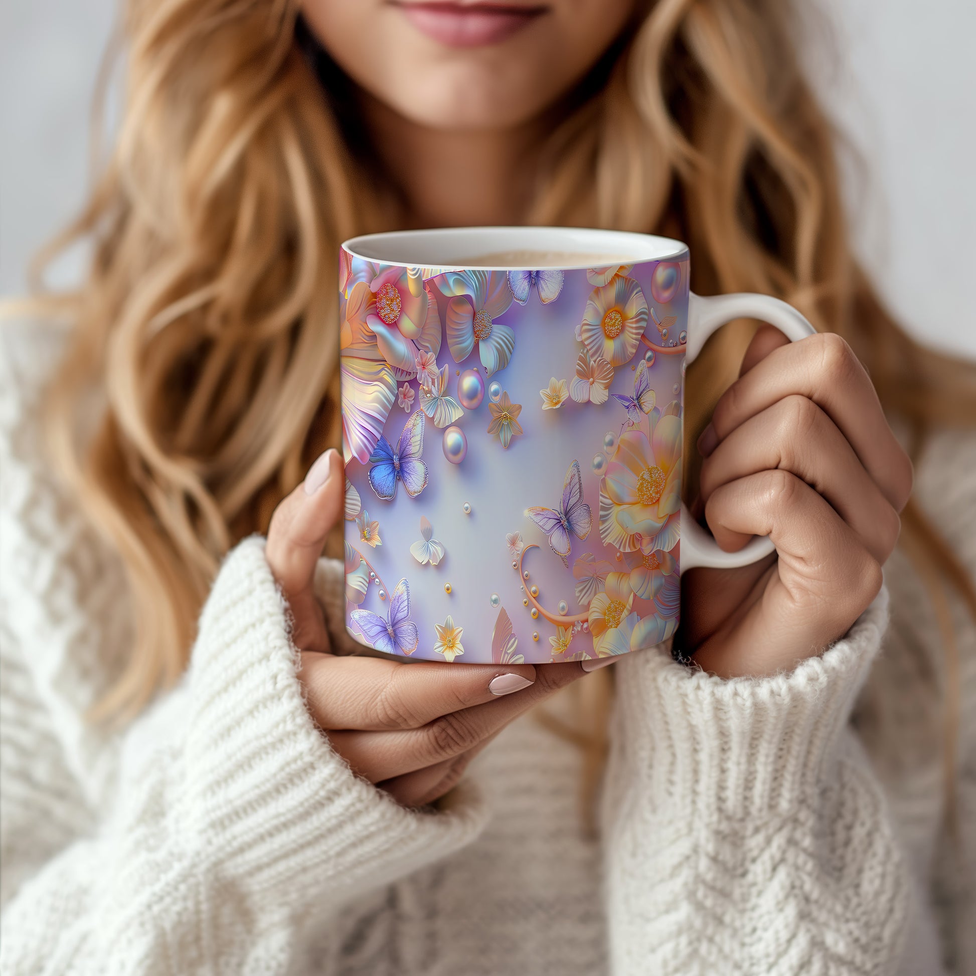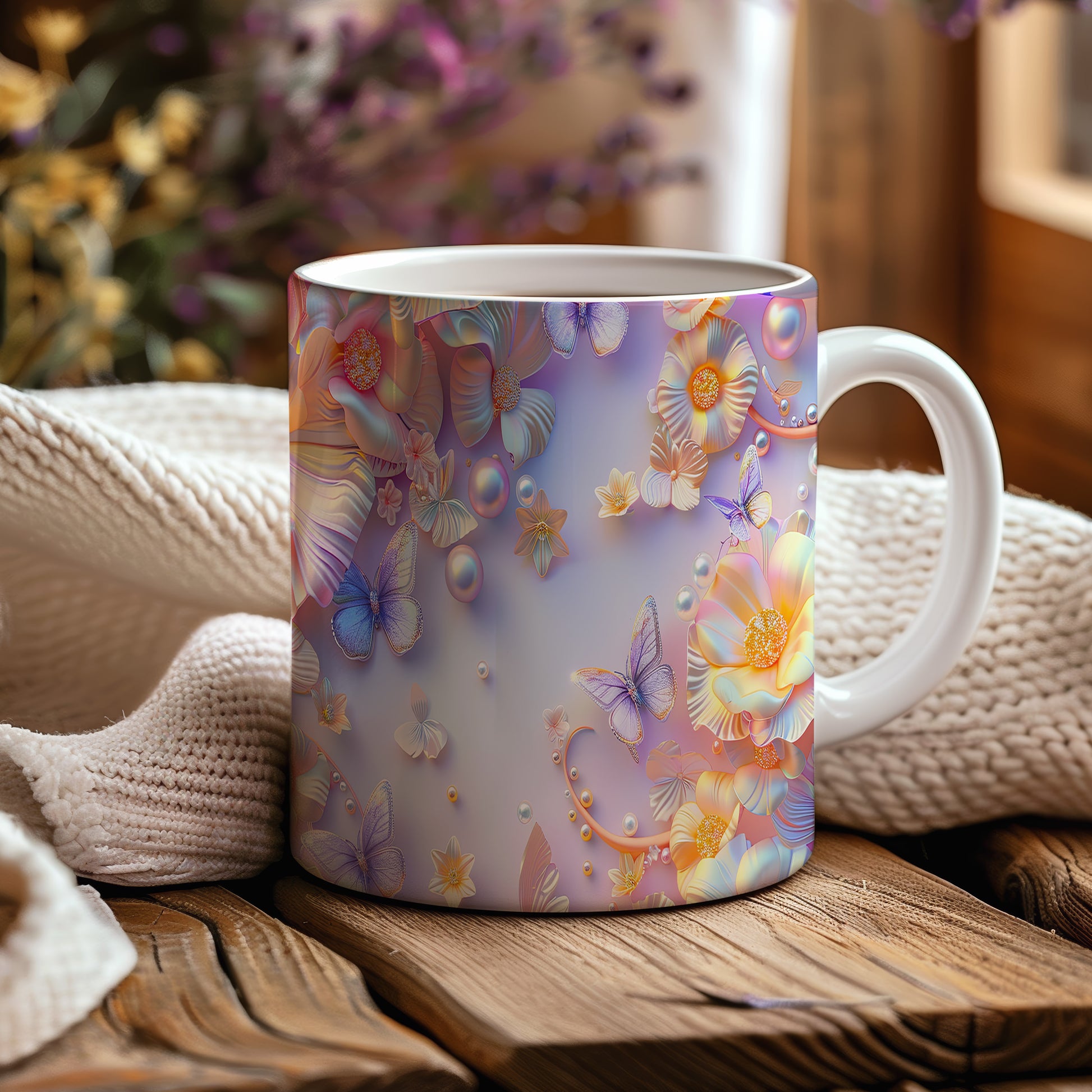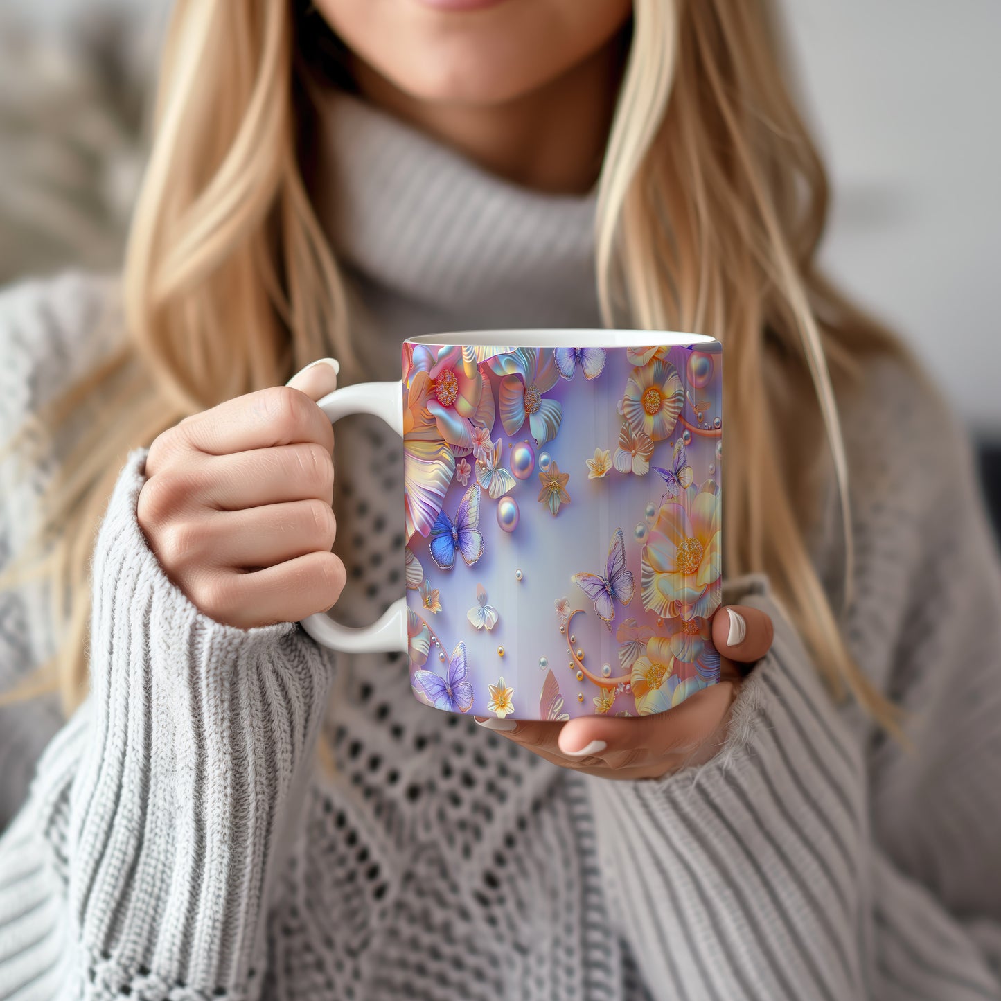 Tento elegantní hrnek s motivem motýlů a květin přináší jedinečný styl do každého šálku kávy nebo čaje. Je ideální pro milovníky přírody a skvělým dárkem pro přátele či rodinu. Materiál: keramika. Objem: 330 ml. Vhodné do myčky i mikrovlnky. Díky svému designu přidává hrnek do každodenního pití nádech elegance.