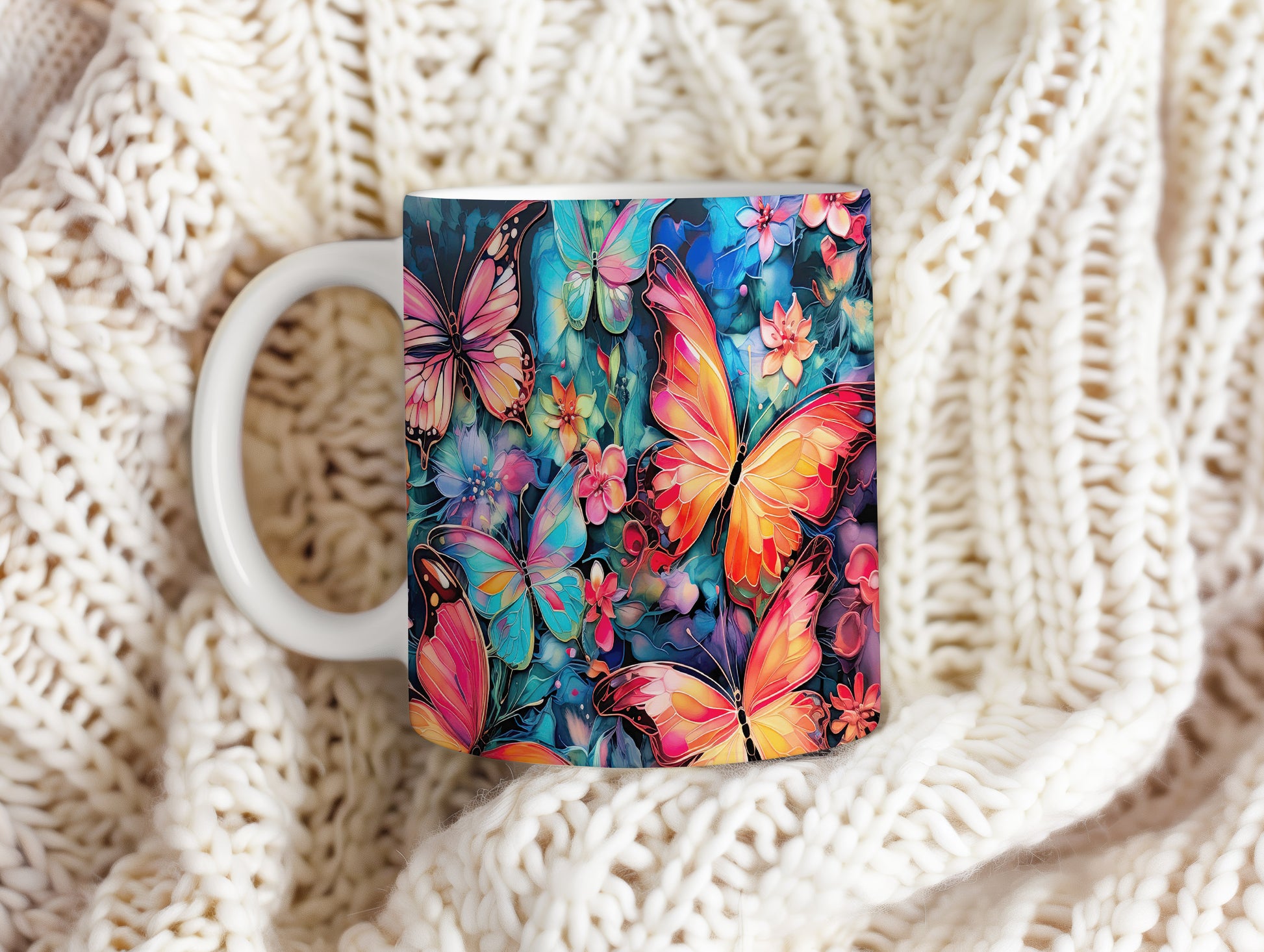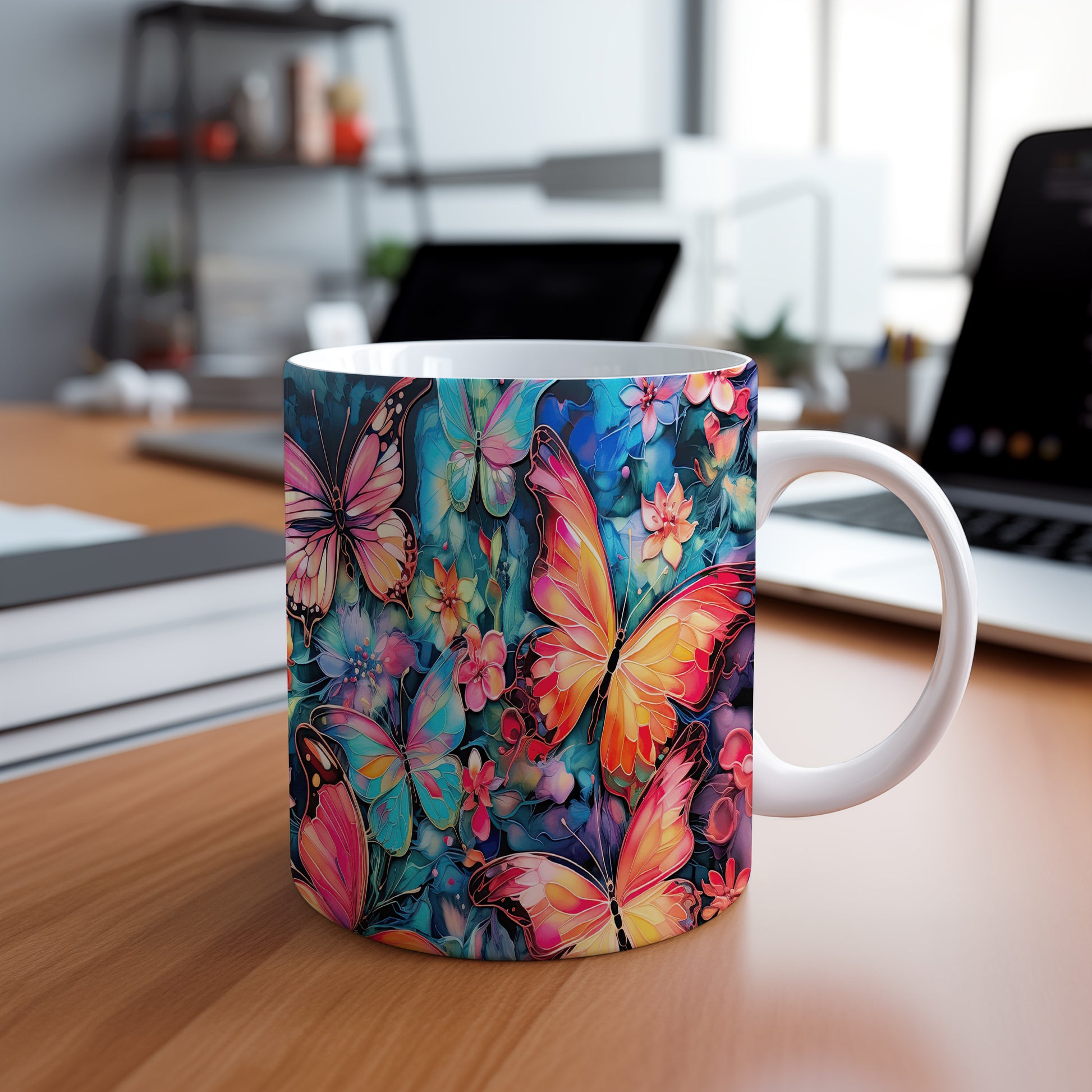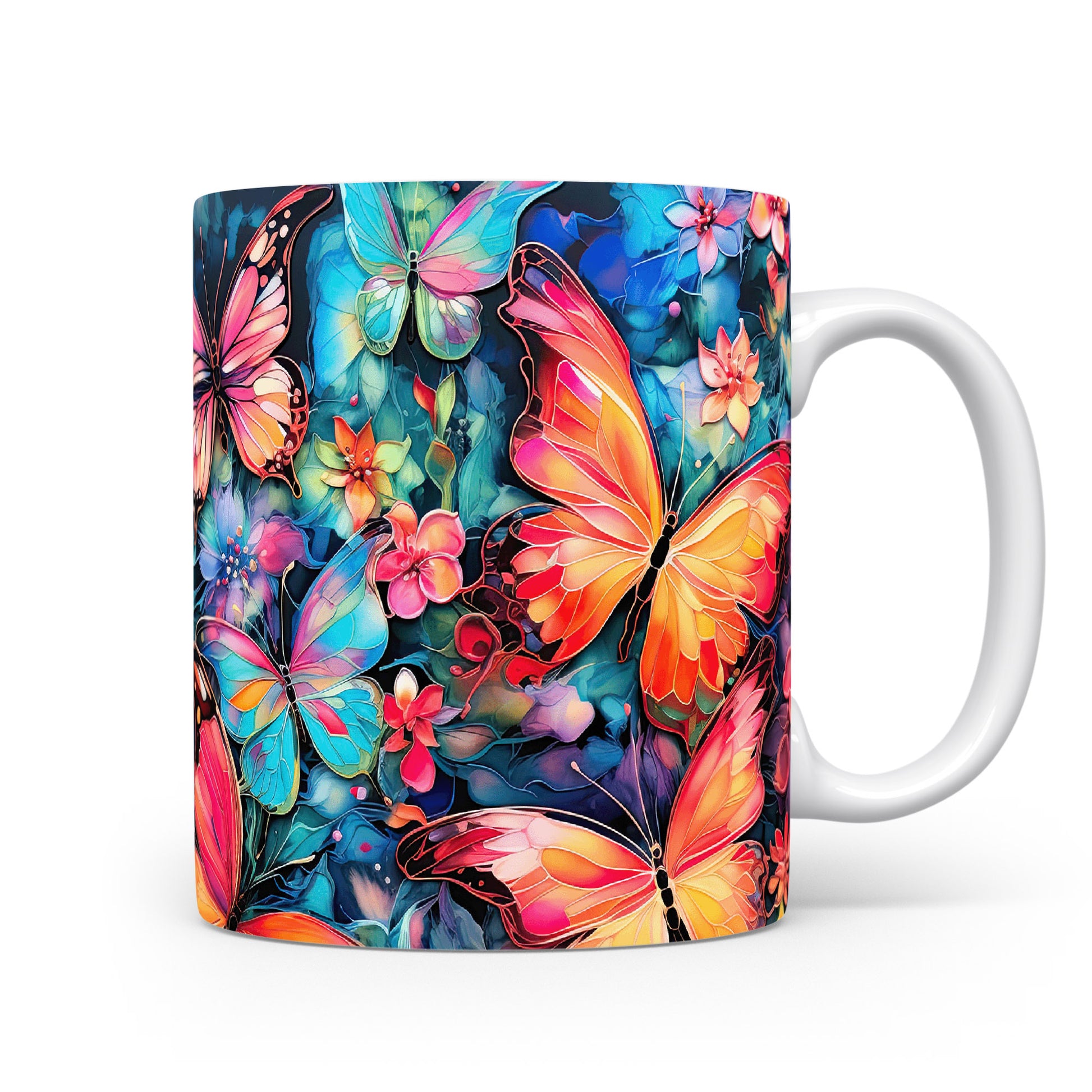 Hrnek s motýly a květinami je krásným a pestrým kouskem, který potěší každého milovníka přírody. Skvěle se hodí jako dárek pro přátele nebo rodinu, kteří ocení jedinečný design. Materiál: keramika. Objem: 330 ml. Vhodné do myčky i mikrovlnky. Tento hrnek přináší radost do každodenního pití a oživí váš stůl.