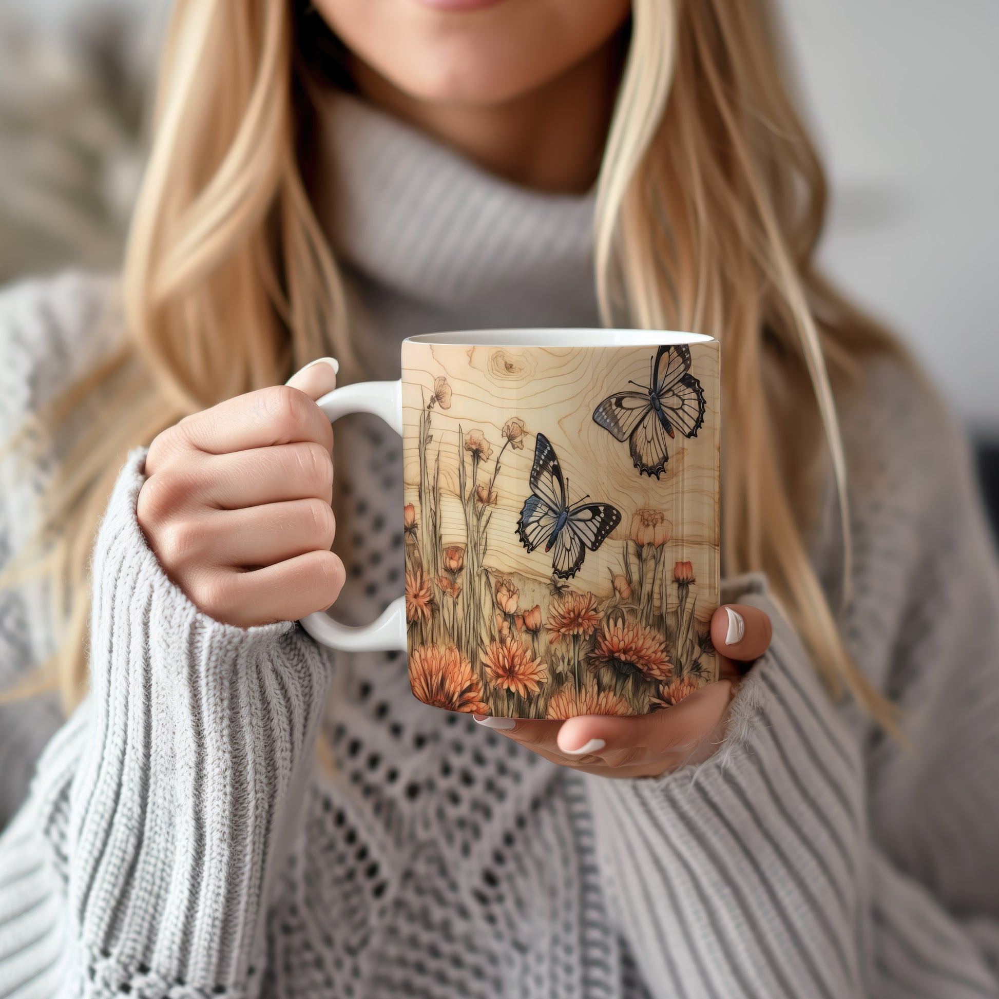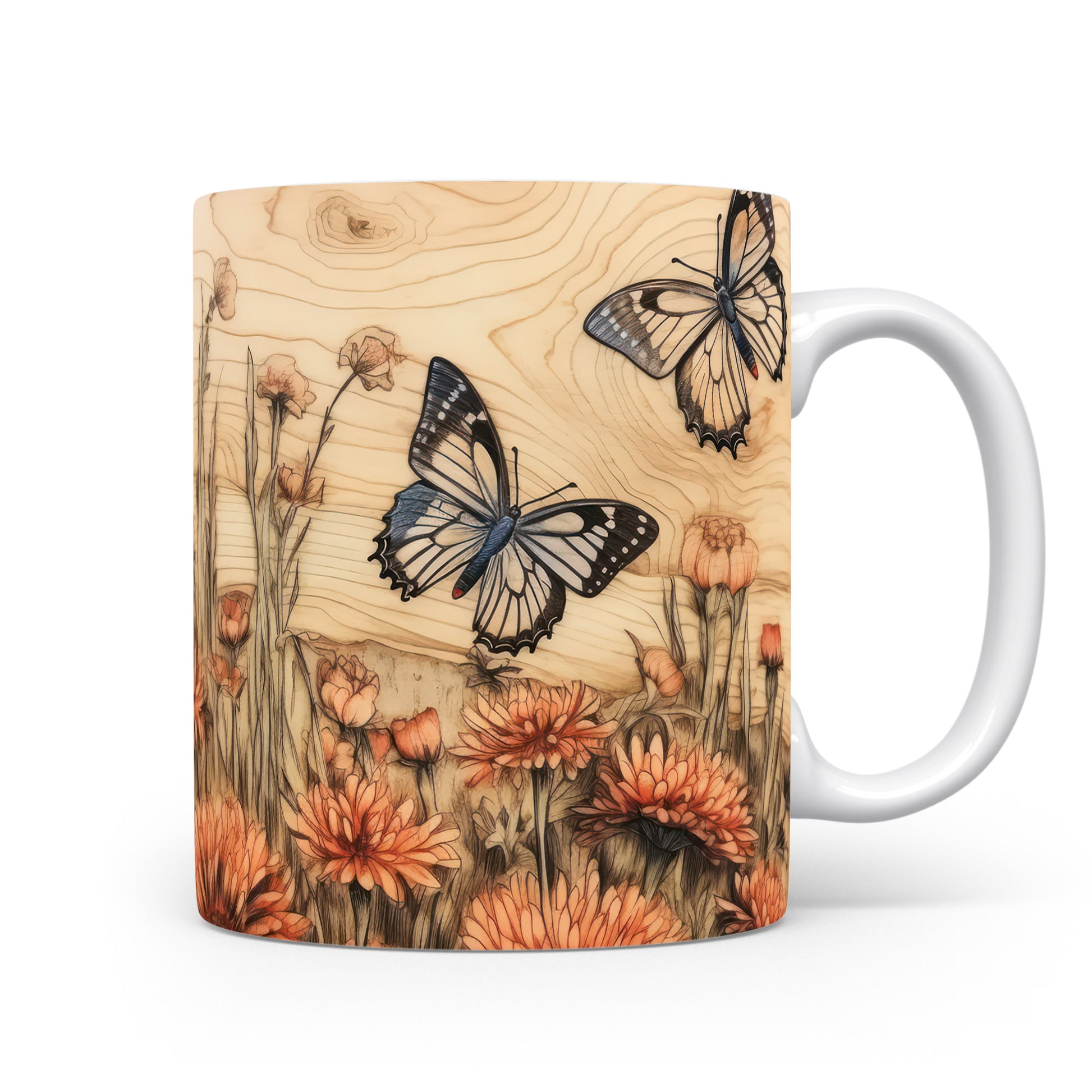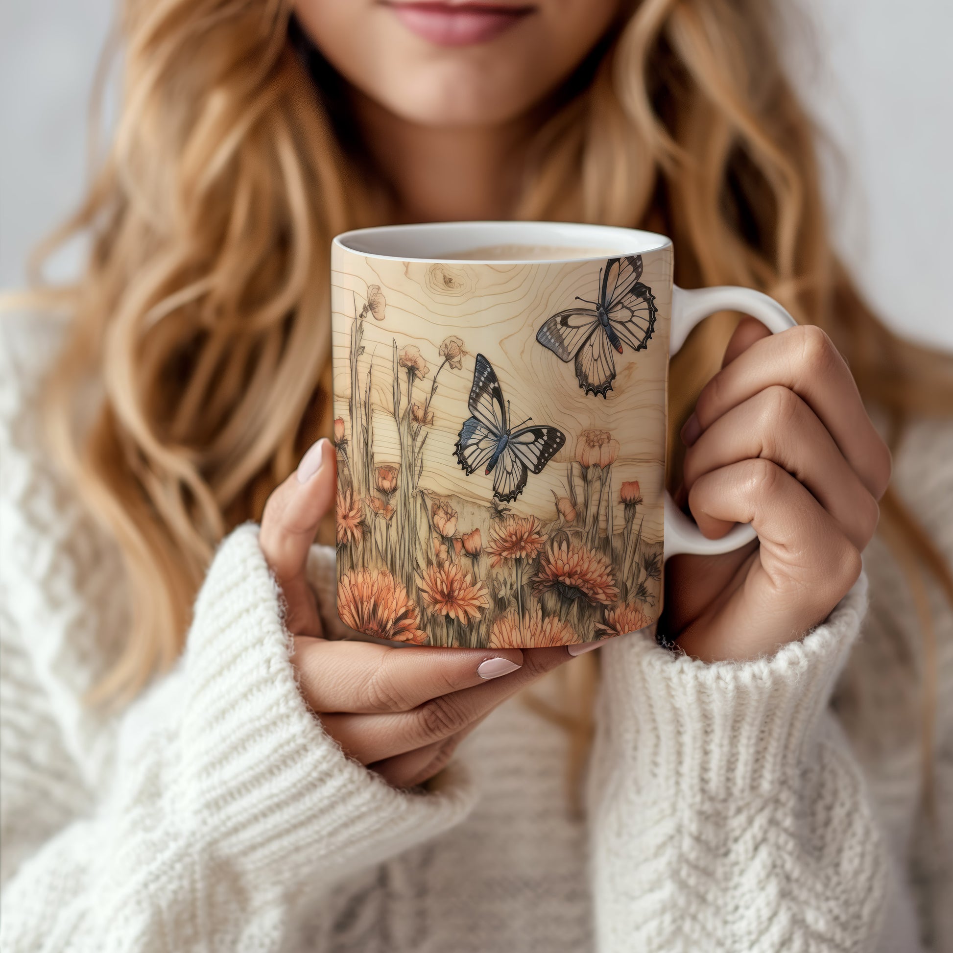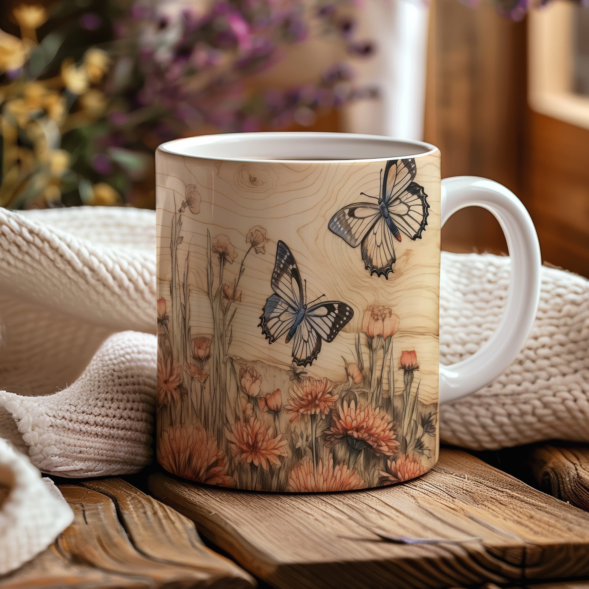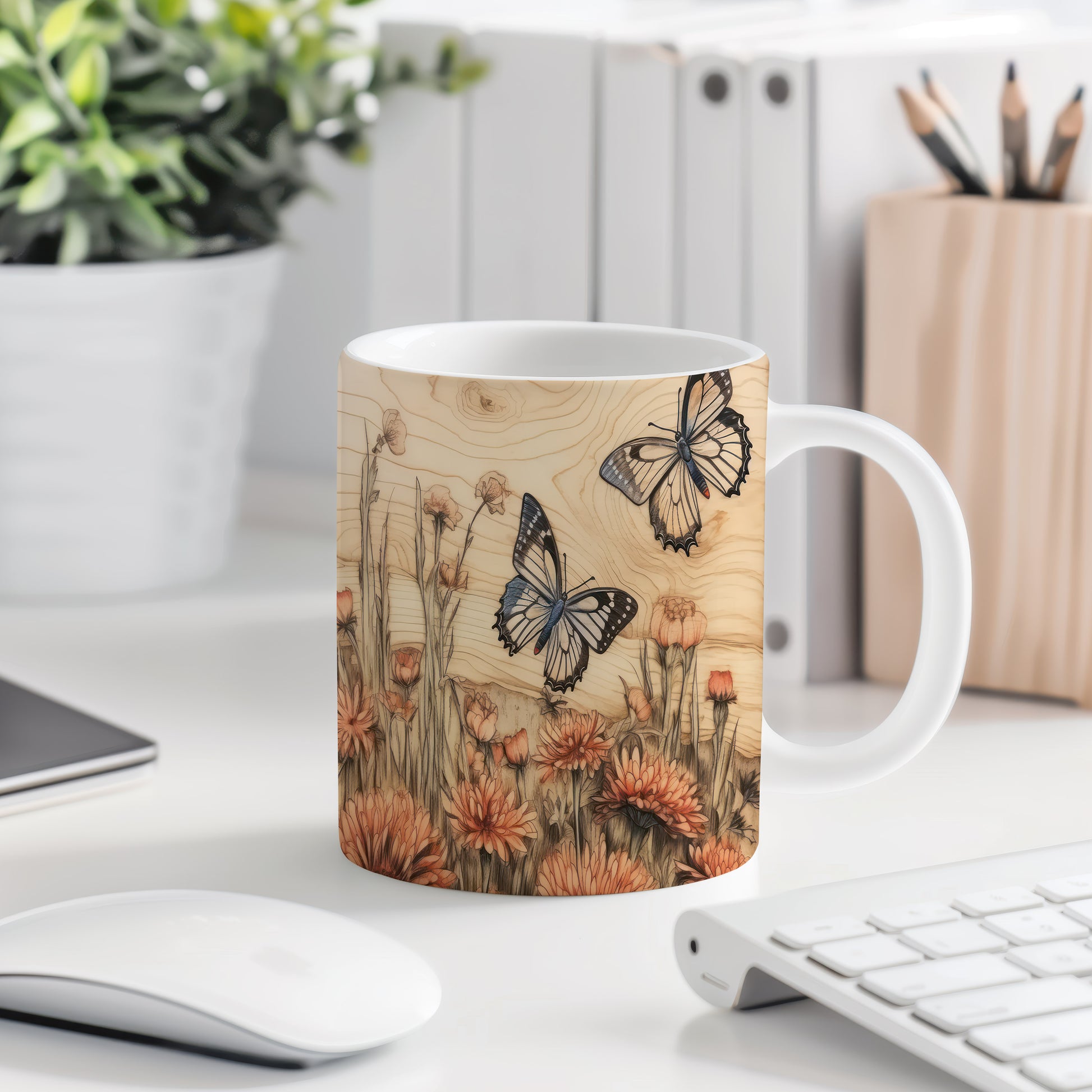 Tento elegantní hrnek zobrazuje motýly nad barevnými květinami, což vytváří příjemnou atmosféru. Je ideální pro milovníky přírody a skvělým dárkem pro přátele nebo rodinu. Materiál: keramika. Objem: 330 ml. Vhodné do myčky i mikrovlnky. Používání tohoto hrnku přináší radost z každého doušku vašeho oblíbeného nápoje.