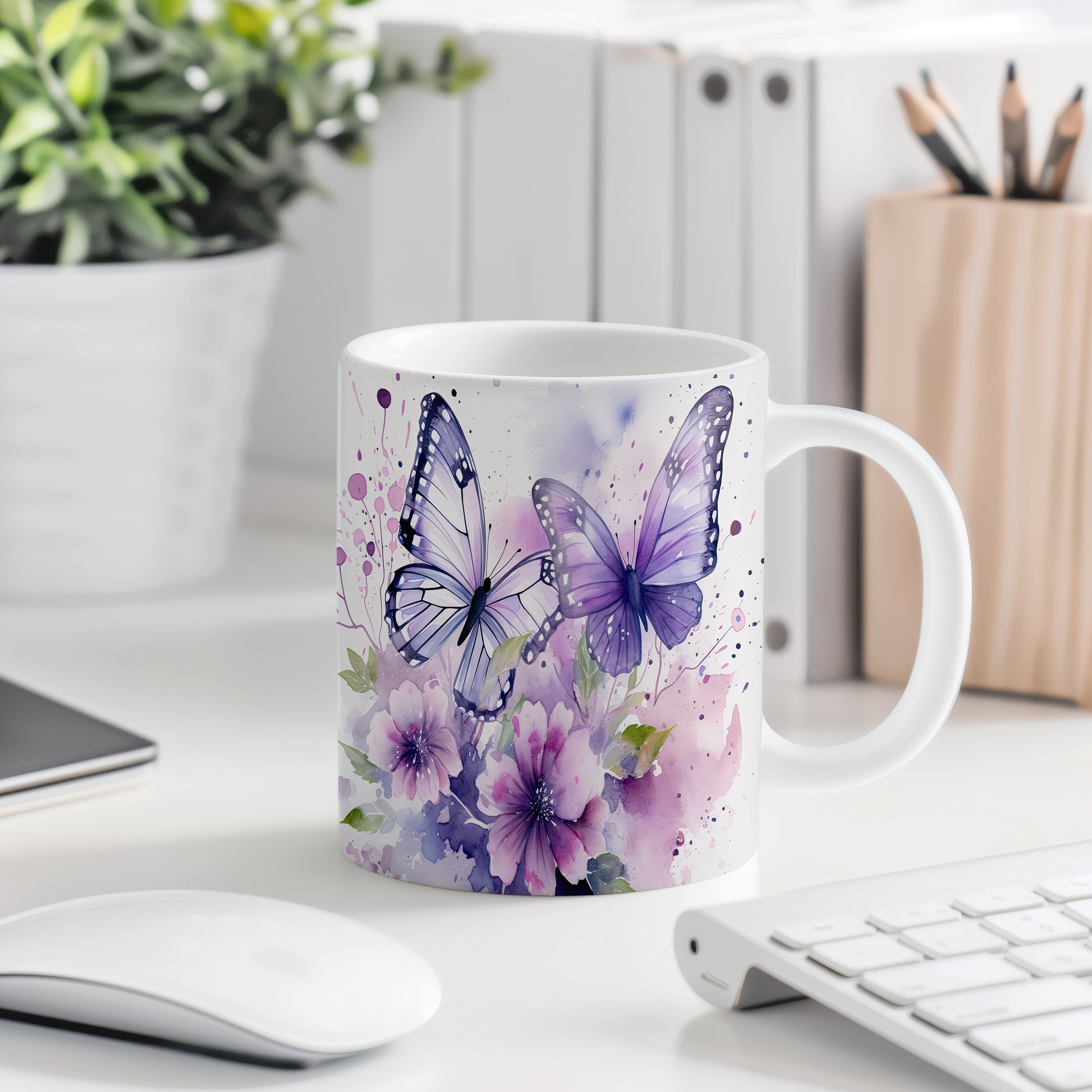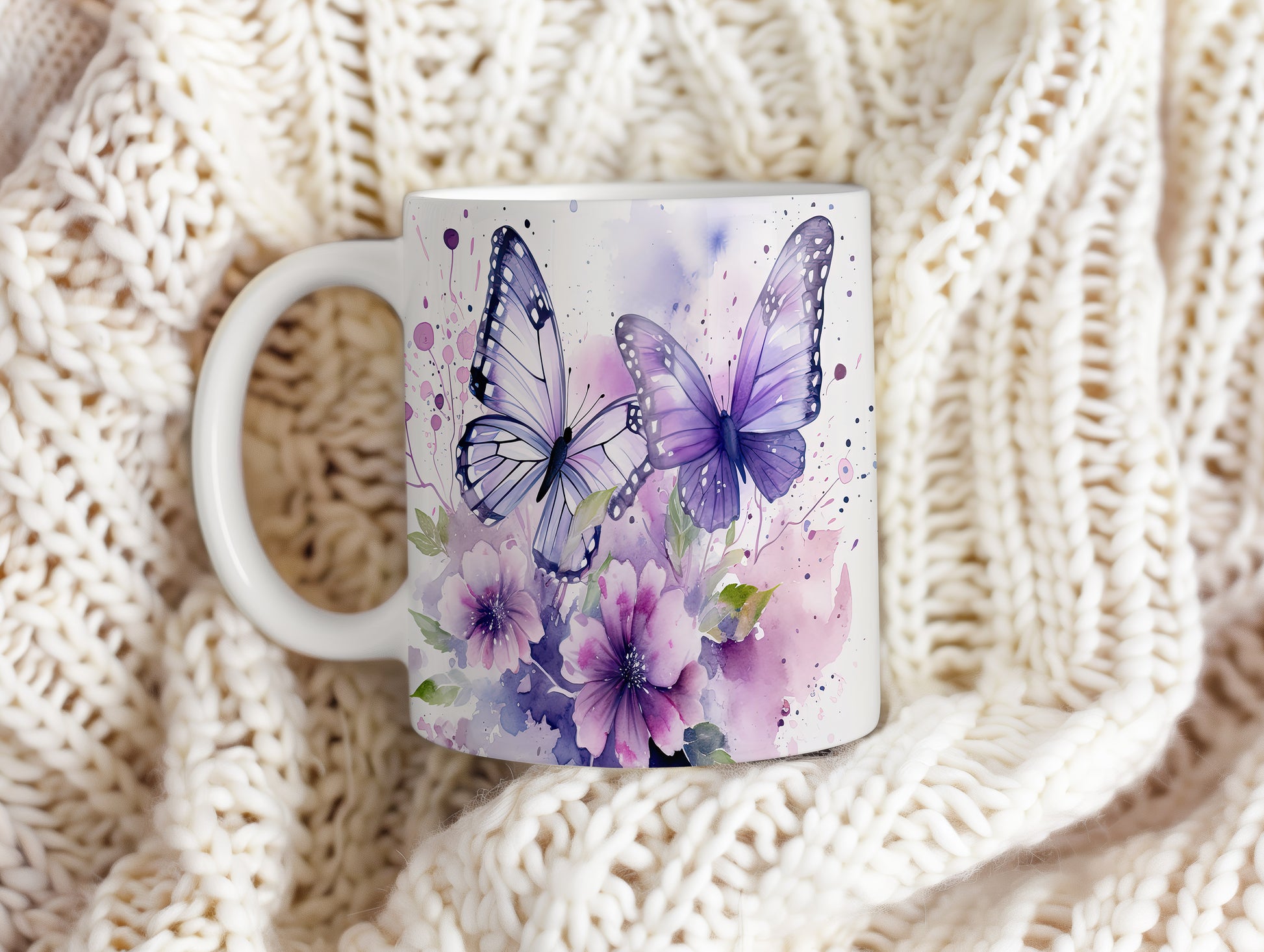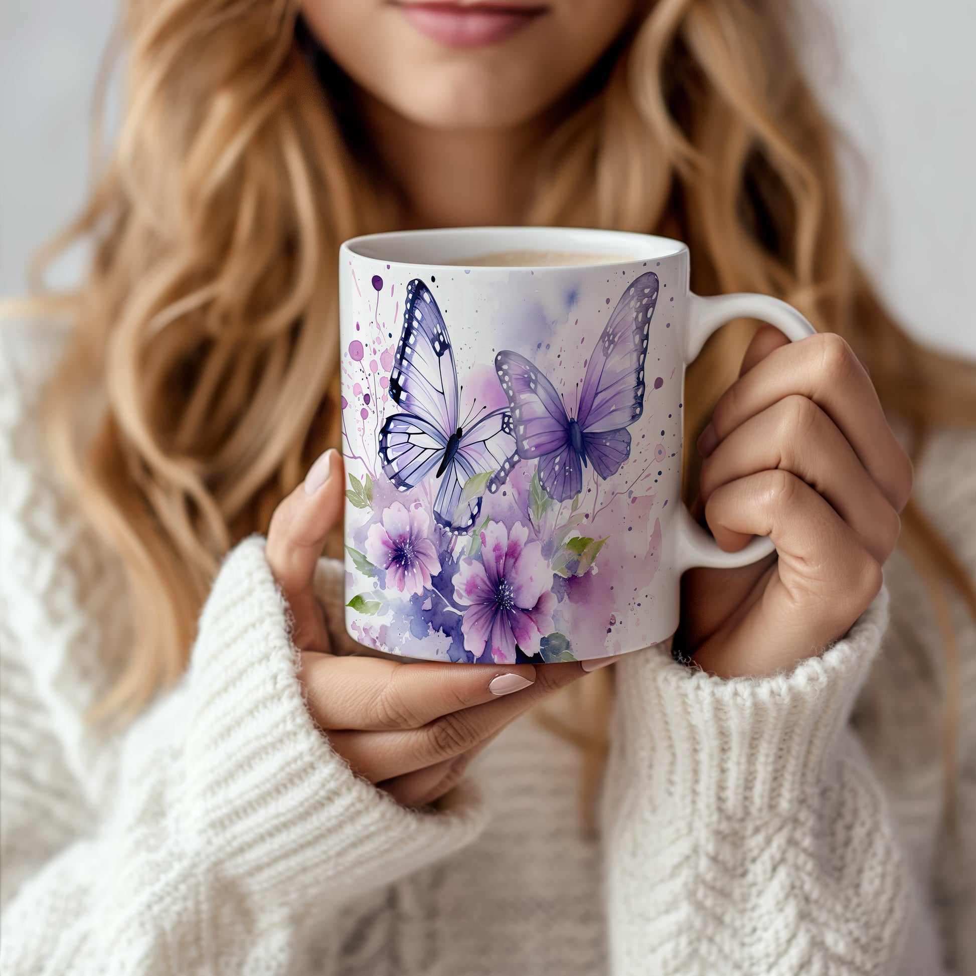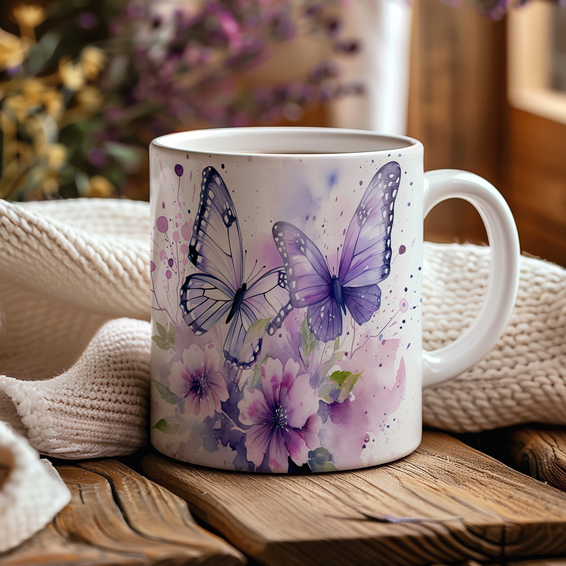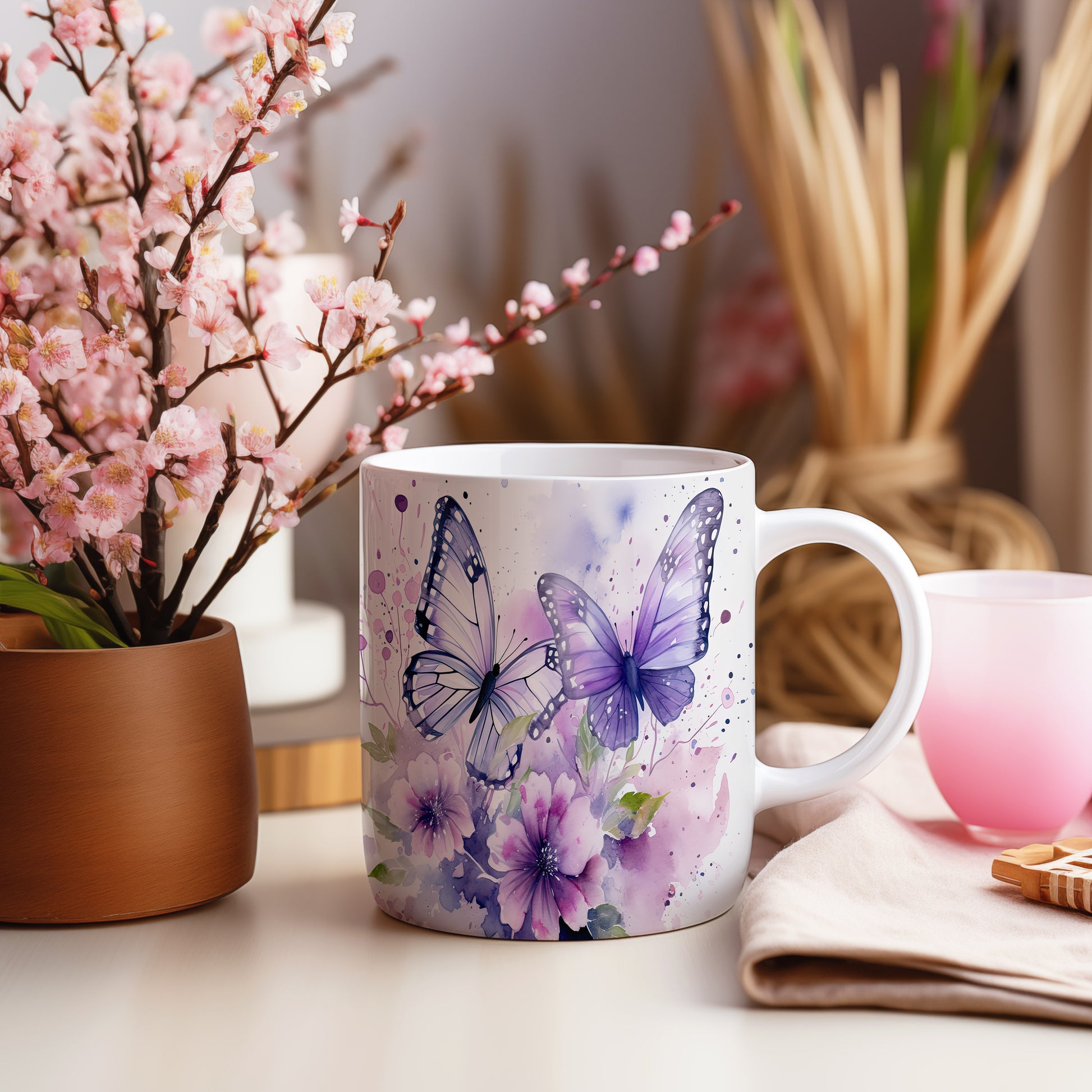 Tento hrnek zaujme krásným designem motýlů a květin v jemných fialových a růžových odstínech. Je ideální pro každodenní použití nebo jako originální dárek pro milovníky přírody. Materiál: keramika. Objem: 330 ml. Vhodné do myčky i mikrovlnky. Používání tohoto hrnku přináší radost a styl do každého dne.