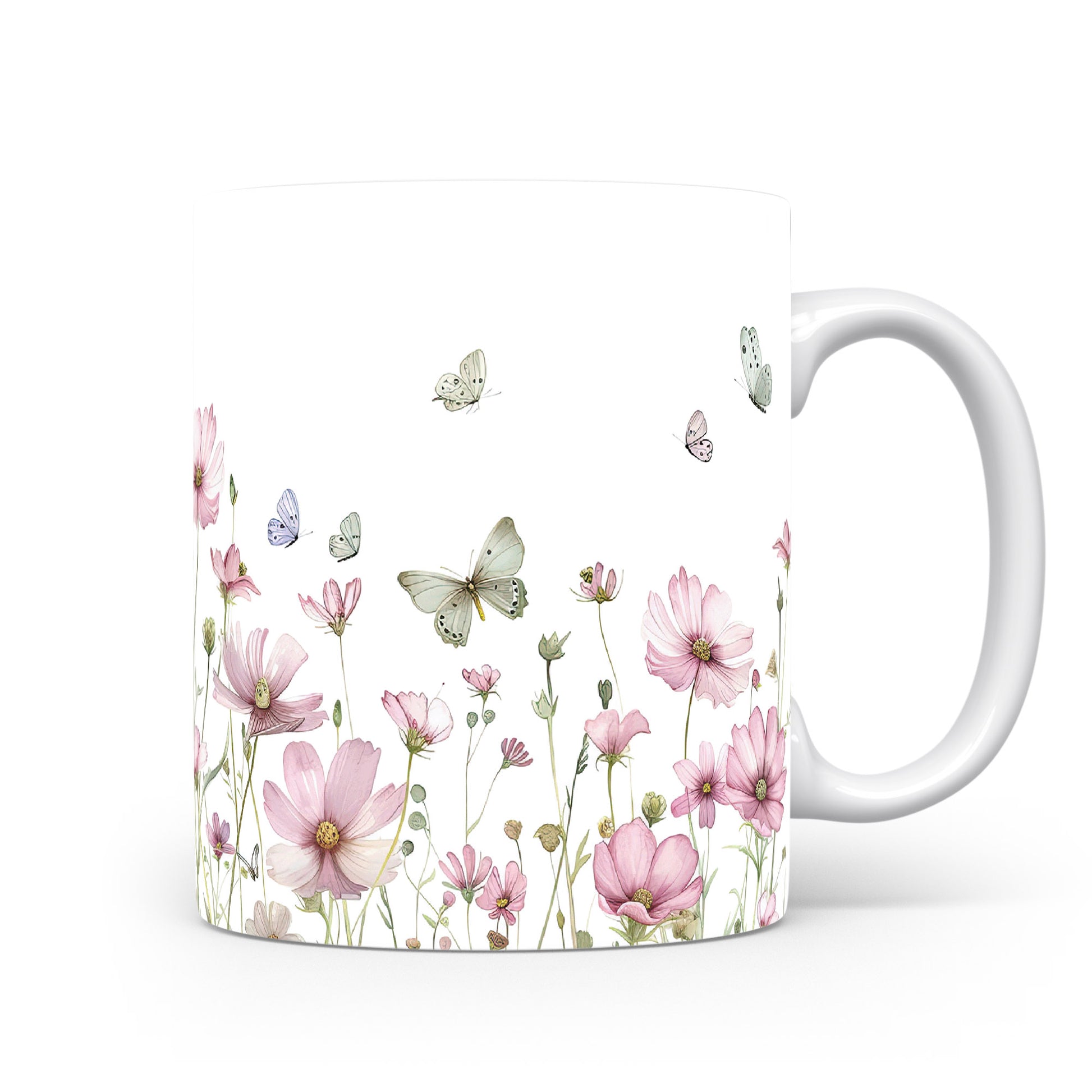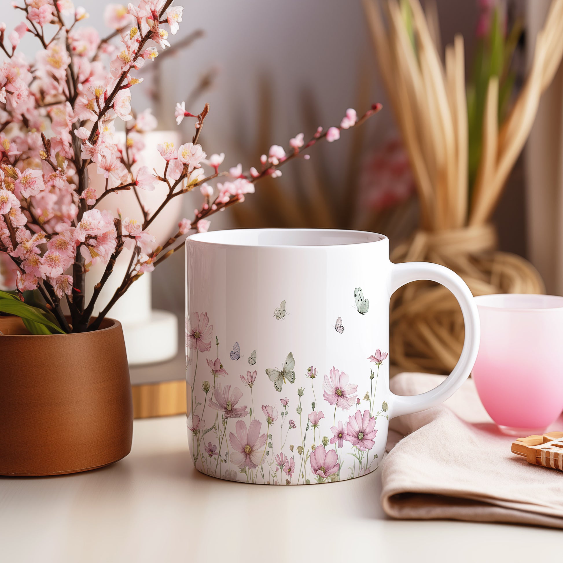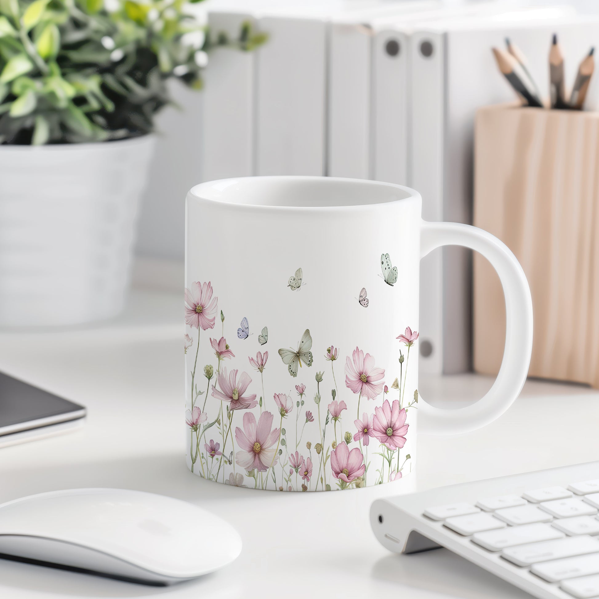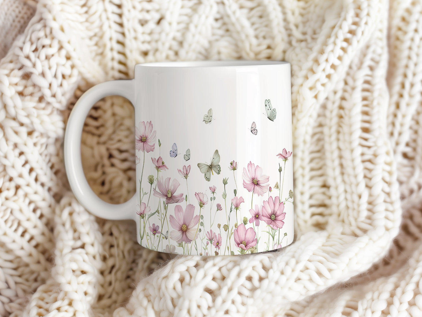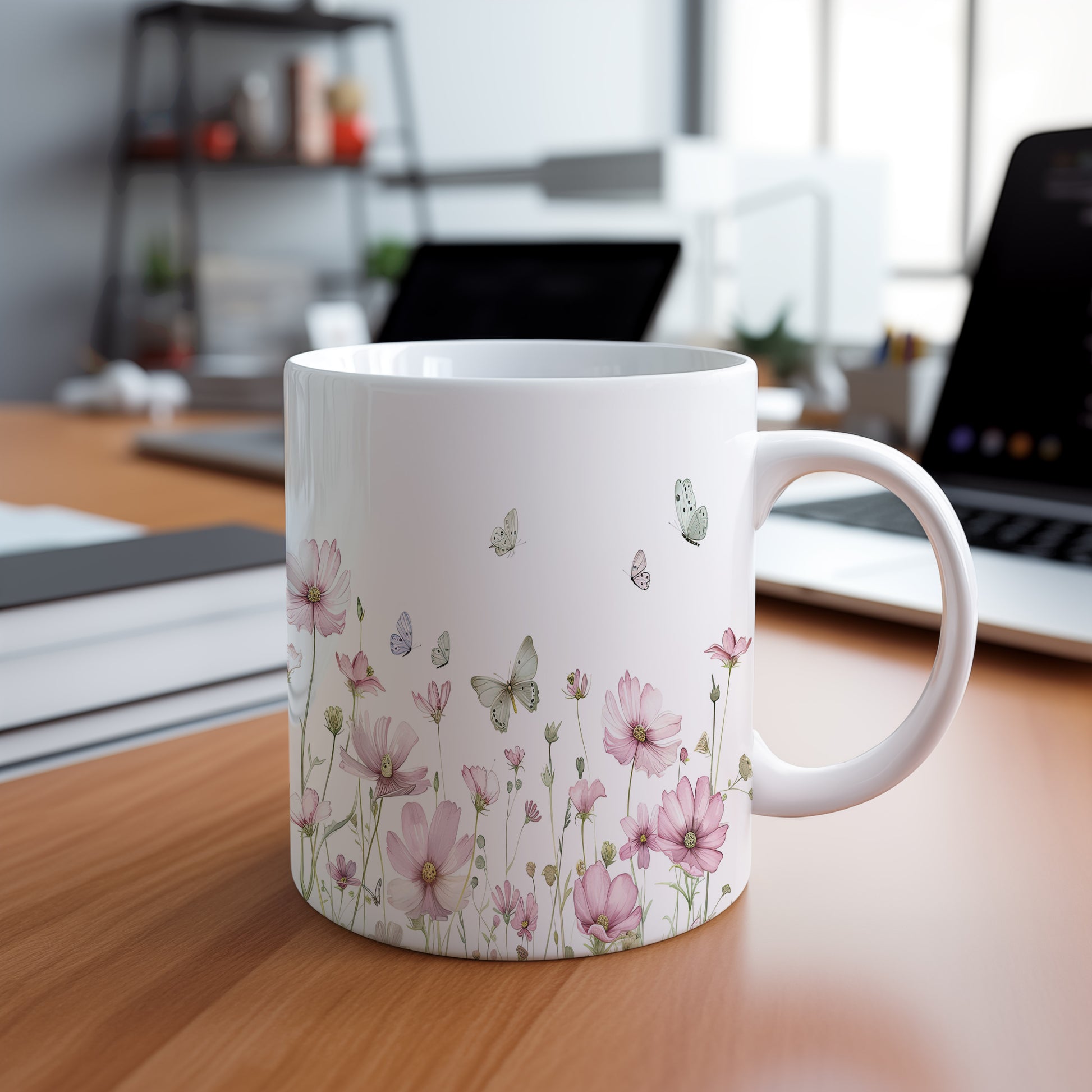 Elegantní hrnek s jemným motivem květin a motýlů. Tento hrnek je ideální pro milovníky přírody a skvělým dárkem pro každou příležitost. Materiál: keramika. Objem: 330 ml. Vhodné do myčky i mikrovlnky. Užívejte si svůj oblíbený nápoj s tímto stylovým kouskem.