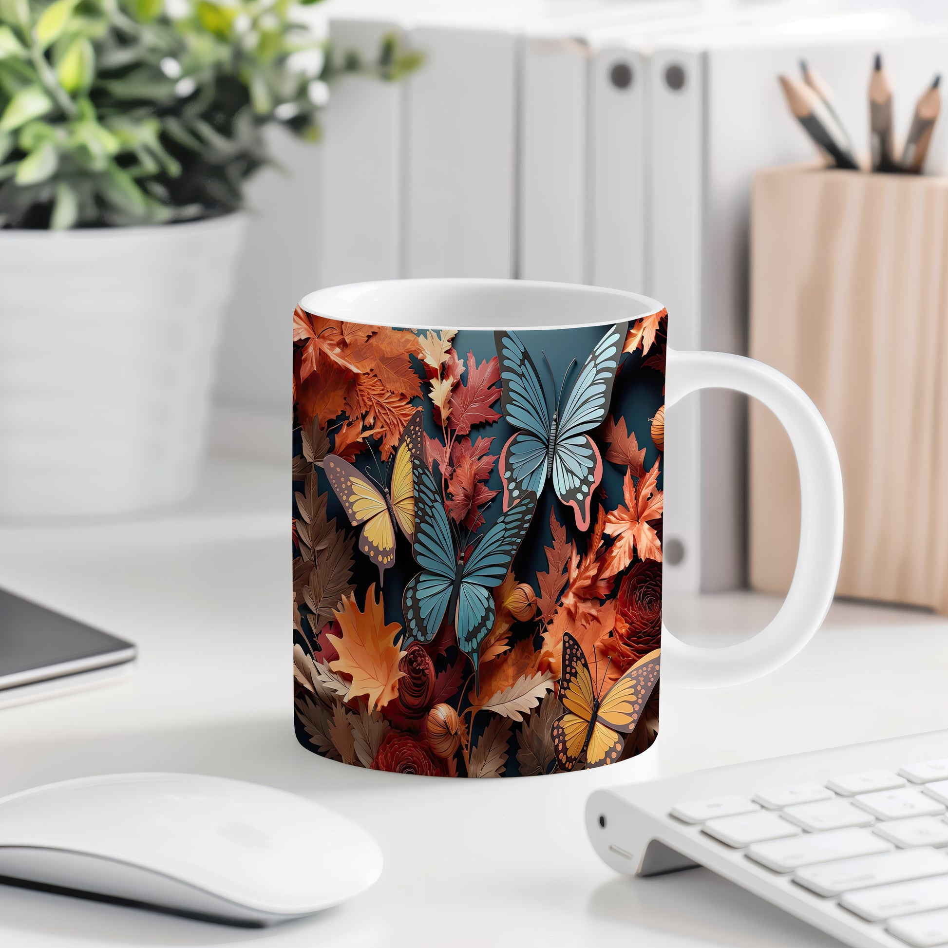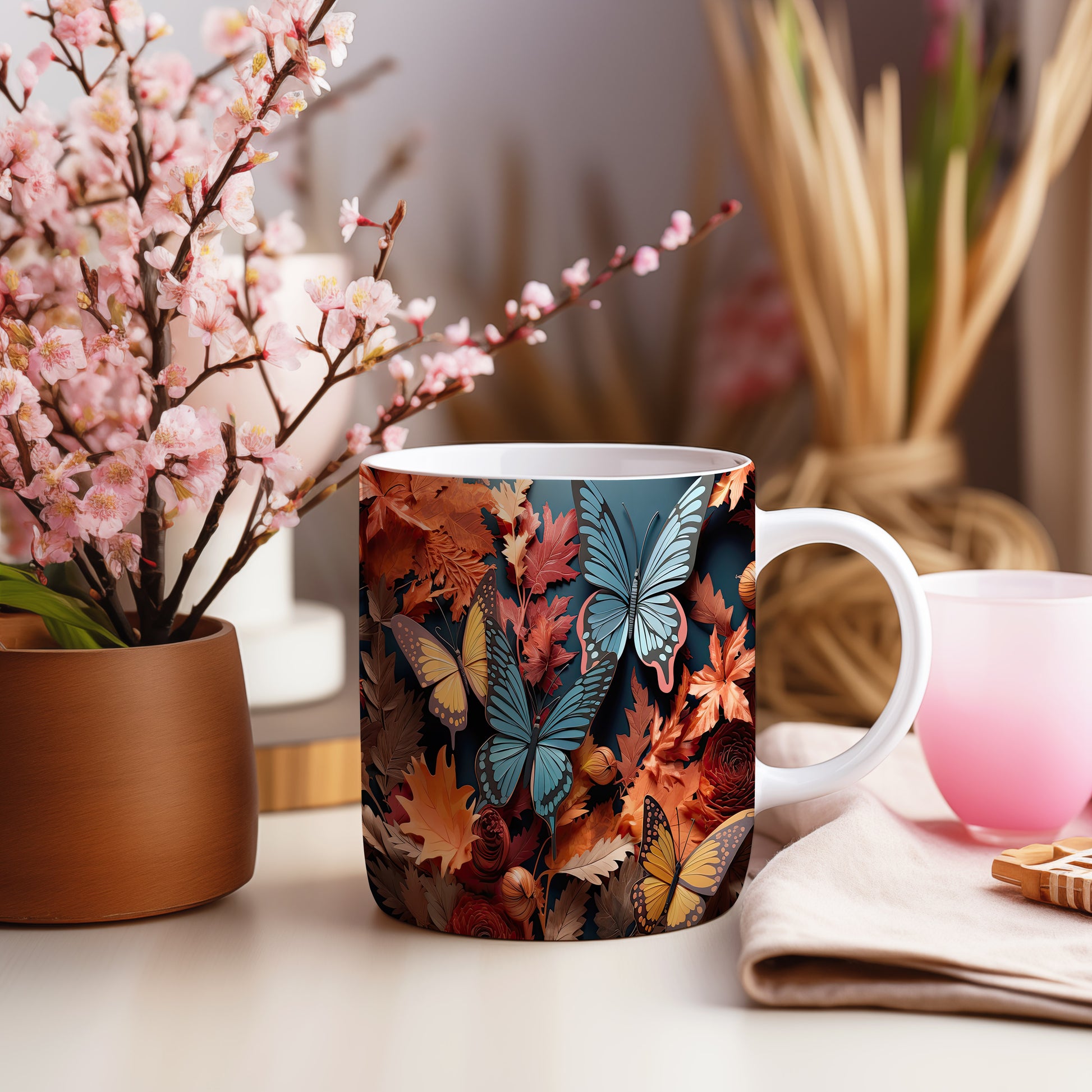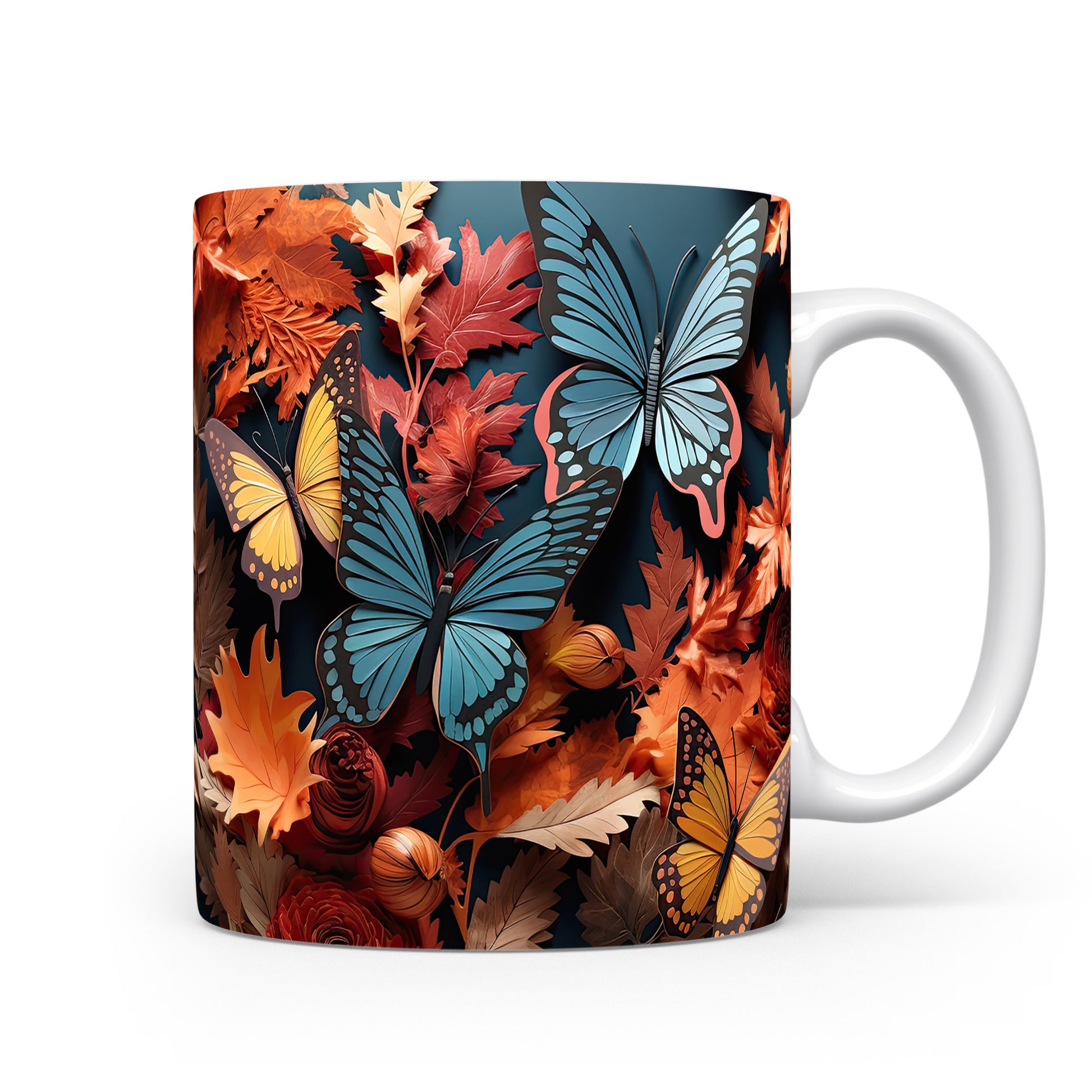 Elegantní hrnek s motivem modrých a žlutých motýlů na pozadí podzimních listů. Tento stylový kousek je ideální pro milovníky přírody a skvělým dárkem pro přátele nebo rodinu. Materiál: keramika. Objem: 330 ml. Vhodné do myčky i mikrovlnky. Užívejte si své oblíbené nápoje s tímto hrnkem, který přináší příjemnou atmosféru do každého dne.