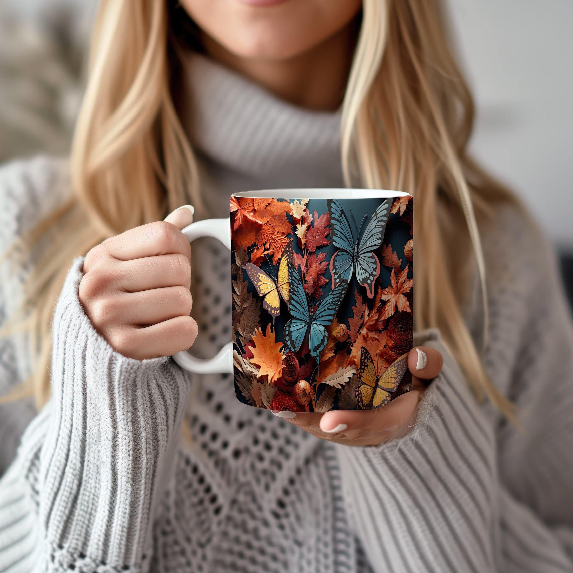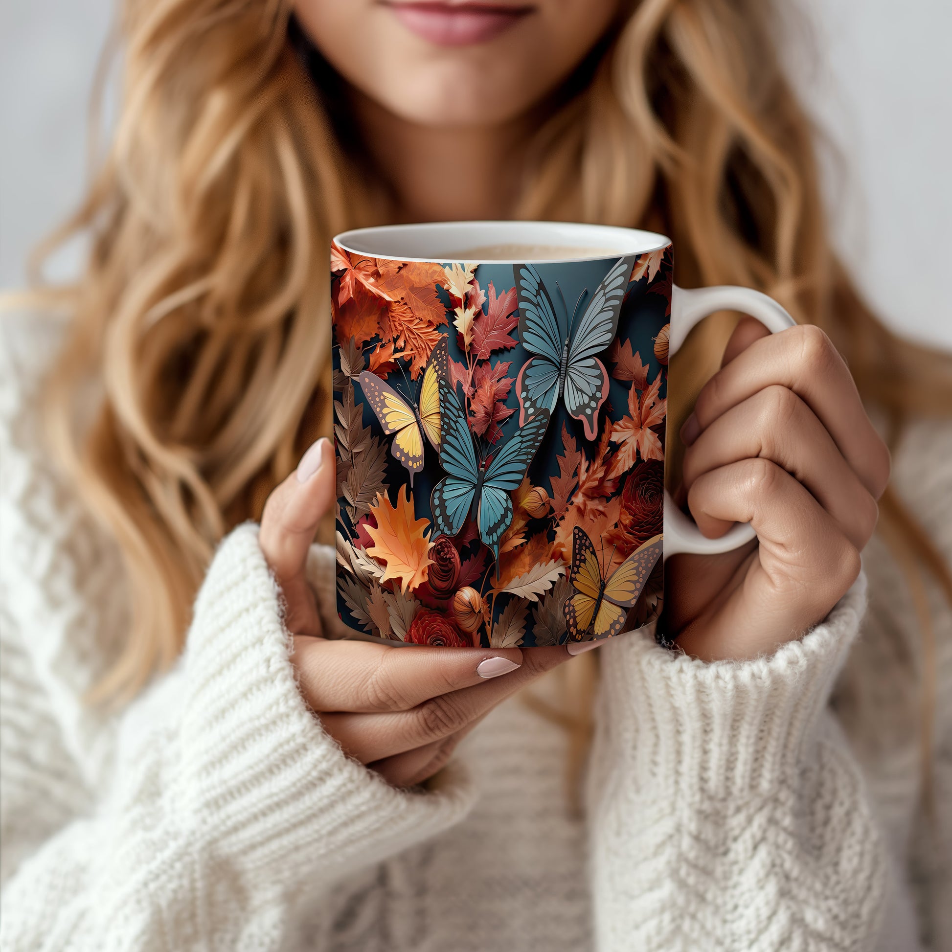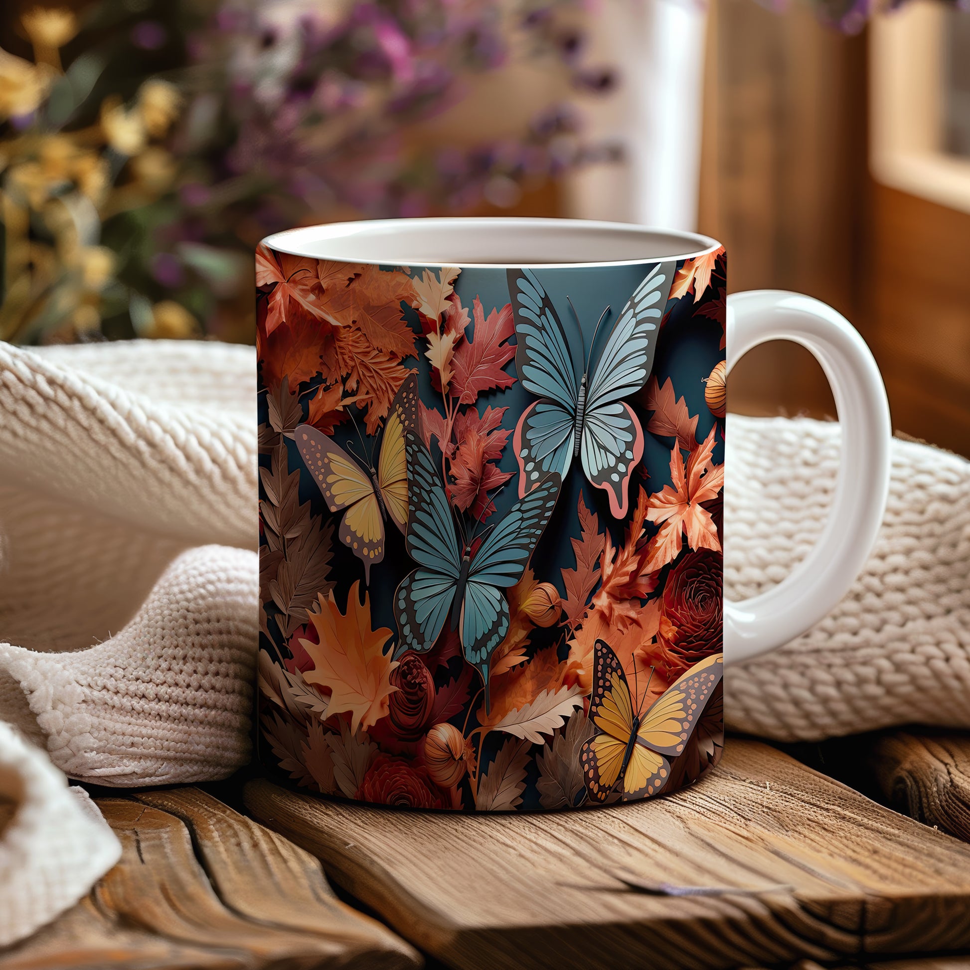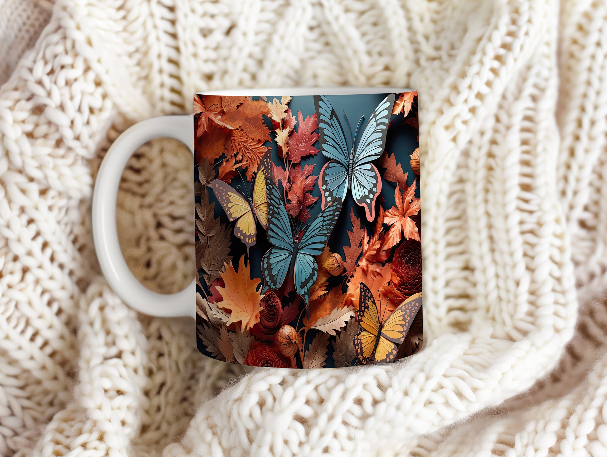 Elegantní hrnek s motivem modrých a žlutých motýlů na pozadí podzimních listů. Tento stylový kousek je ideální pro milovníky přírody a skvělým dárkem pro přátele nebo rodinu. Materiál: keramika. Objem: 330 ml. Vhodné do myčky i mikrovlnky. Užívejte si své oblíbené nápoje s tímto hrnkem, který přináší příjemnou atmosféru do každého dne.