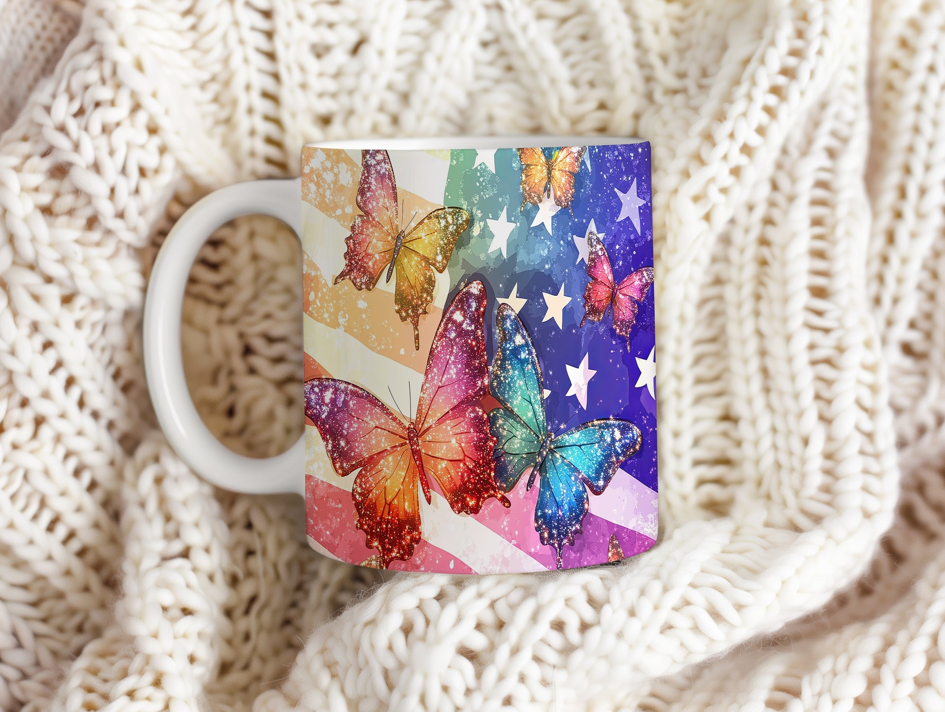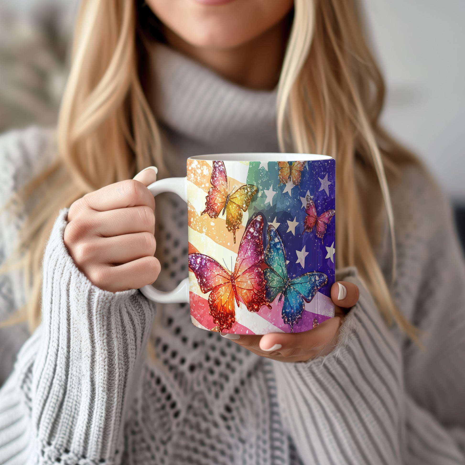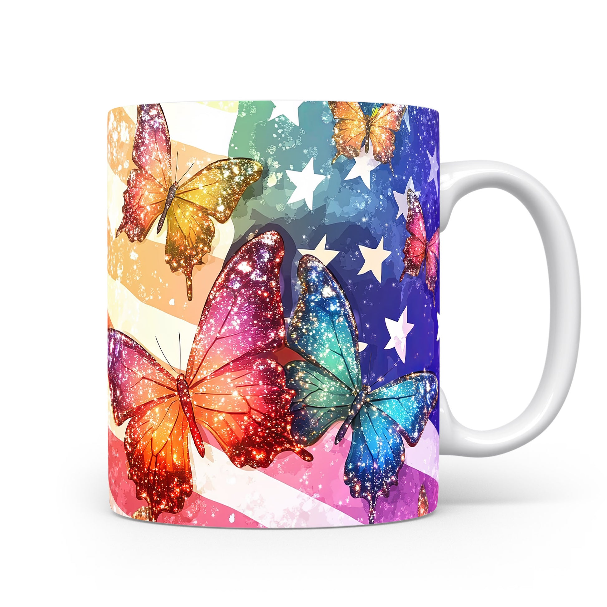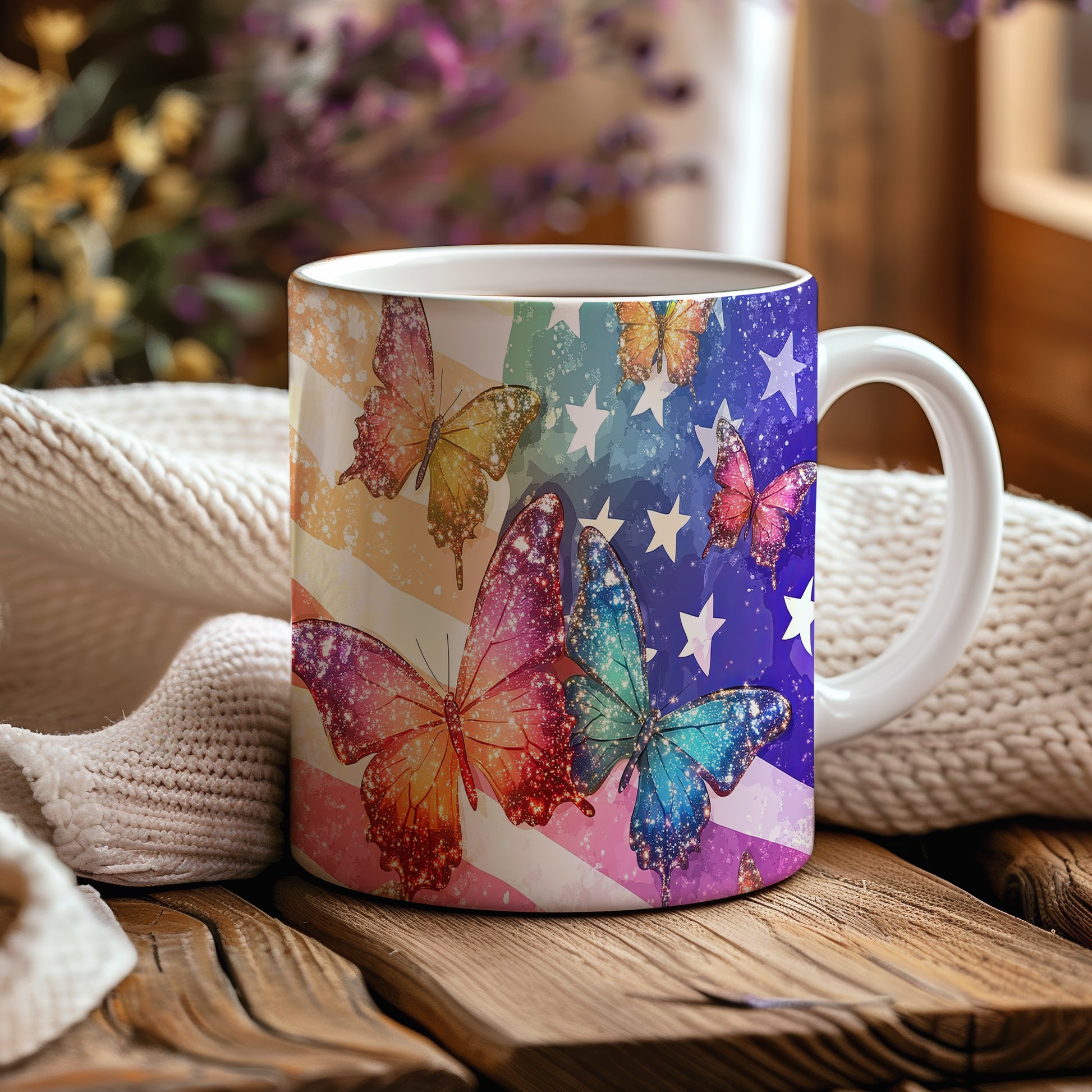 Hrnek s motivem barevných motýlů na veselém pozadí. Tento stylový kousek je ideální pro milovníky přírody a originálních designů, skvělý tip na dárek pro blízké. Materiál: keramika. Objem: 330 ml. Vhodné do myčky i mikrovlnky. Používání tohoto hrnku přináší radost z každého doušku.