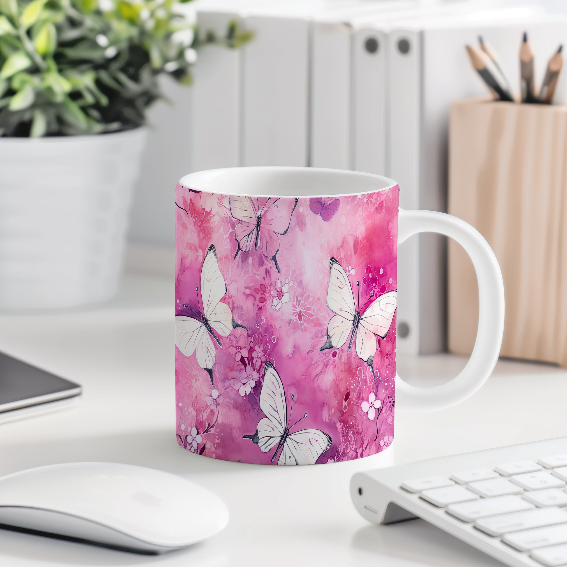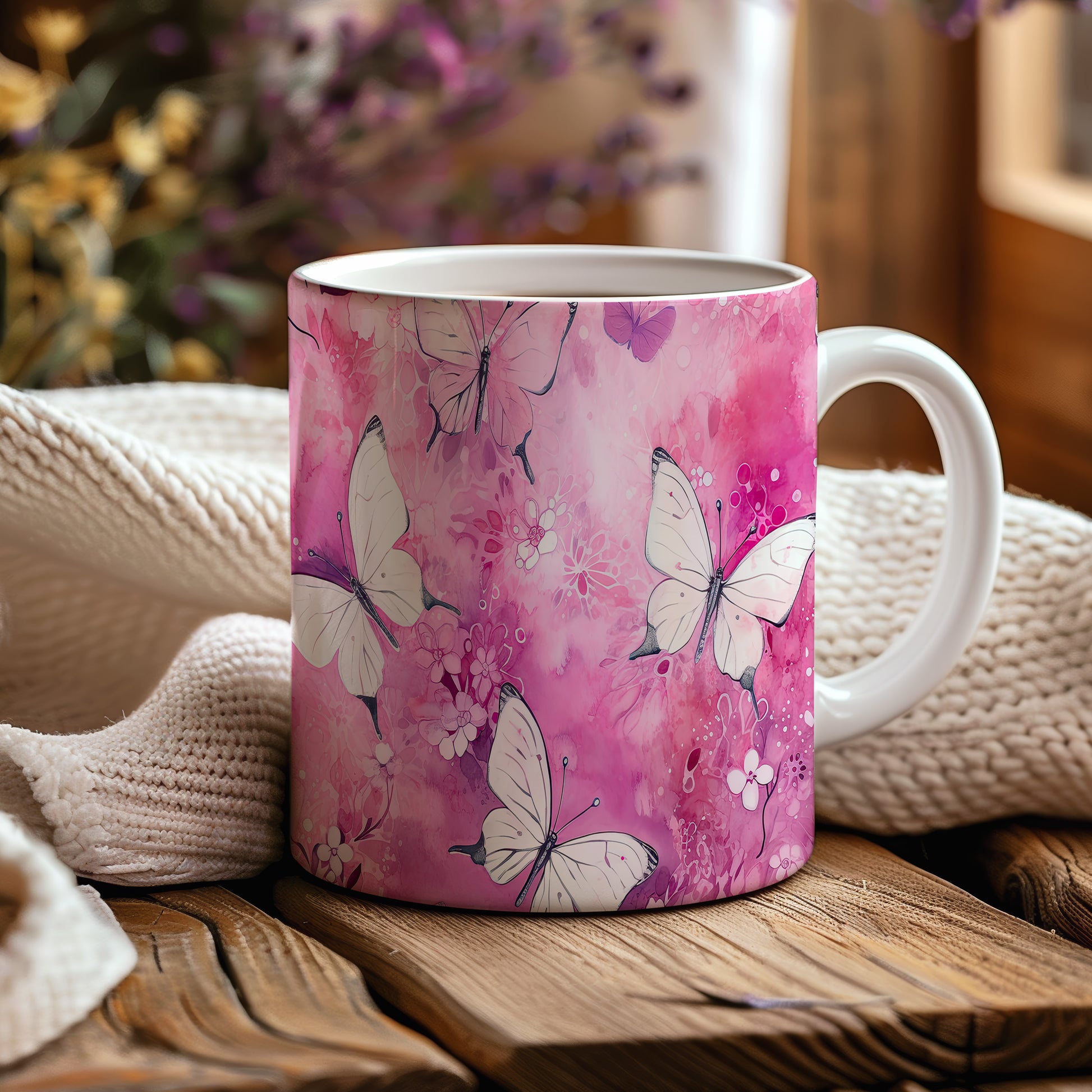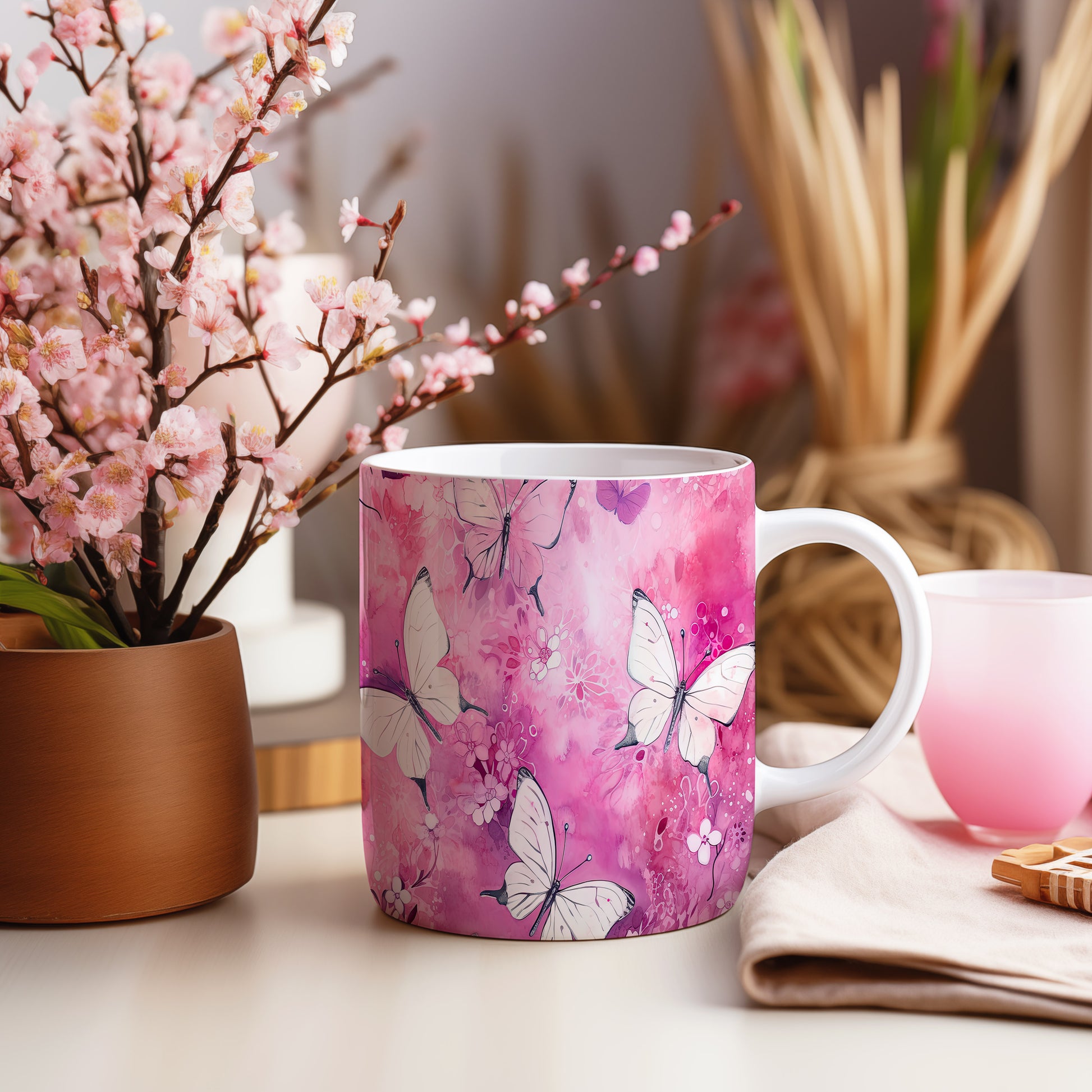 Tento hrnek s motýly na jemném růžovém pozadí přináší do vašeho dne radost a lehkost. Je ideální pro milovníky přírody a skvělým dárkem pro přátele či rodinu. Materiál: keramika. Objem: 330 ml. Vhodné do myčky i mikrovlnky. Užívejte si svůj oblíbený nápoj s tímto stylovým hrnkem.