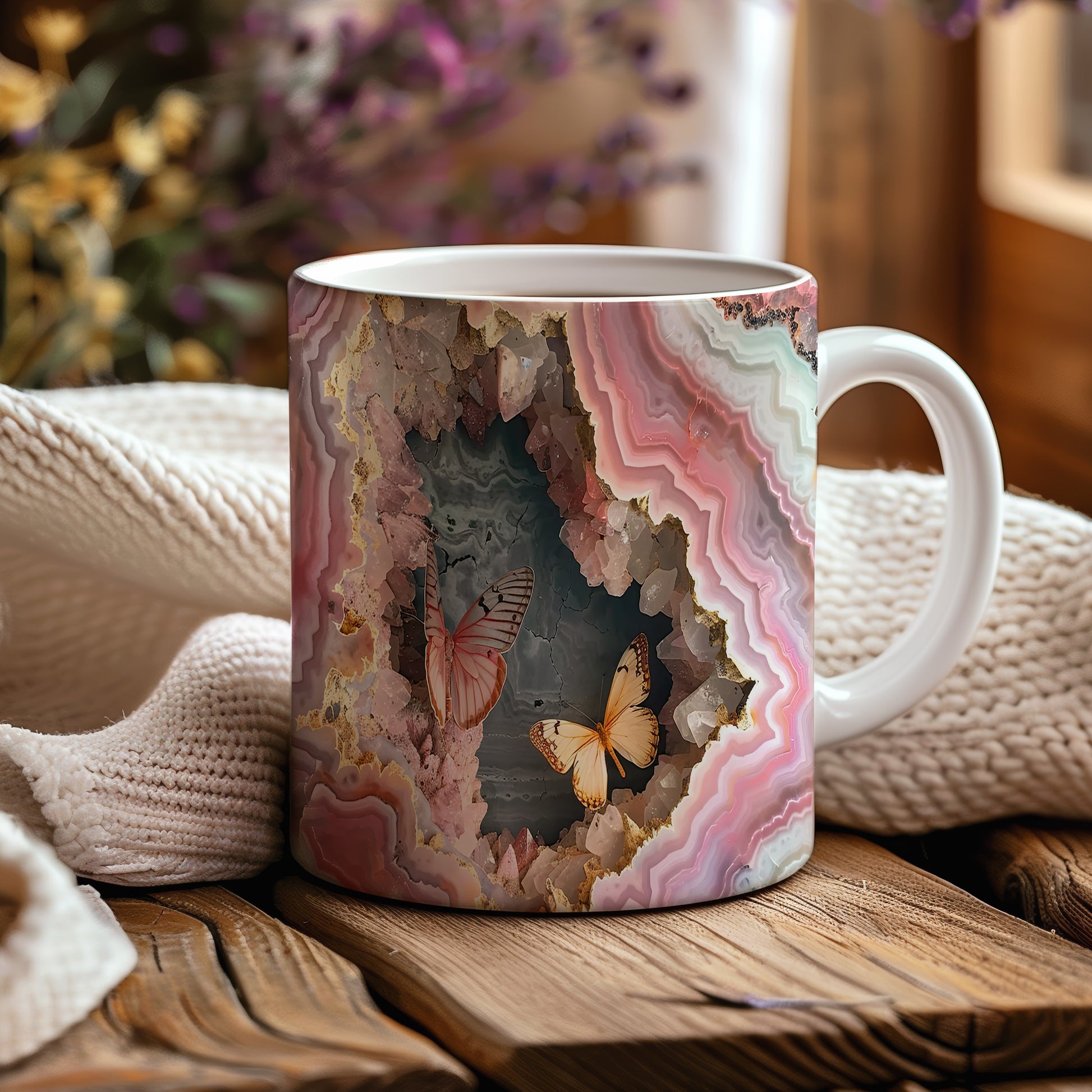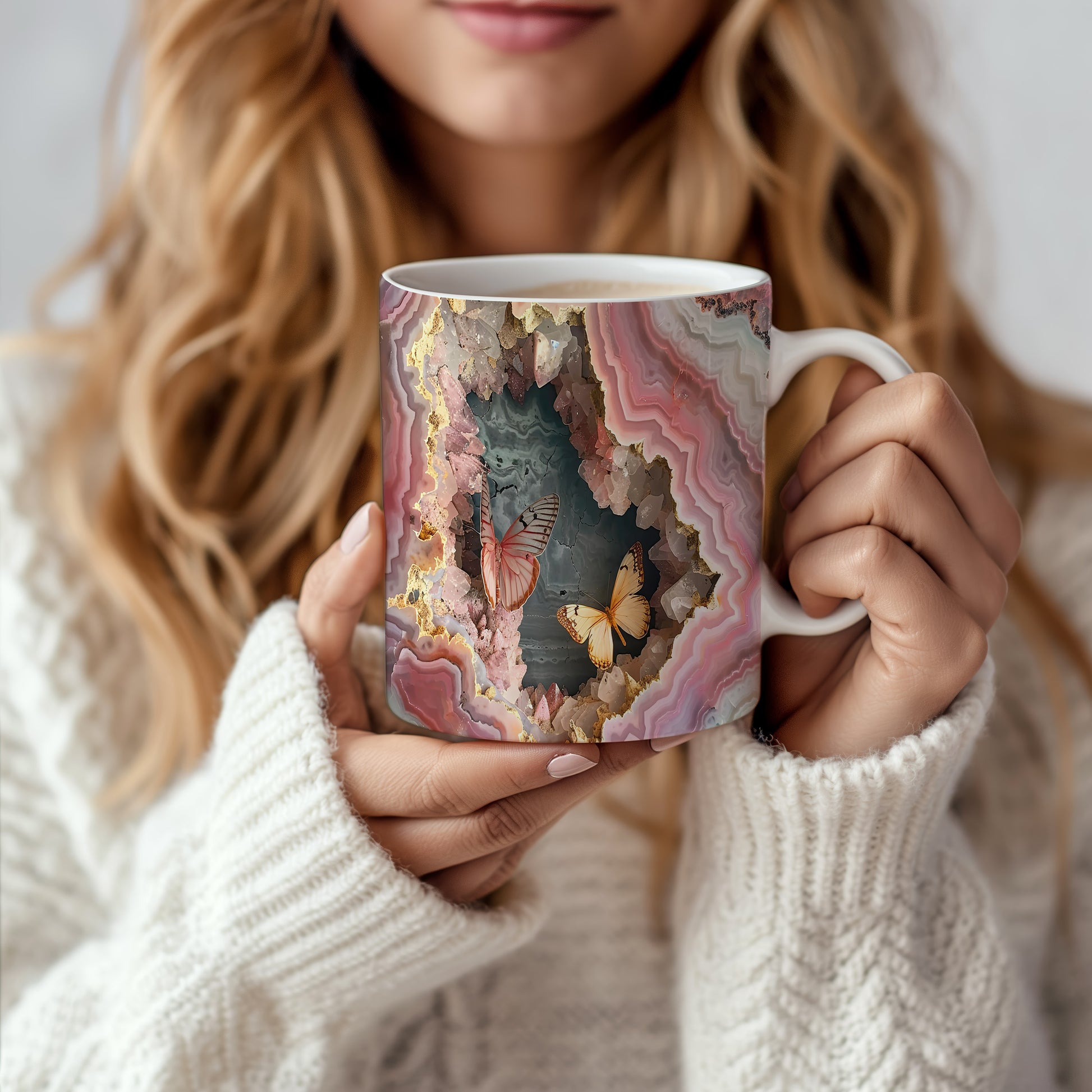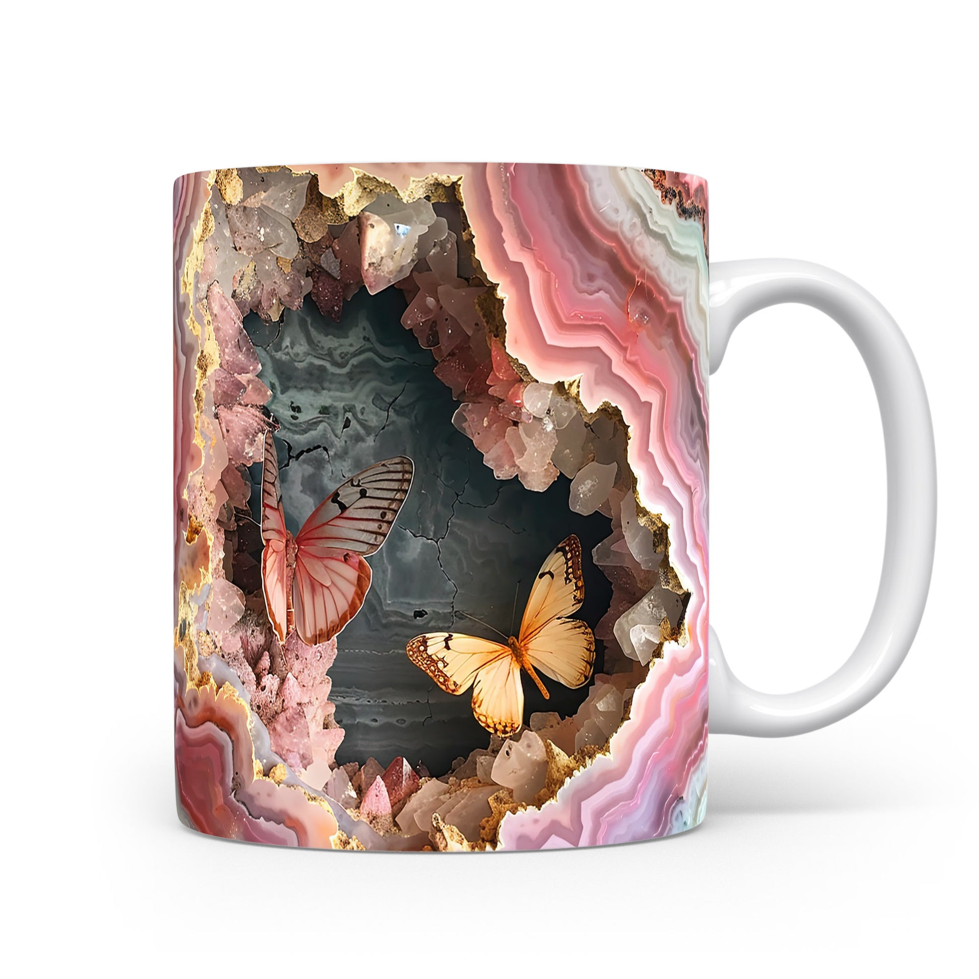 Tento hrnek s motivem motýlů v krystalové jeskyni přináší do vaší kuchyně přírodní krásu a eleganci. Je ideální pro milovníky přírody a skvělým dárkem pro každého, kdo ocení jedinečné designy. Materiál: keramika. Objem: 330 ml. Vhodné do myčky i mikrovlnky. Používání tohoto hrnku dodá vašemu pití osobitý styl a potěší vaše smysly.