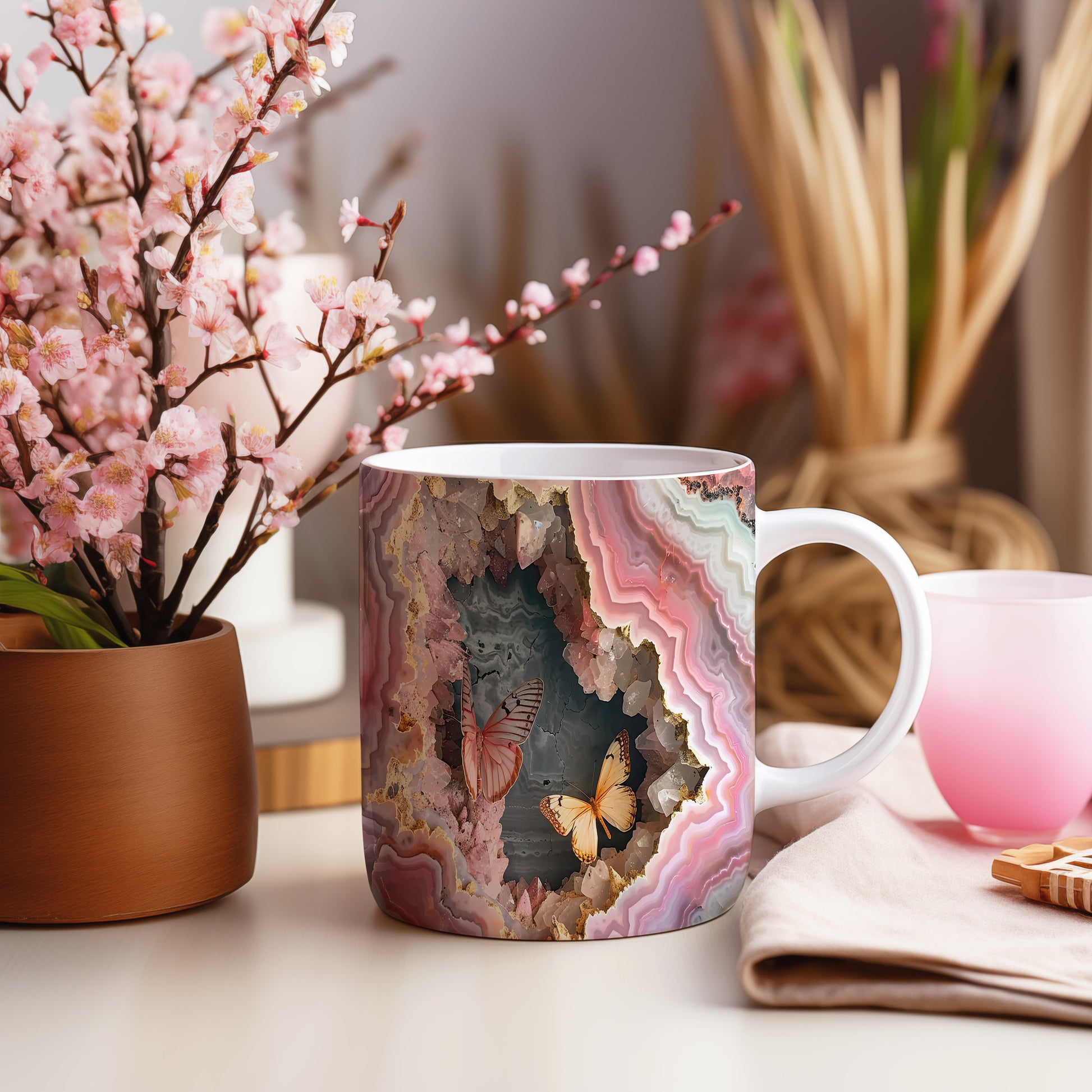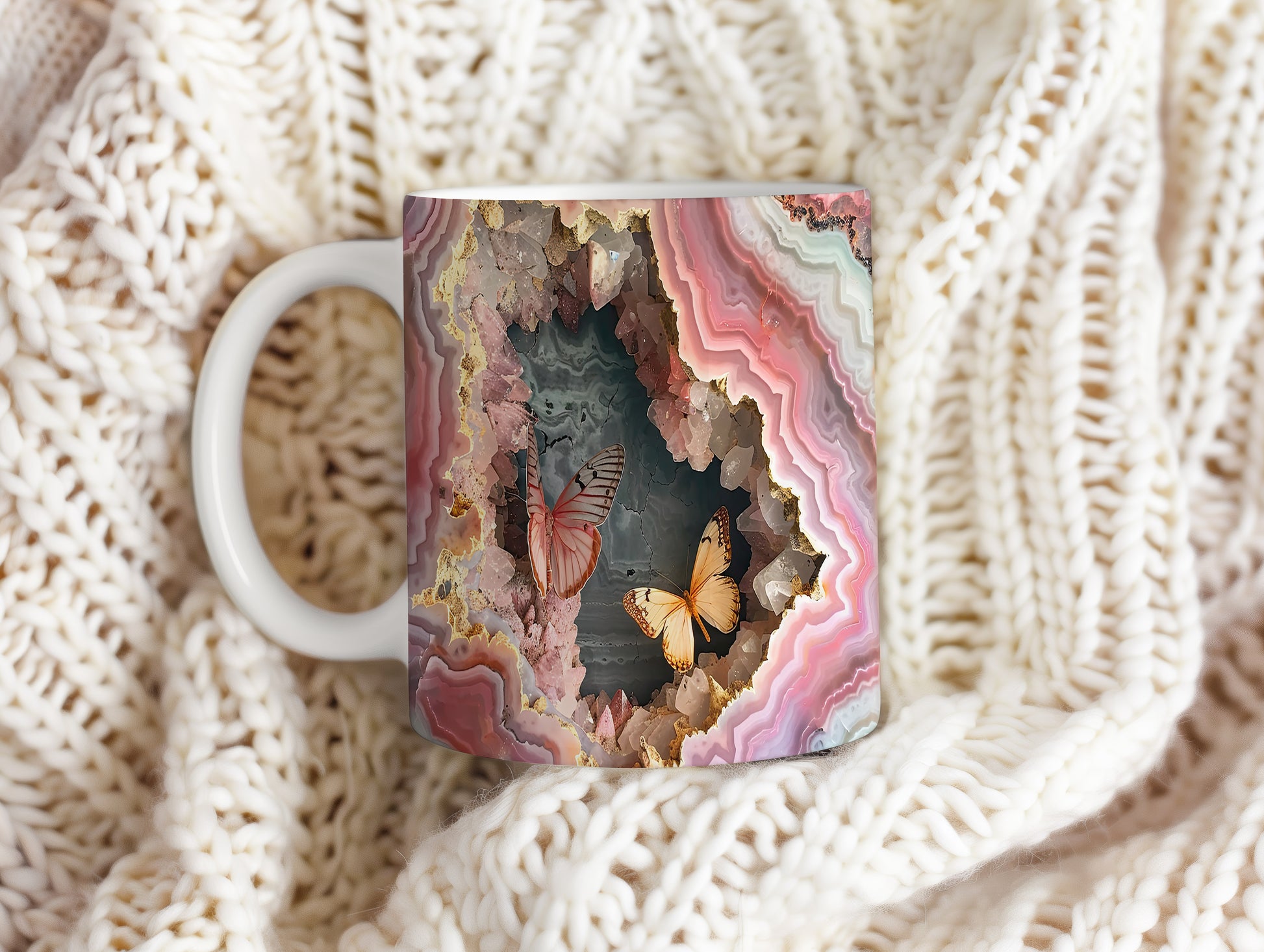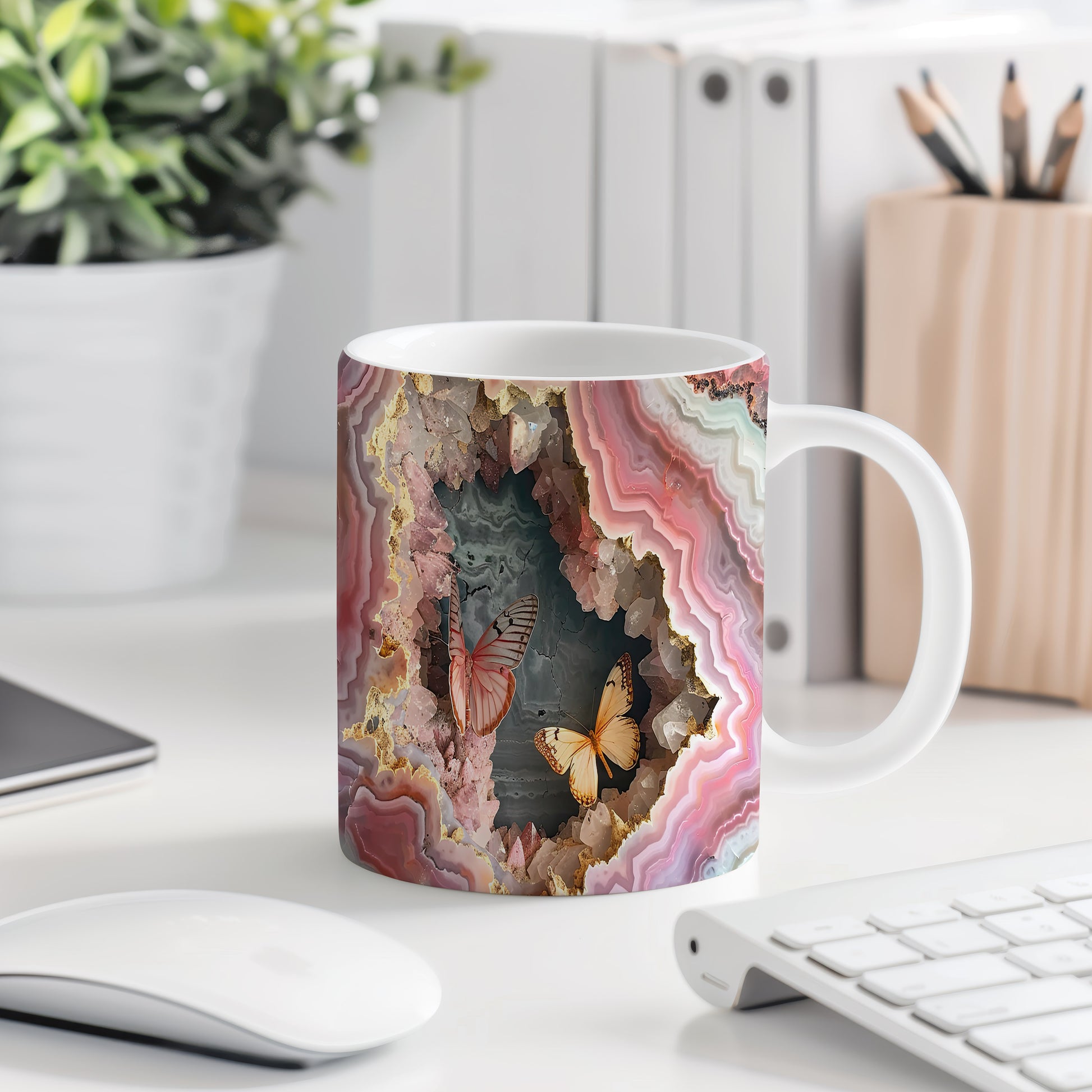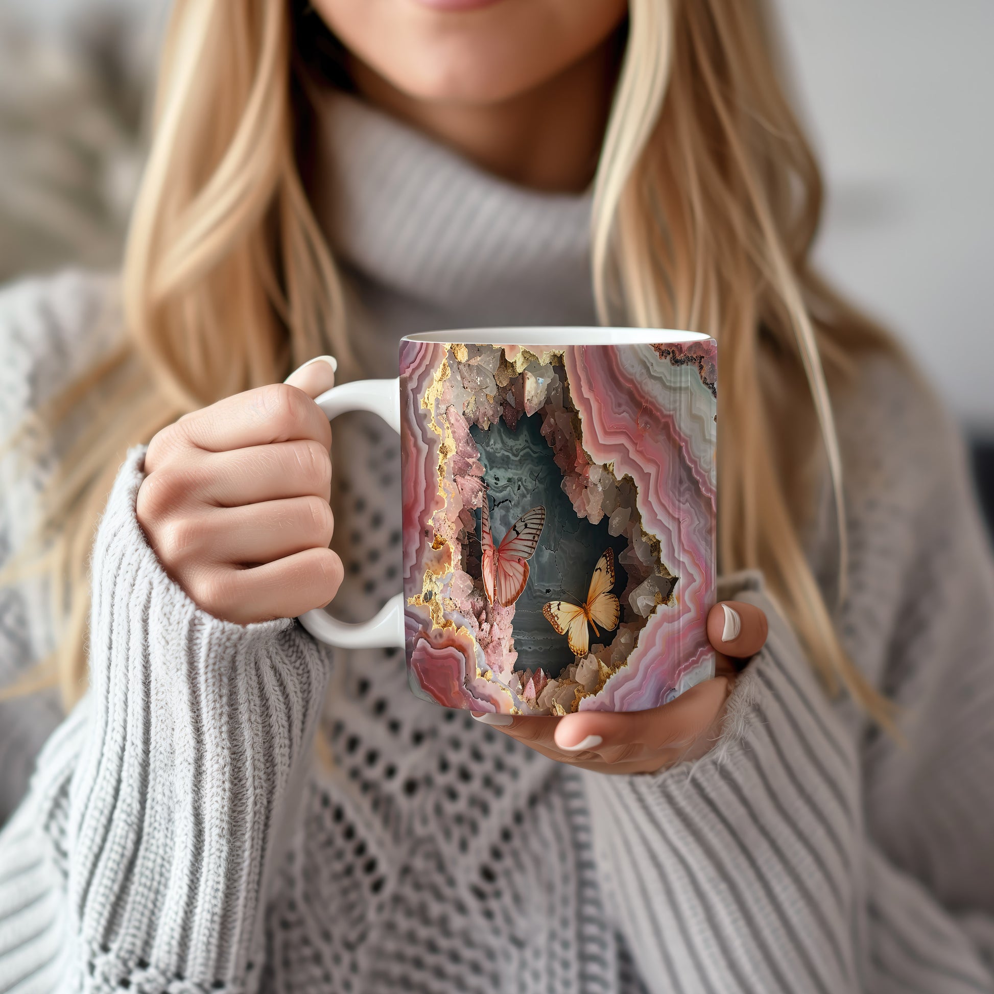 Tento hrnek s motivem motýlů v krystalové jeskyni přináší do vaší kuchyně přírodní krásu a eleganci. Je ideální pro milovníky přírody a skvělým dárkem pro každého, kdo ocení jedinečné designy. Materiál: keramika. Objem: 330 ml. Vhodné do myčky i mikrovlnky. Používání tohoto hrnku dodá vašemu pití osobitý styl a potěší vaše smysly.