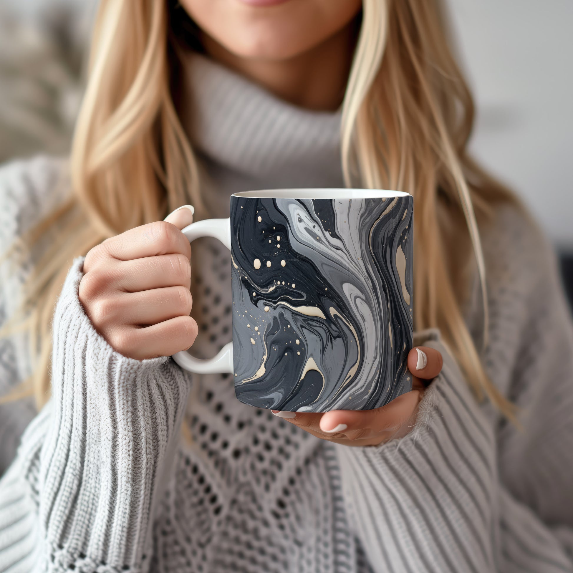 Tento hrnek s mramorováním v černé a bílé barvě přináší elegantní a moderní styl. Je ideální pro milovníky minimalistického designu a skvělým dárkem pro přátele či rodinu. Materiál: keramika. Objem: 330 ml. Vhodné do myčky i mikrovlnky. Díky svému jedinečnému vzhledu přidá šmrnc každému stolu.