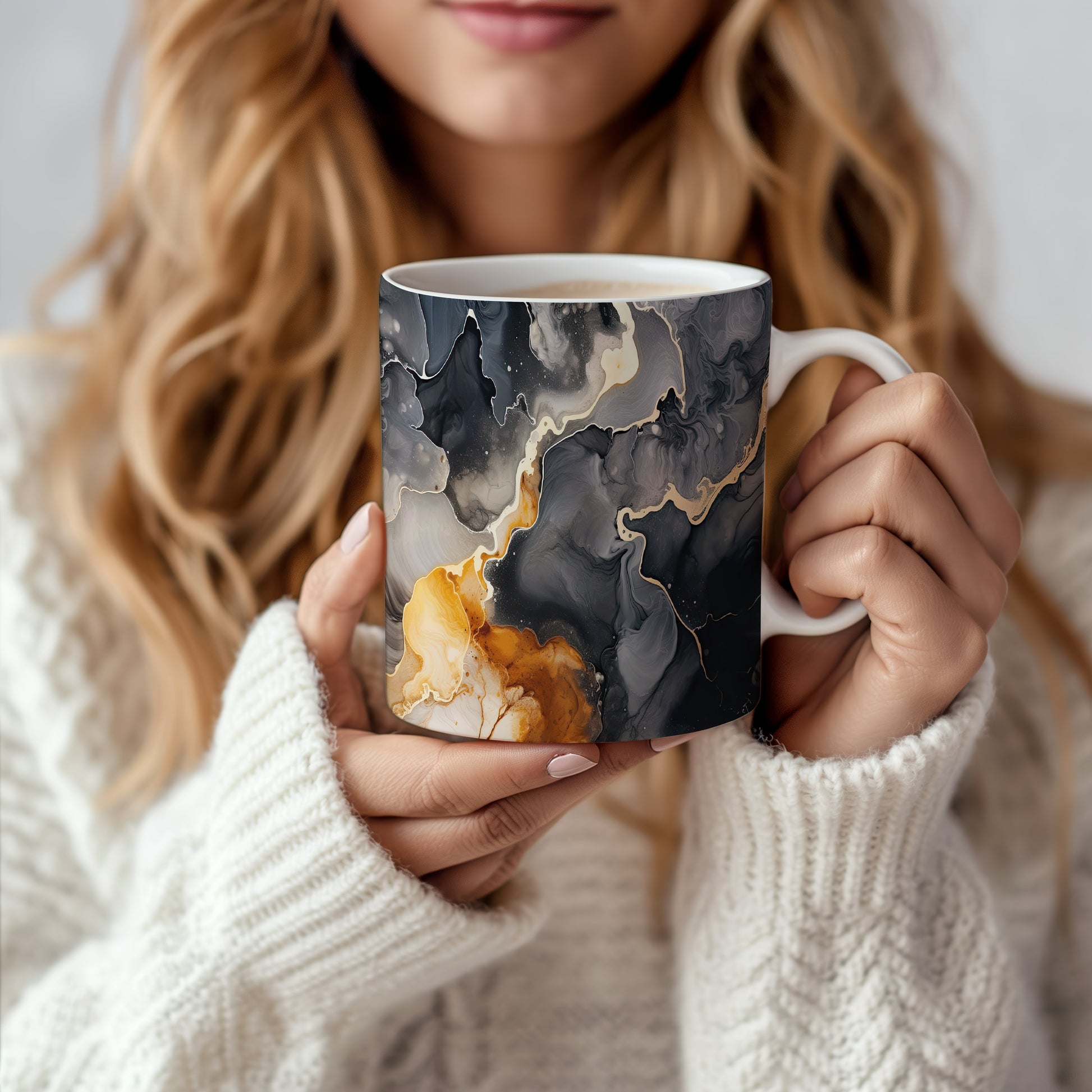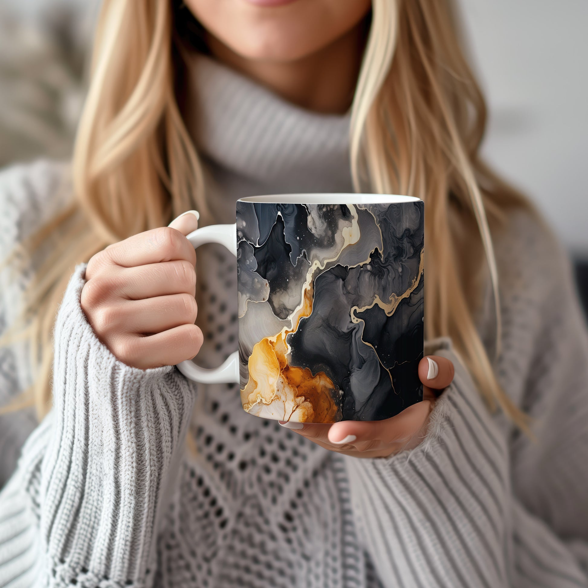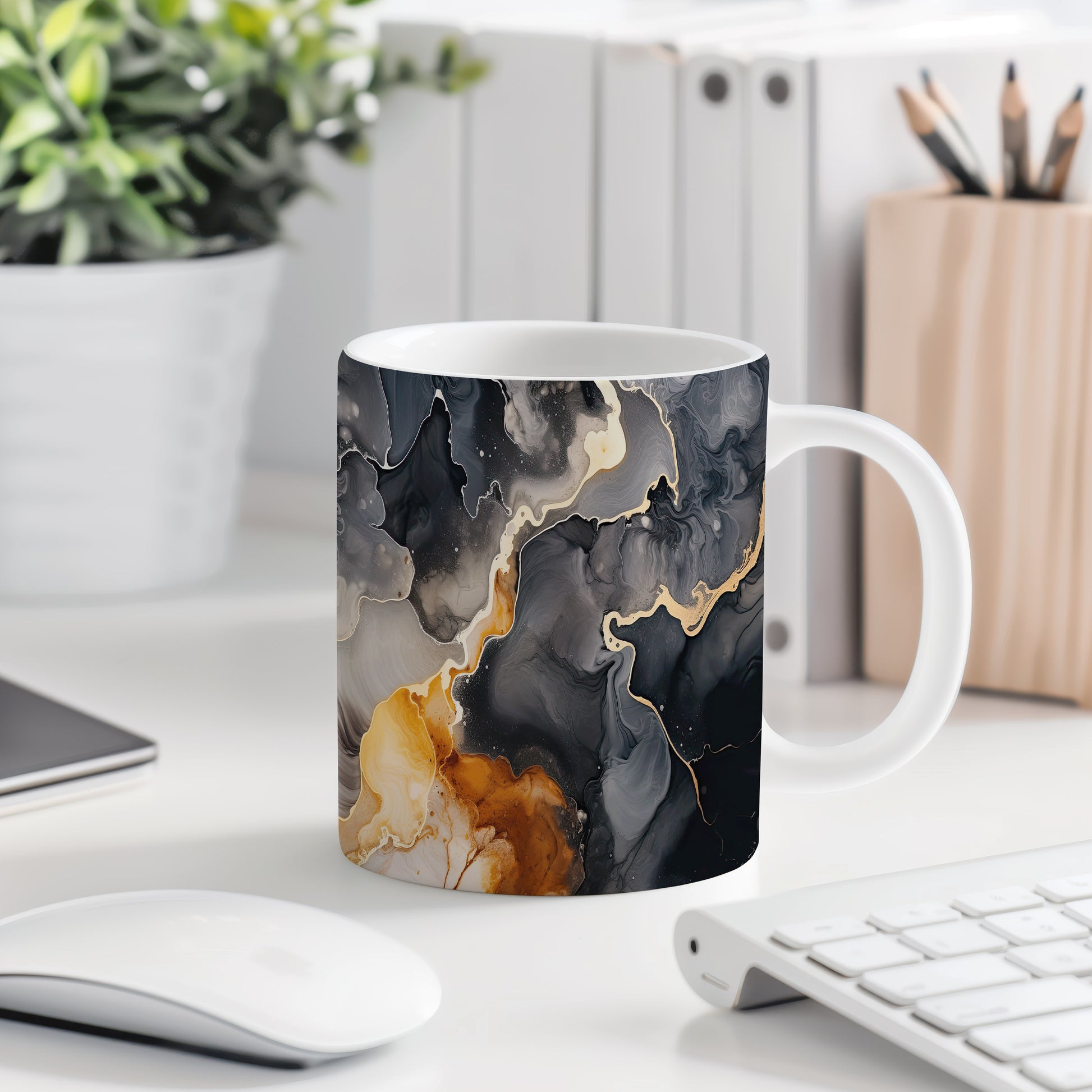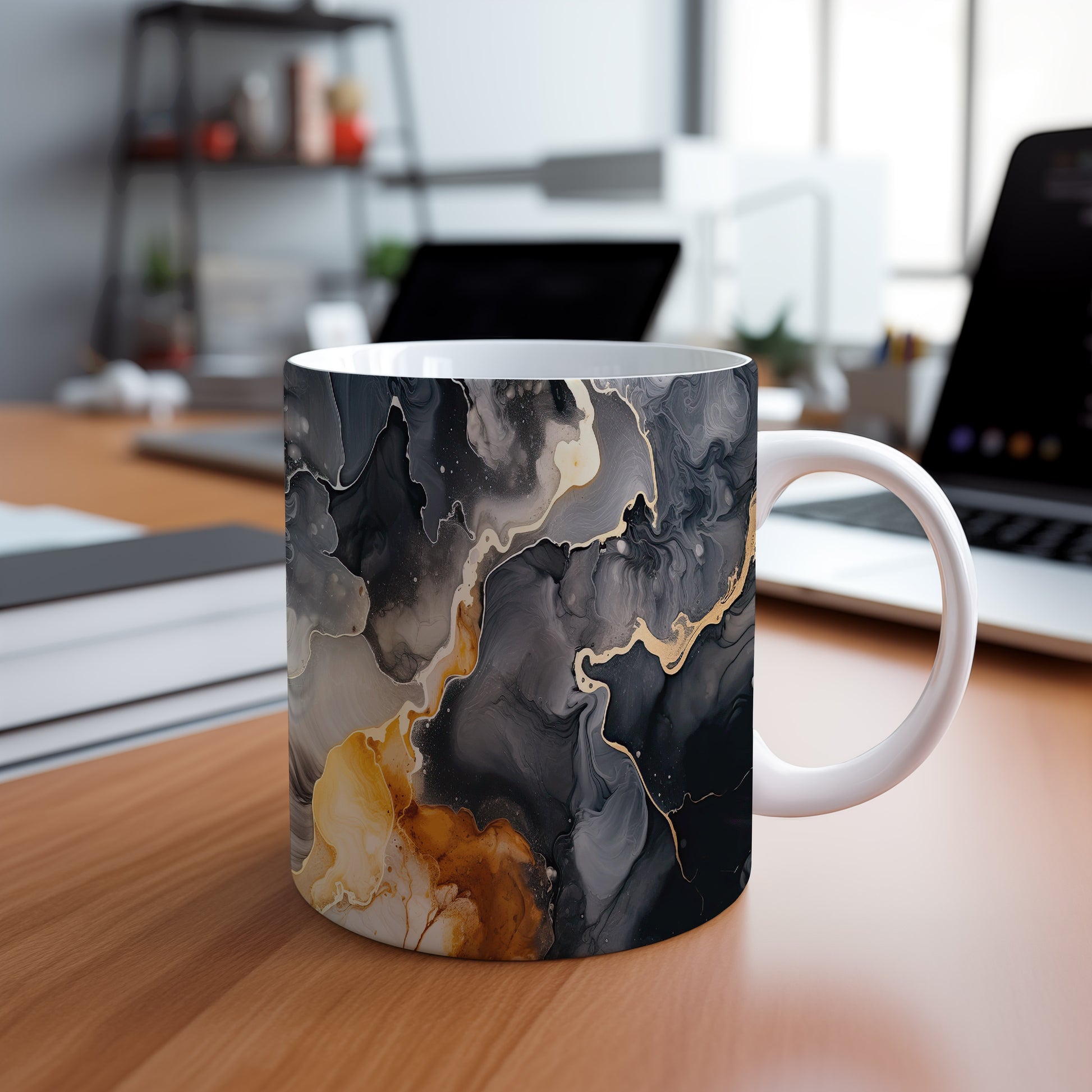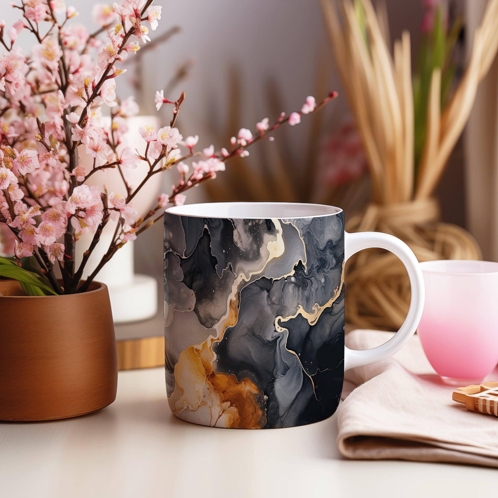 Tento hrnek s mramorováním v černé a zlaté barvě přináší elegantní a dynamický vzhled. Je ideální pro milovníky moderního designu a skvělým dárkem pro přátele či rodinu. Materiál: keramika. Objem: 330 ml. Vhodné do myčky i mikrovlnky. Díky svému stylovému provedení se stane ozdobou každého stolu.
