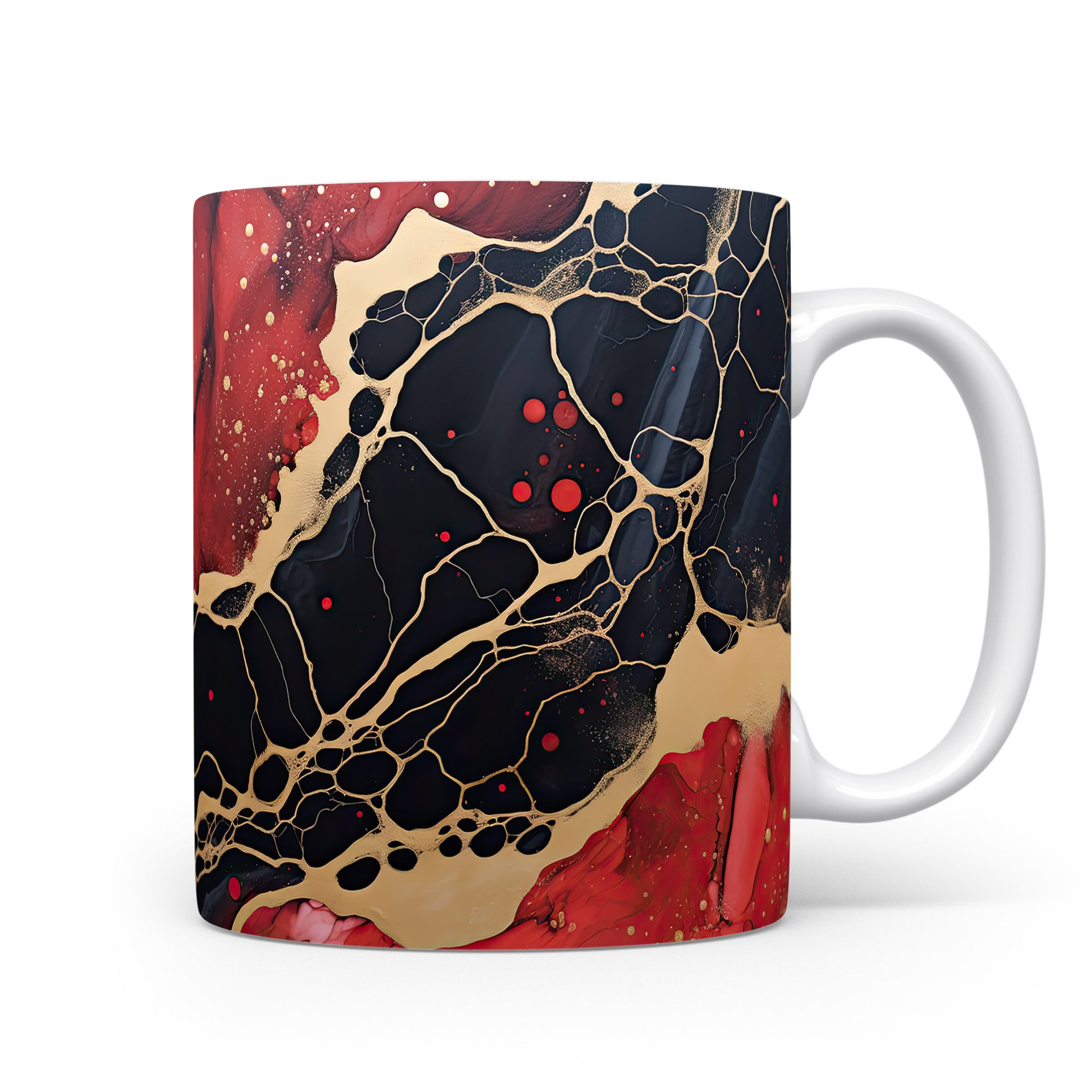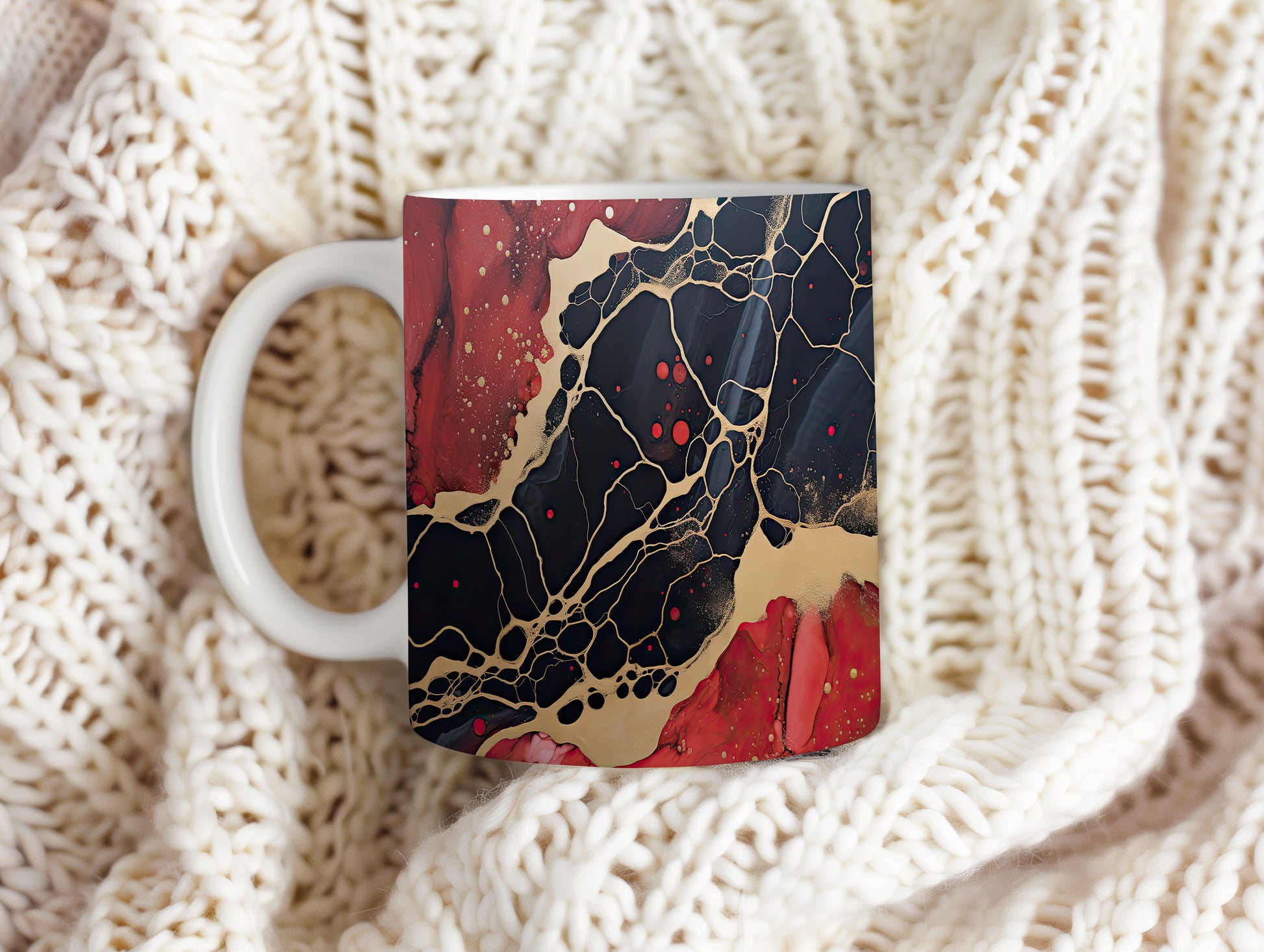Hrnek s mramorováním v černých a červených tónech