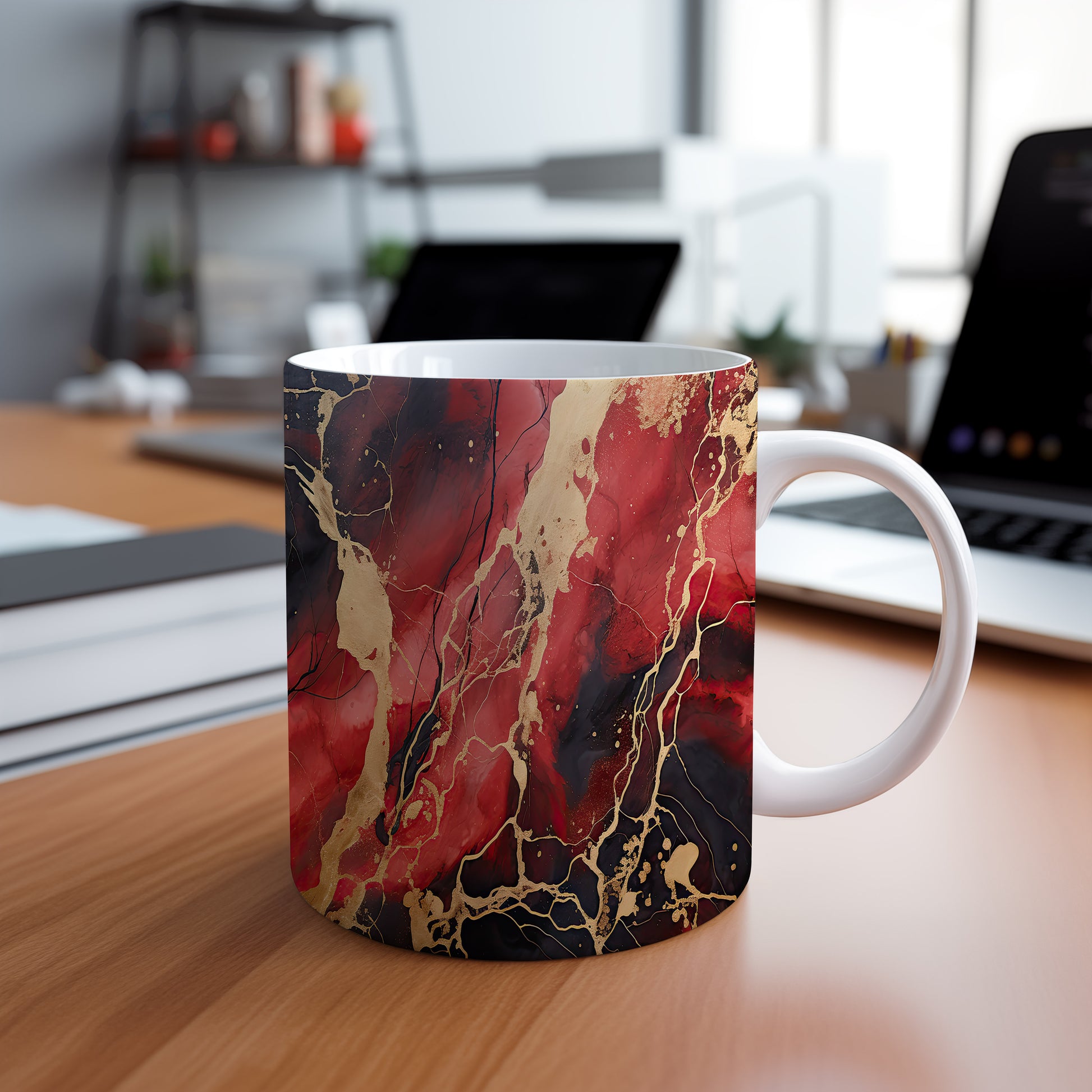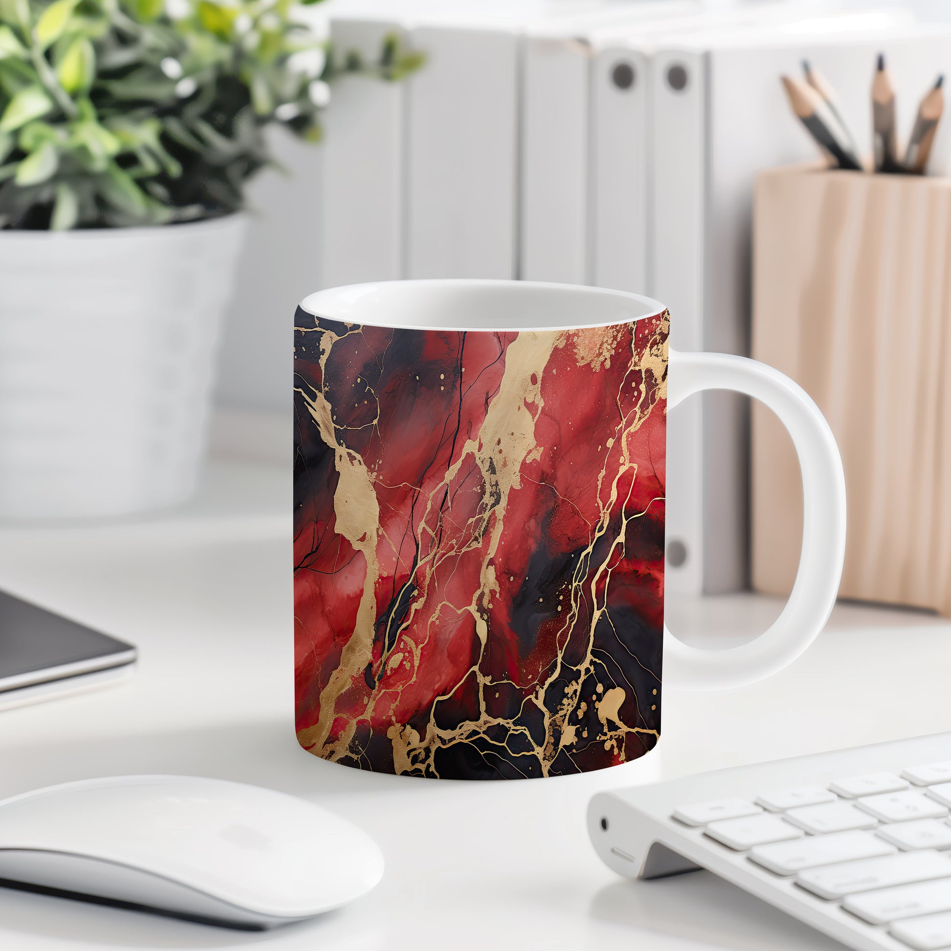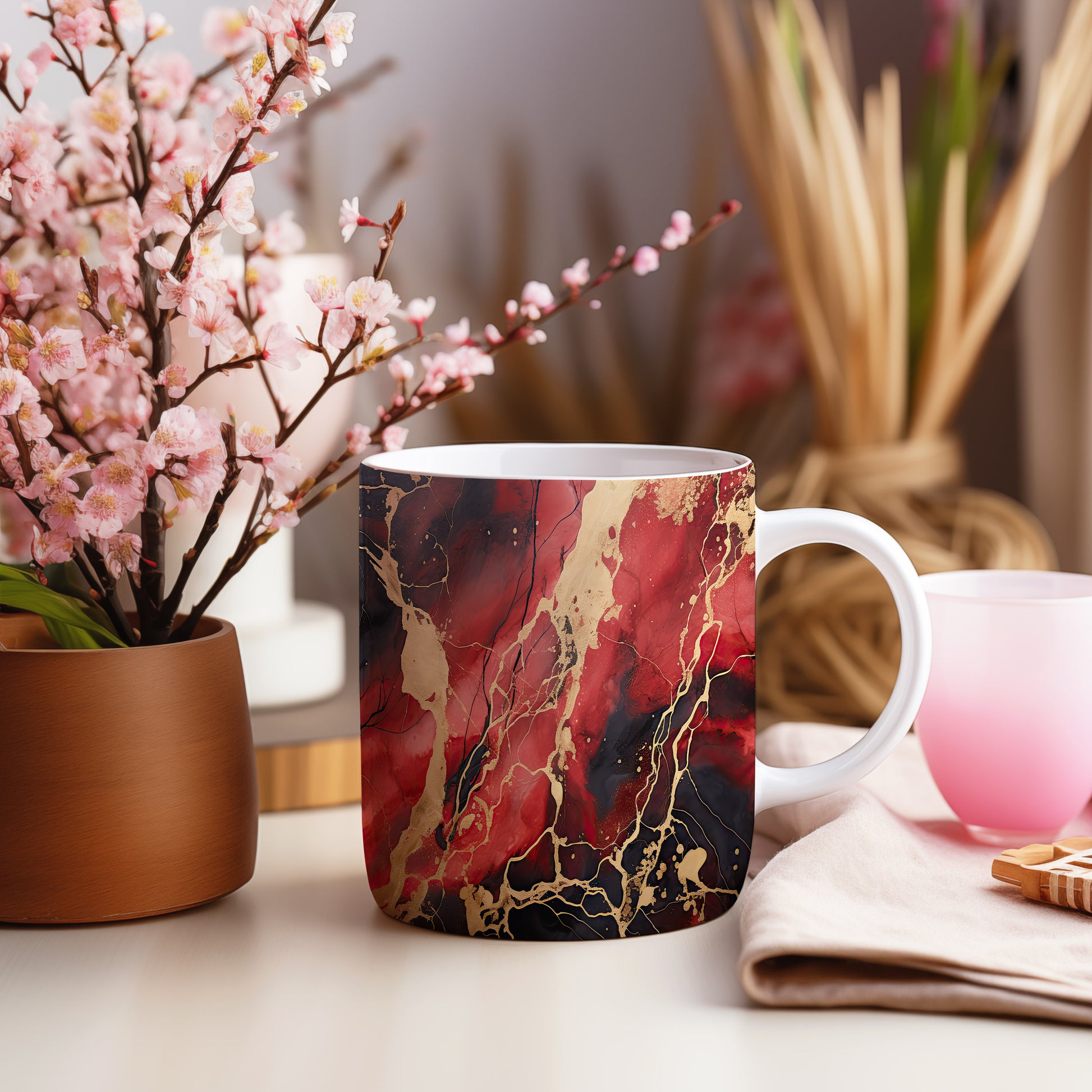 Tento hrnek s mramorováním v červených a zlatých tónech přináší elegantní a moderní vzhled. Je ideální pro milovníky stylového nádobí a skvělým dárkem pro přátele nebo rodinu. Materiál: keramika. Objem: 330 ml. Vhodné do myčky i mikrovlnky. Díky svému jedinečnému designu se stane ozdobou každého stolu.