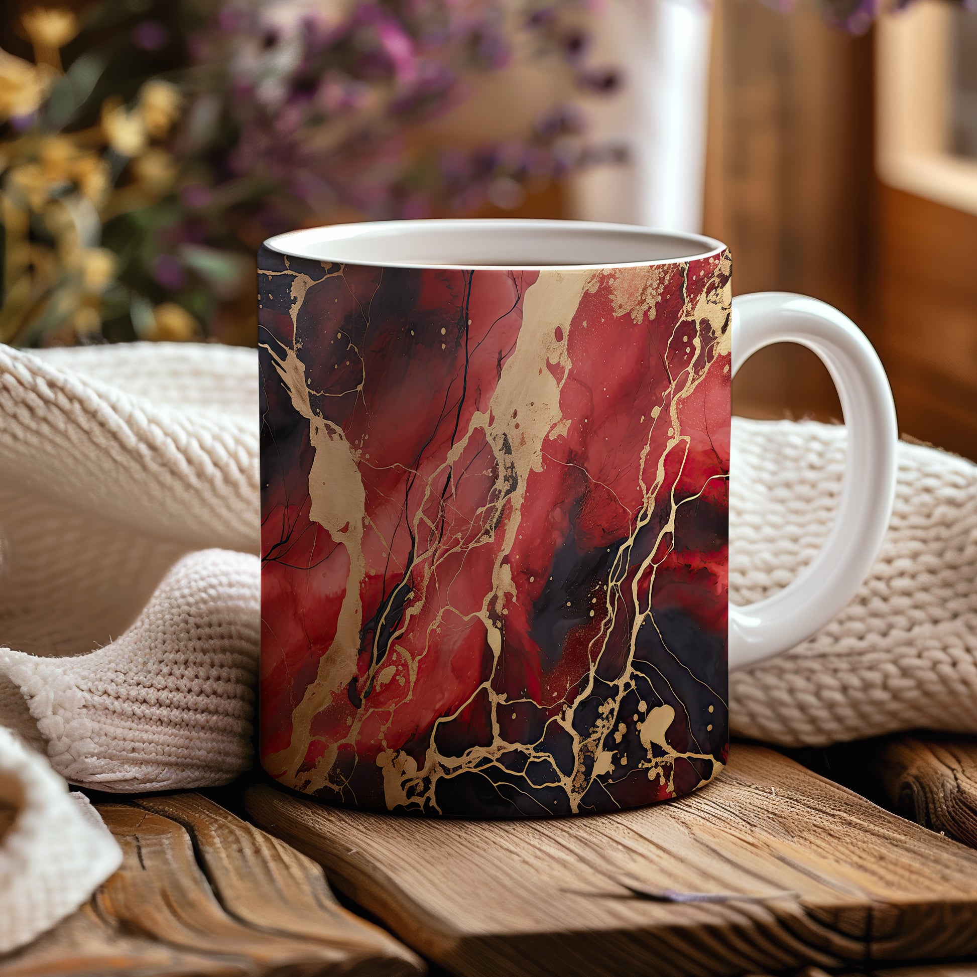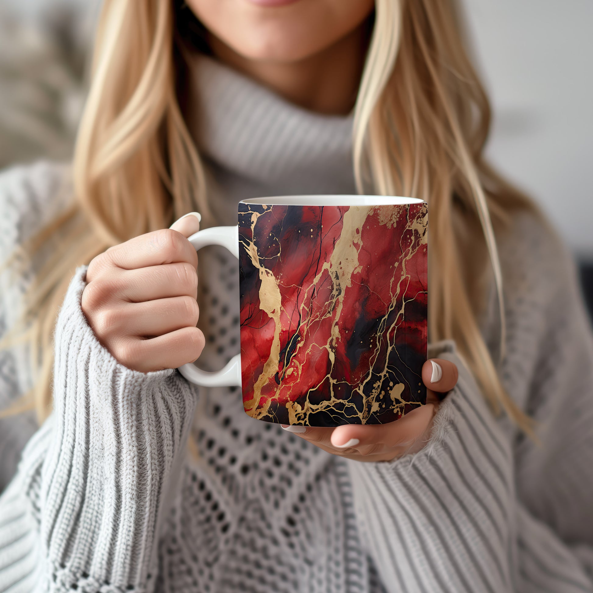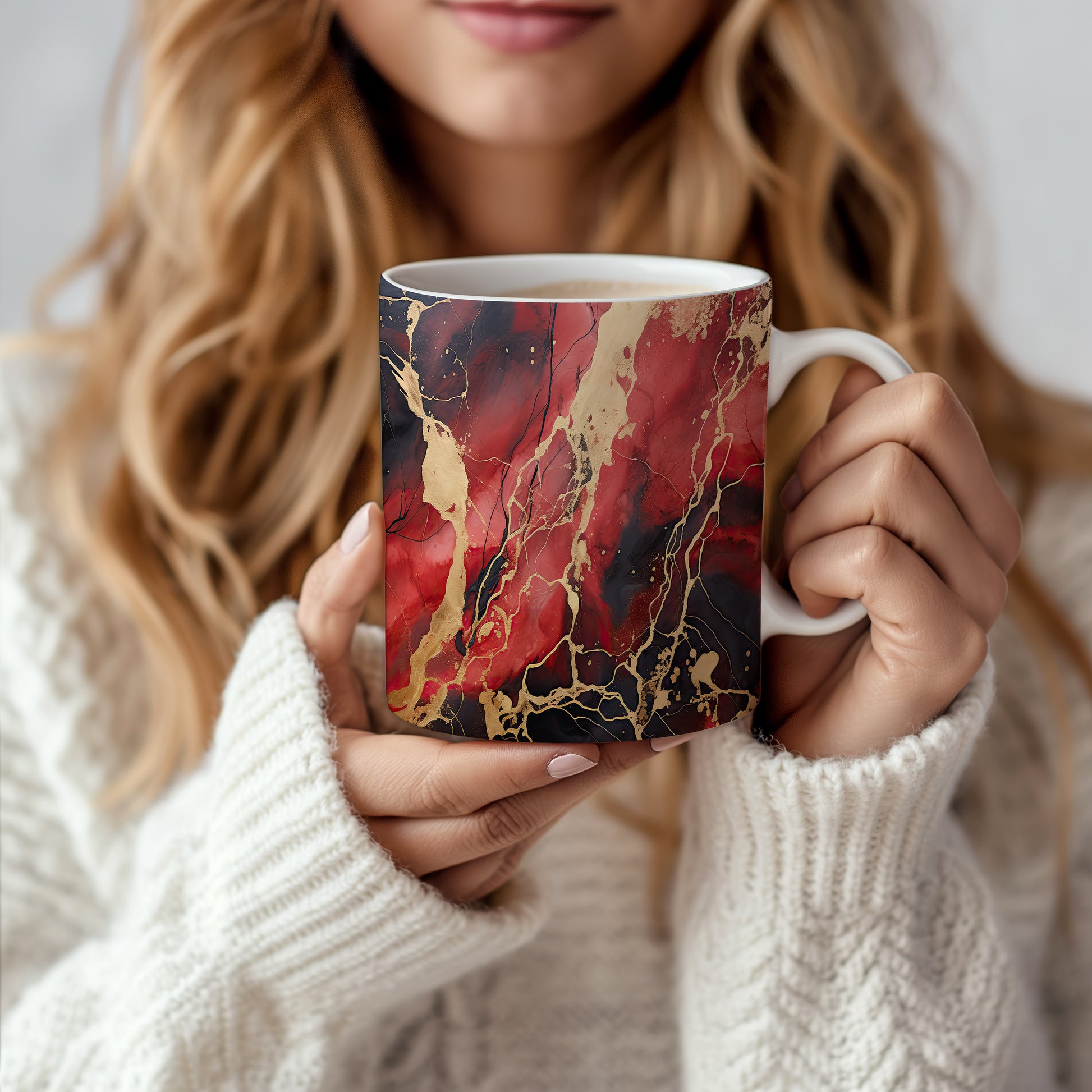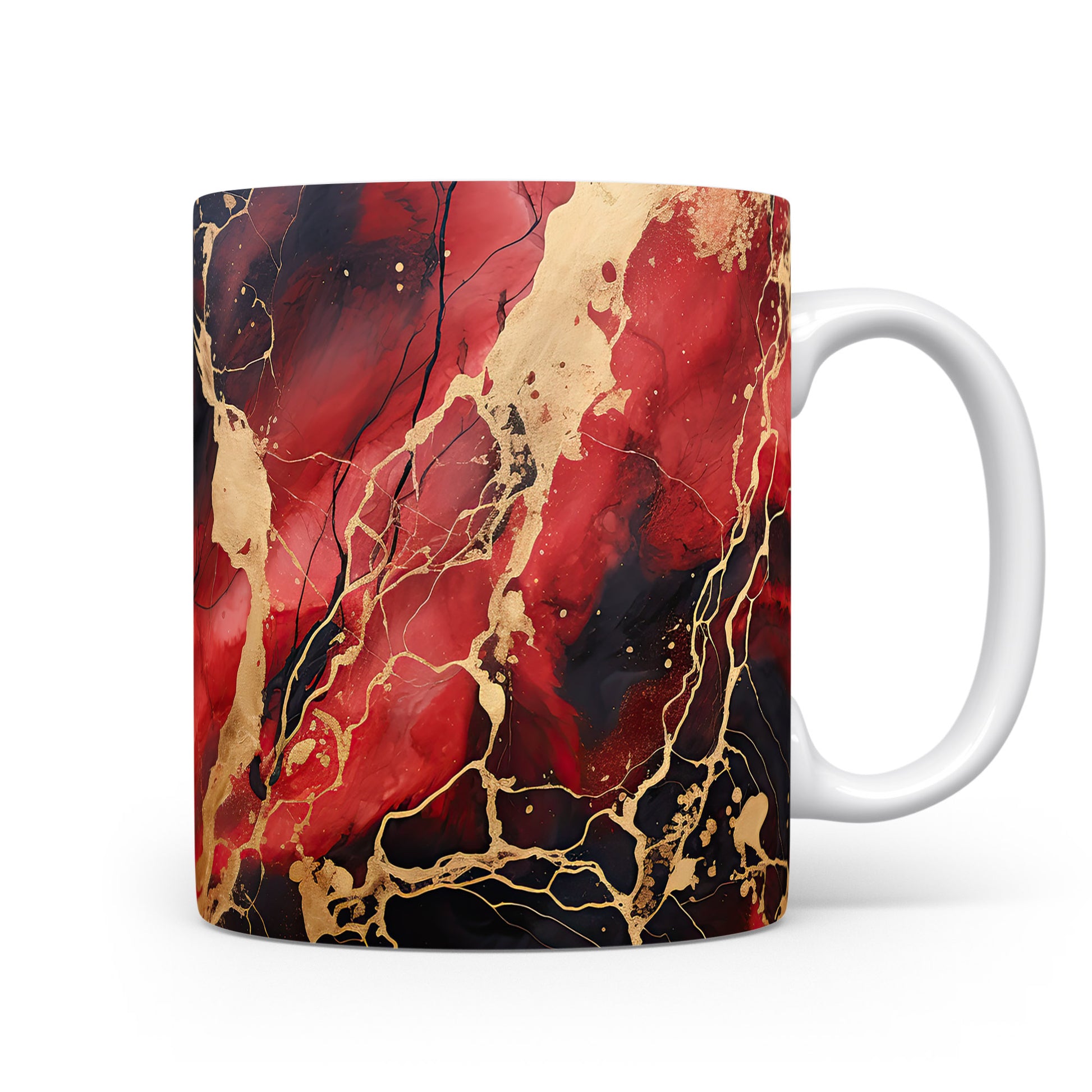 Tento hrnek s mramorováním v červených a zlatých tónech přináší elegantní a moderní vzhled. Je ideální pro milovníky stylového nádobí a skvělým dárkem pro přátele nebo rodinu. Materiál: keramika. Objem: 330 ml. Vhodné do myčky i mikrovlnky. Díky svému jedinečnému designu se stane ozdobou každého stolu.