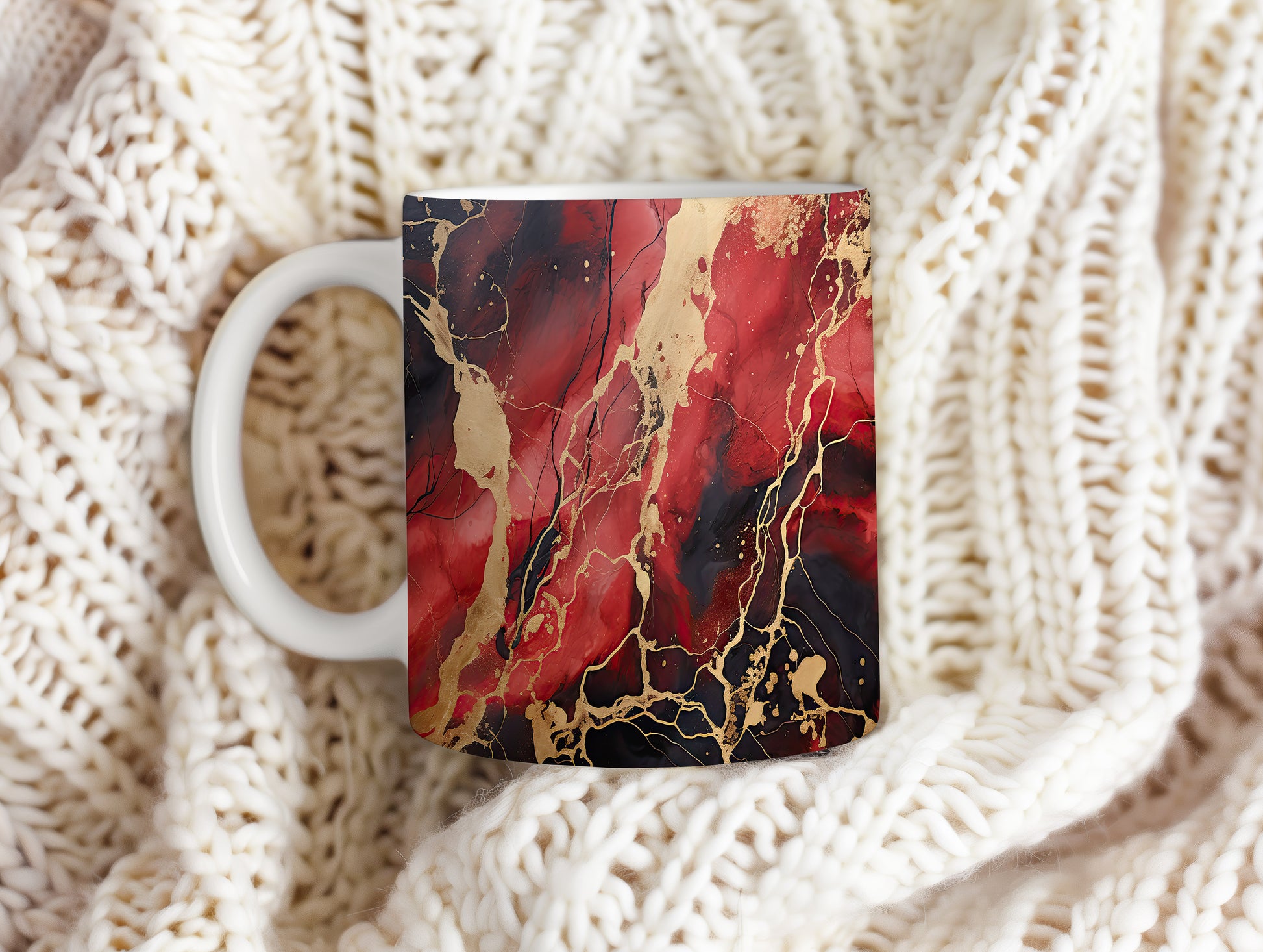 Hrnek s mramorováním v červených a zlatých tónech – originálním motivem