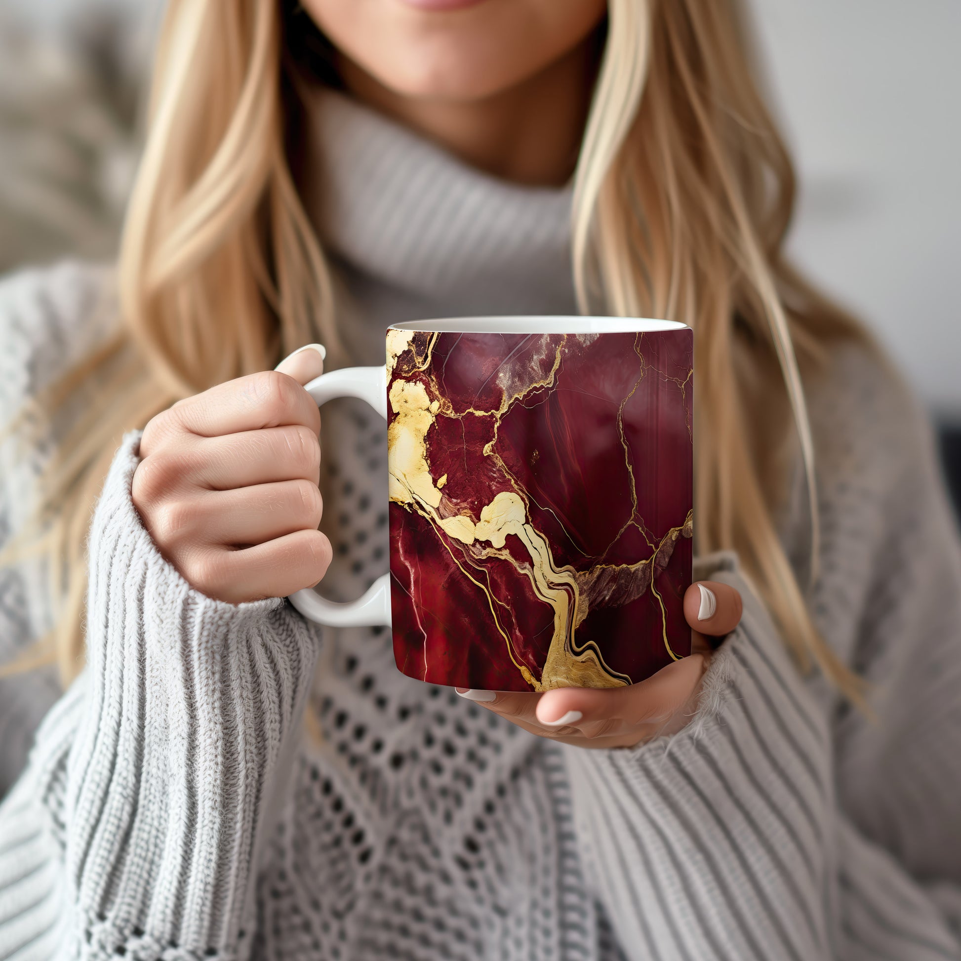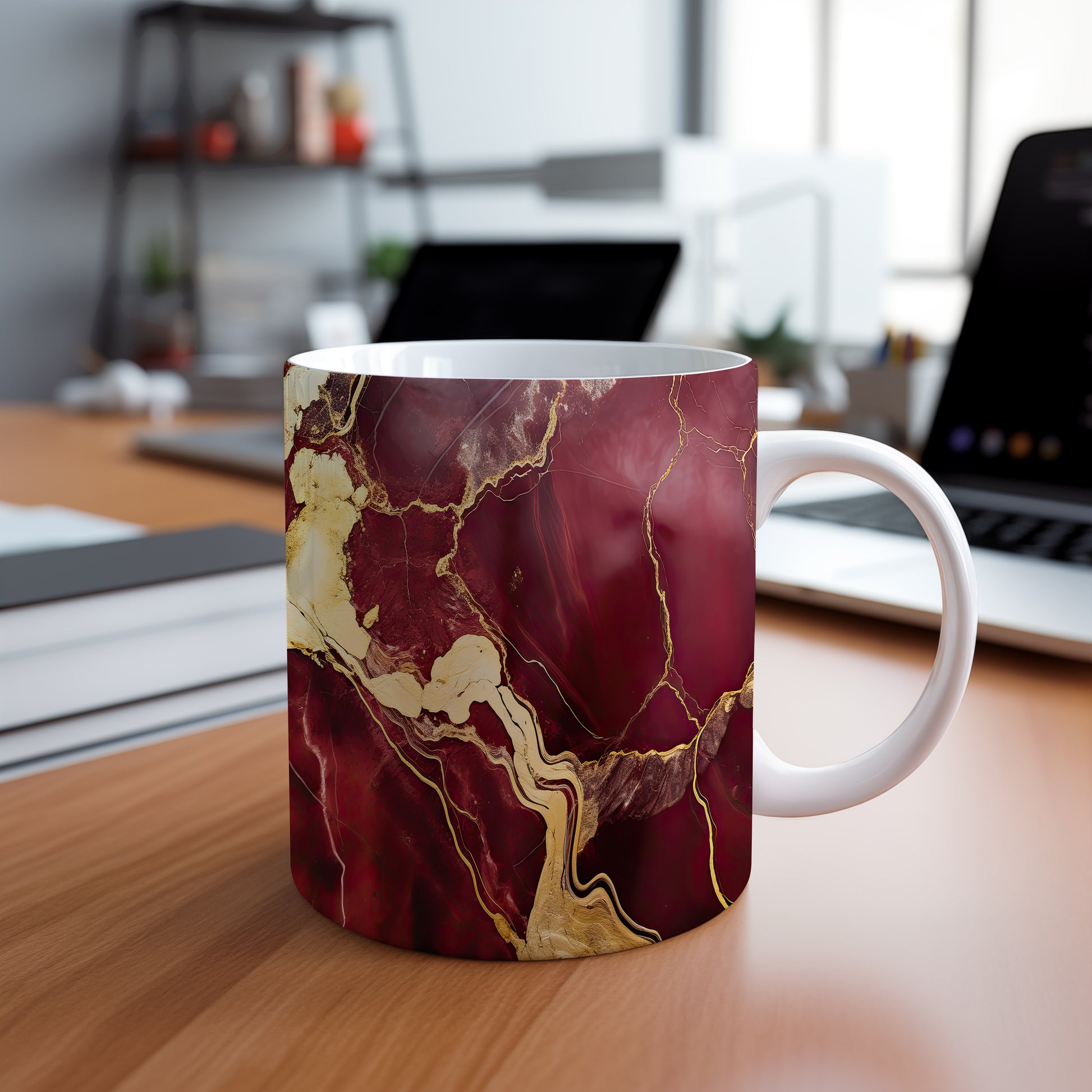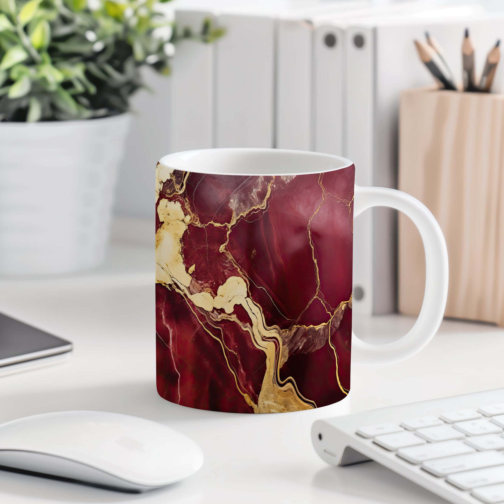 Hrnek s mramorovacím vzorem v červených a zlatých odstínech. Tento elegantní kousek je ideální pro každodenní použití nebo jako stylový dárek pro milovníky designu. Materiál: keramika. Objem: 330 ml. Vhodné do myčky i mikrovlnky. Díky svému jedinečnému vzhledu přinese do vašeho domova nádech luxusu.