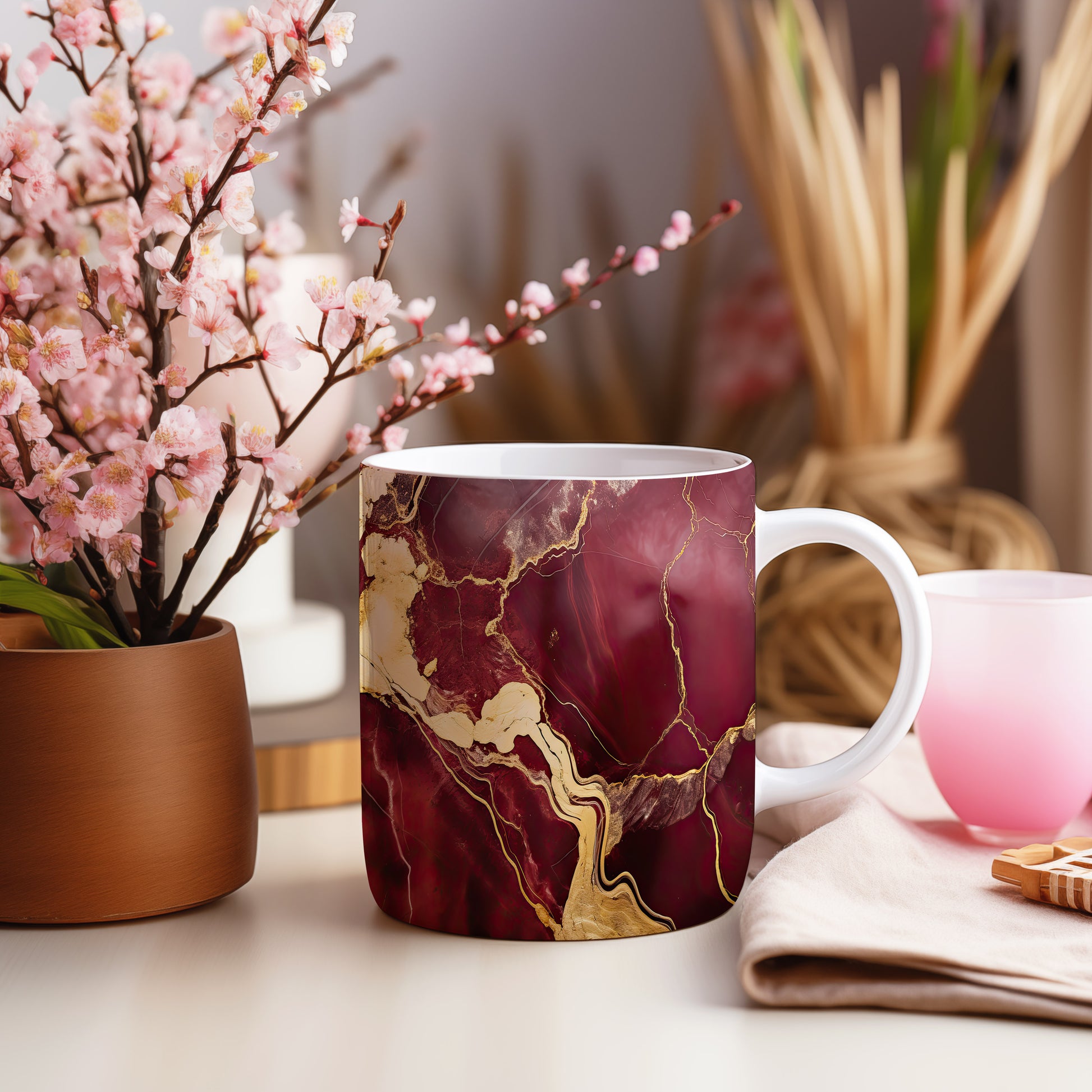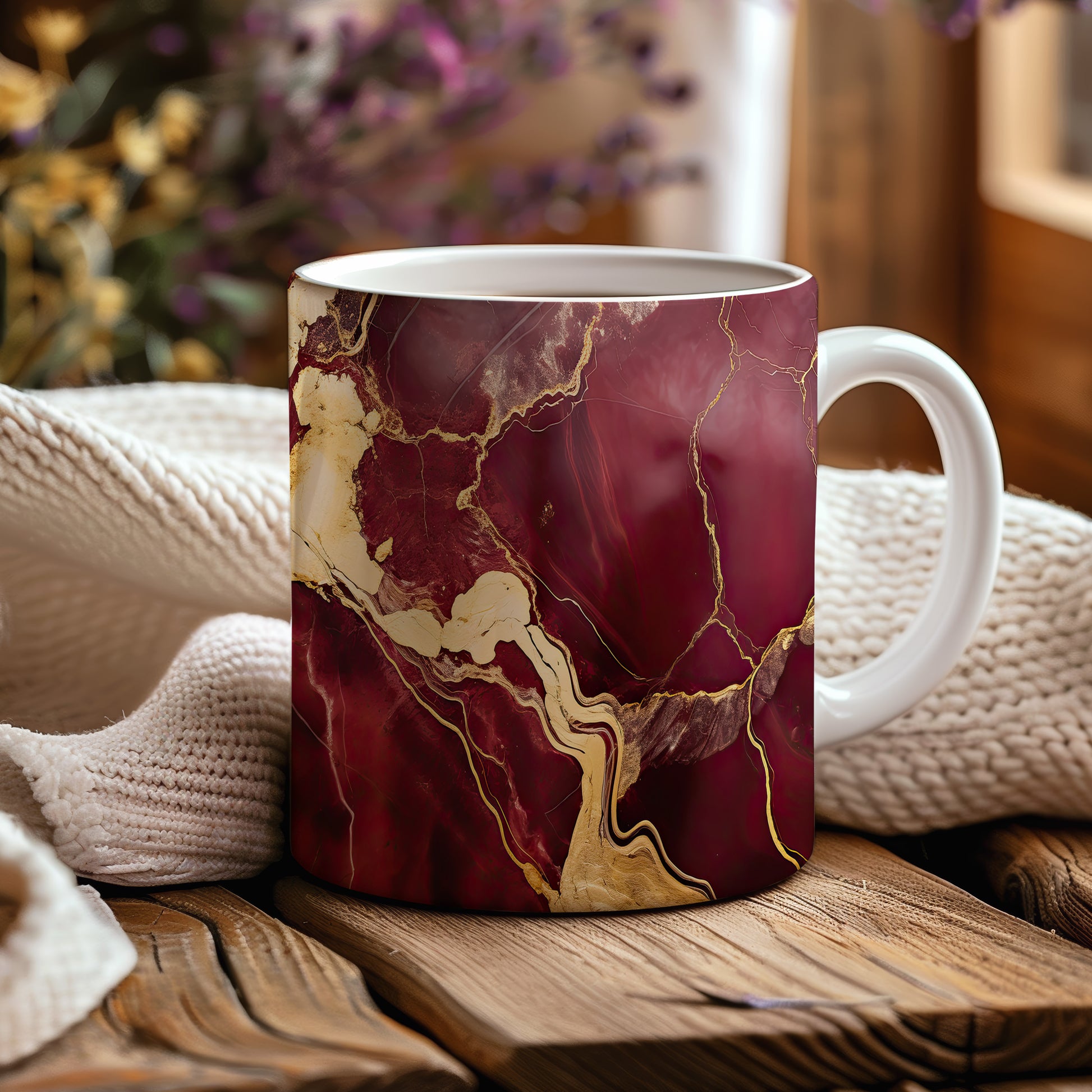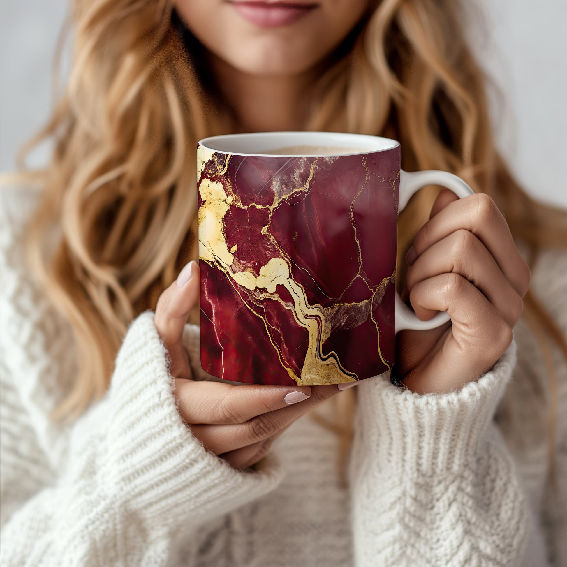 Hrnek s mramorovacím vzorem v červených a zlatých odstínech. Tento elegantní kousek je ideální pro každodenní použití nebo jako stylový dárek pro milovníky designu. Materiál: keramika. Objem: 330 ml. Vhodné do myčky i mikrovlnky. Díky svému jedinečnému vzhledu přinese do vašeho domova nádech luxusu.