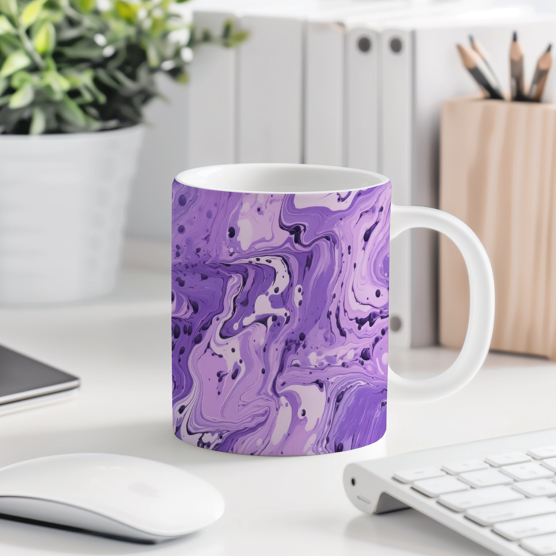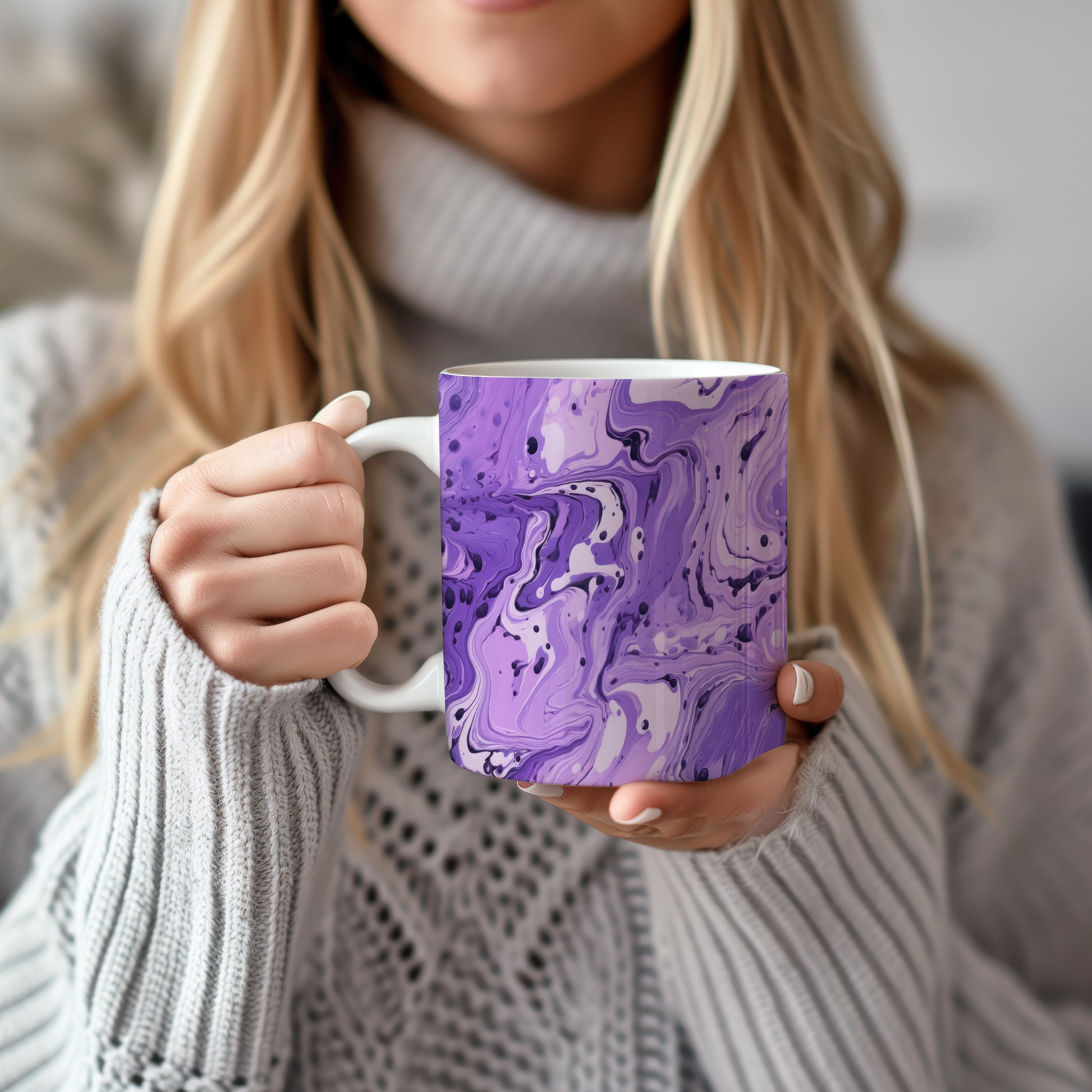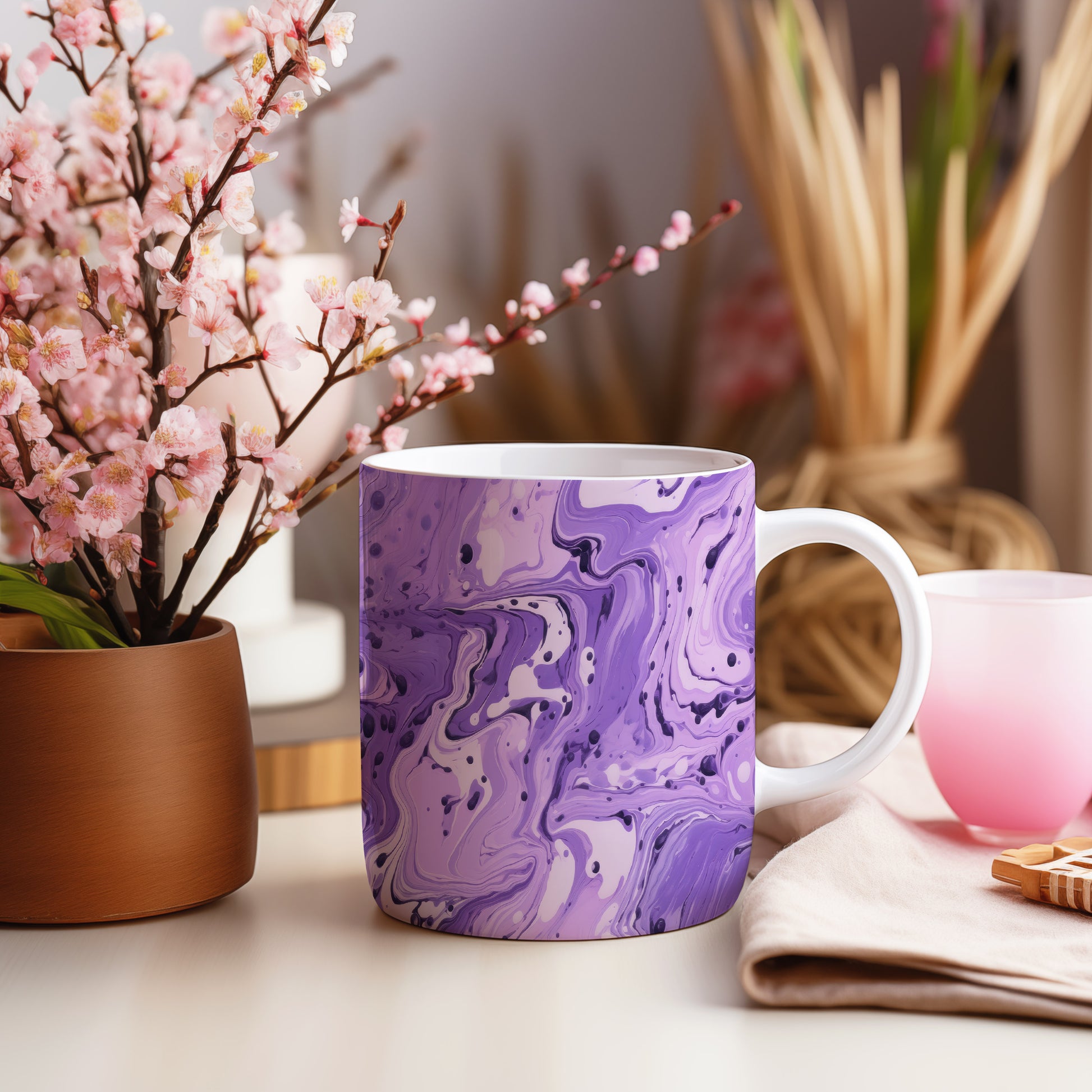 Tento hrnek s mramorovým vzorem v fialových a bílých odstínech přináší elegantní vzhled a moderní styl. Je ideální pro milovníky designu a skvělým dárkem pro přátele či rodinu. Materiál: keramika. Objem: 330 ml. Vhodné do myčky i mikrovlnky. Díky hladké textuře se pohodlně drží a používá.