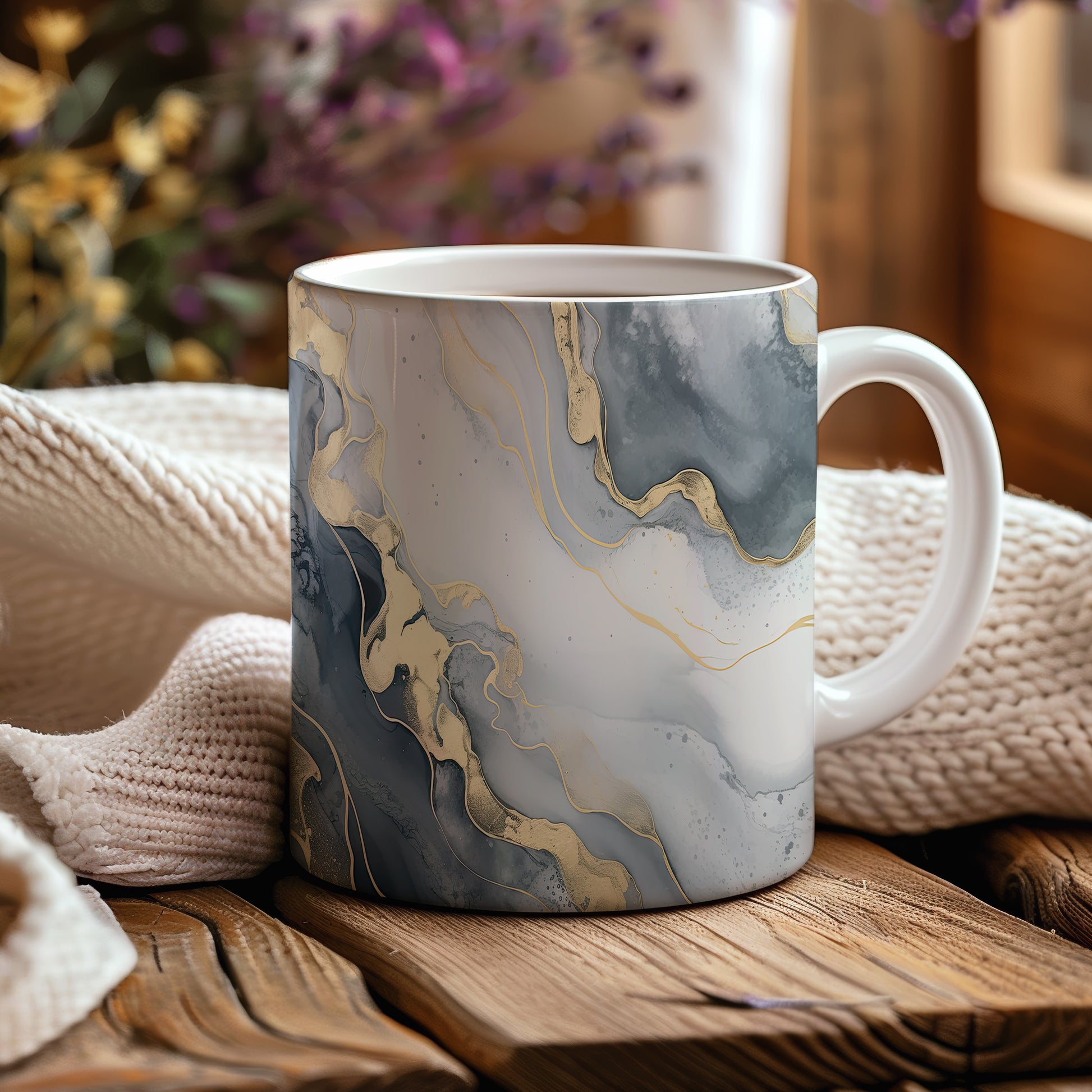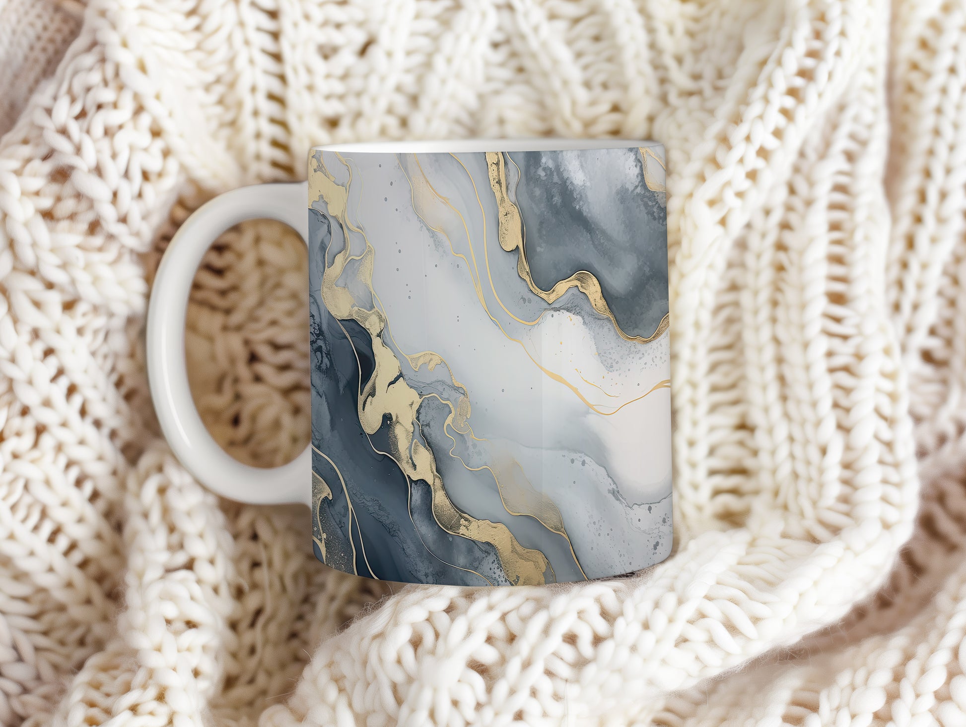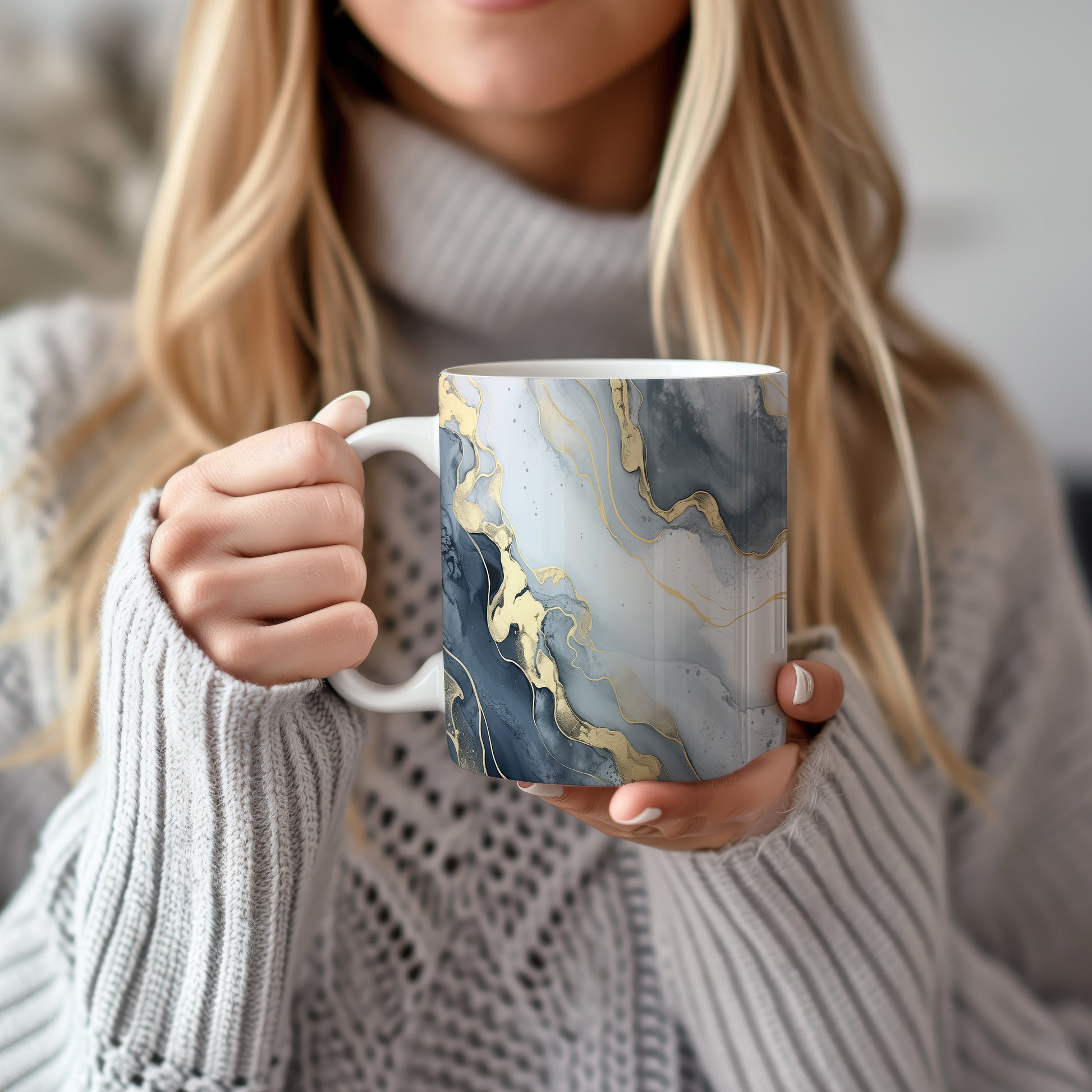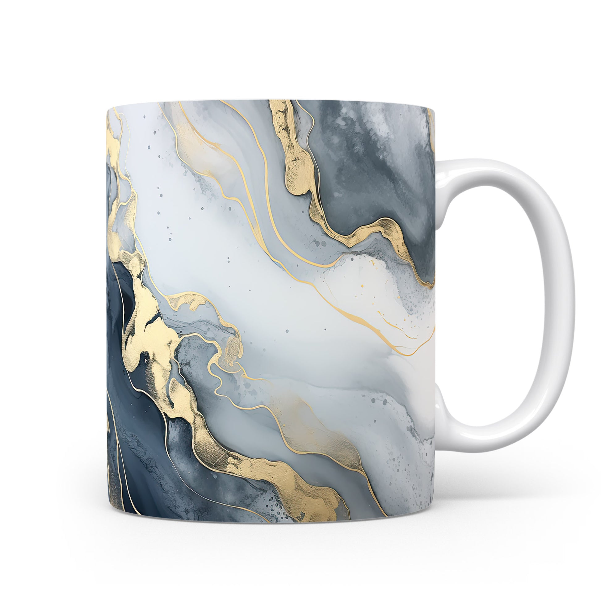 Tento hrnek s mramorováním v modré a zlaté barvě přináší elegantní a stylový vzhled. Je ideální pro milovníky moderního designu a skvělým dárkem pro přátele či rodinu. Materiál: keramika. Objem: 330 ml. Vhodné do myčky i mikrovlnky. Díky svému jedinečnému vzhledu se stane ozdobou každého stolu.