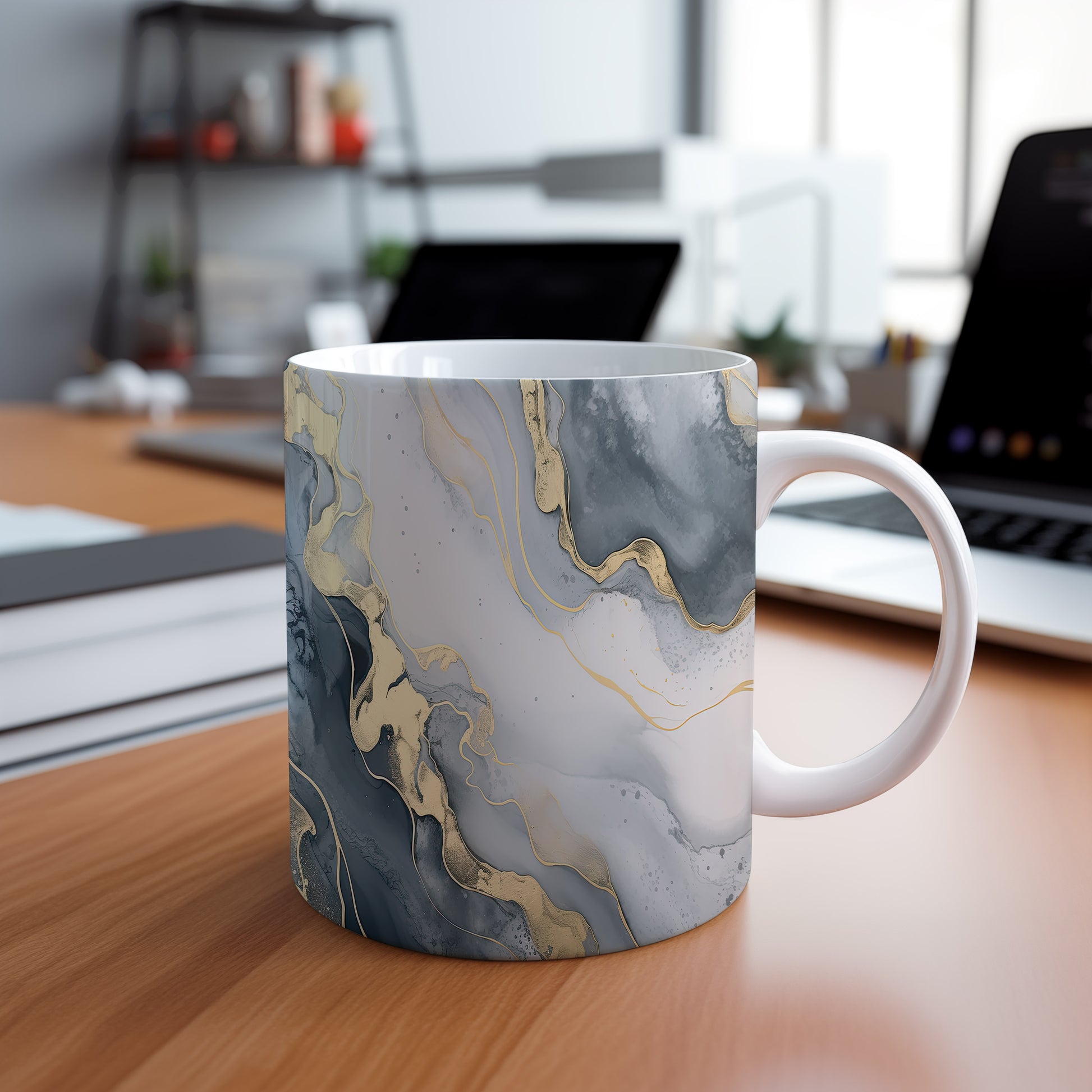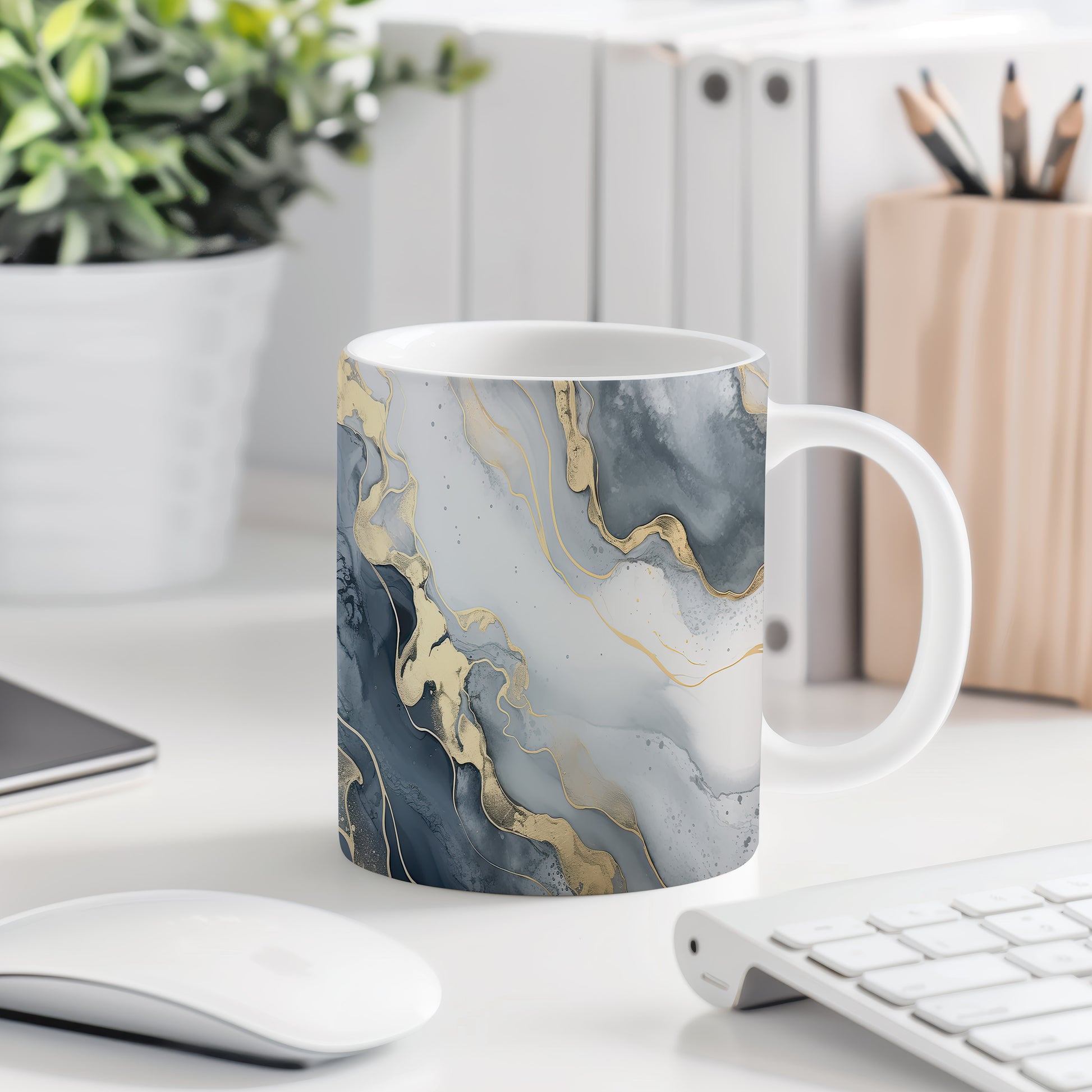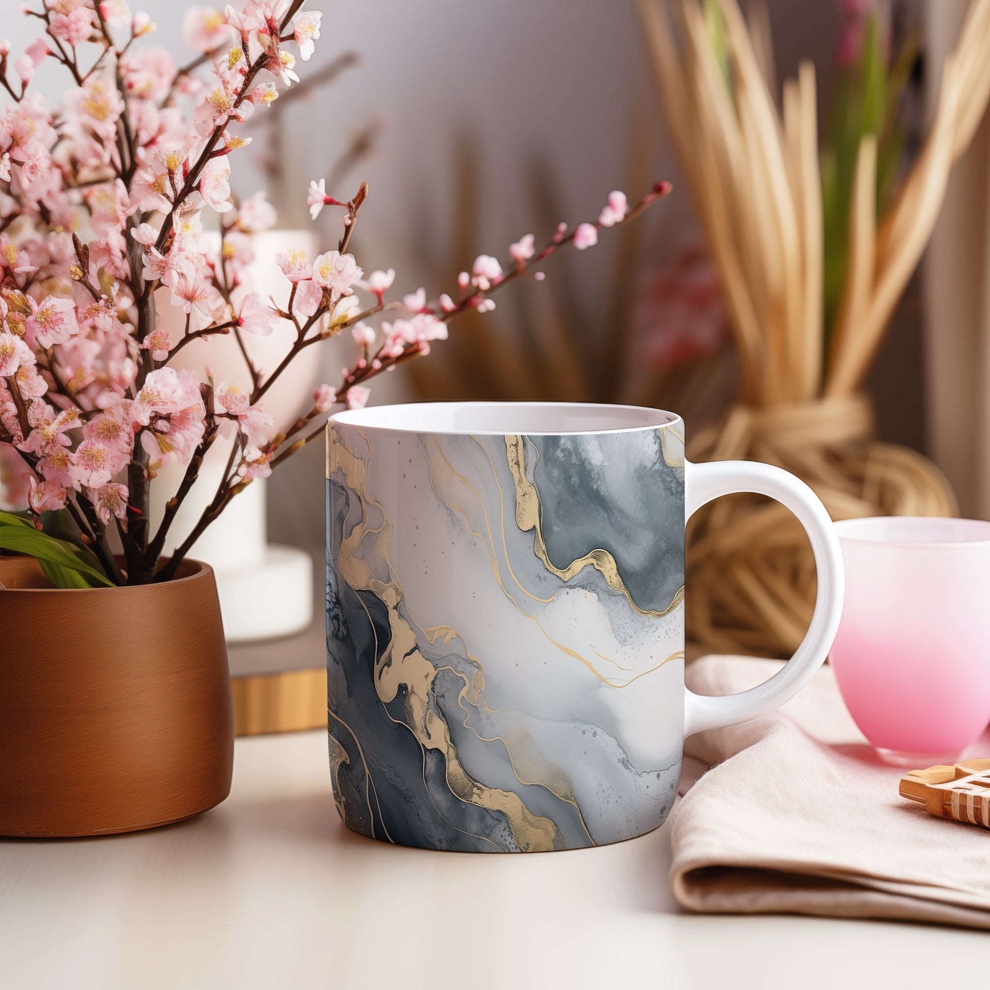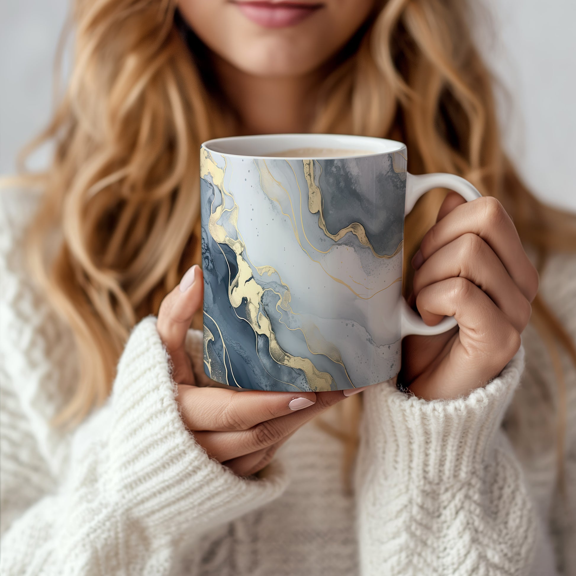 Tento hrnek s mramorováním v modré a zlaté barvě přináší elegantní a stylový vzhled. Je ideální pro milovníky moderního designu a skvělým dárkem pro přátele či rodinu. Materiál: keramika. Objem: 330 ml. Vhodné do myčky i mikrovlnky. Díky svému jedinečnému vzhledu se stane ozdobou každého stolu.