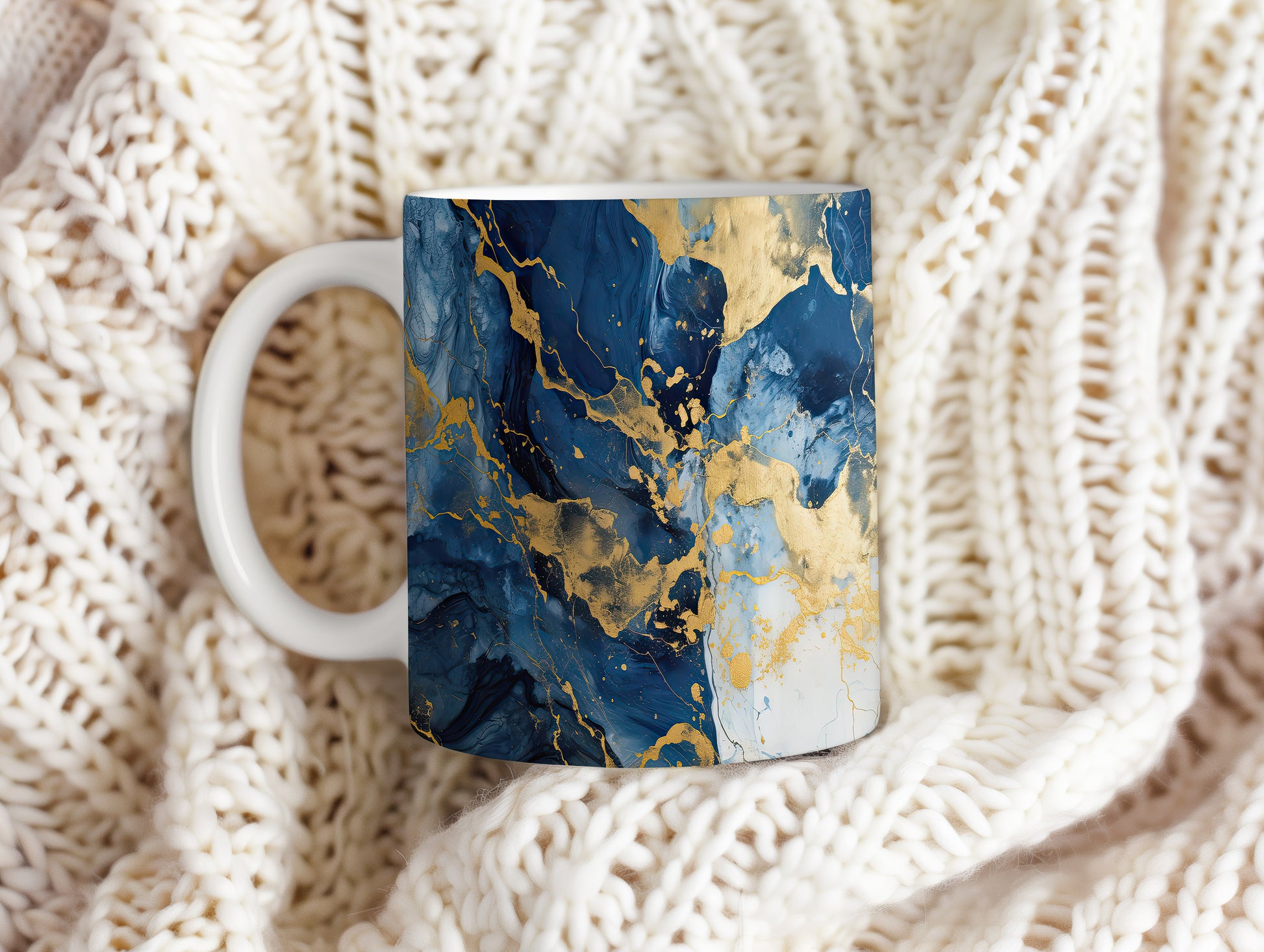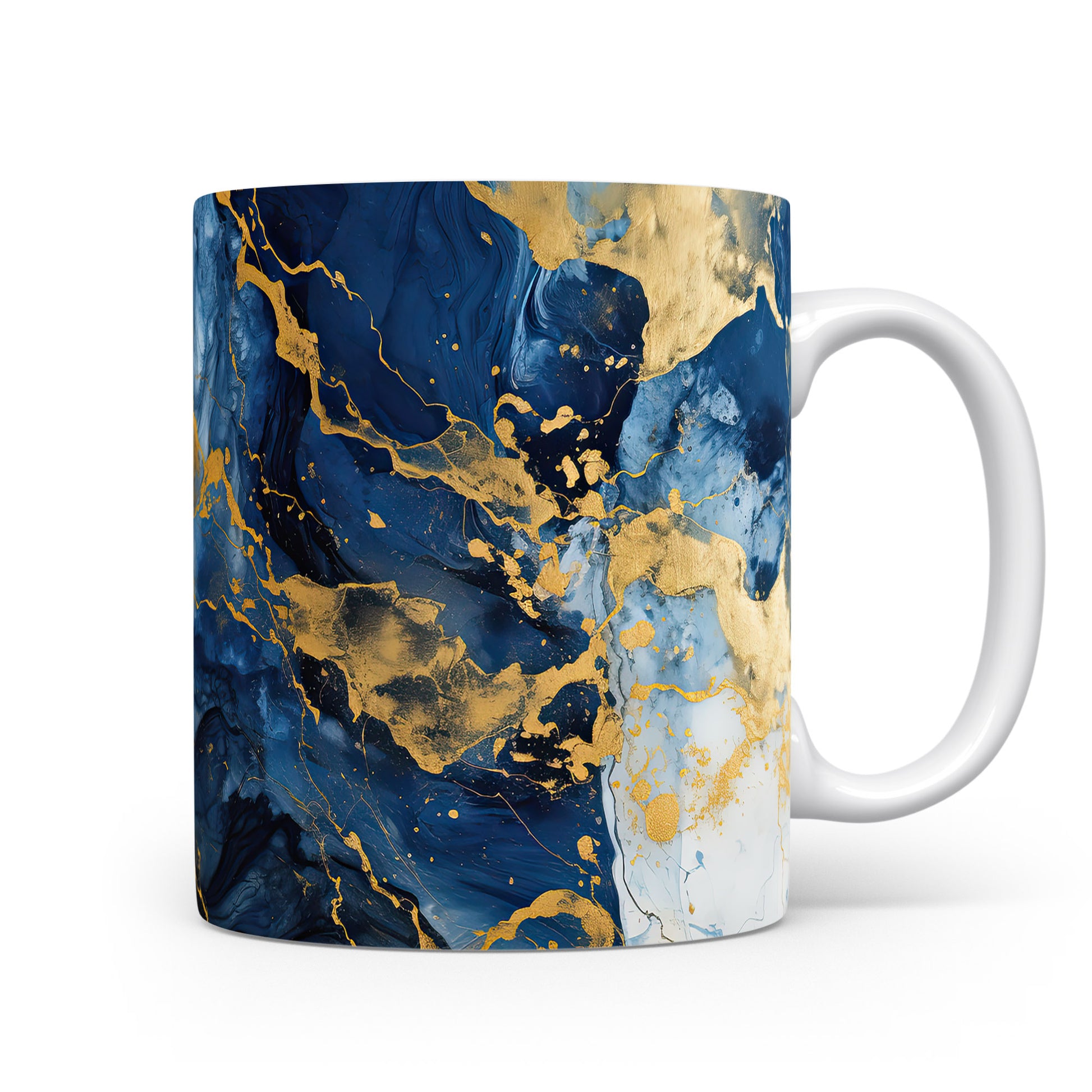 Hrnek s mramorováním v modré a zlaté – originálním motivem