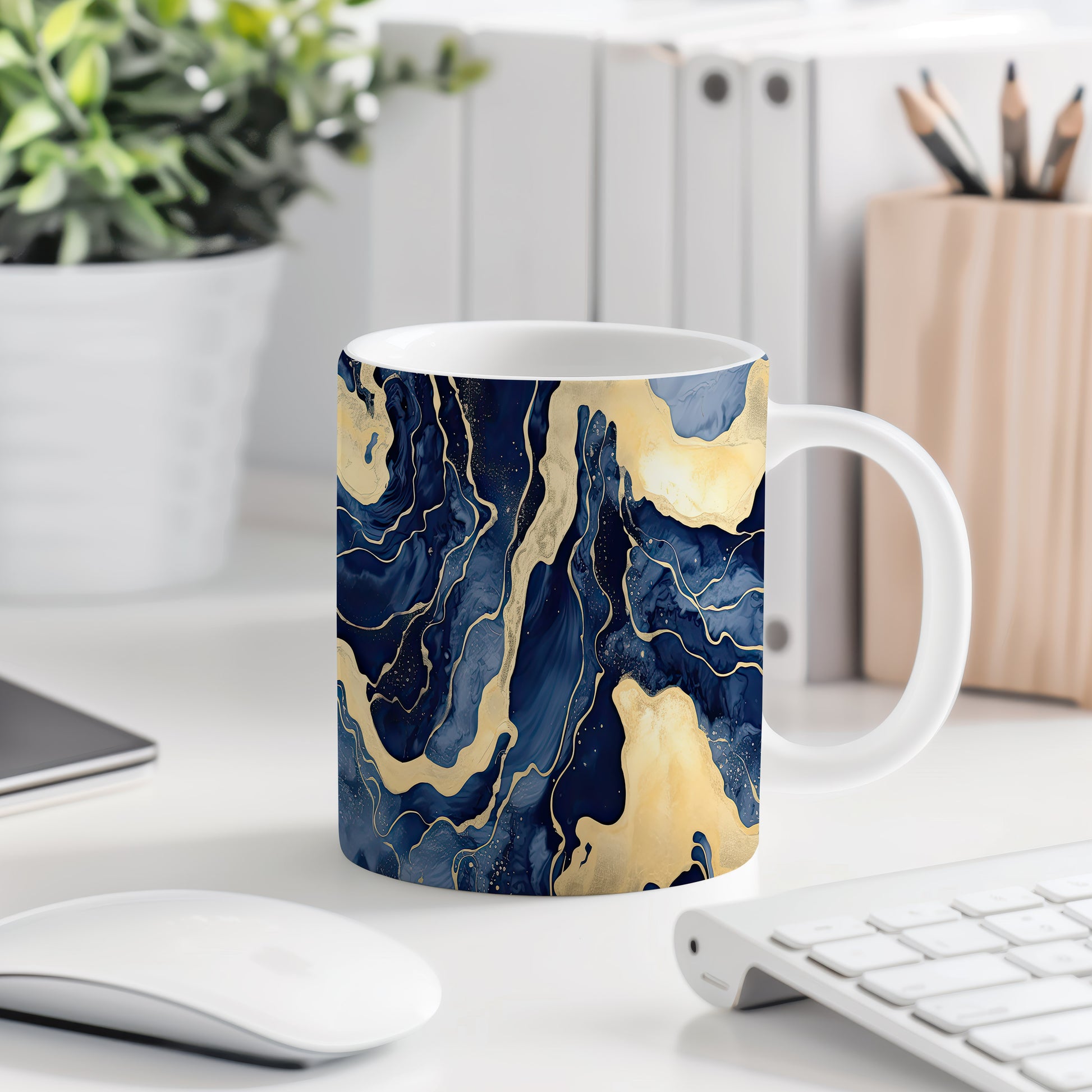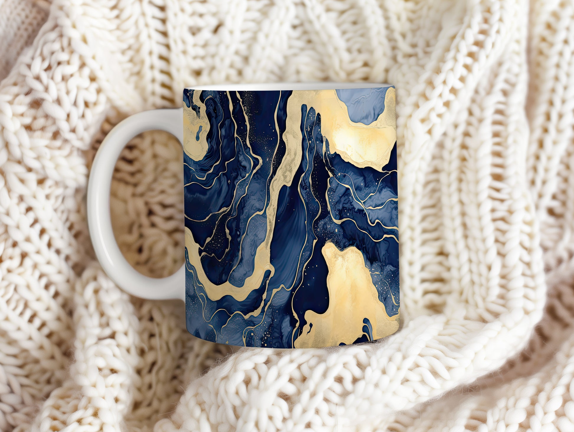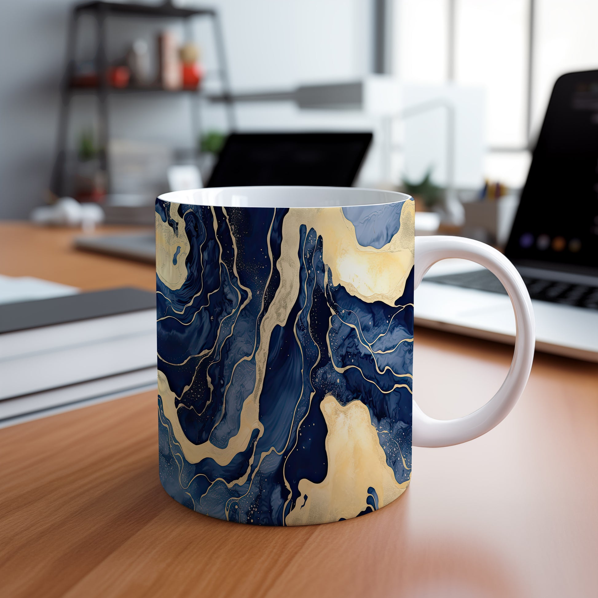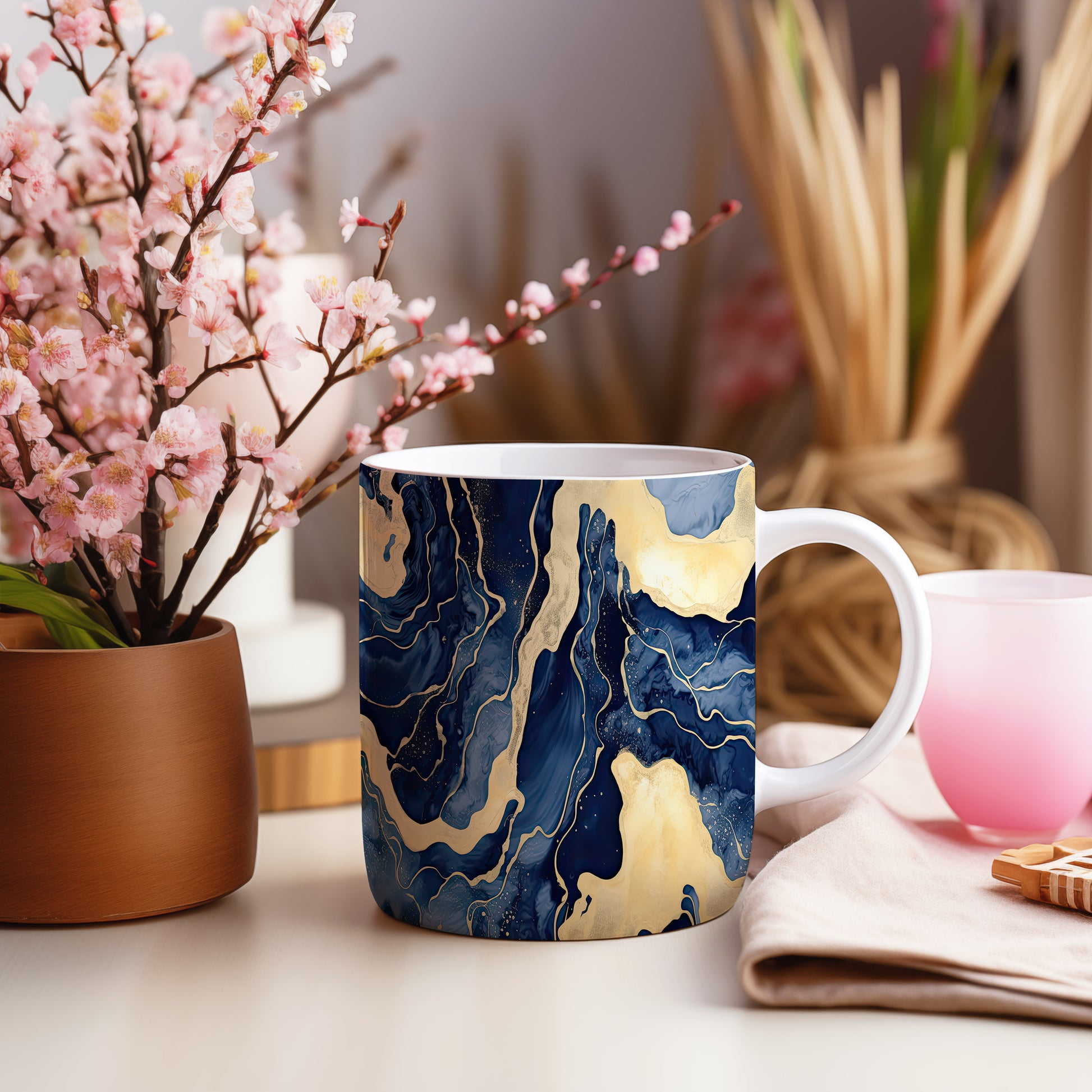 Hrnek s mramorováním v modré a zlaté barvě přináší elegantní a stylový vzhled. Tento design je ideální pro milovníky moderního umění a skvělým dárkem pro přátele či rodinu. Materiál: keramika. Objem: 330 ml. Vhodné do myčky i mikrovlnky. Díky svému jedinečnému vzhledu se stane ozdobou každého stolu.