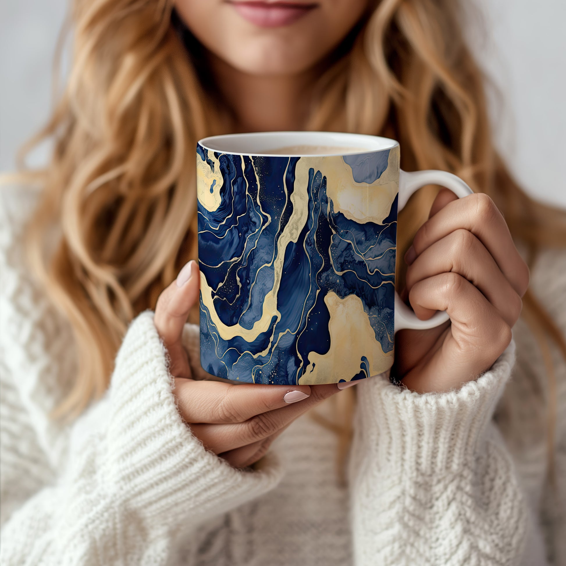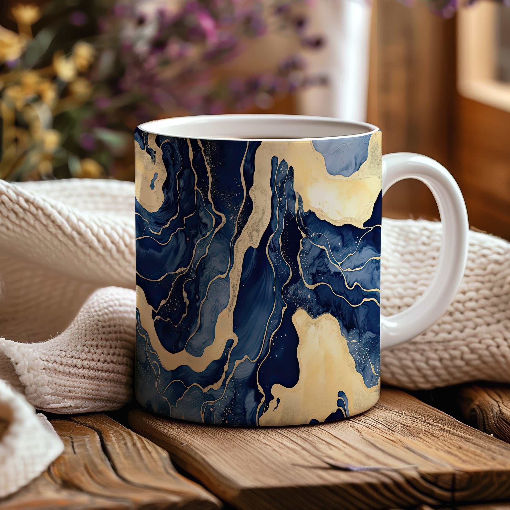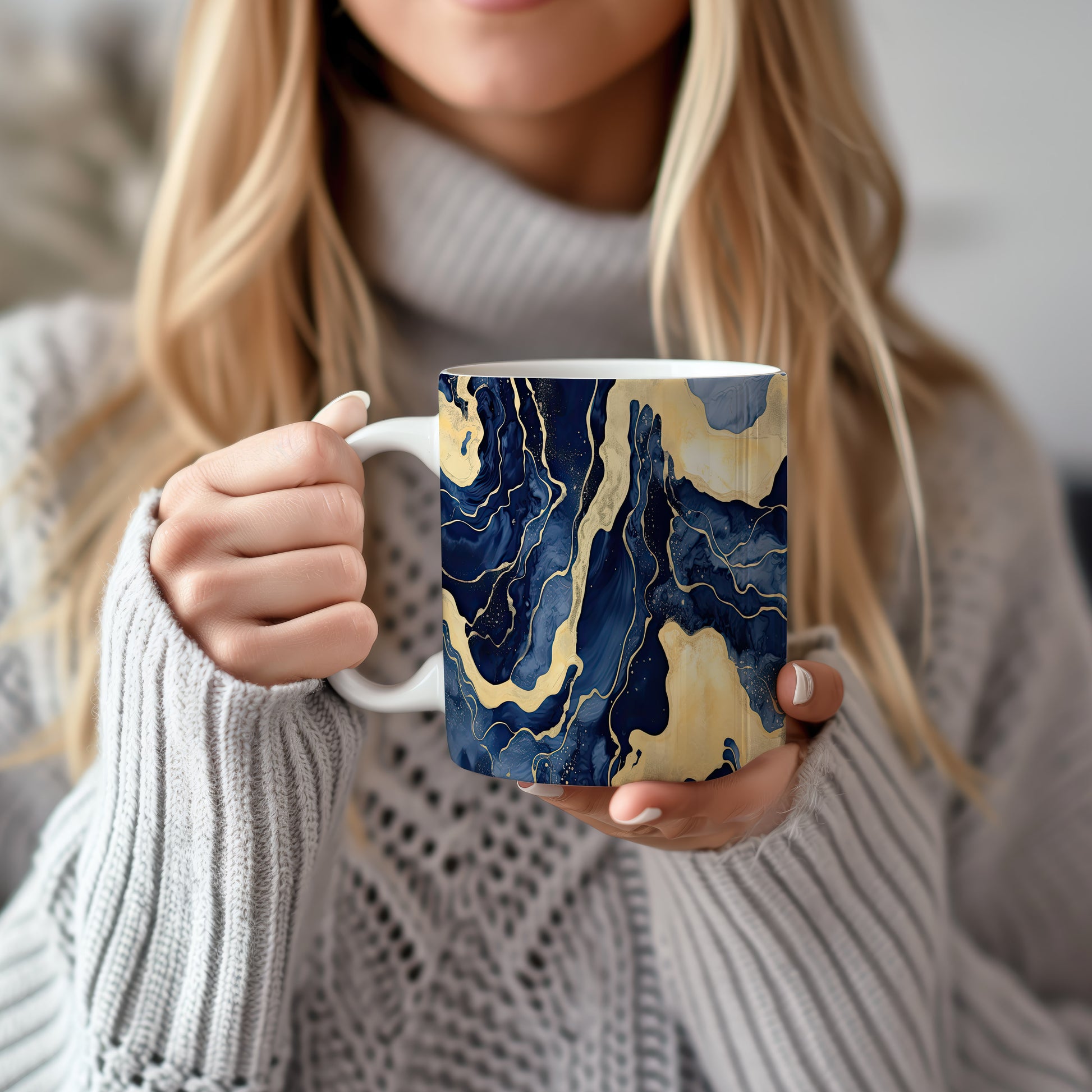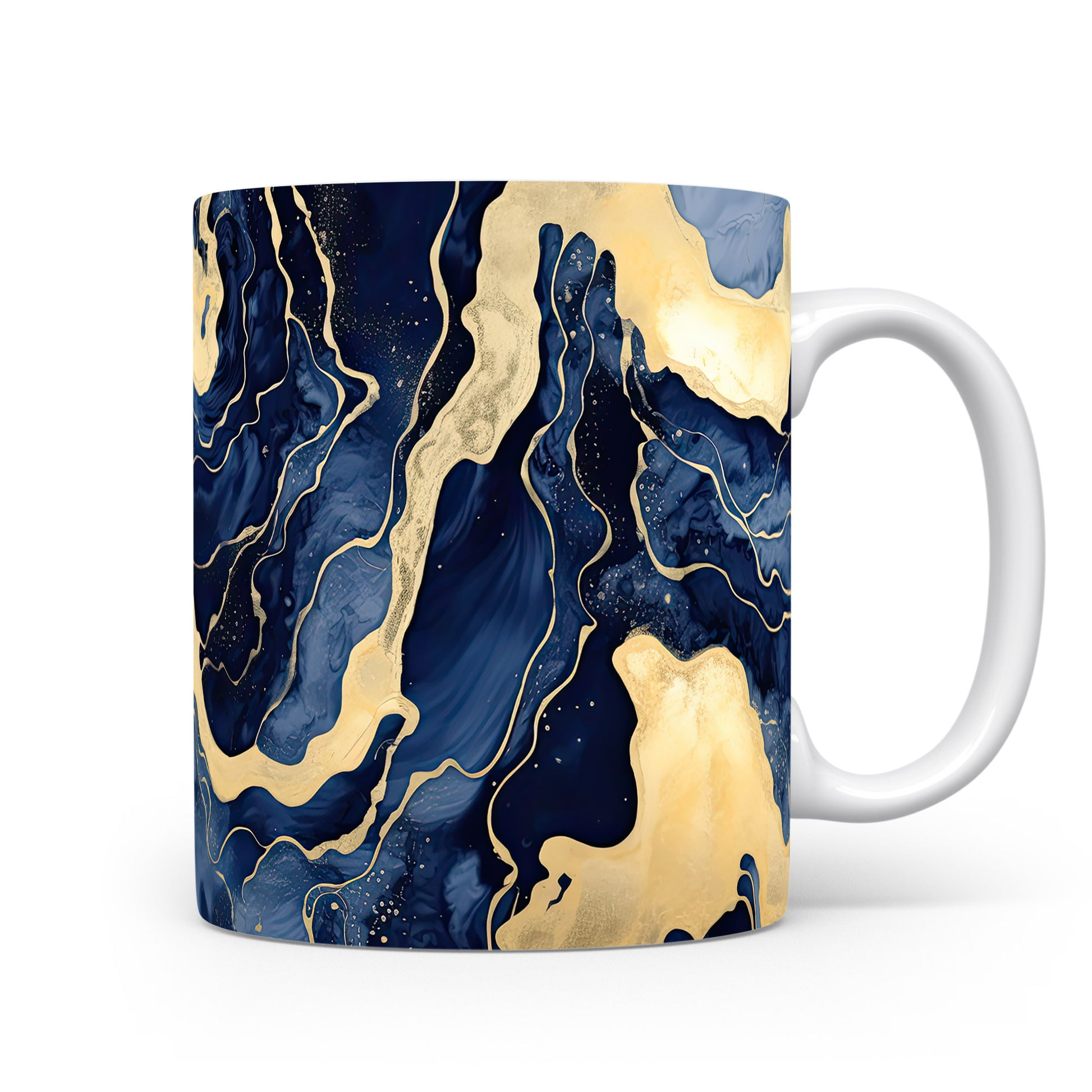 Hrnek s mramorováním v modré a zlaté barvě přináší elegantní a stylový vzhled. Tento design je ideální pro milovníky moderního umění a skvělým dárkem pro přátele či rodinu. Materiál: keramika. Objem: 330 ml. Vhodné do myčky i mikrovlnky. Díky svému jedinečnému vzhledu se stane ozdobou každého stolu.