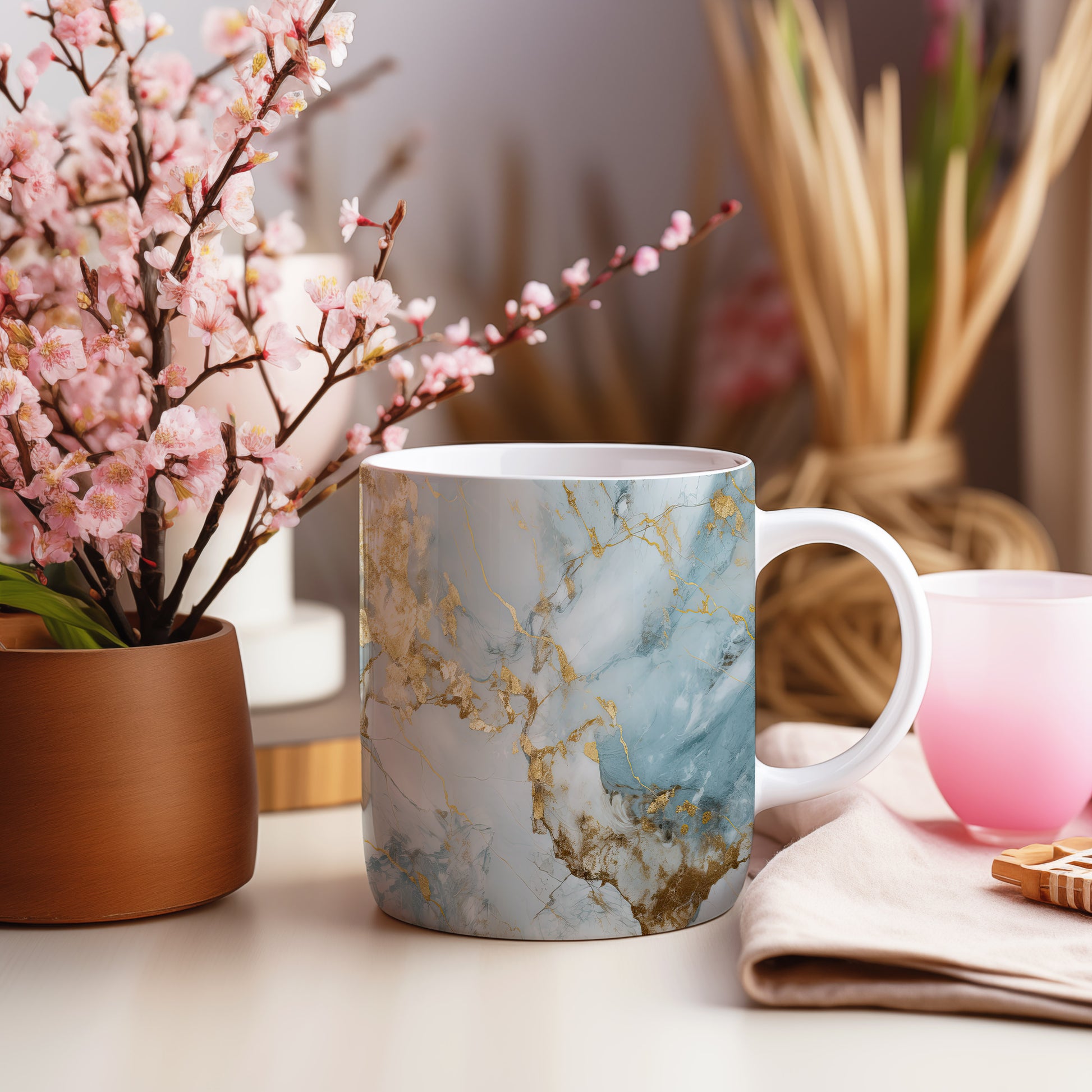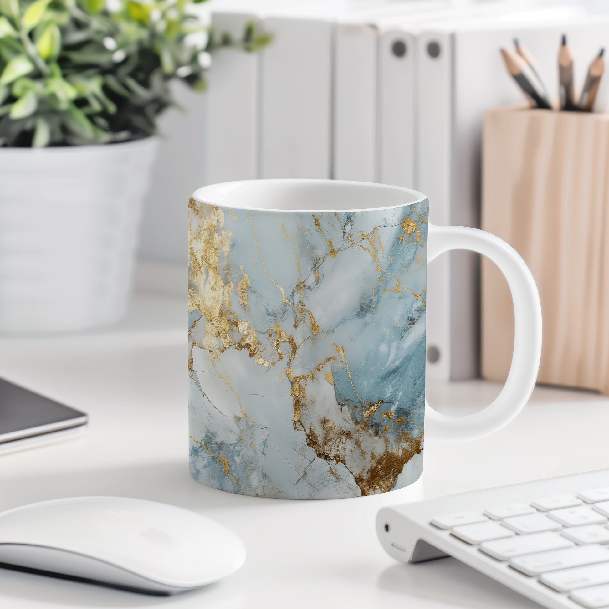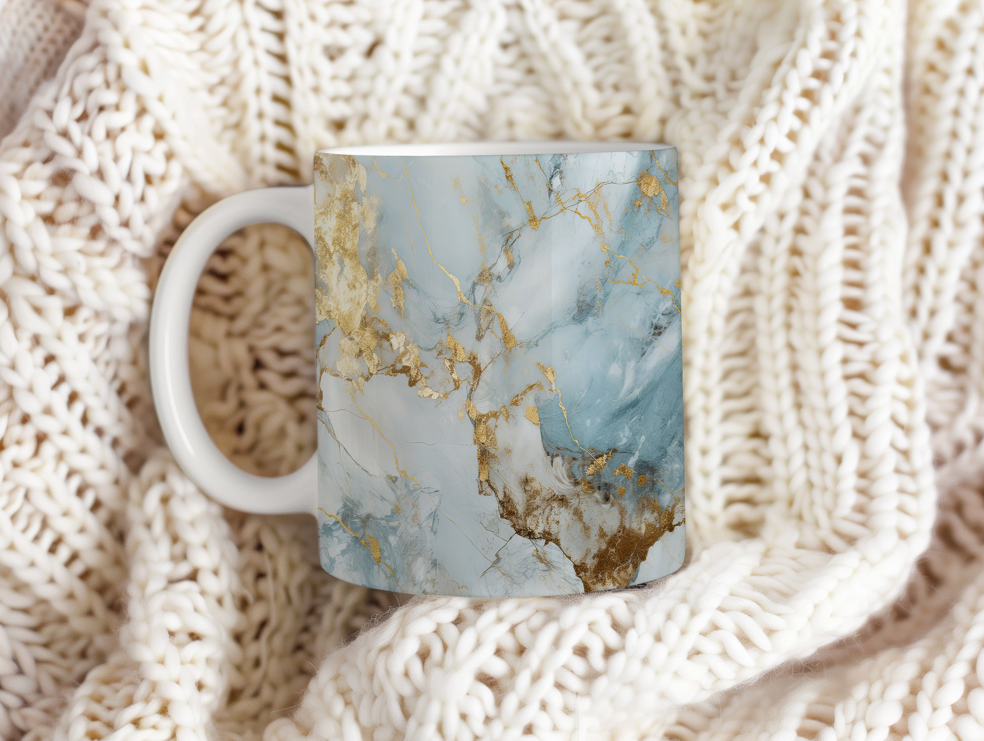 Tento hrnek s mramorováním v modro – zlatých tónech přináší elegantní a sofistikovaný vzhled. Je ideální pro milovníky stylového nádobí a skvělým dárkem pro přátele či rodinu. Materiál: keramika. Objem: 330 ml. Vhodné do myčky i mikrovlnky. Díky svému designu dodá každému nápoji jedinečný šarm.