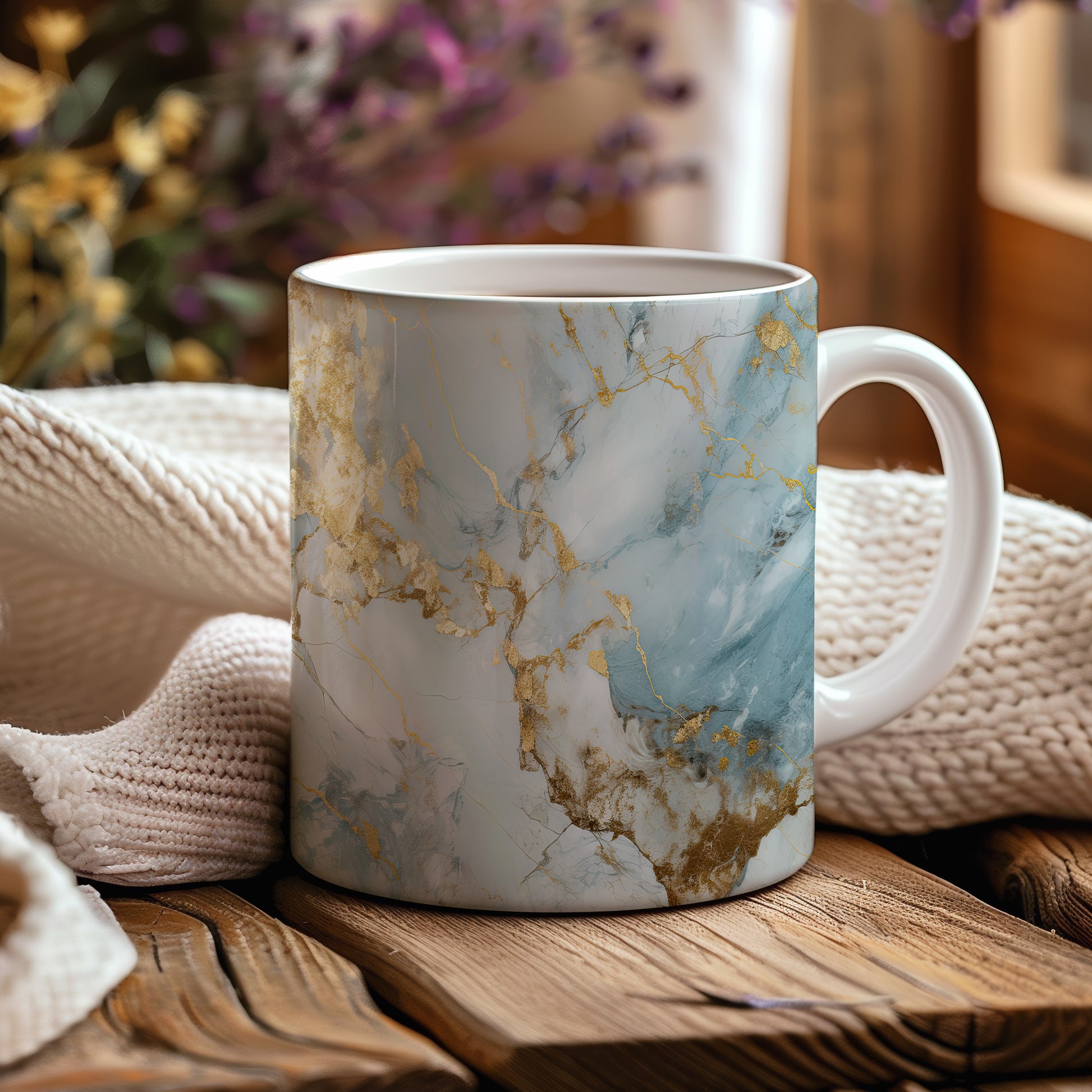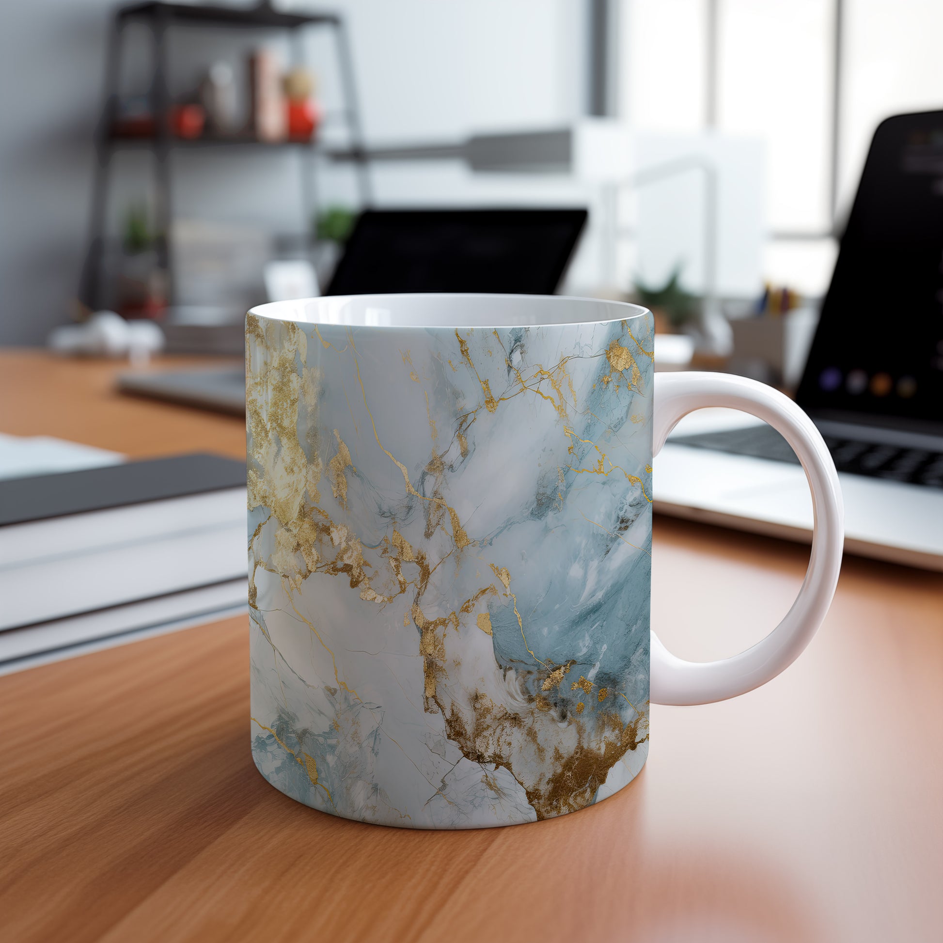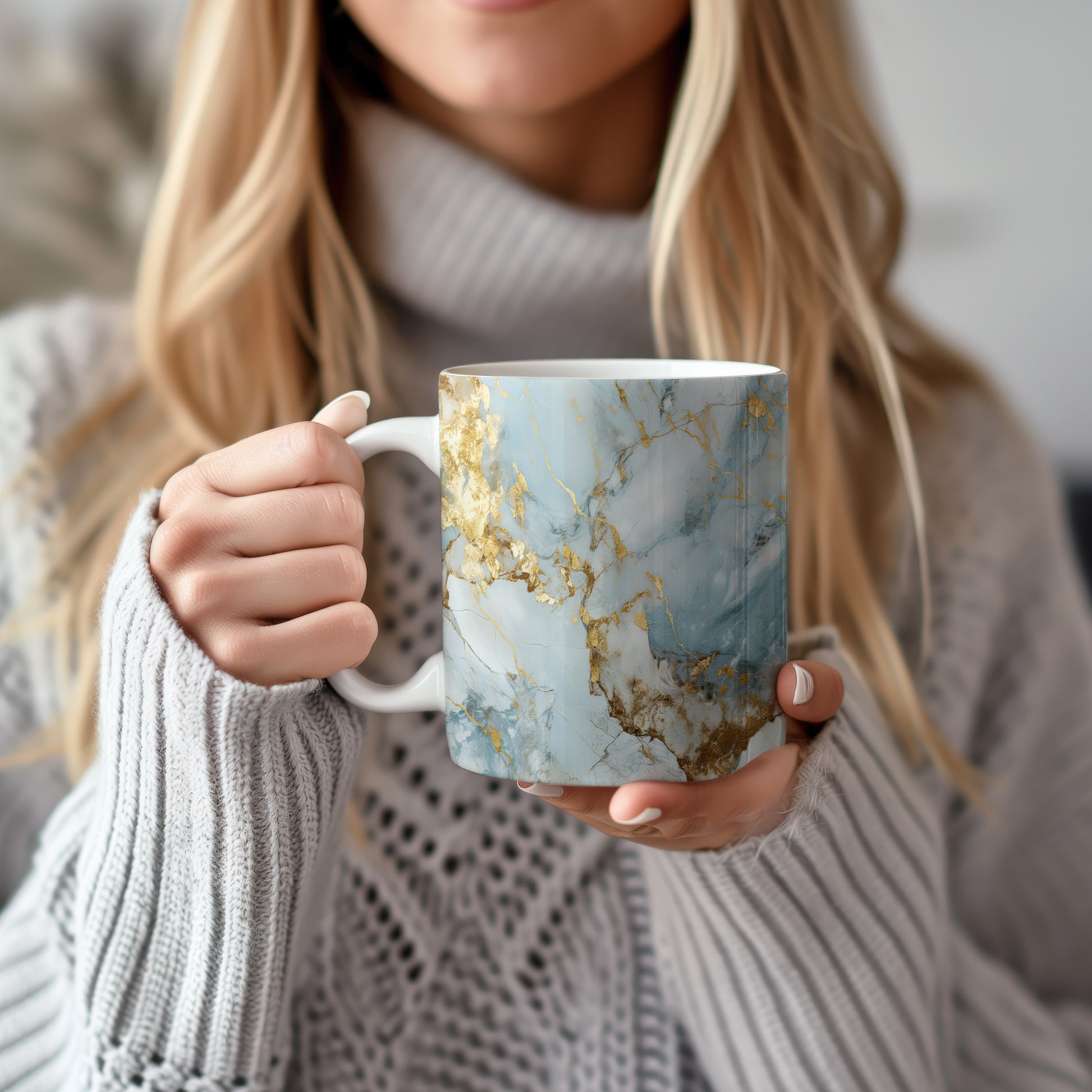 Tento hrnek s mramorováním v modro – zlatých tónech přináší elegantní a sofistikovaný vzhled. Je ideální pro milovníky stylového nádobí a skvělým dárkem pro přátele či rodinu. Materiál: keramika. Objem: 330 ml. Vhodné do myčky i mikrovlnky. Díky svému designu dodá každému nápoji jedinečný šarm.