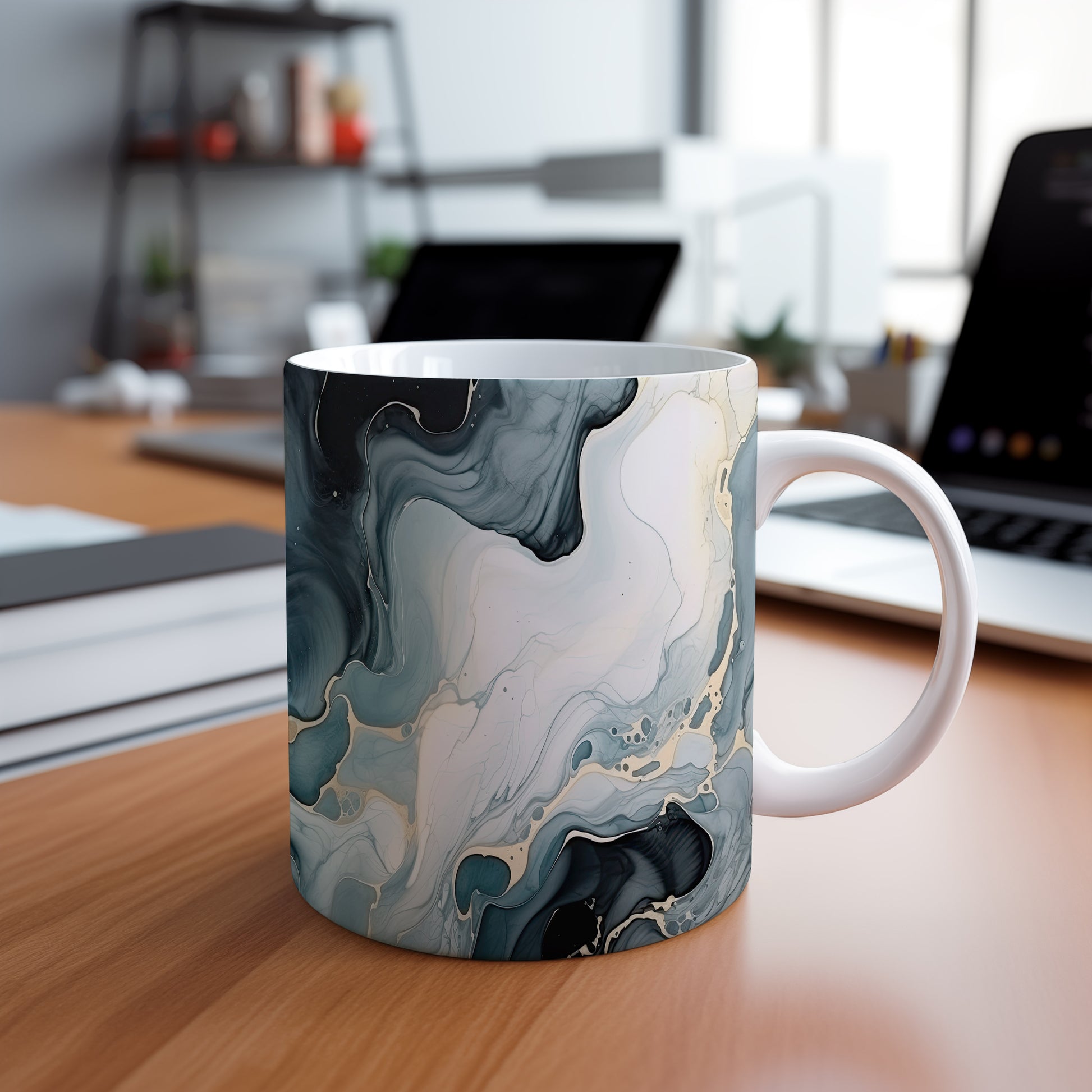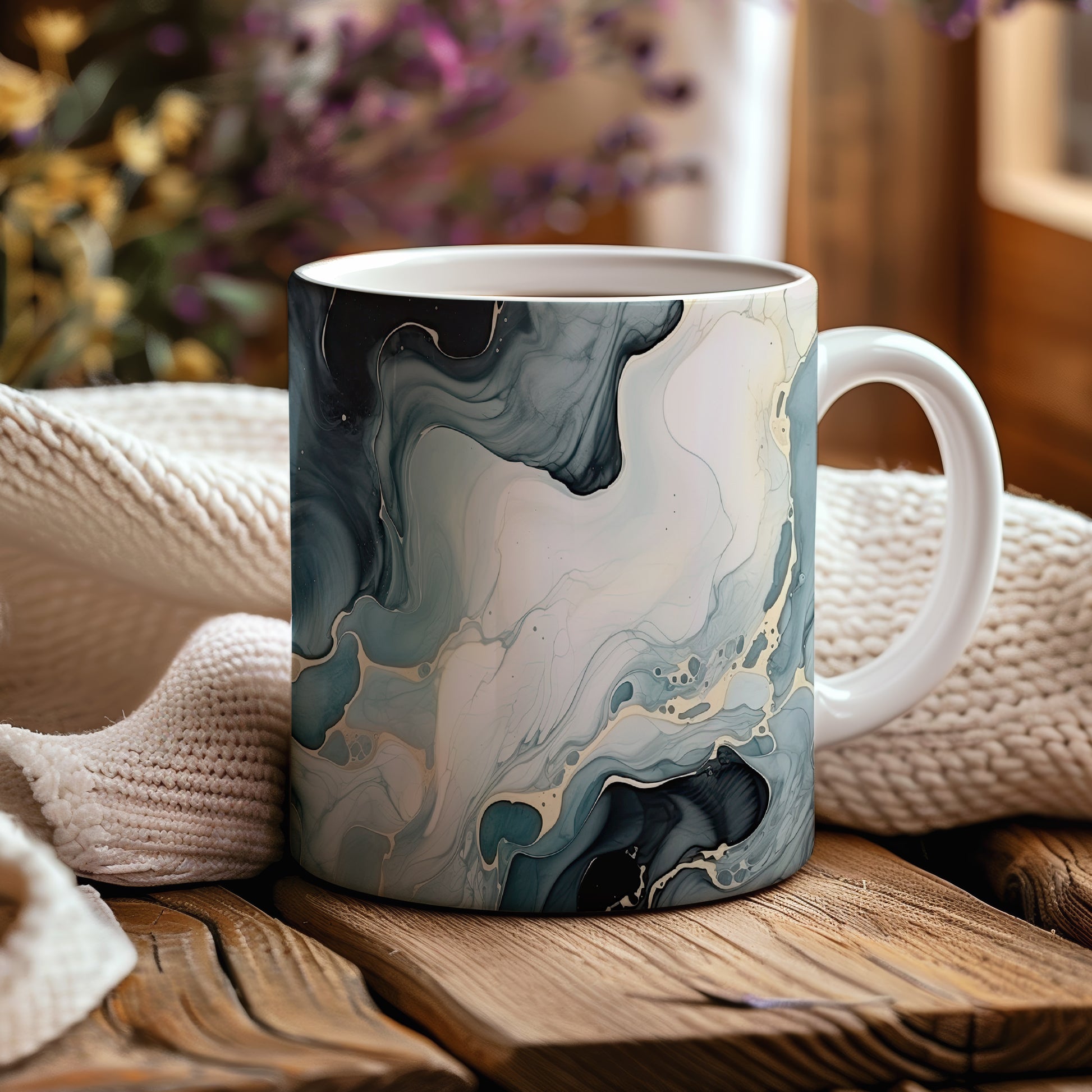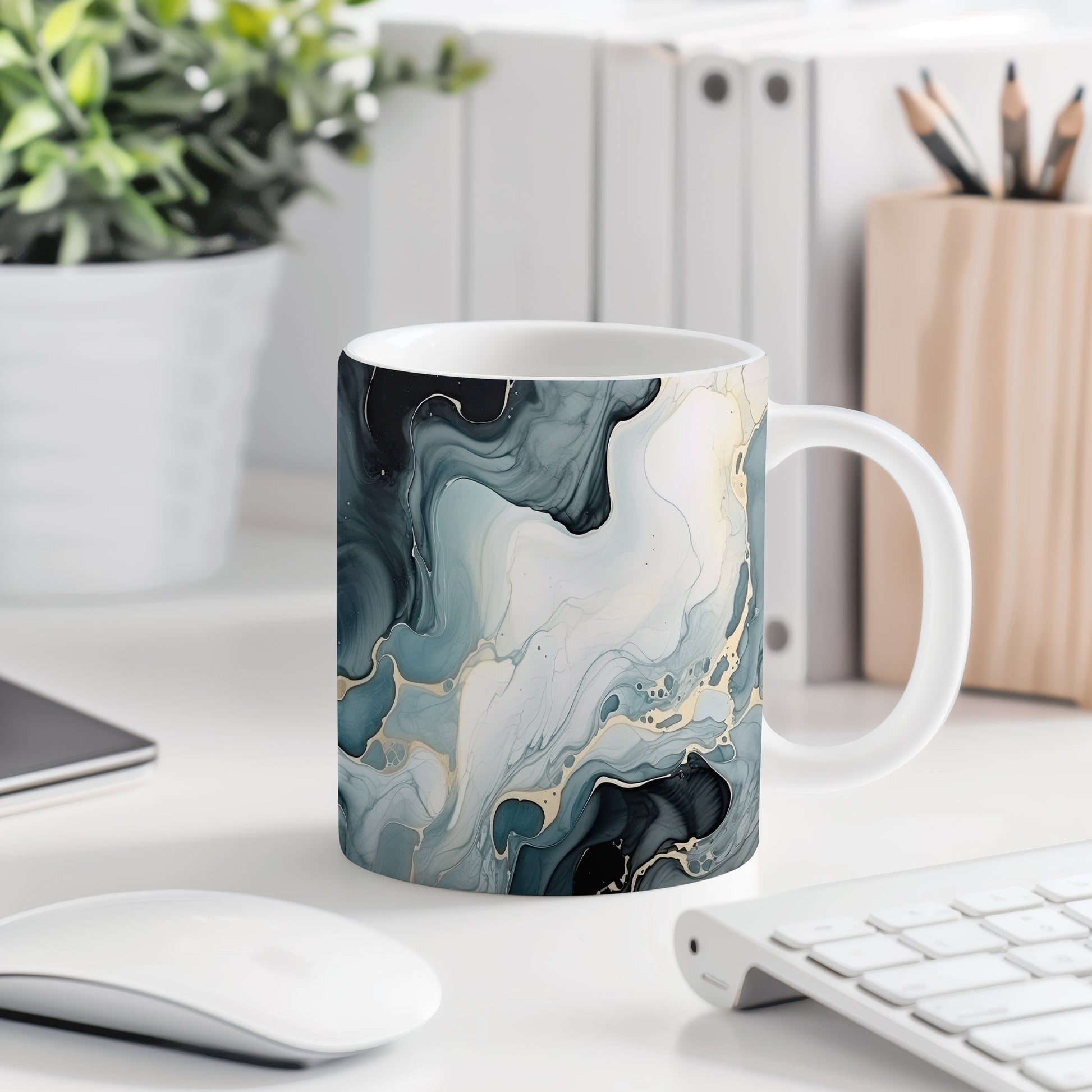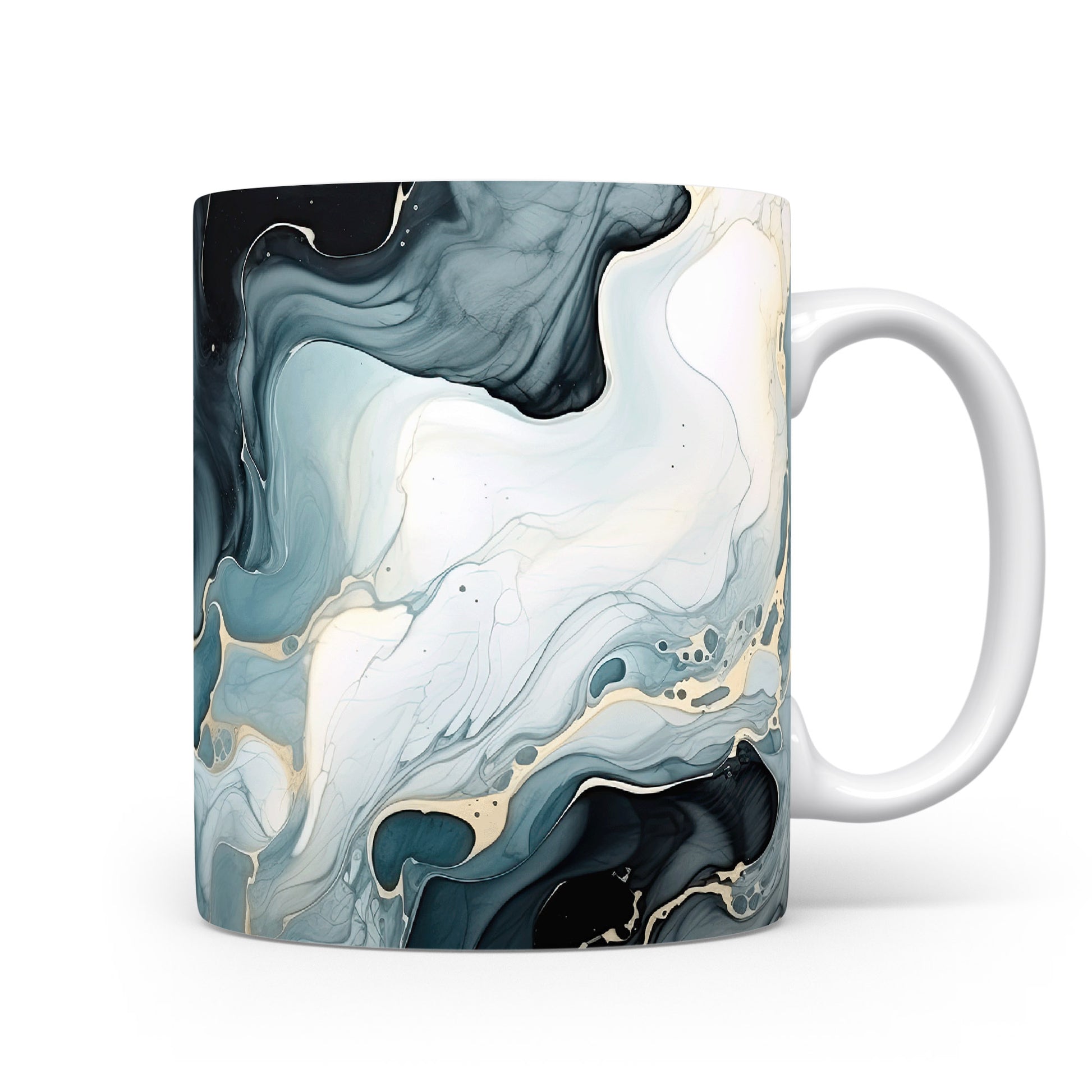 Motiv hrnku zobrazuje mramorování s jemnými přechody mezi modrými a béžovými odstíny. Tento styl je ideální pro milovníky originálního designu a skvělým dárkem pro přátele či rodinu. Hrnky o objemu 330 ml jsou vyrobeny z keramiky, vhodné do myčky i mikrovlnky. Díky unikátnímu vzhledu každého kusu přinášejí do vašeho domova jedinečnou atmosféru.