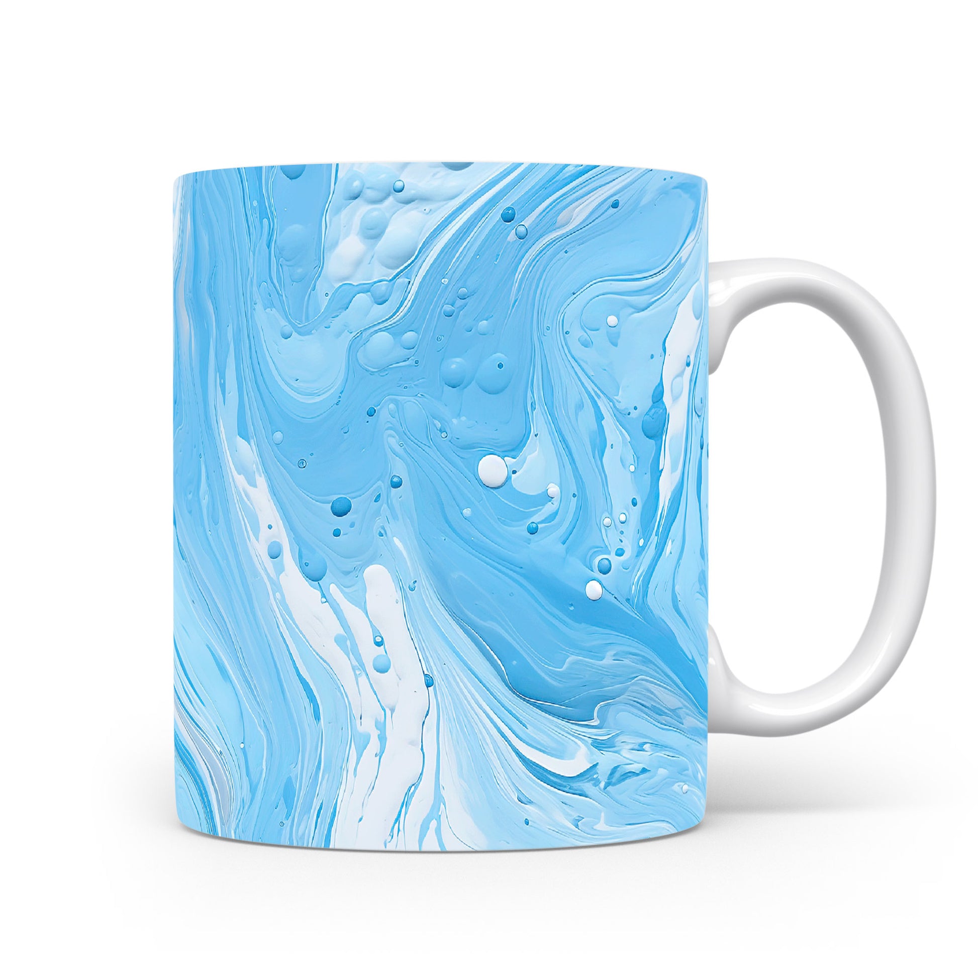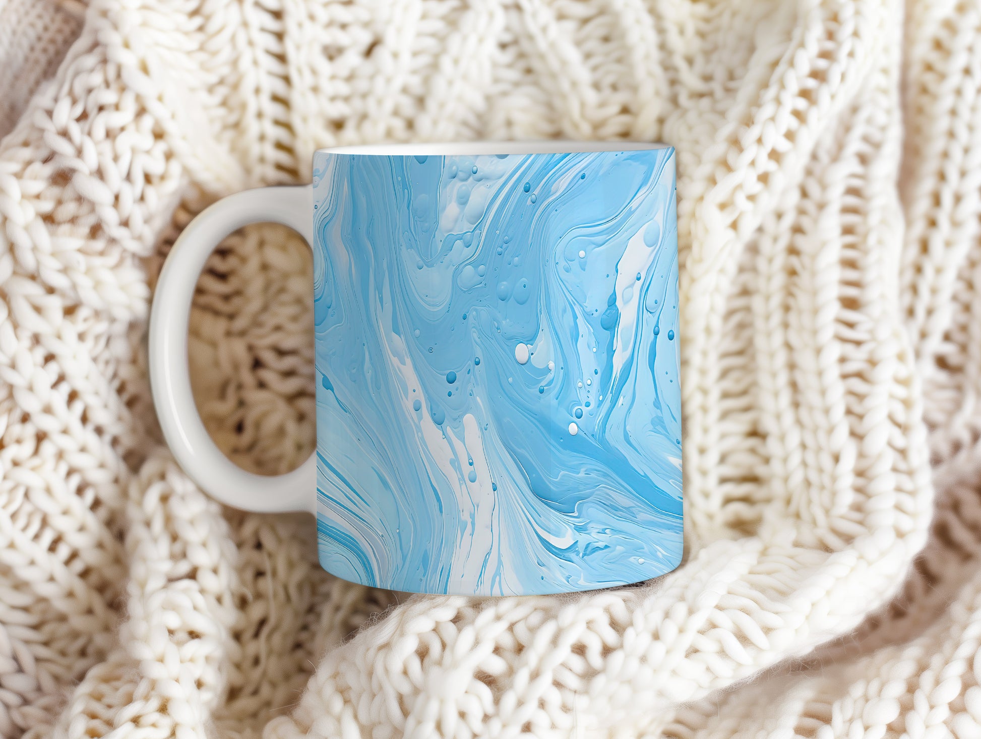 Hrnek s mramorováním v modrých a bílých tónech – originálním motivem