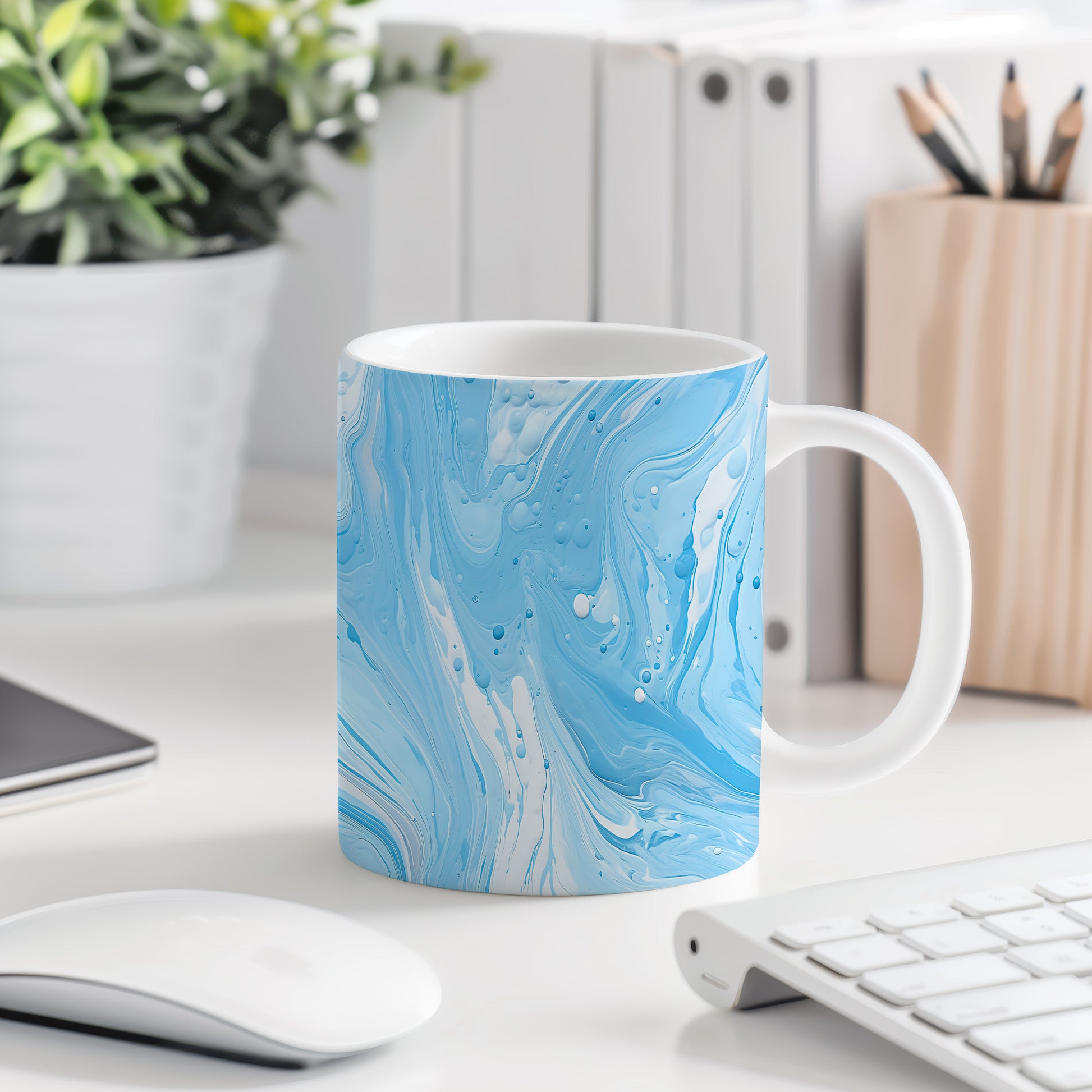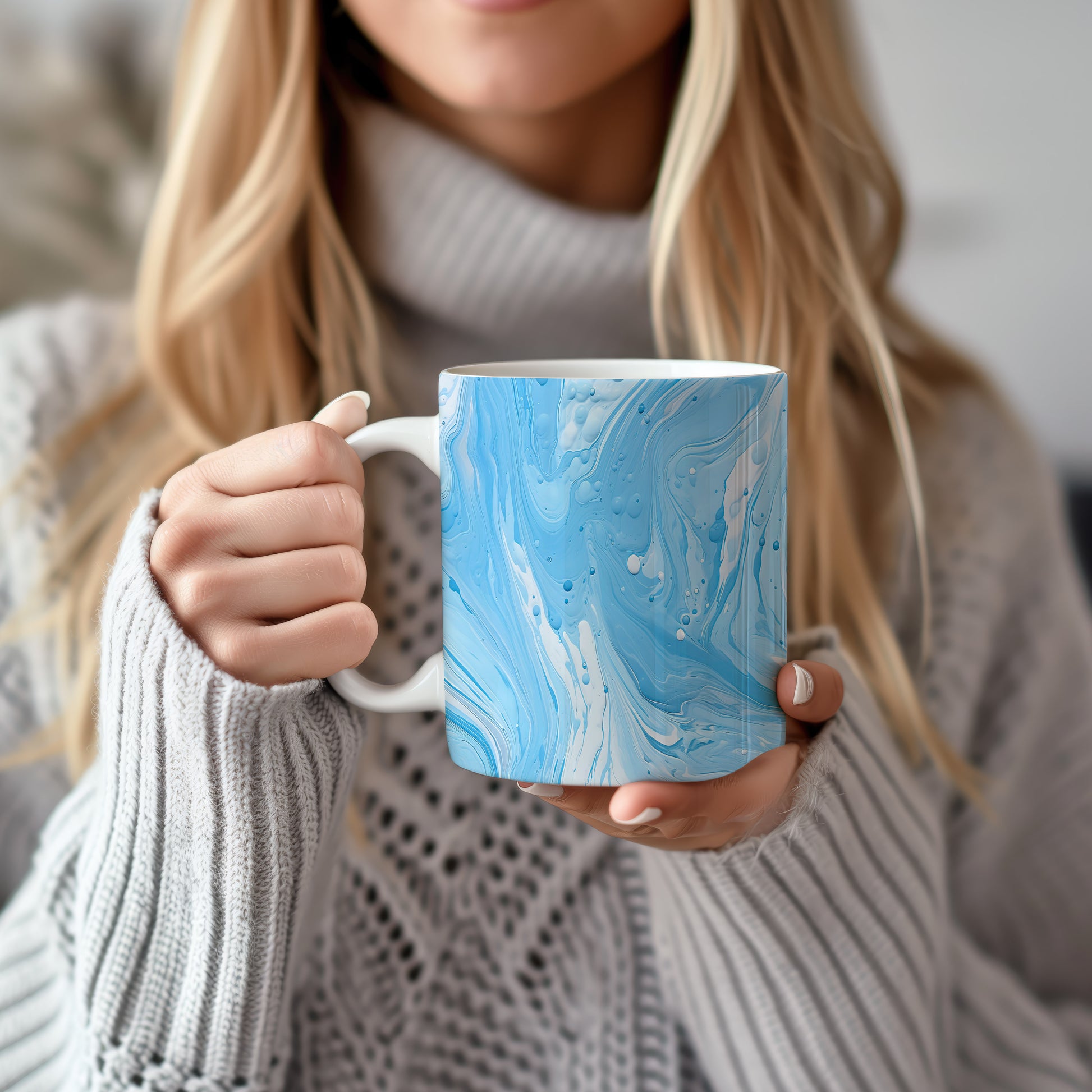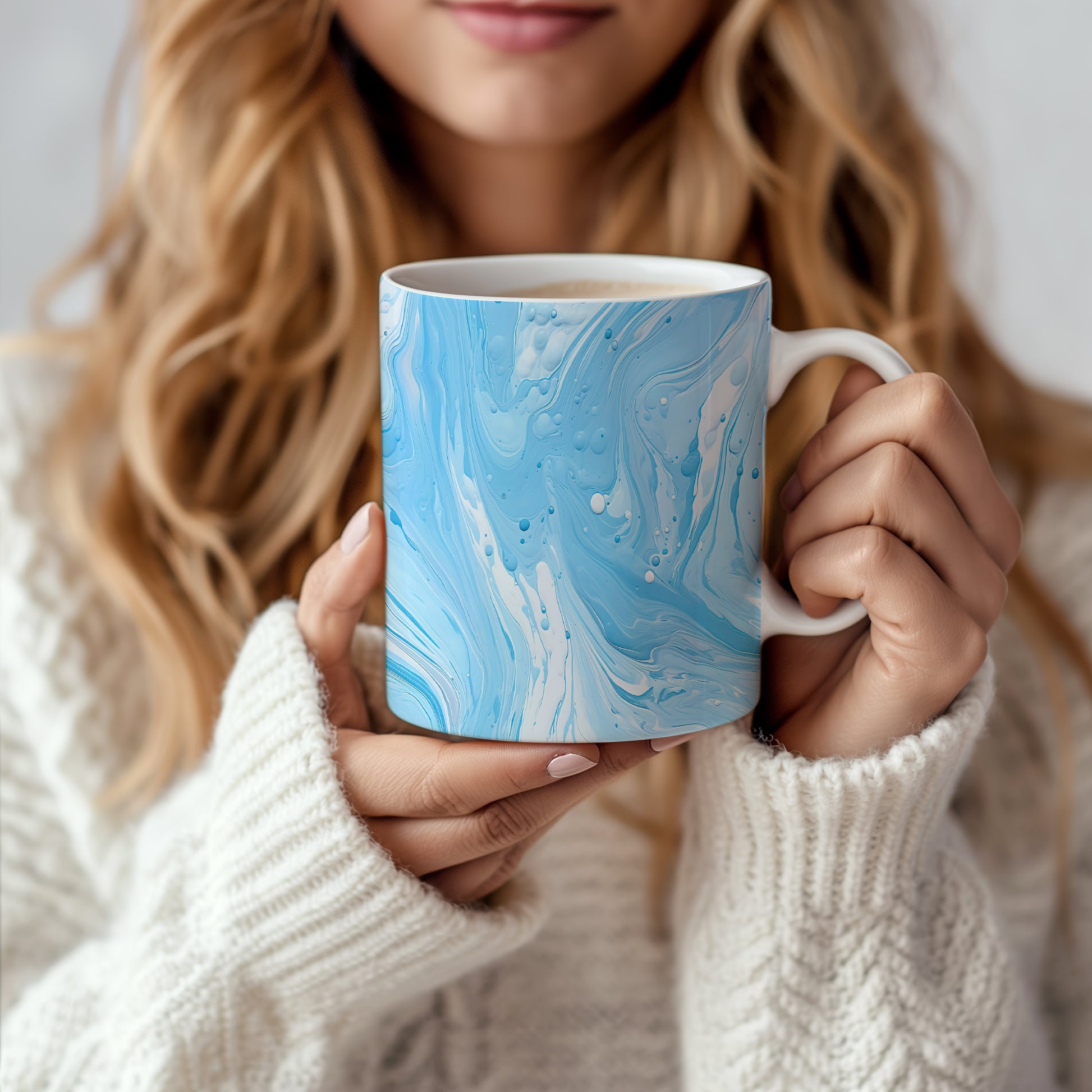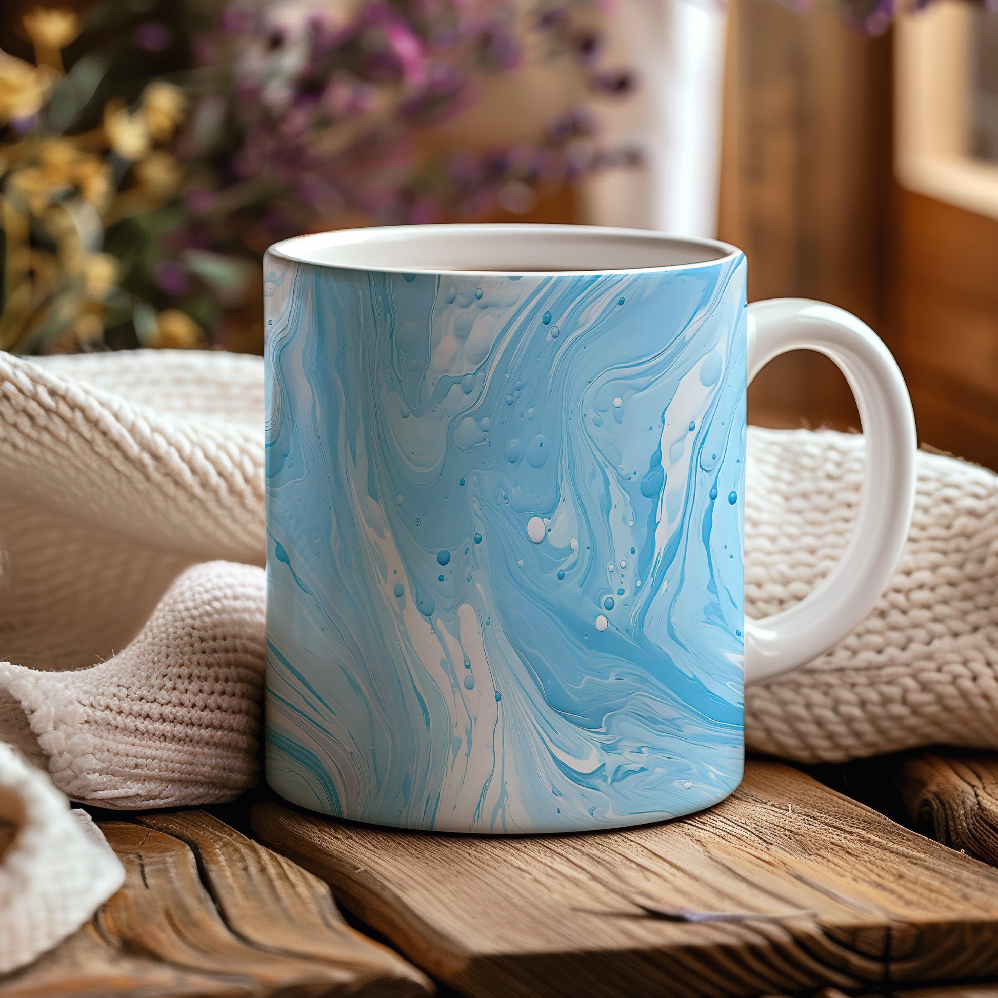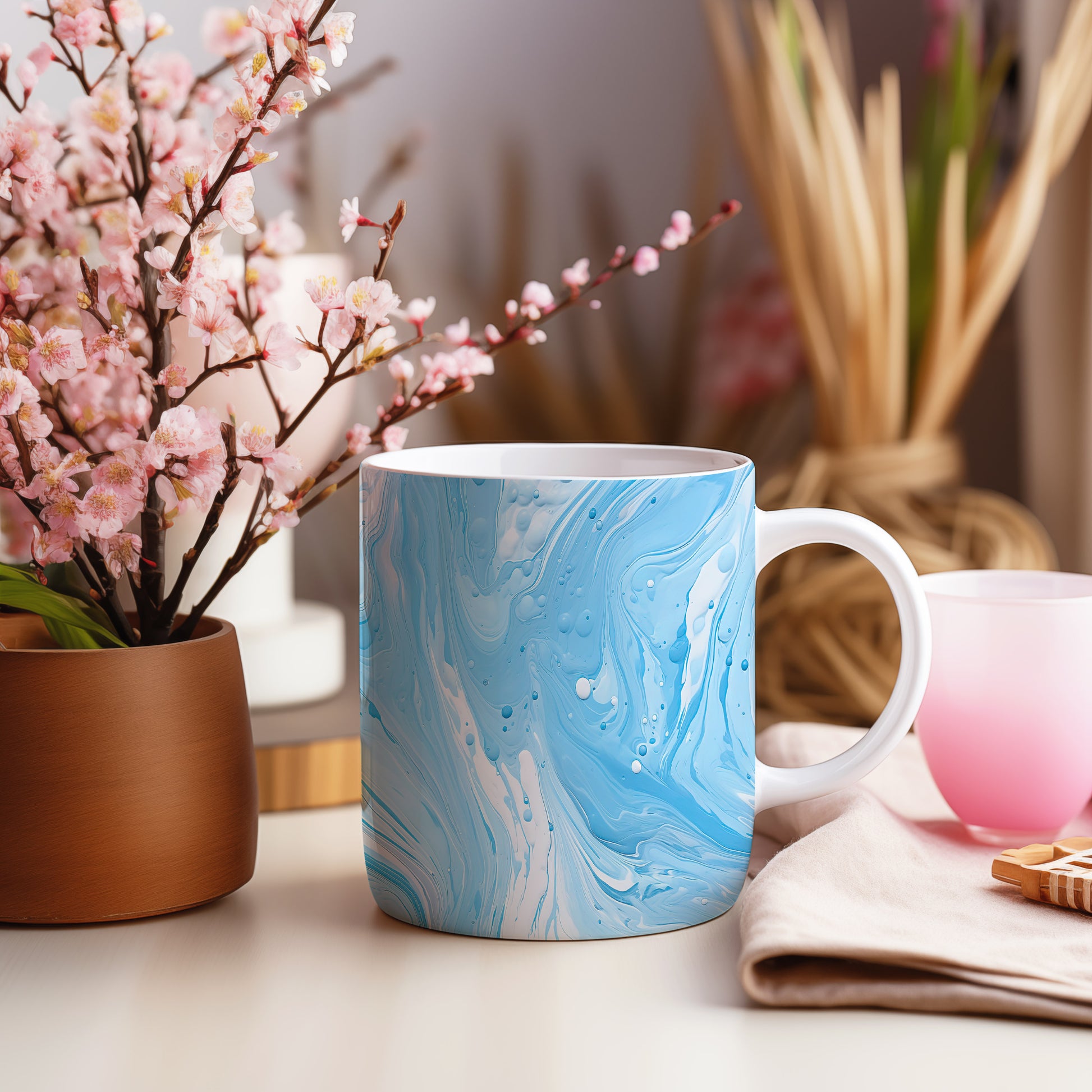 Tento hrnek s mramorováním v modrých a bílých tónech přináší elegantní a moderní design. Je ideální pro milovníky stylového nádobí a skvělým dárkem pro přátele či rodinu. Hrnky o objemu 330 ml jsou vyrobeny z keramiky a jsou vhodné do myčky i mikrovlnky. Díky unikátnímu mramorovému efektu se každý kus stává jedinečným. Užívejte si kávu nebo čaj v tomto krásném hrnku, který dodá vašemu stolování šmrnc.