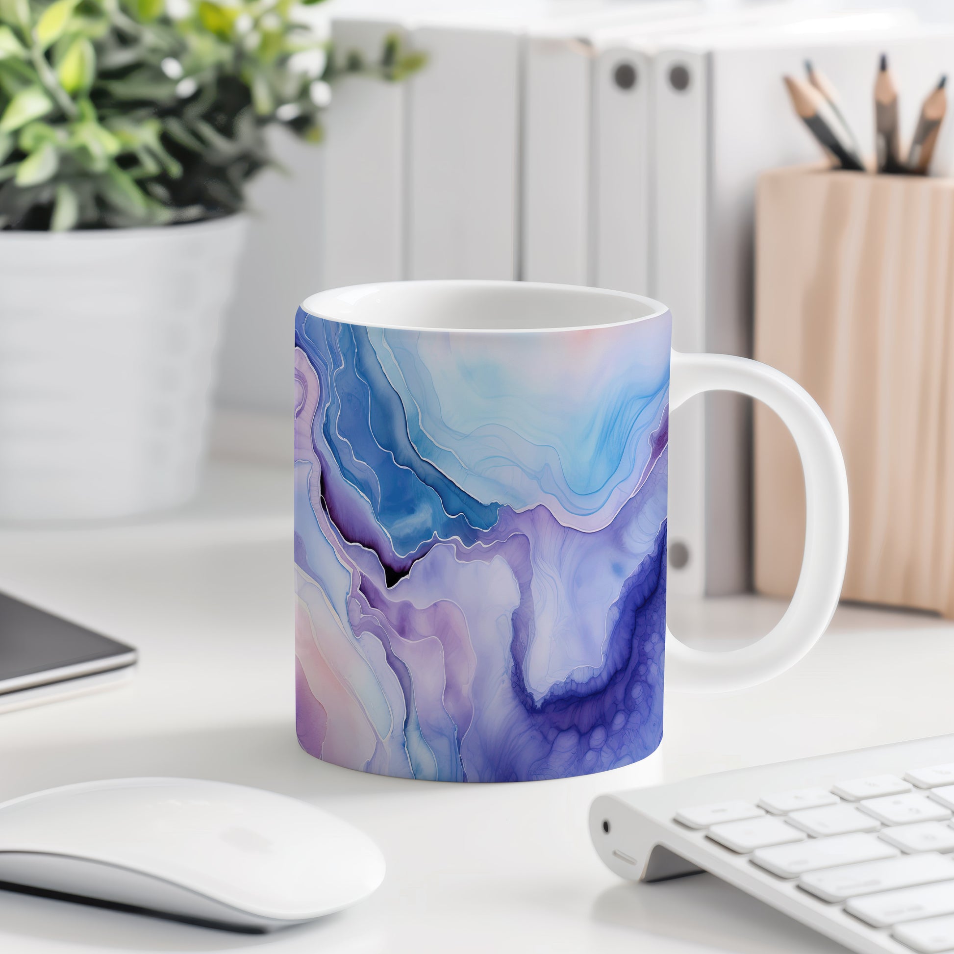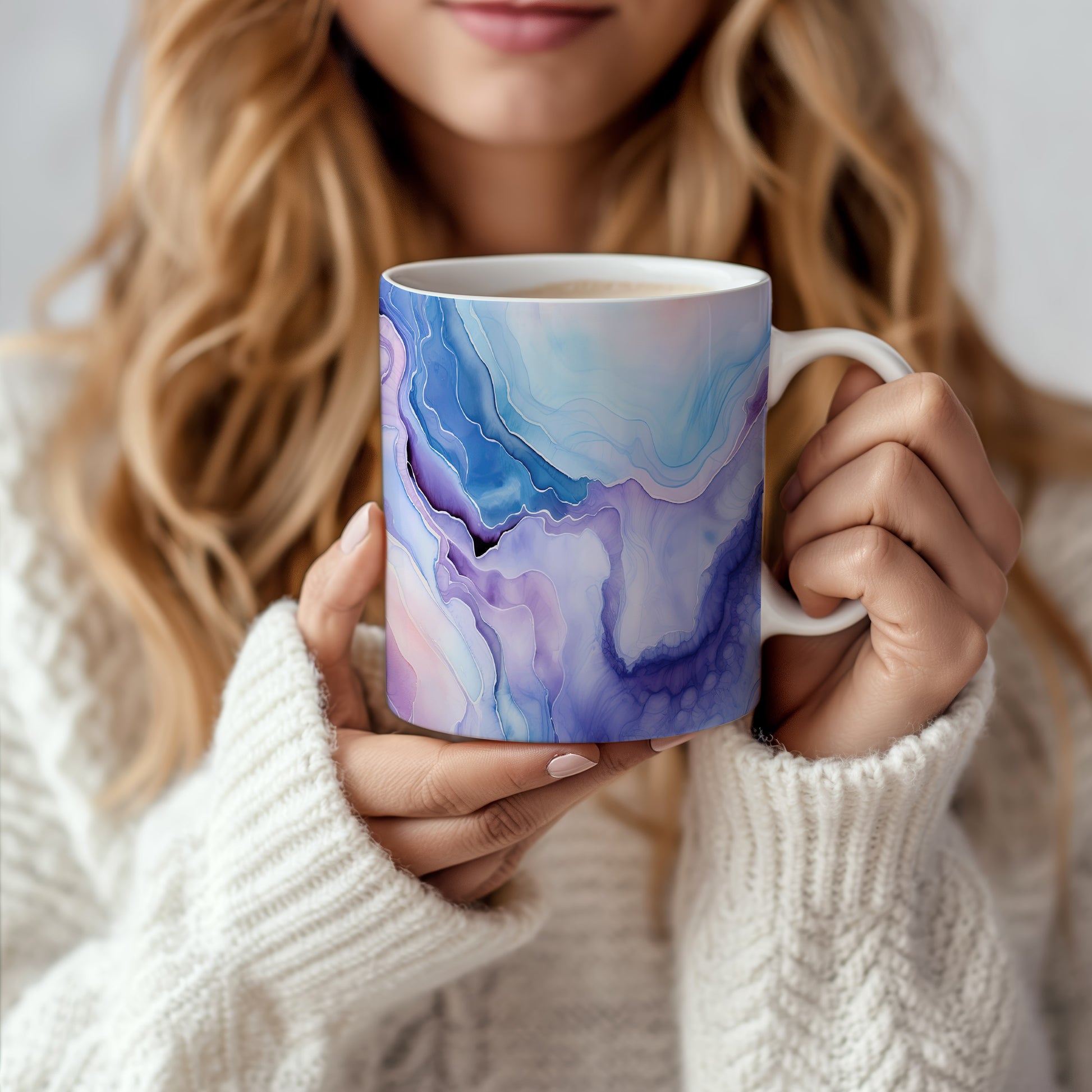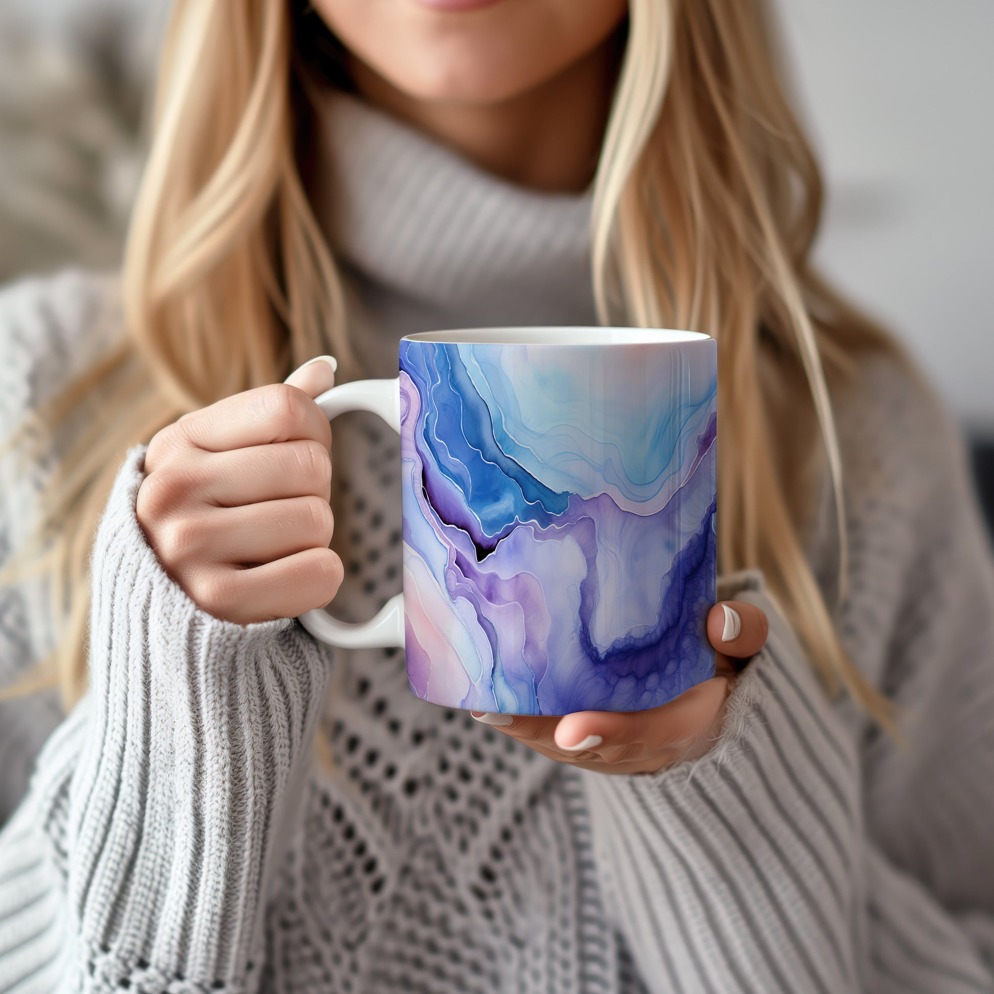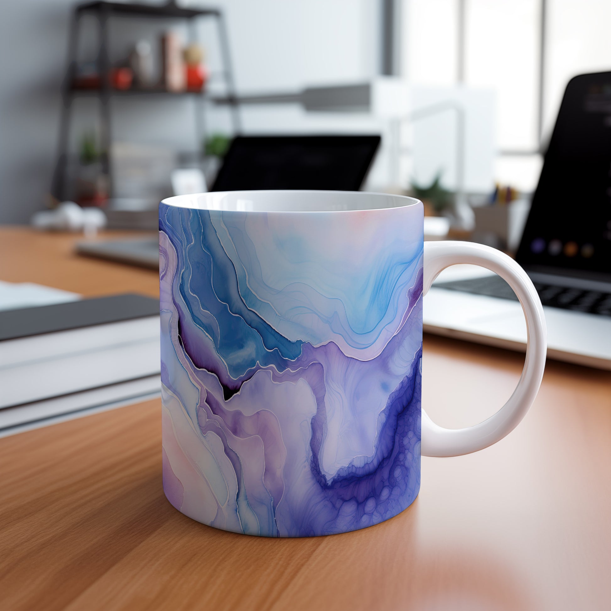 Hrnek s motivem mramorování v modrých a fialových tónech přináší elegantní vzhled díky jemným přechodům barev. Tento stylový kousek je ideální pro milovníky moderního designu a skvělým dárkem pro přátele či rodinu. Materiál: keramika. Objem: 330 ml. Vhodné do myčky i mikrovlnky. Užijte si kávu nebo čaj v hrnku, který zaujme na první pohled.