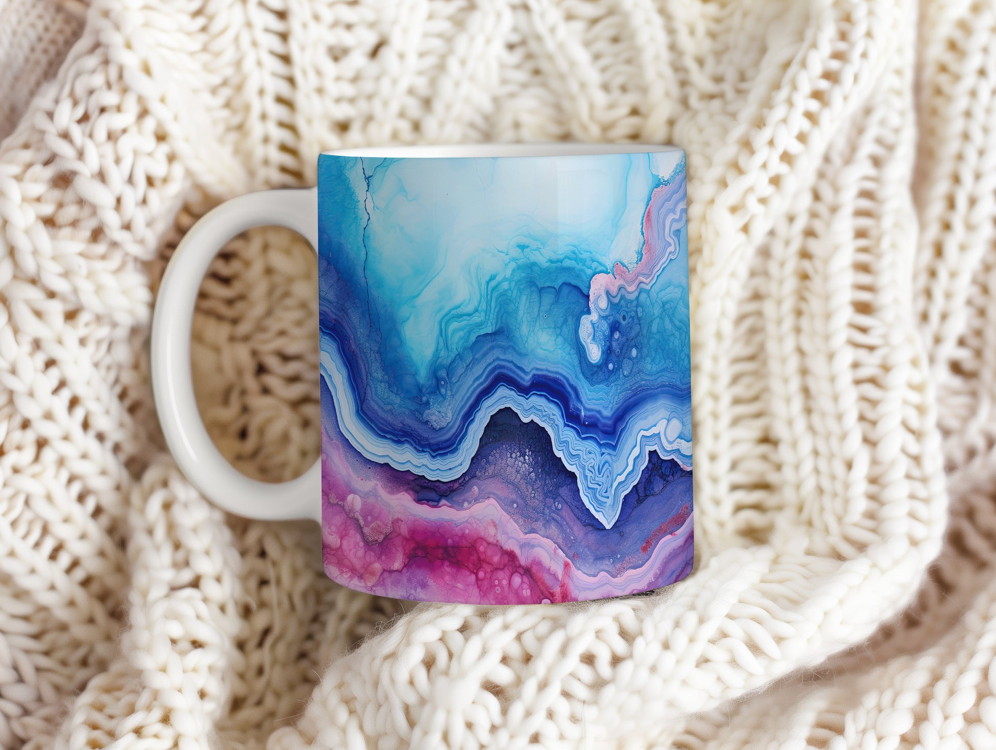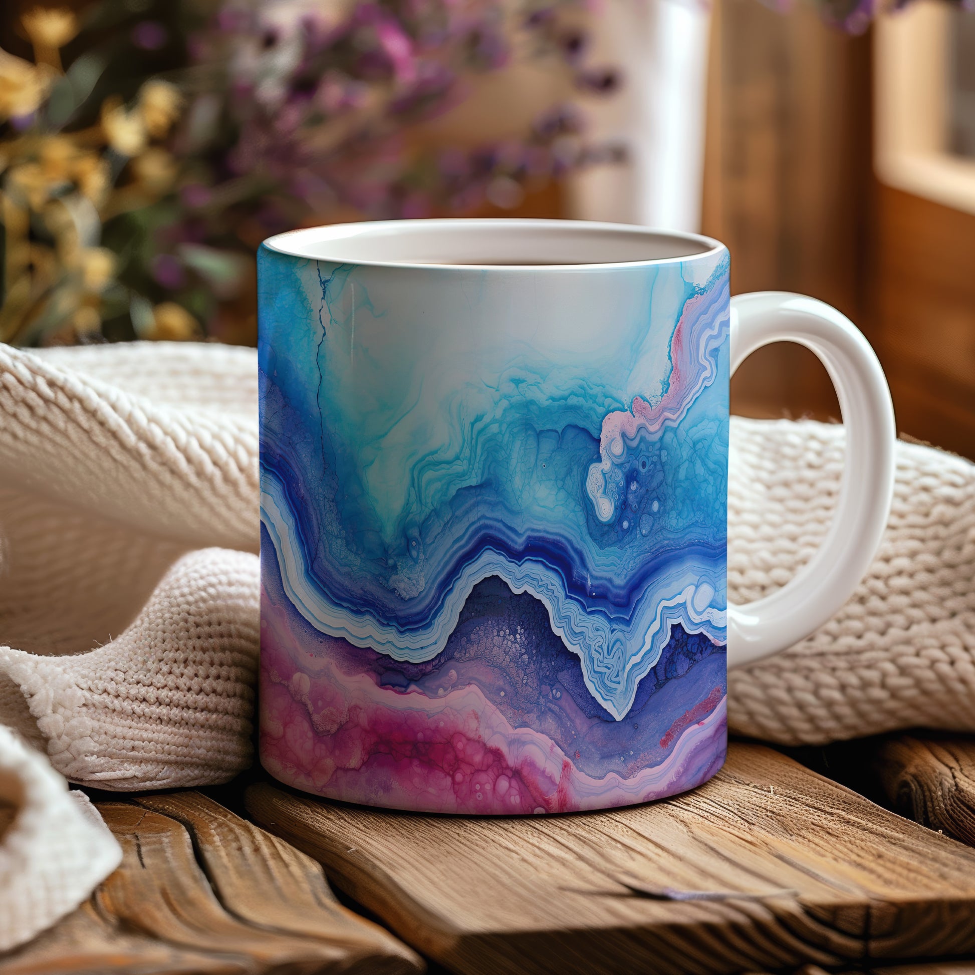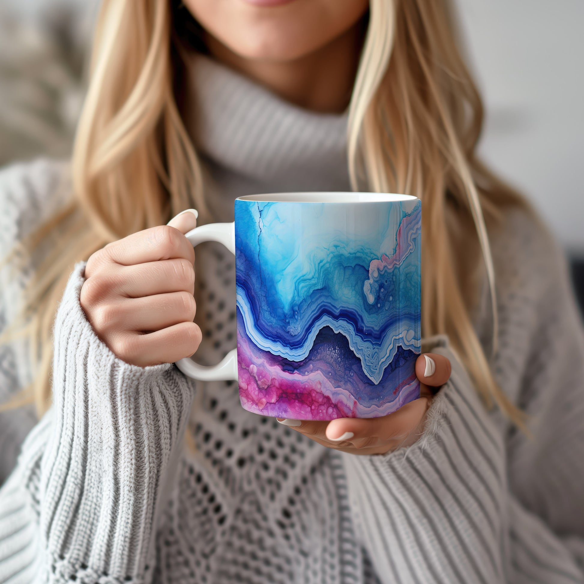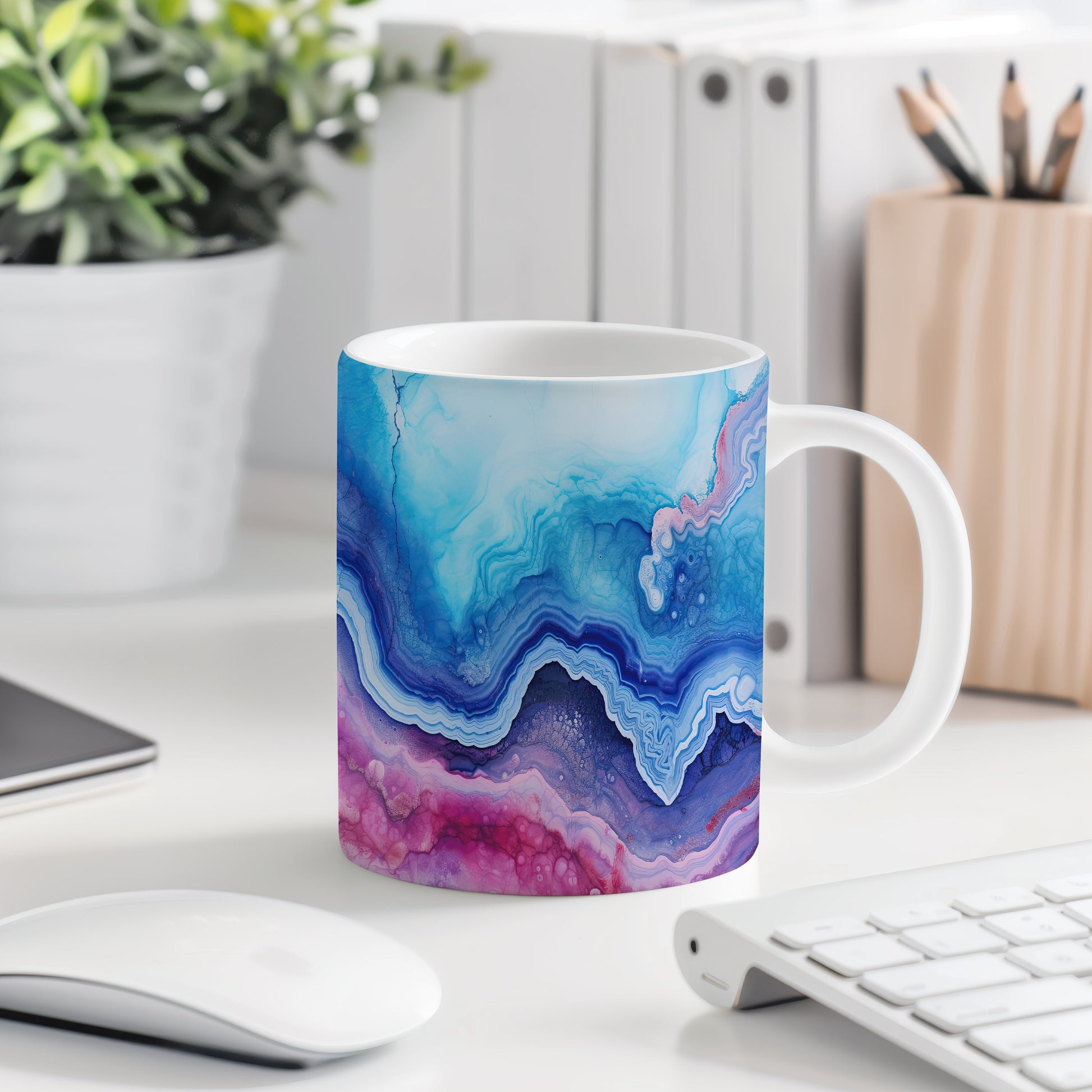 Tento hrnek s mramorováním v modrých a růžových tónech přináší elegantní a moderní vzhled. Je ideální pro milovníky stylového nádobí a skvělým dárkem pro přátele či rodinu. Materiál: keramika. Objem: 330 ml. Vhodné do myčky i mikrovlnky. Díky svému jedinečnému designu přidá do každého nápoje špetku umění.