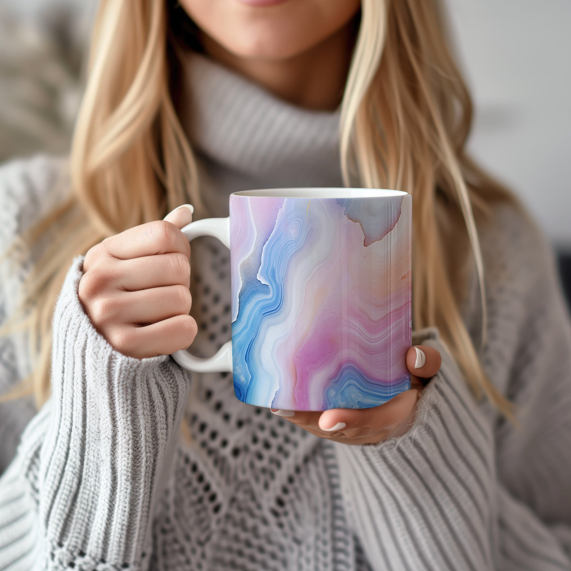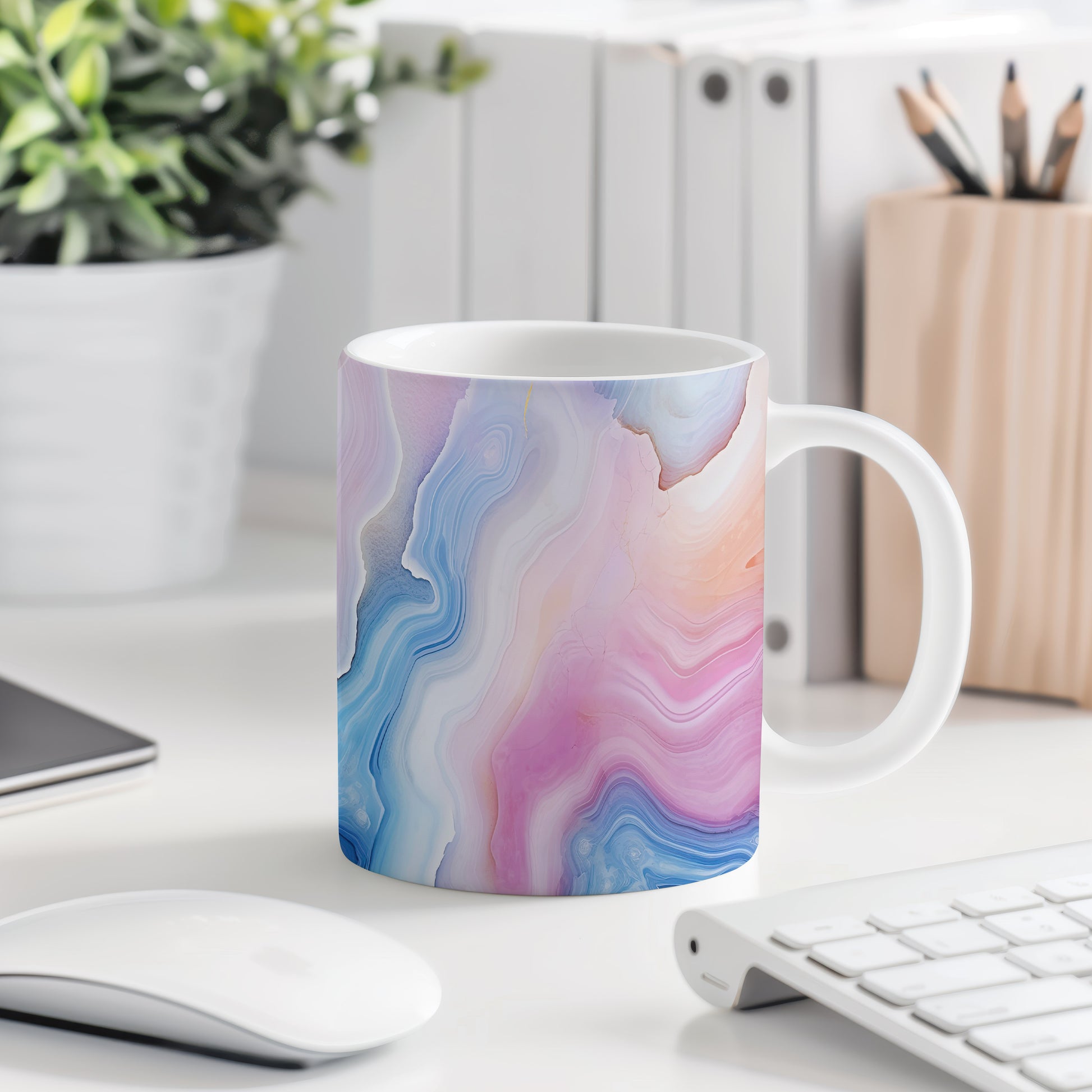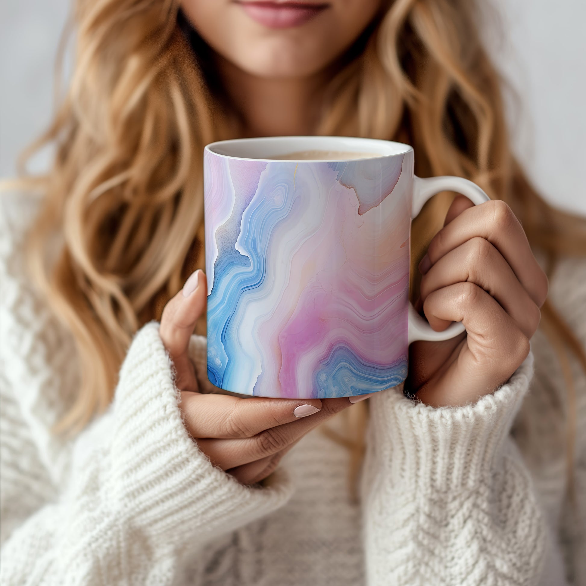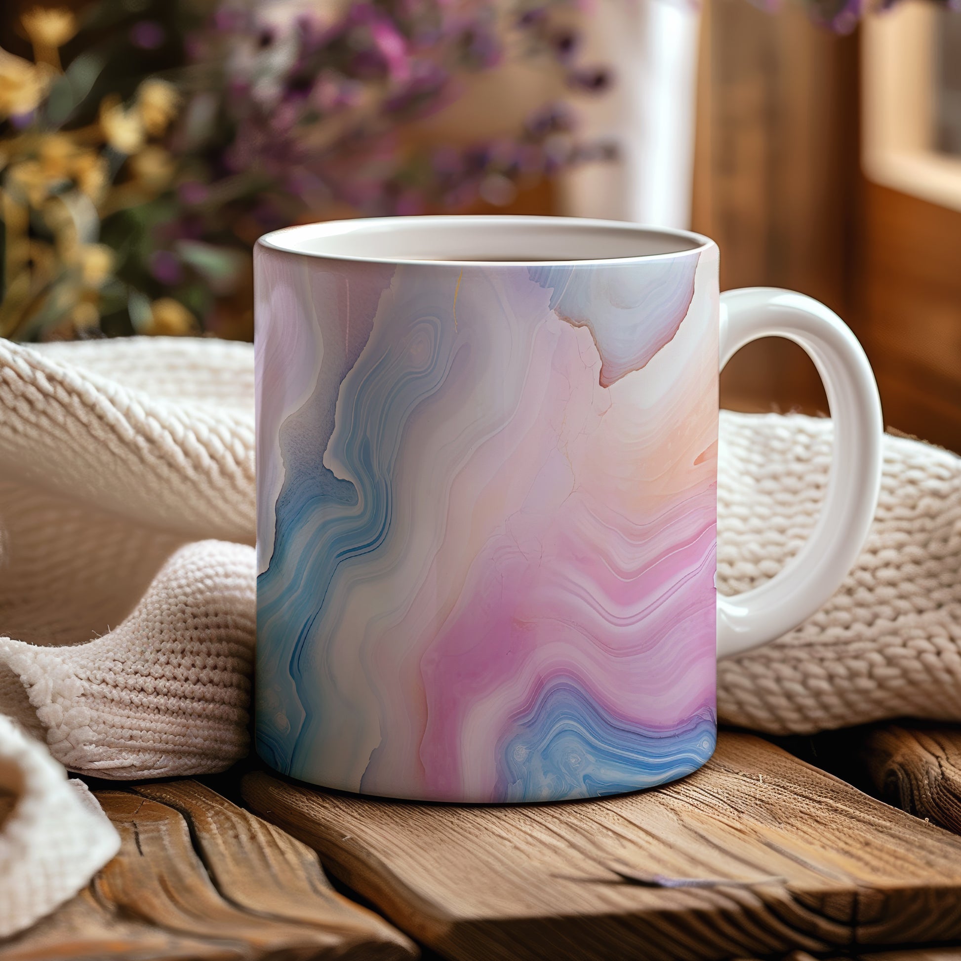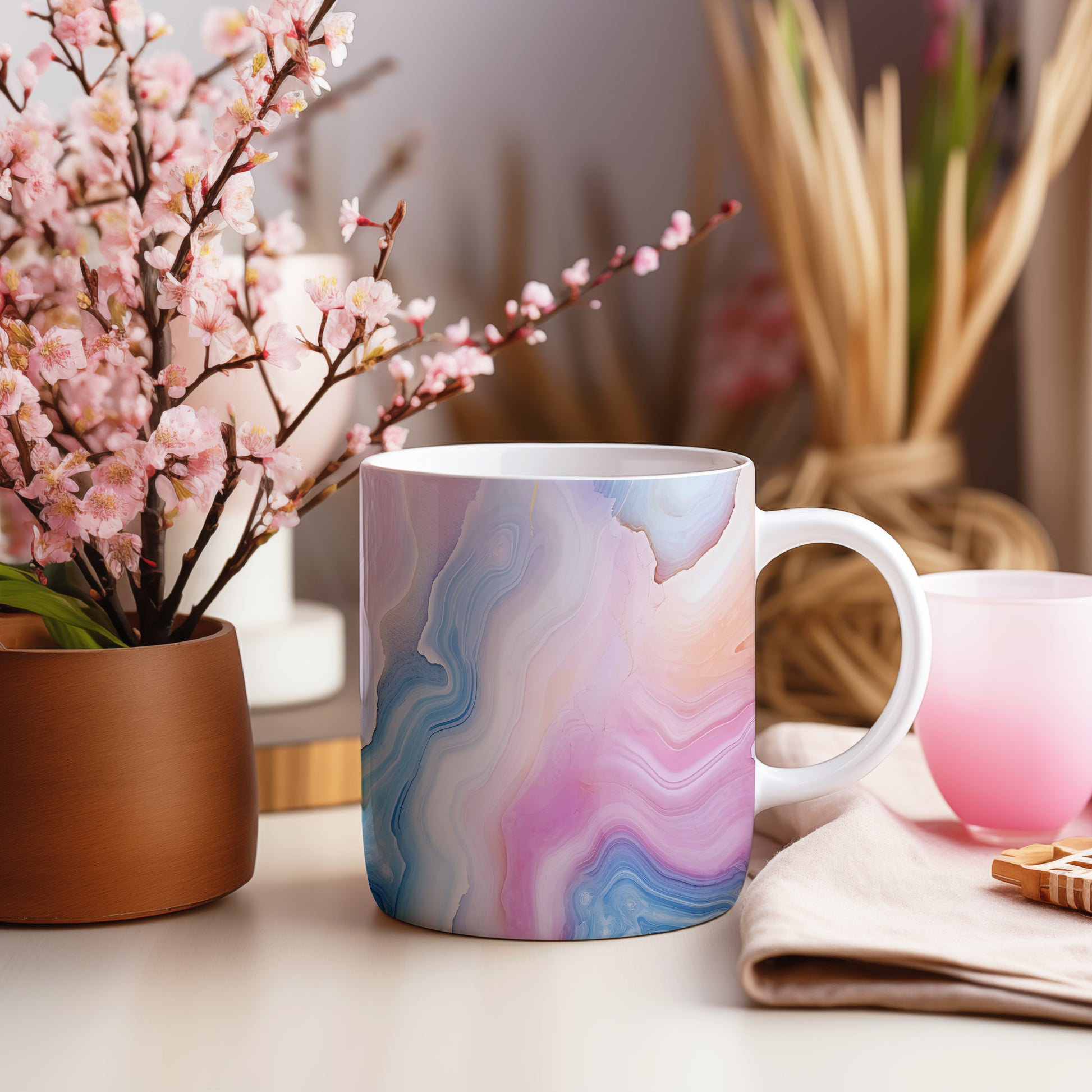 Tento hrnek s mramorováním v modrých a růžových tónech přináší elegantní a moderní vzhled. Je ideální pro milovníky stylového nádobí a skvělým dárkem pro přátele či rodinu. Materiál: keramika. Objem: 330 ml. Vhodné do myčky i mikrovlnky. Díky svému designu přidá do každého nápoje špetku luxusu.