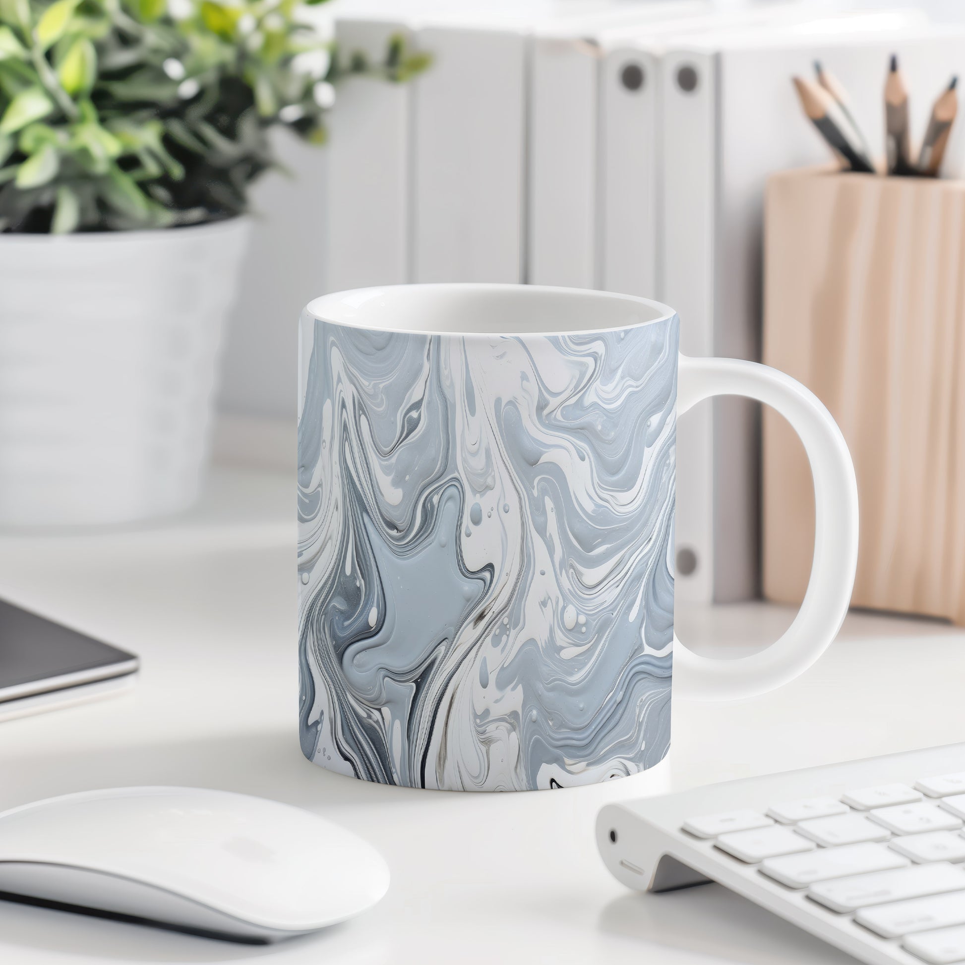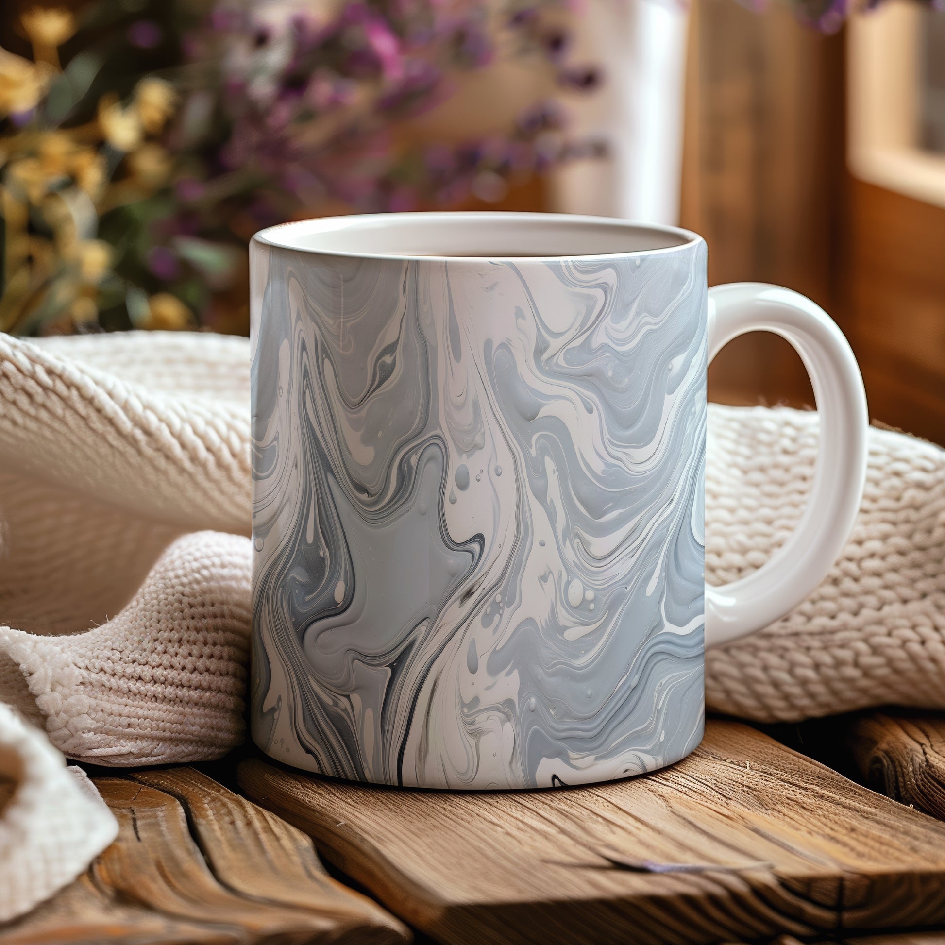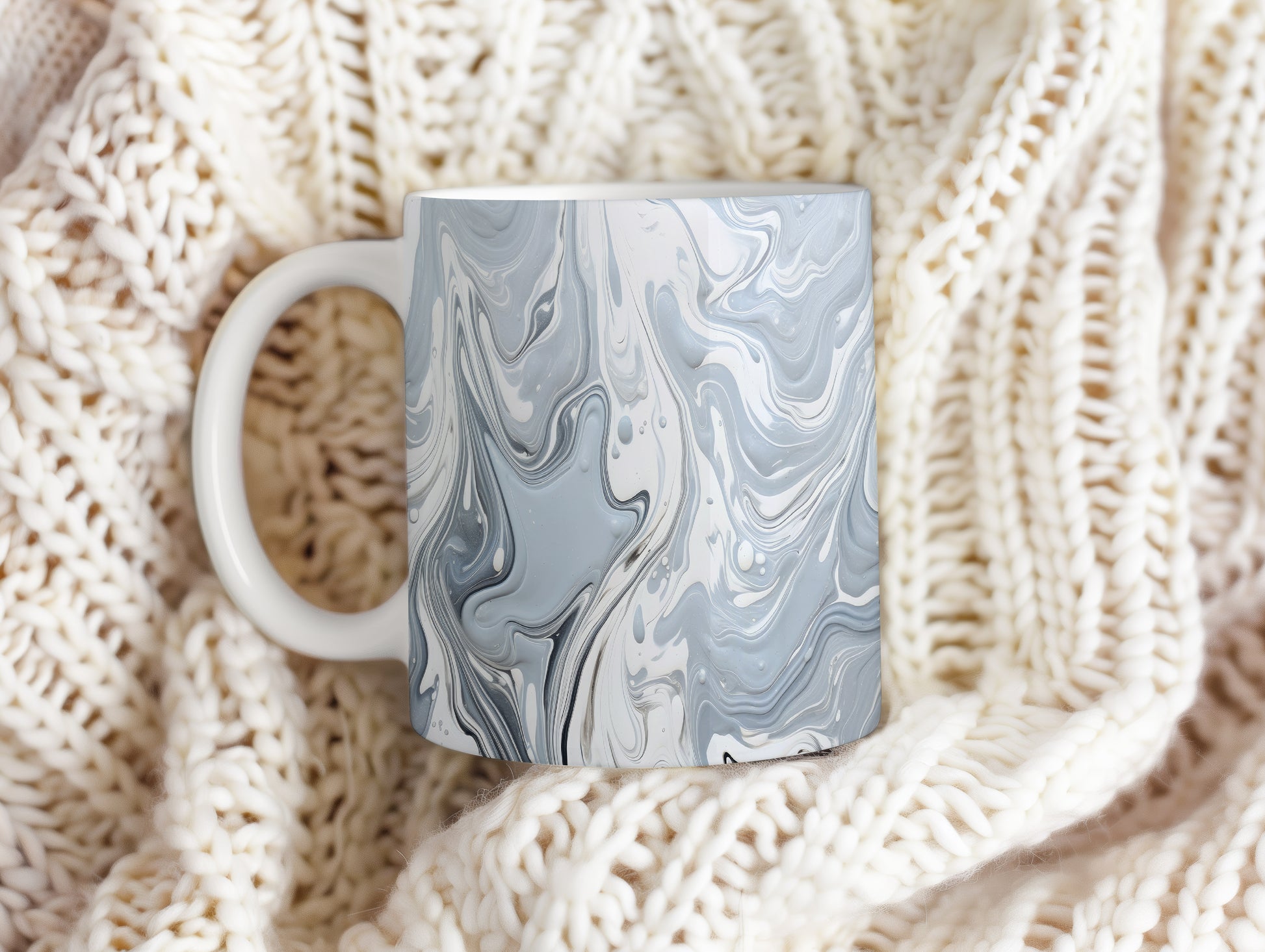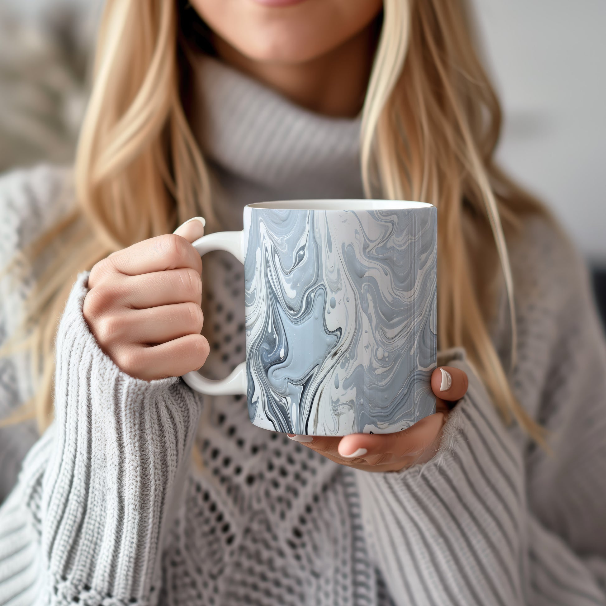 Tento hrnek s mramorováním v modrých a šedých tónech přináší elegantní a moderní vzhled. Je ideální pro milovníky stylového nádobí a skvělým dárkem pro přátele či rodinu. Materiál: keramika. Objem: 330 ml. Vhodné do myčky i mikrovlnky. Díky svému designu přidává do každodenního pití kávy nebo čaje nádech luxusu.