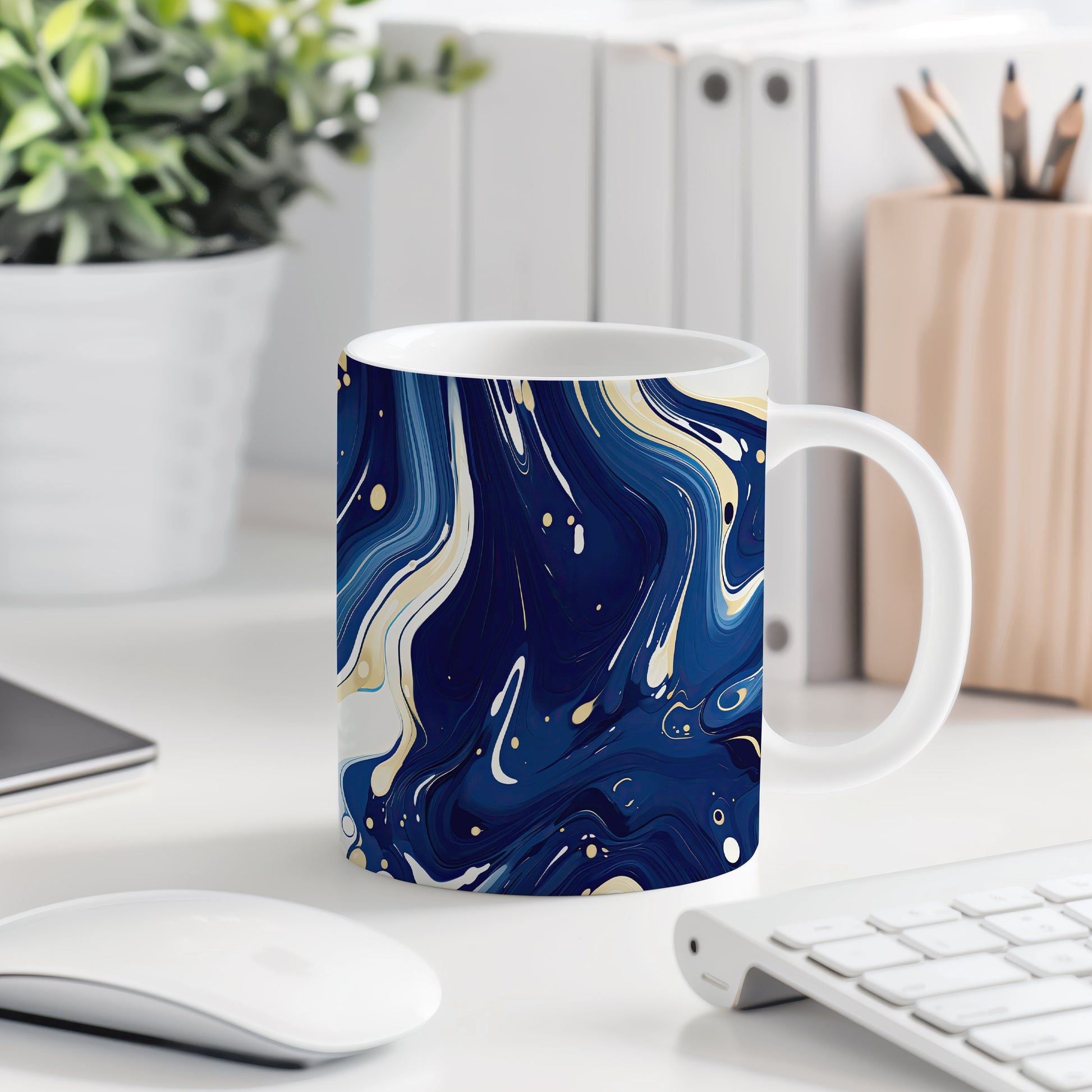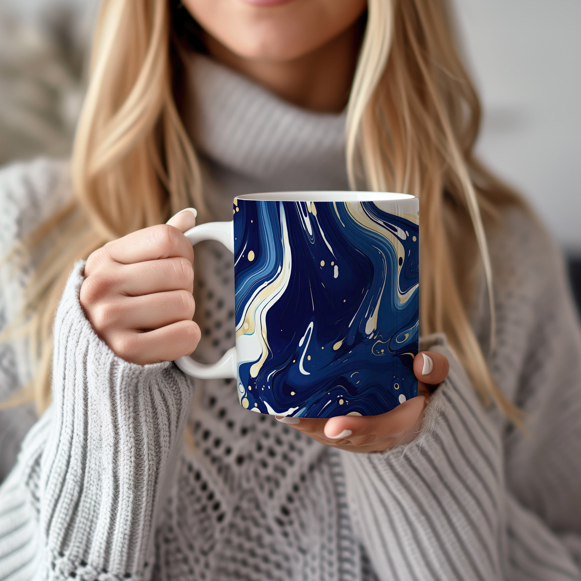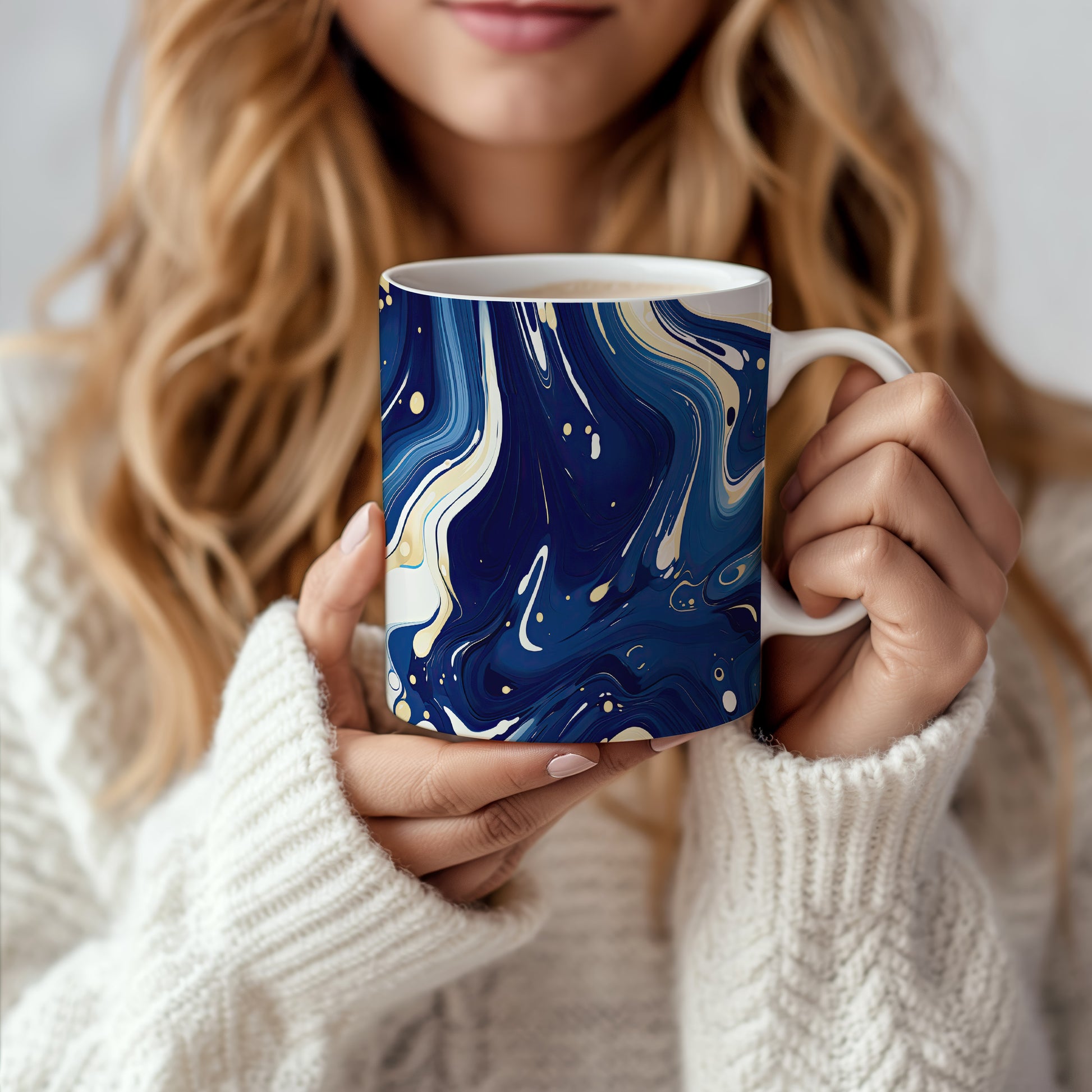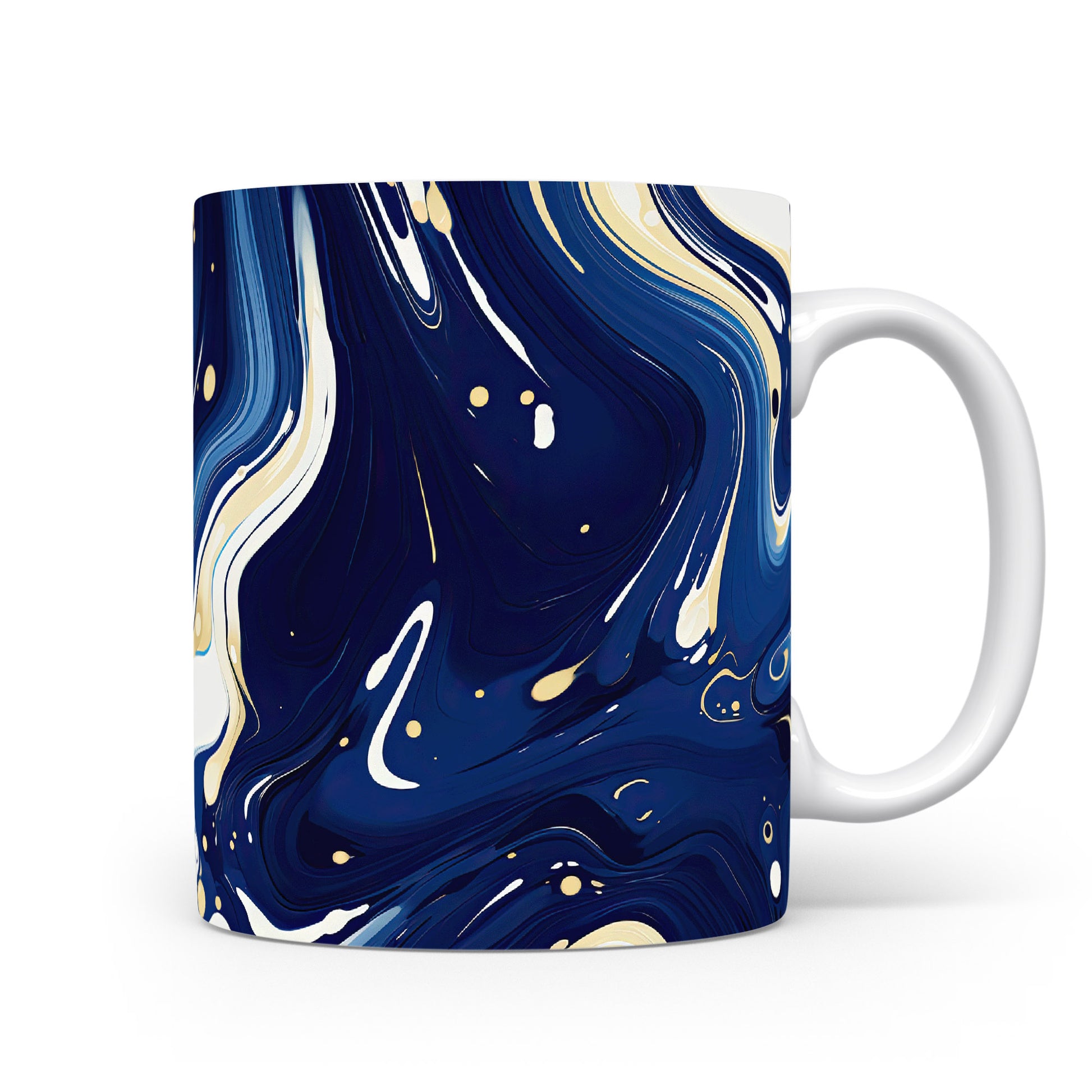 Hrnek s mramorováním v modrých a zlatých tónech – modrými detaily