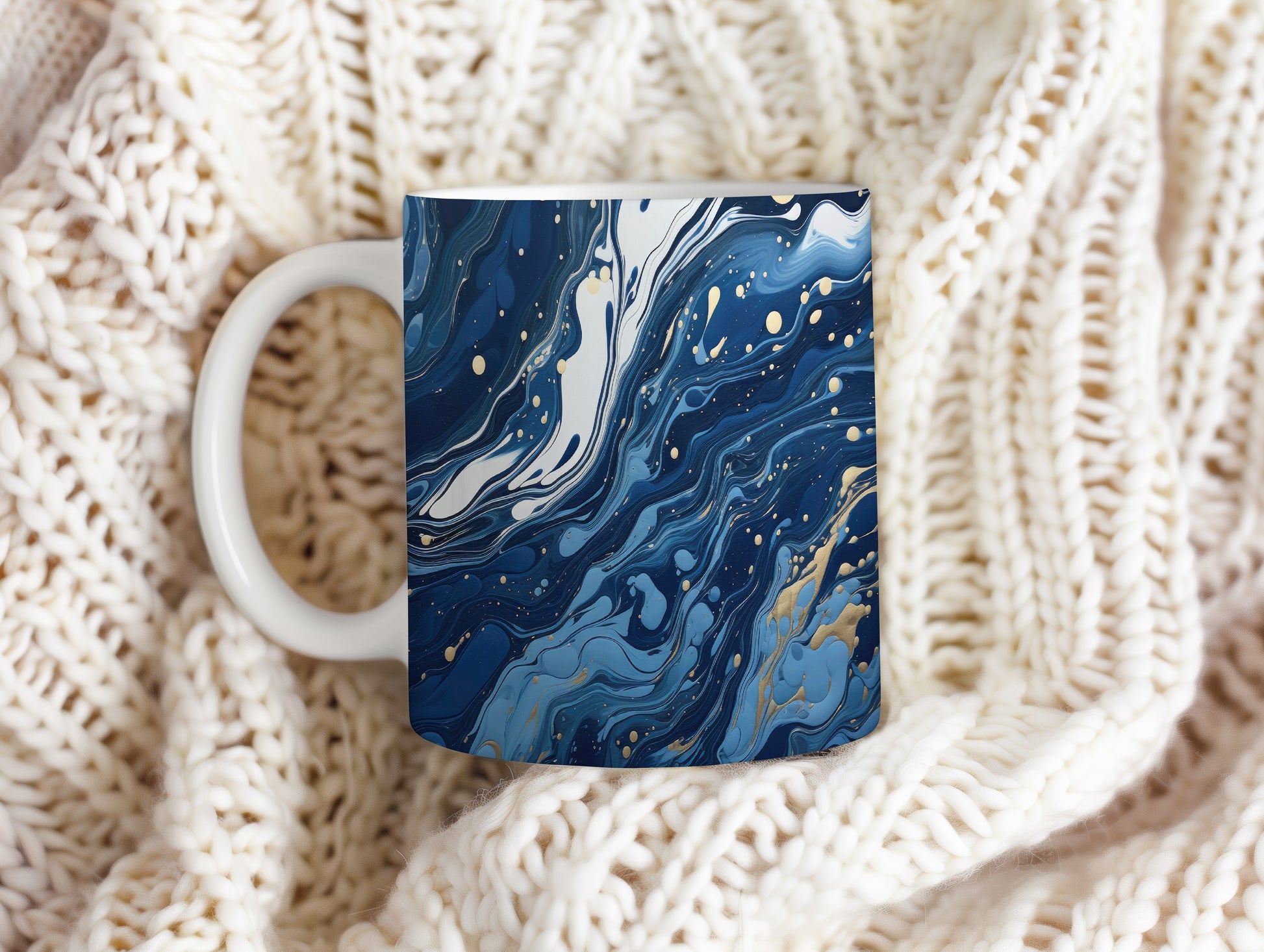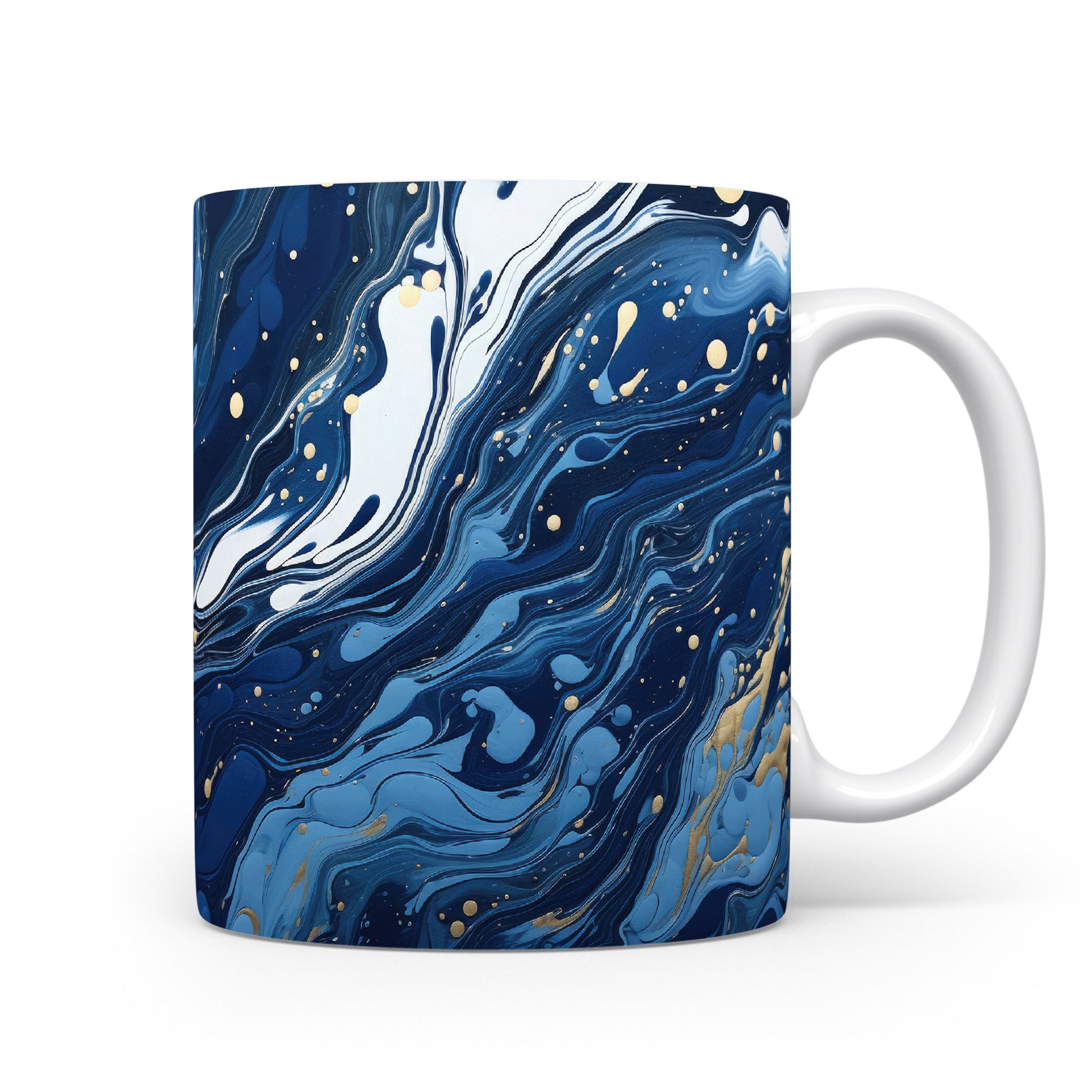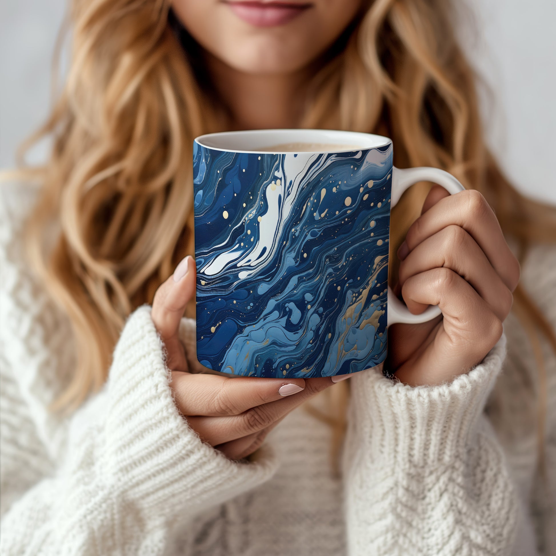 Hrnek s mramorováním v modrých a zlatých tónech – originálním motivem