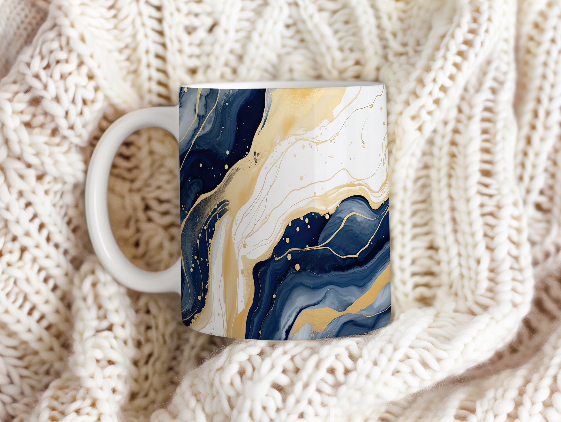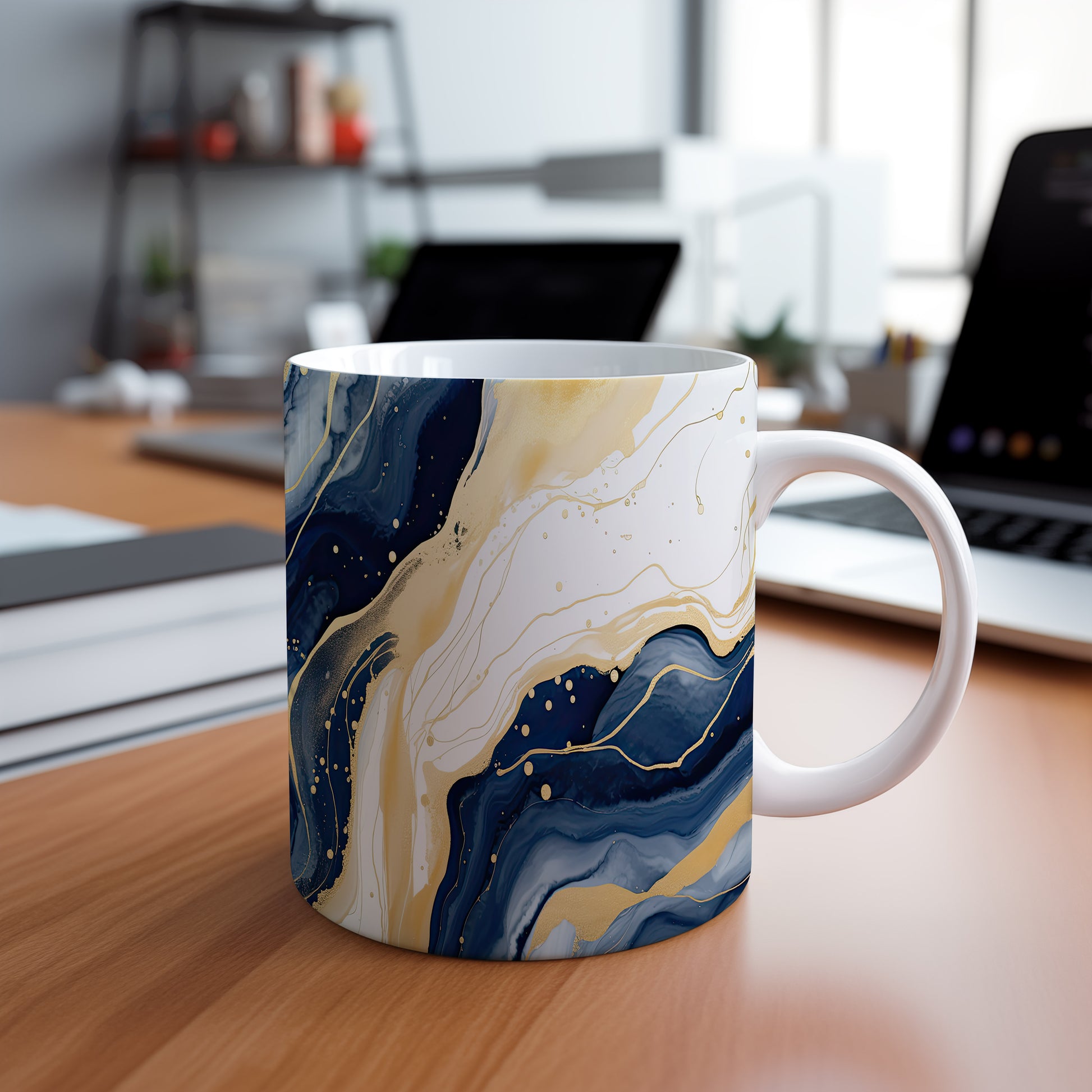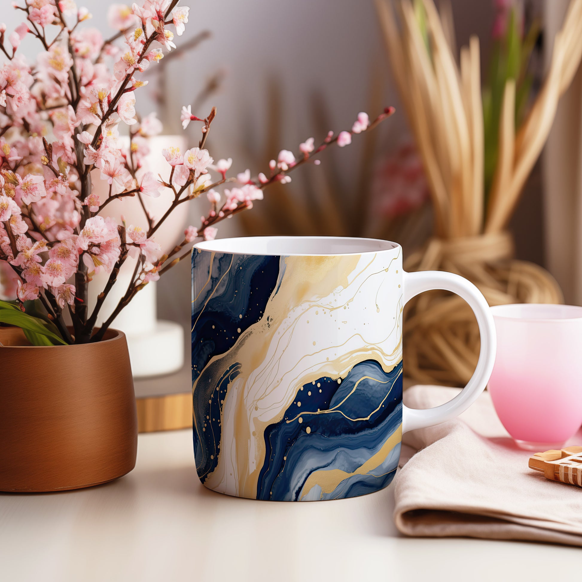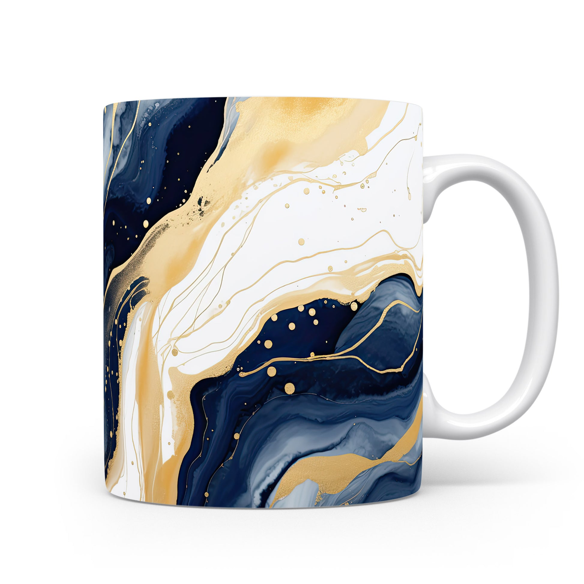 Tento hrnek s mramorovaným vzorem v námořnické a zlaté barvě přináší moderní a stylový vzhled. Je ideální pro milovníky designu a skvělým dárkem pro přátele či rodinu. Materiál: keramika. Objem: 330 ml. Vhodné do myčky i mikrovlnky. Díky svému elegantnímu provedení se stane ozdobou každého stolu.