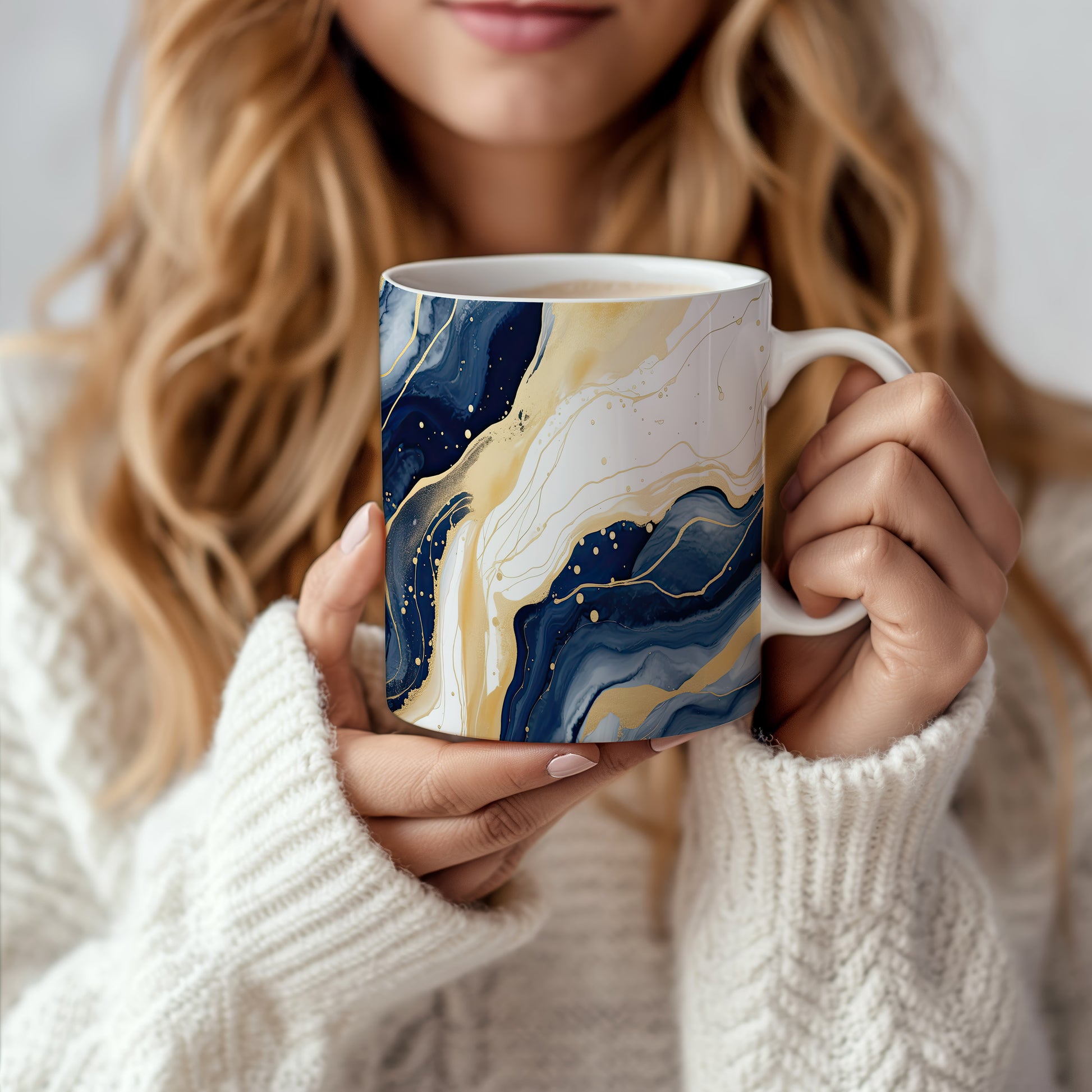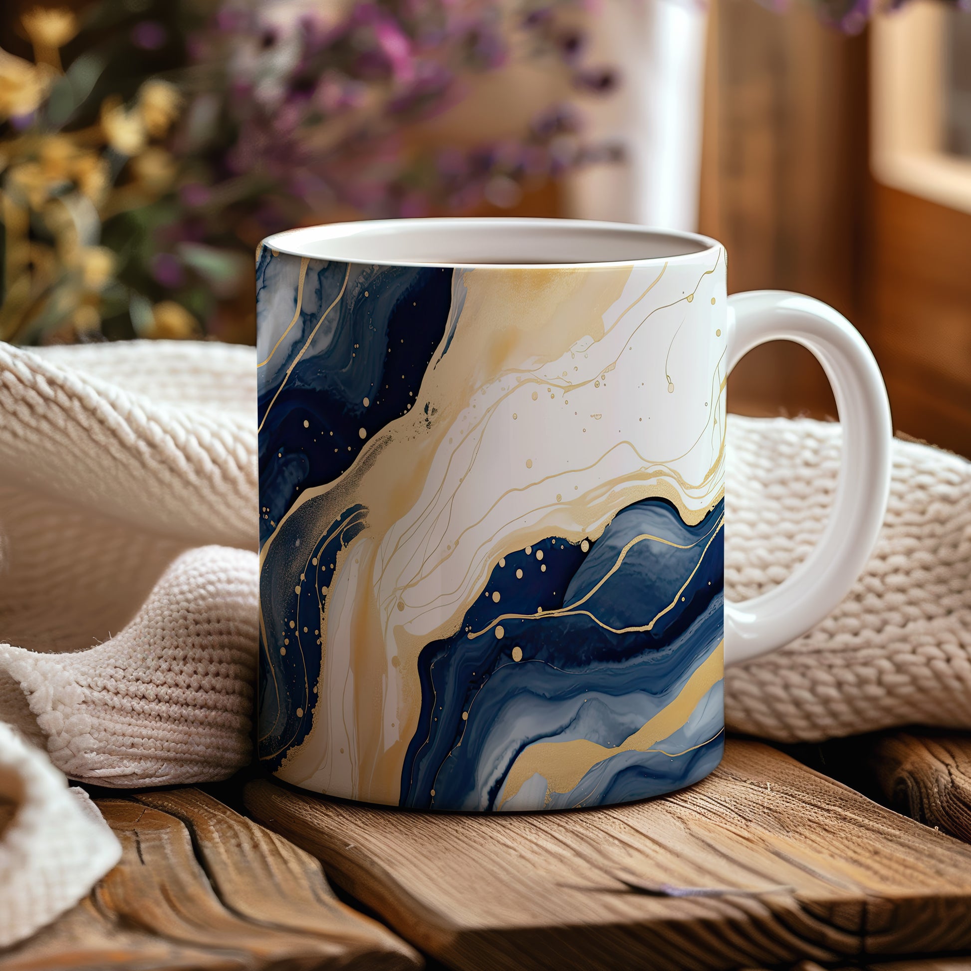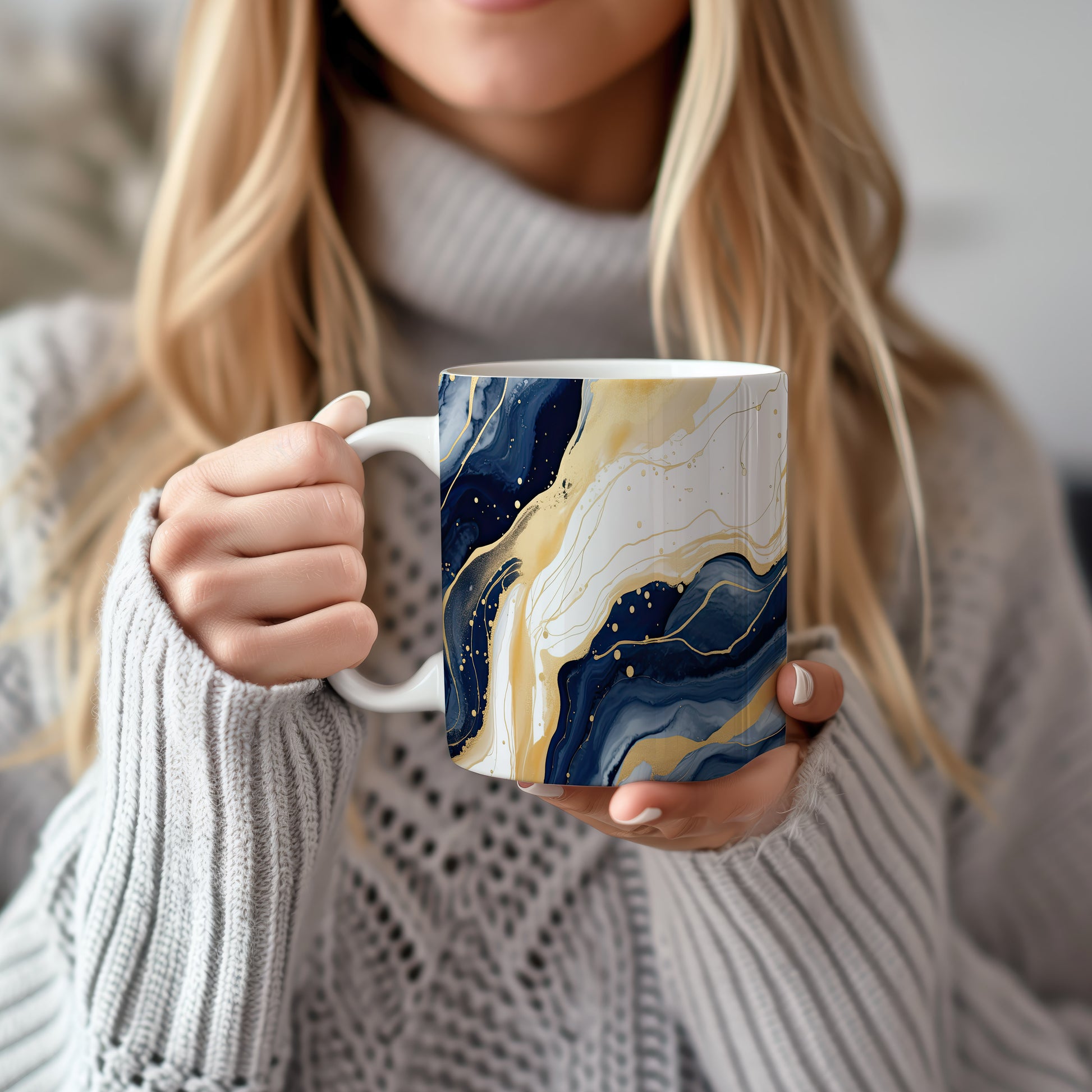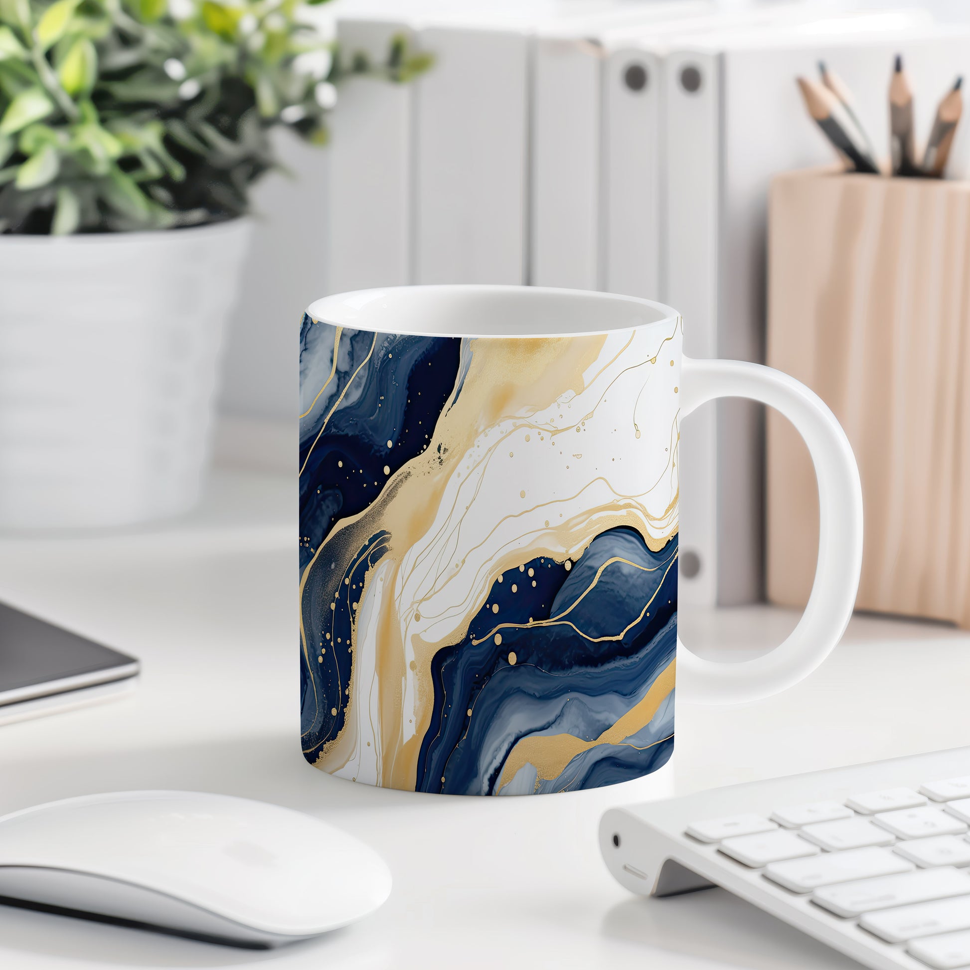 Tento hrnek s mramorovaným vzorem v námořnické a zlaté barvě přináší moderní a stylový vzhled. Je ideální pro milovníky designu a skvělým dárkem pro přátele či rodinu. Materiál: keramika. Objem: 330 ml. Vhodné do myčky i mikrovlnky. Díky svému elegantnímu provedení se stane ozdobou každého stolu.