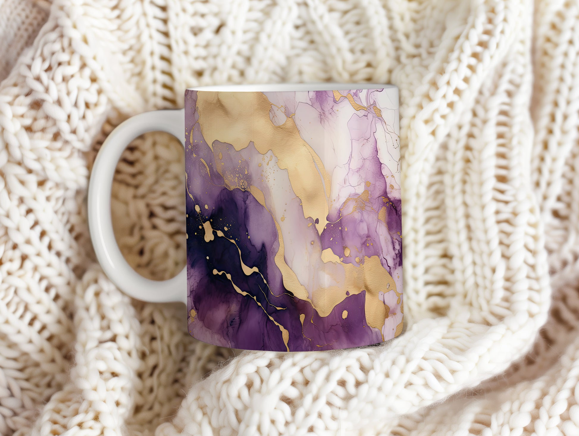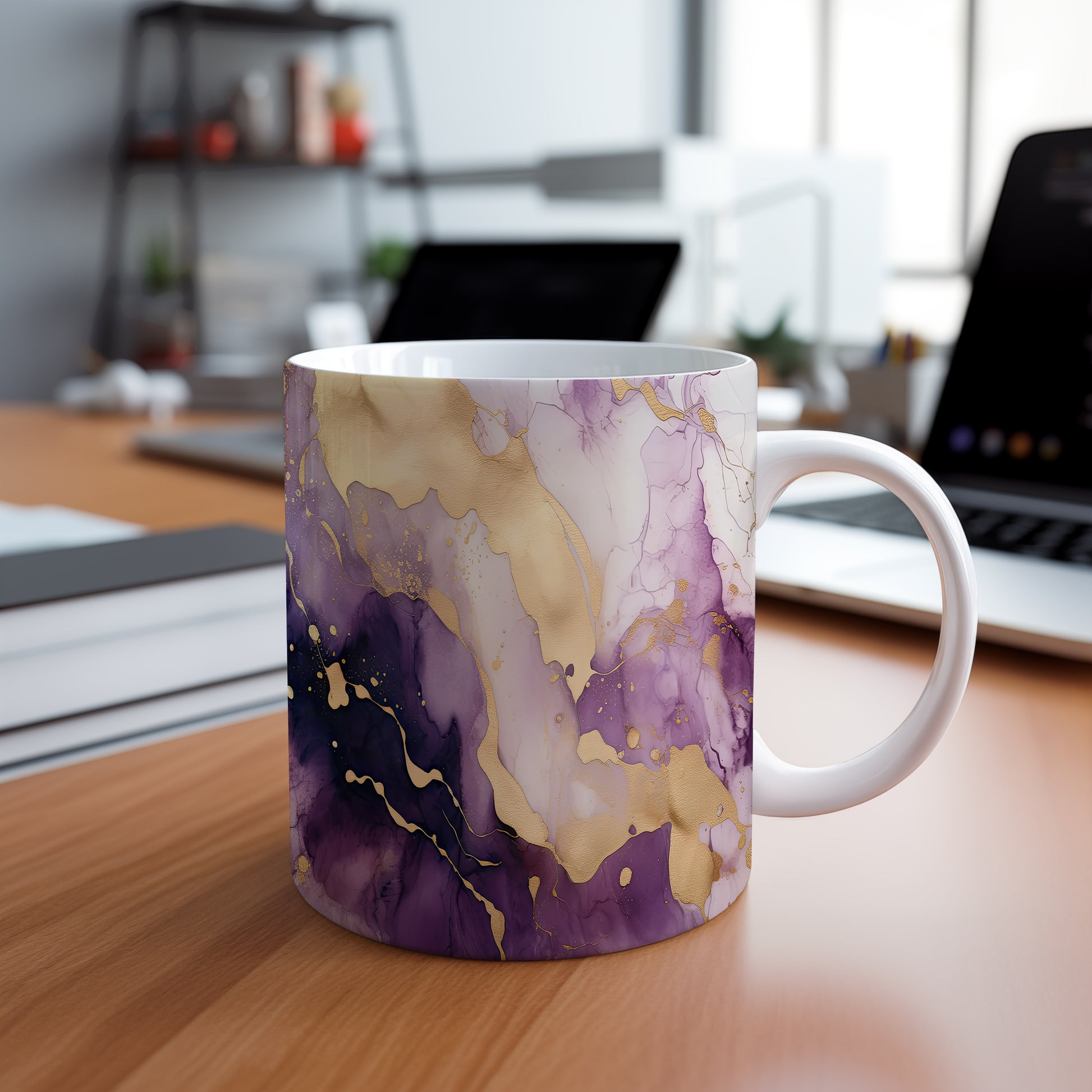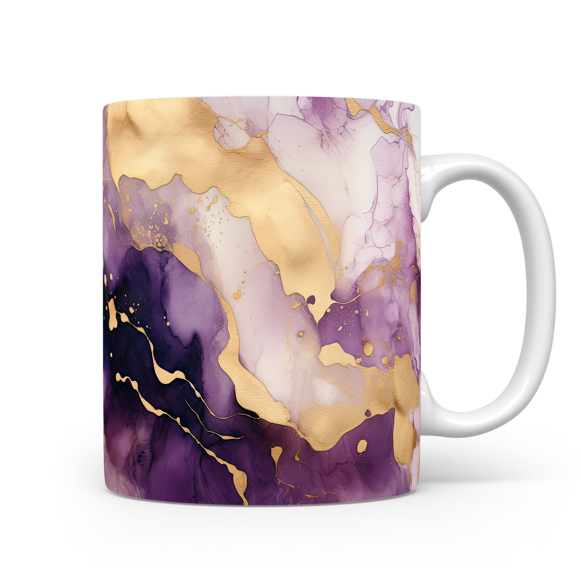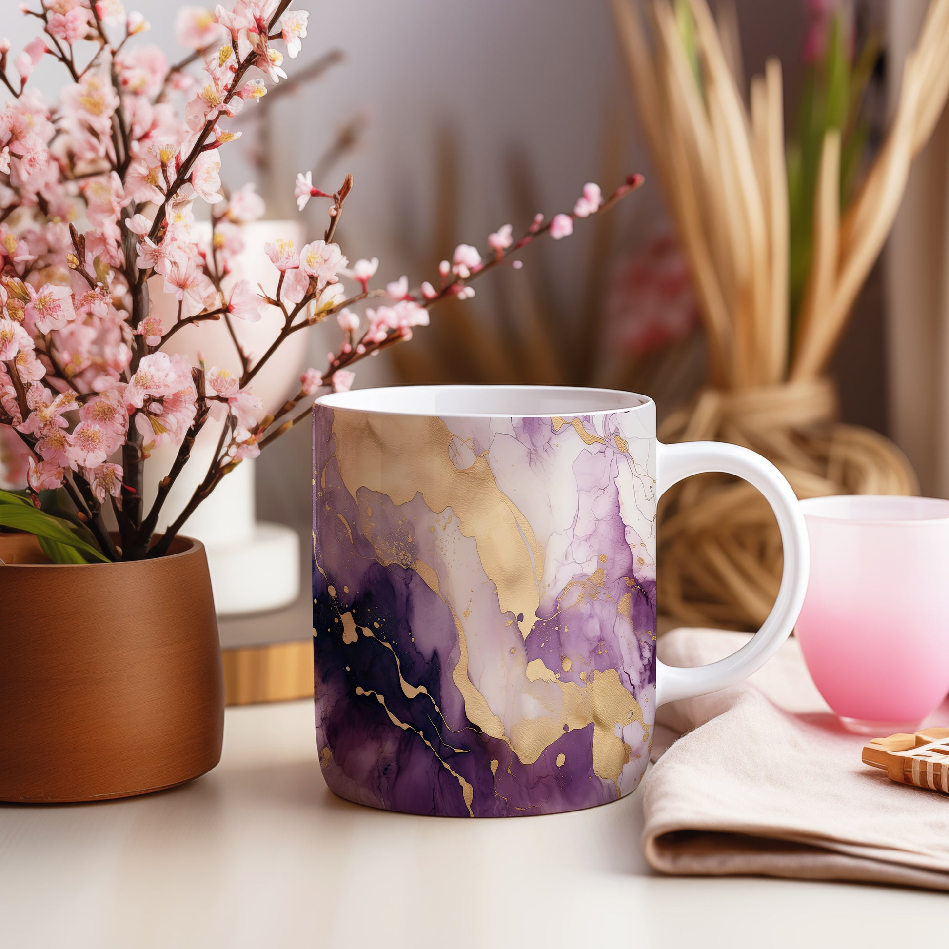 Tento hrnek s mramorováním v purpurových odstínech a zlatými detaily přináší elegantní a stylový vzhled. Je ideální pro milovníky originálního designu a skvělým dárkem pro přátele či rodinu. Materiál: keramika. Objem: 330 ml. Vhodné do myčky i mikrovlnky. Díky svému jedinečnému vzhledu se stane ozdobou každého stolu.