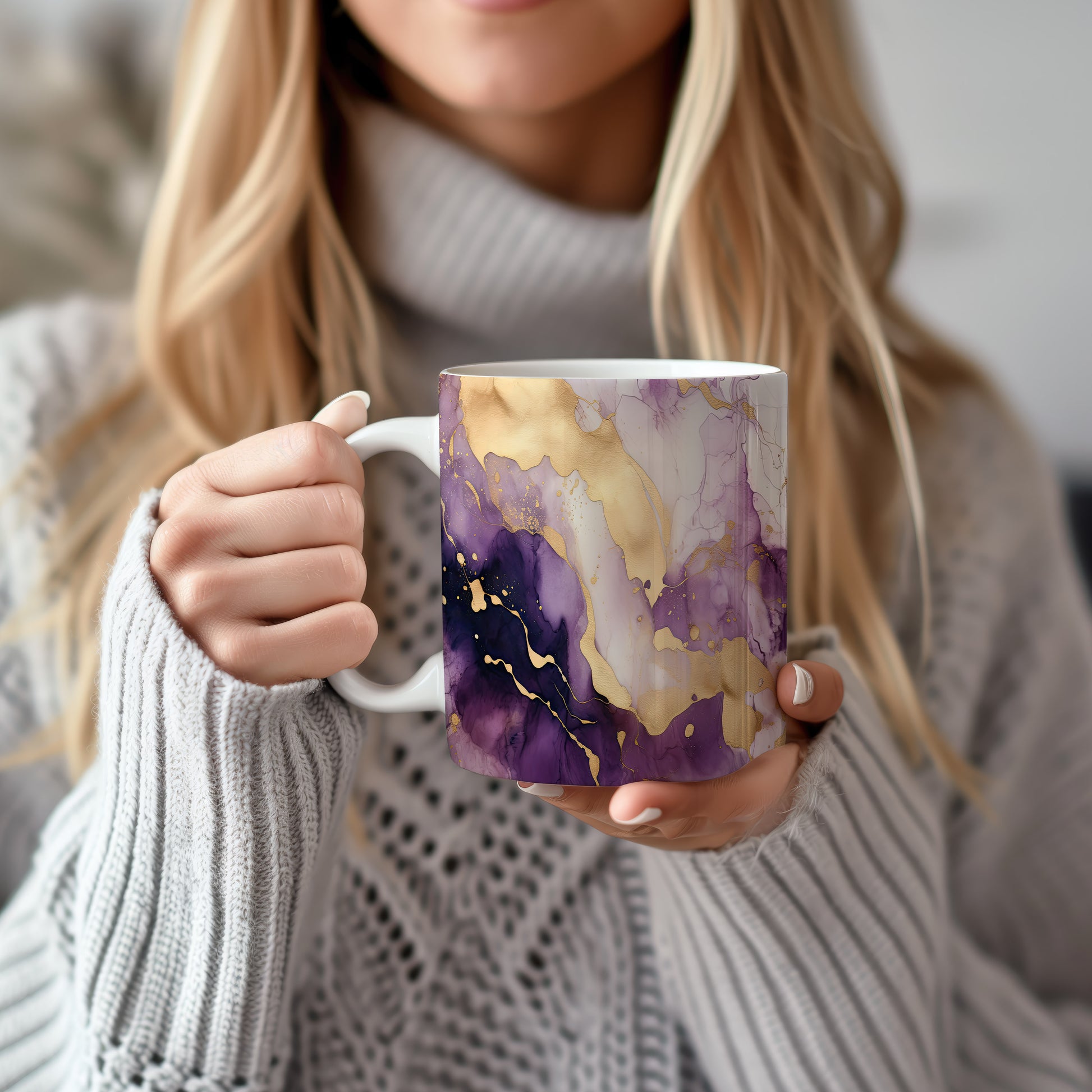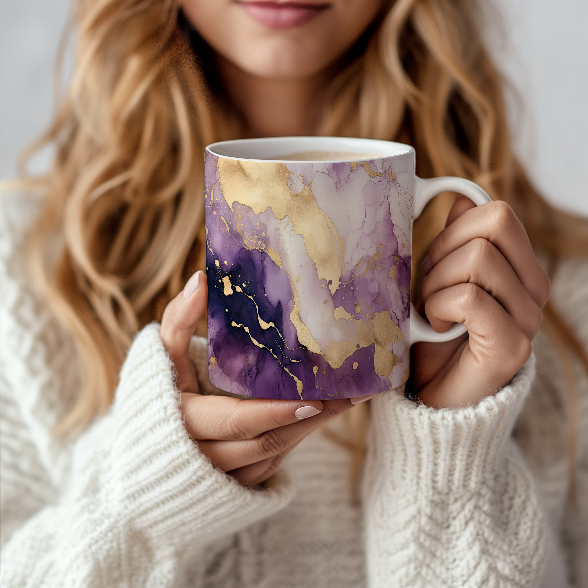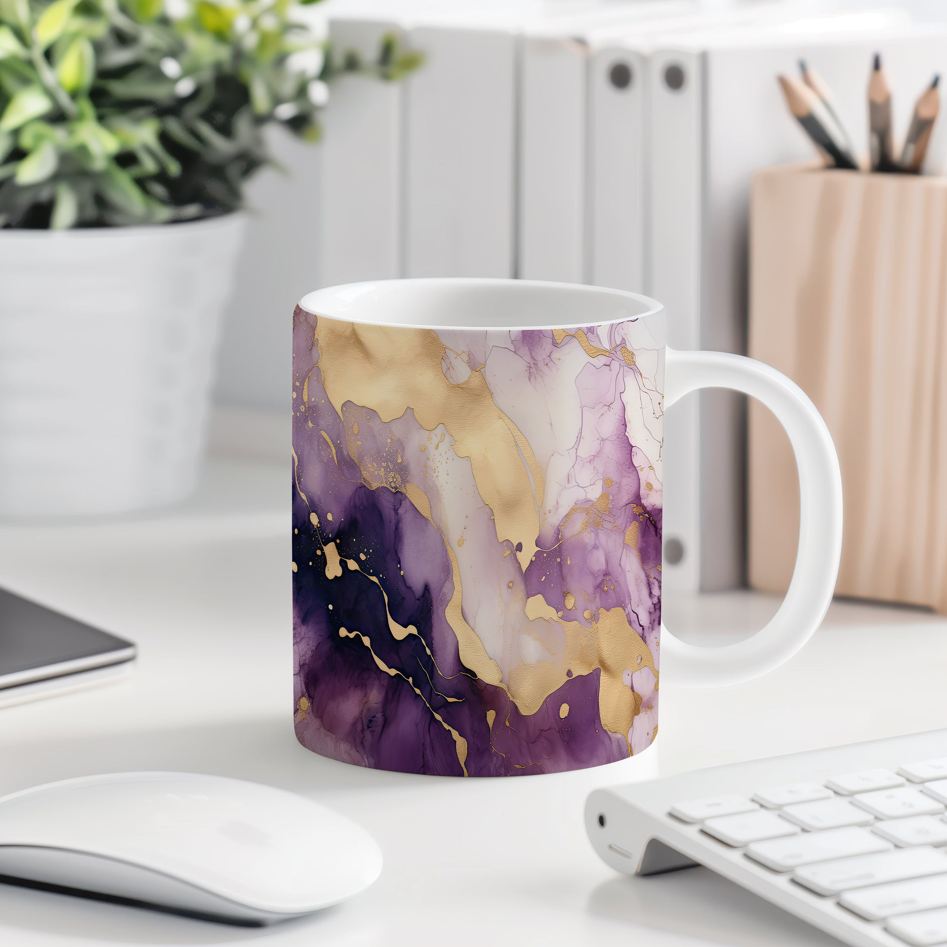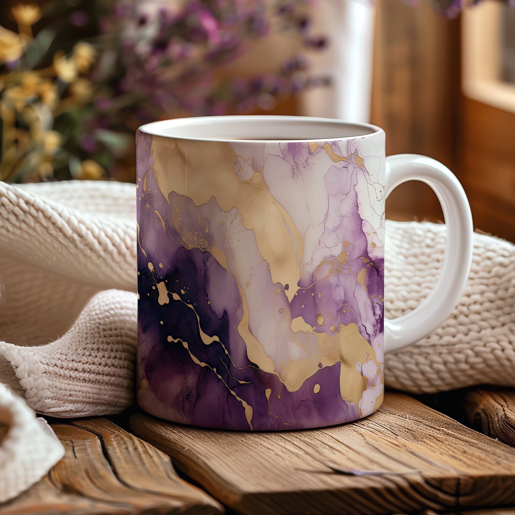 Tento hrnek s mramorováním v purpurových odstínech a zlatými detaily přináší elegantní a stylový vzhled. Je ideální pro milovníky originálního designu a skvělým dárkem pro přátele či rodinu. Materiál: keramika. Objem: 330 ml. Vhodné do myčky i mikrovlnky. Díky svému jedinečnému vzhledu se stane ozdobou každého stolu.