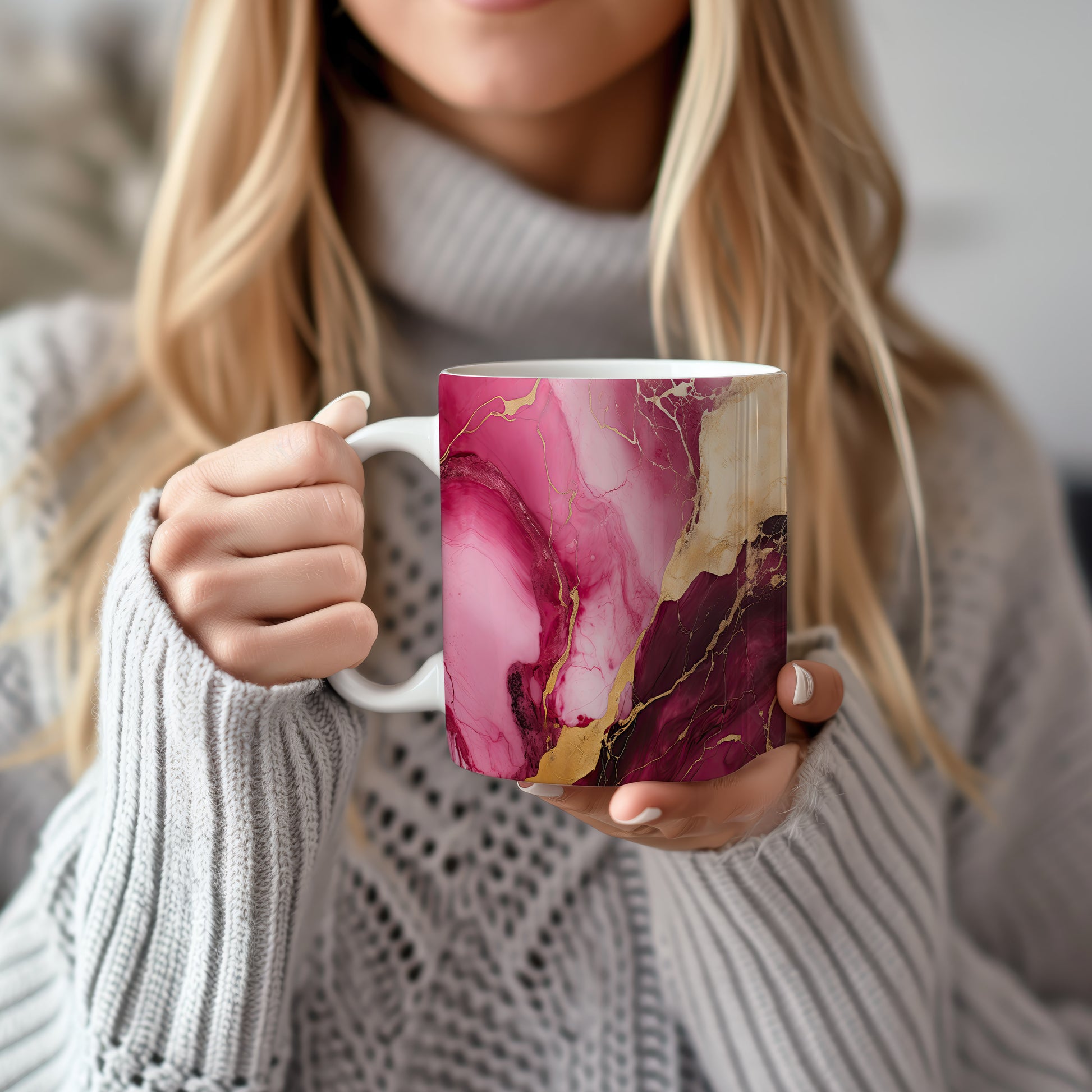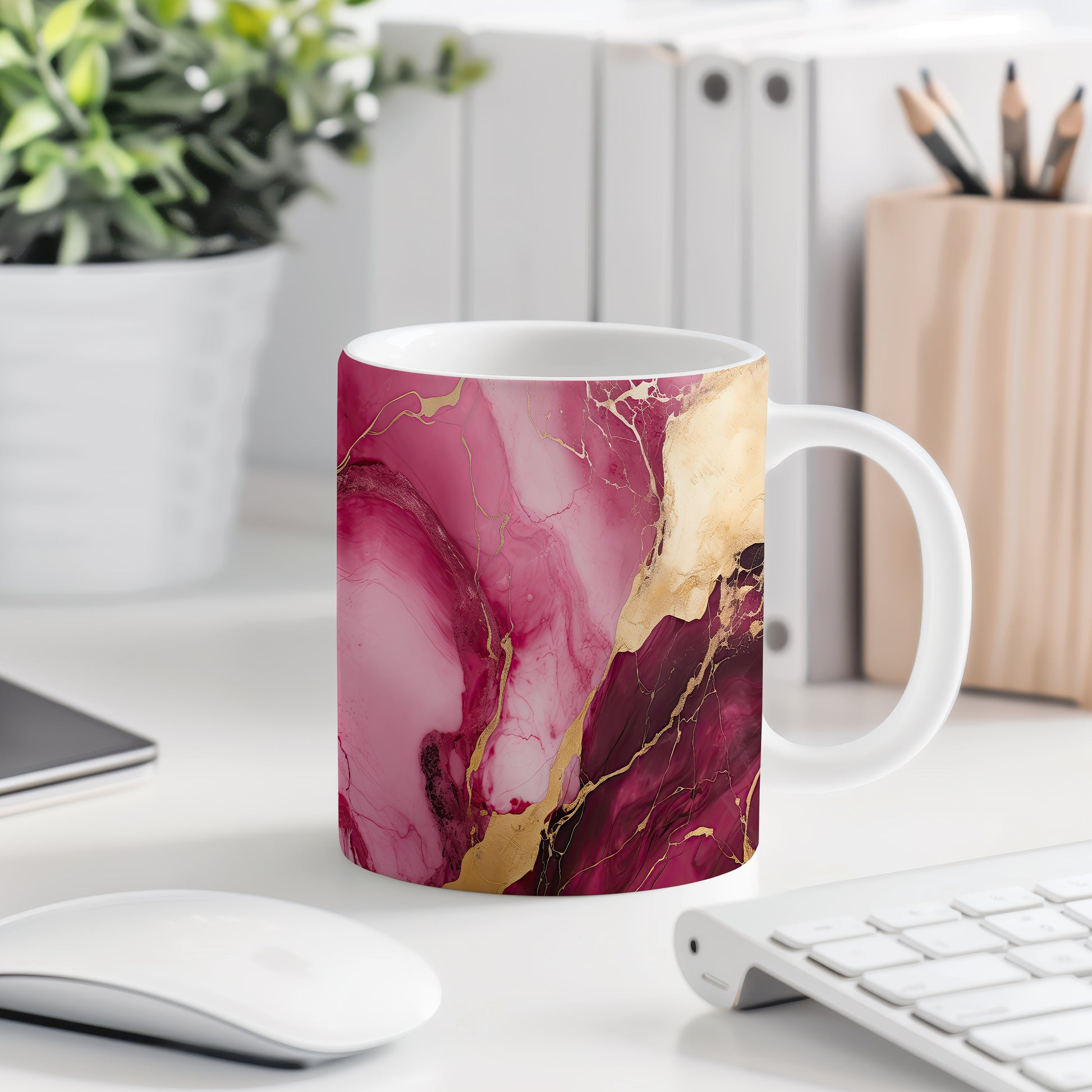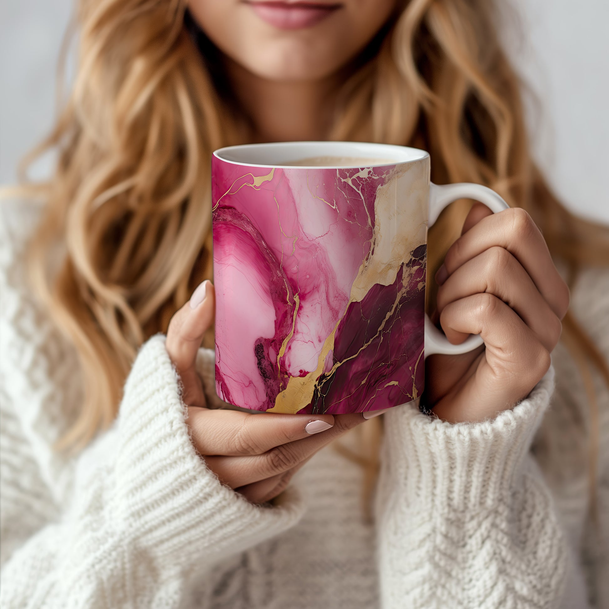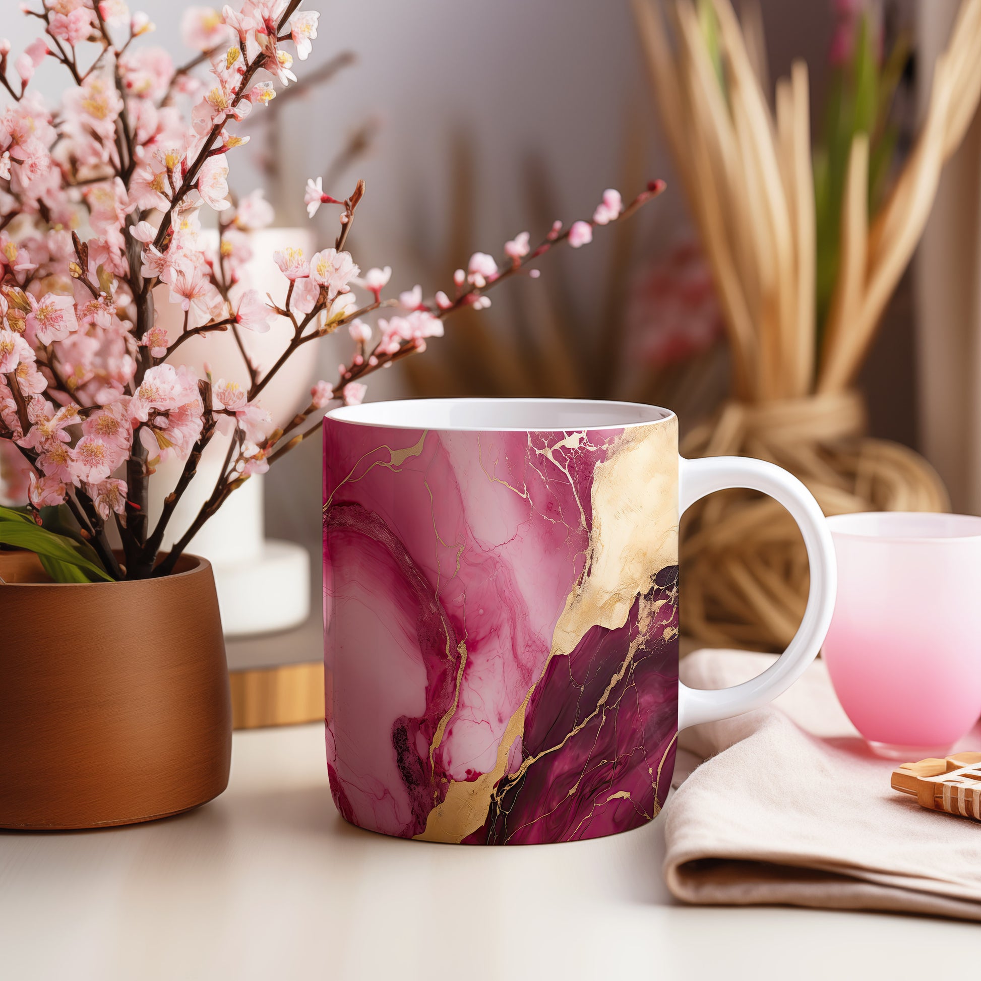Tento hrnek s mramorováním v růžové a zlaté barvě přináší elegantní a moderní vzhled. Je ideální pro milovníky stylového nádobí a skvělým dárkem pro přátele či rodinu. Materiál: keramika. Objem: 330 ml. Vhodné do myčky i mikrovlnky. Díky svému designu se stane ozdobou každého stolu a potěší při každém doušku oblíbeného nápoje.