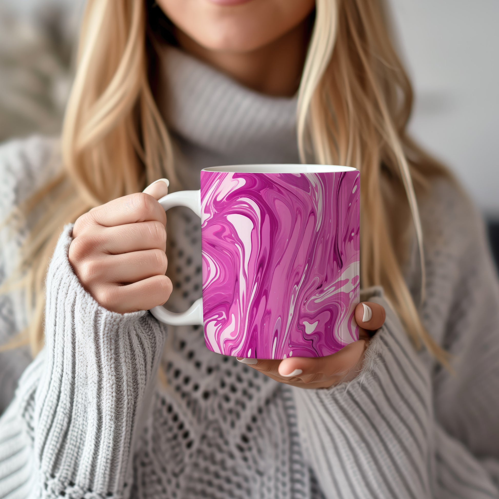 Tento hrnek s mramorováním v růžových a bílých tónech přináší minimalistický styl a eleganci. Je ideální pro milovníky moderního designu a skvělým dárkem pro přátele či rodinu. Materiál: keramika. Objem: 330 ml. Vhodné do myčky i mikrovlnky. Díky svému jedinečnému vzhledu dodá každému nápoji šmrnc a potěší oko.
