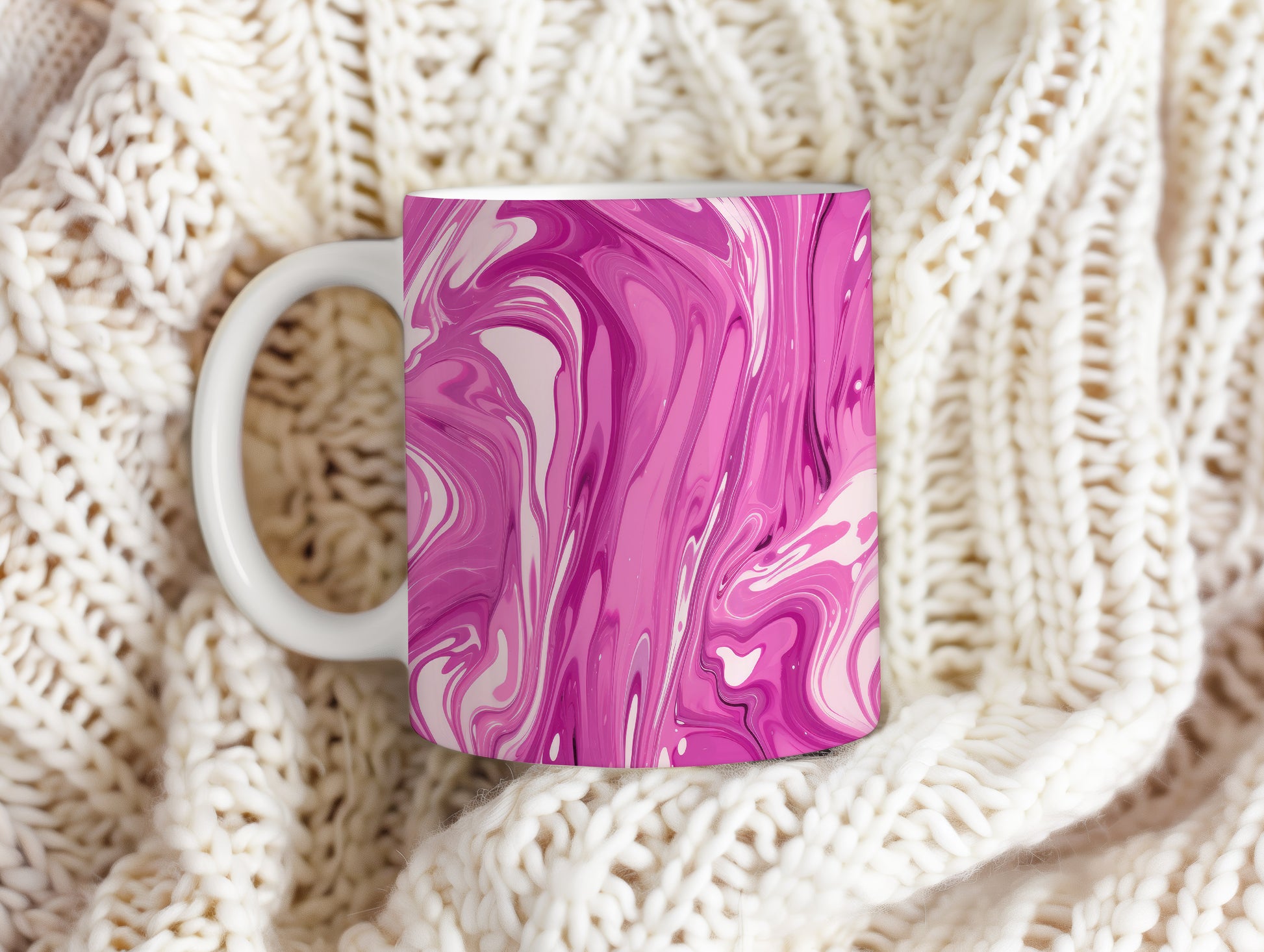 Hrnek s mramorováním v růžových a bílých tónech – výrazným designem