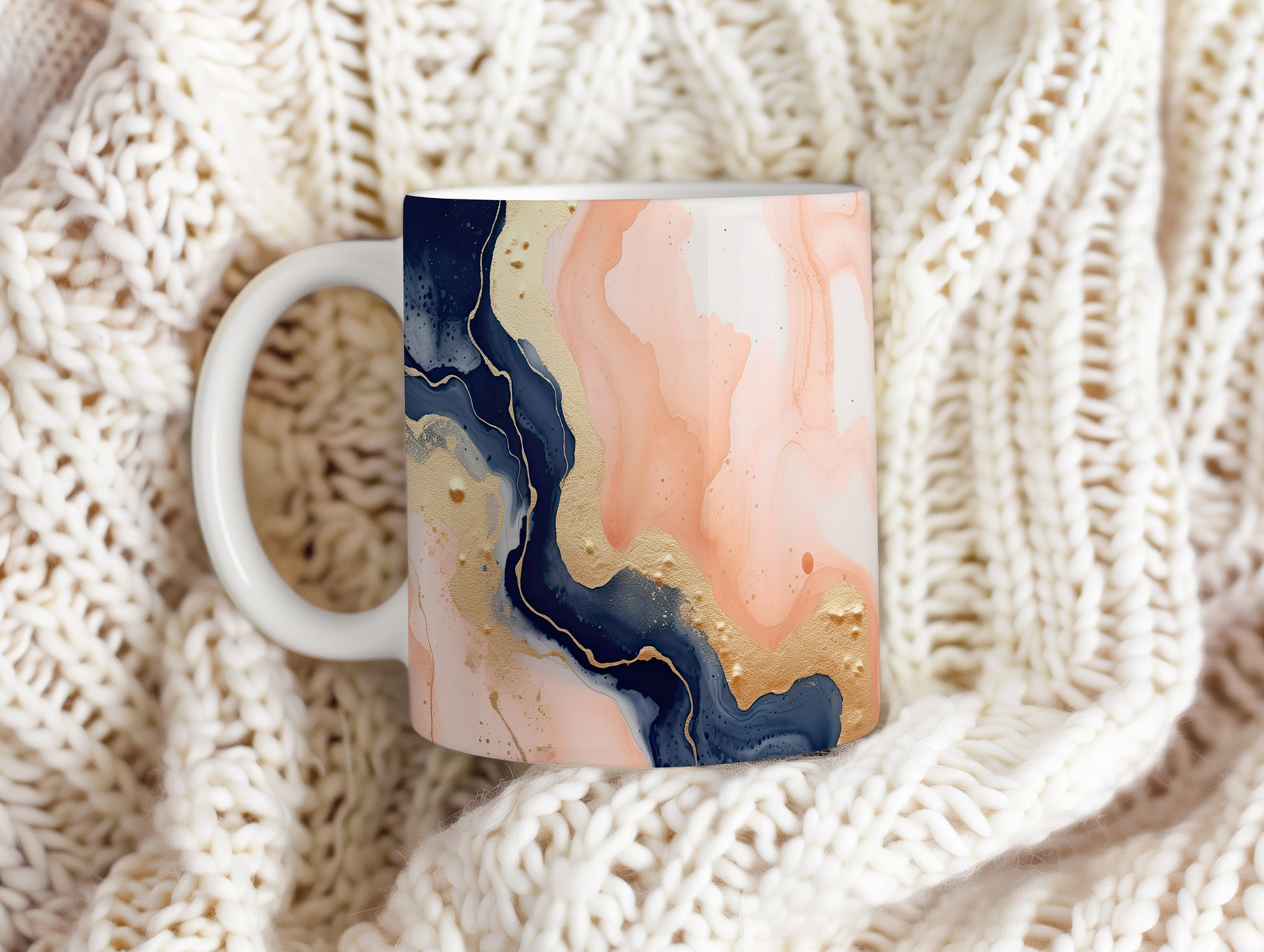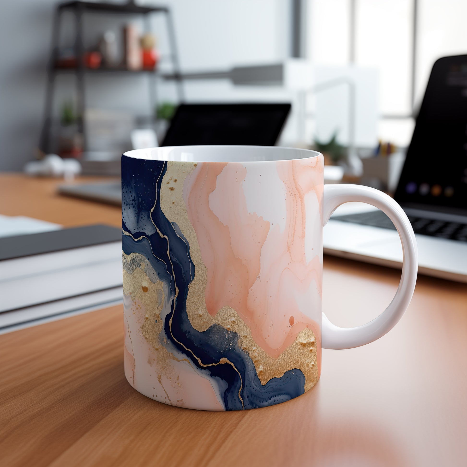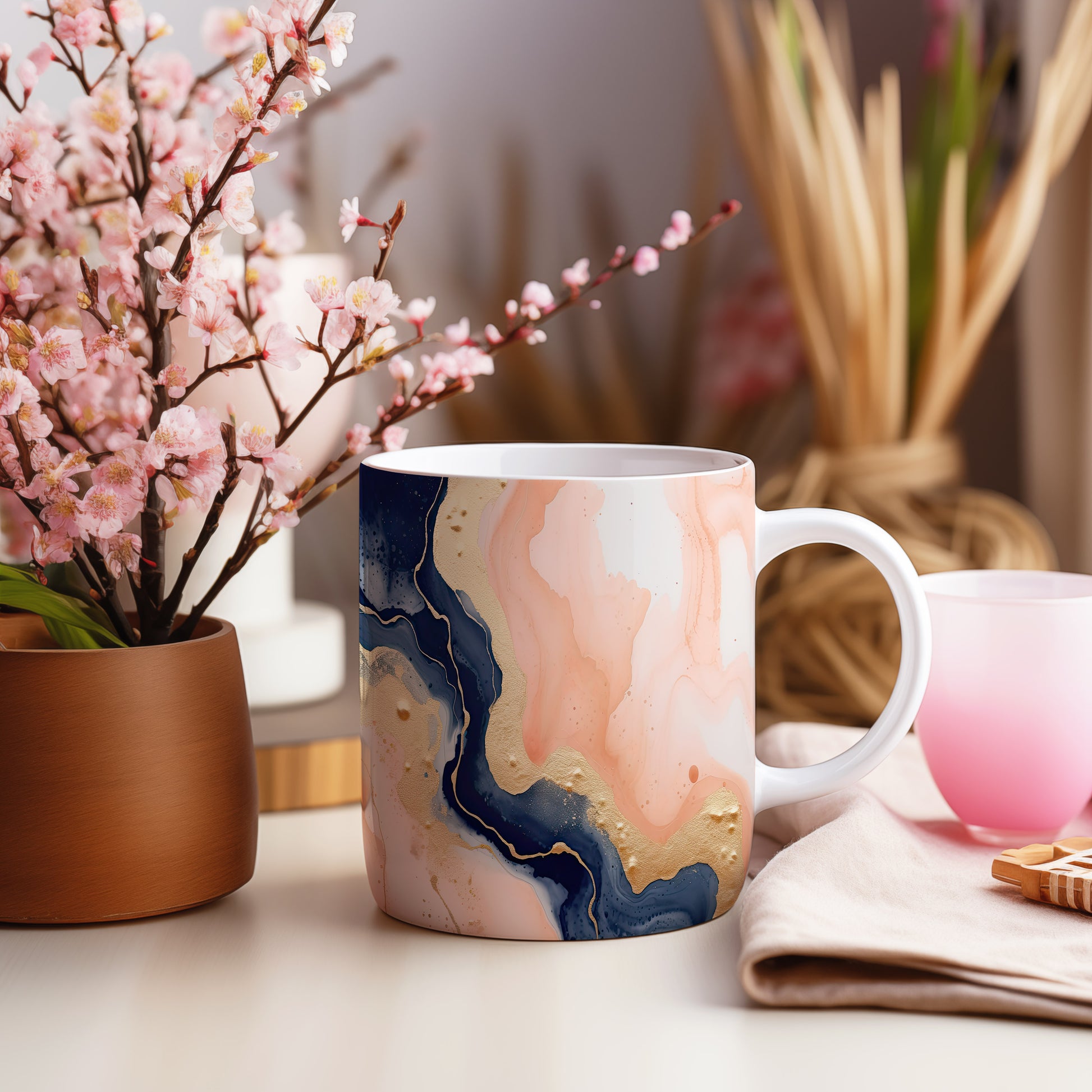 Tento hrnek s mramorováním v růžových a modrých tónech přináší elegantní a moderní vzhled. Je ideální pro milovníky stylového nádobí a skvělým dárkem pro přátele či rodinu. Materiál: keramika. Objem: 330 ml. Vhodné do myčky i mikrovlnky. Díky svému designu přidává do každodenního pití špetku luxusu.