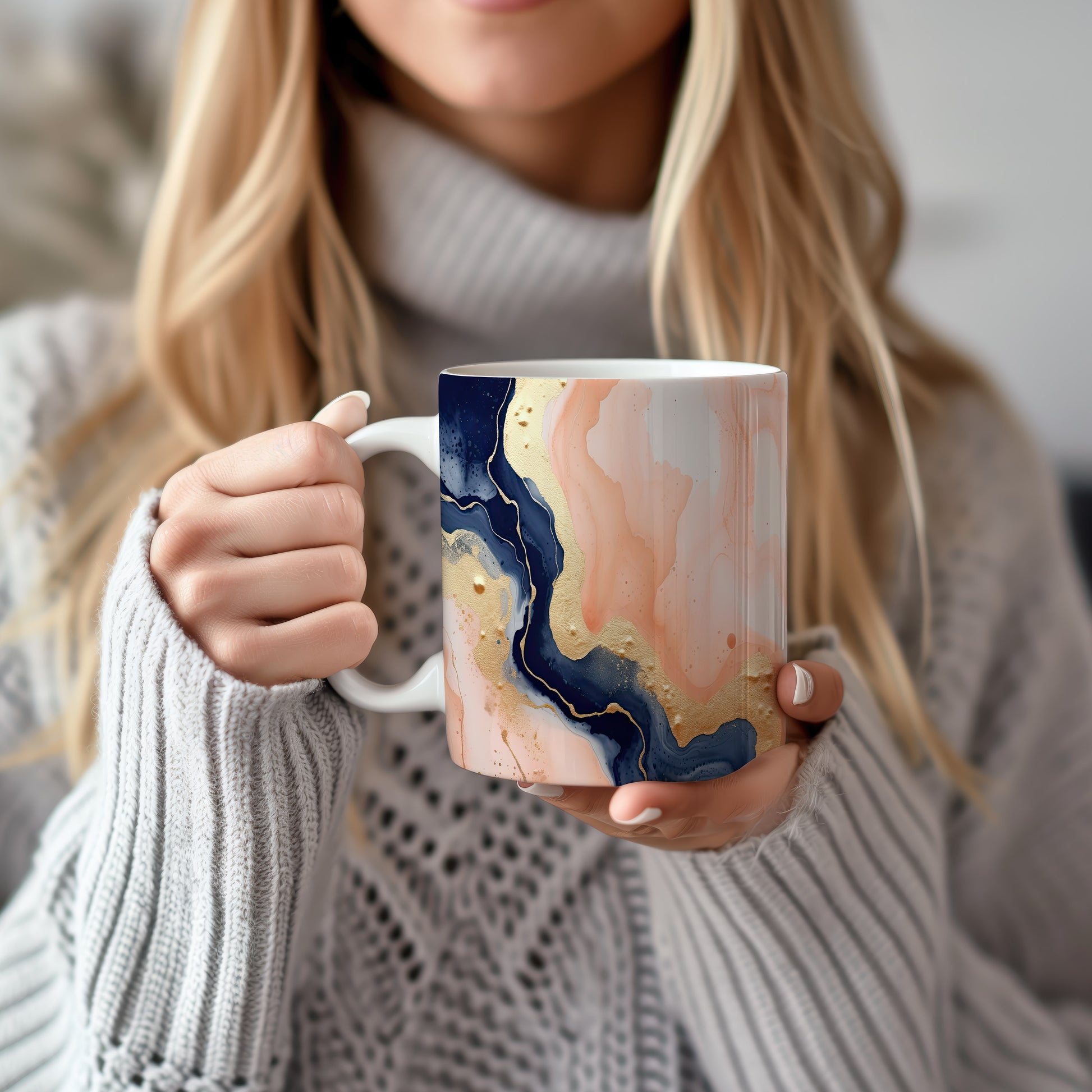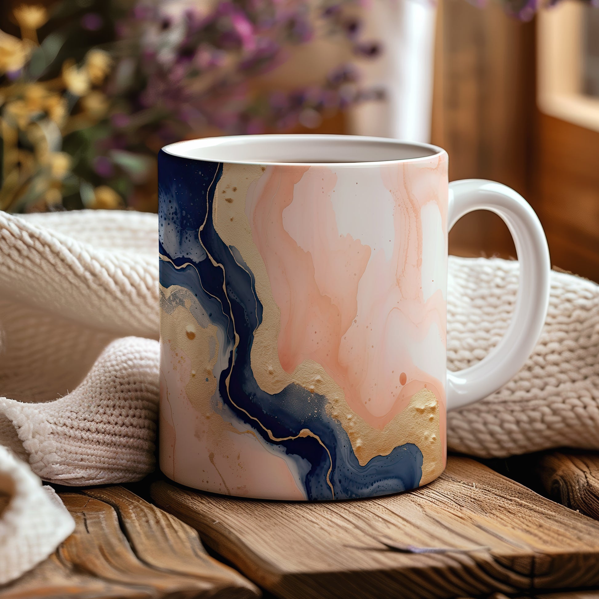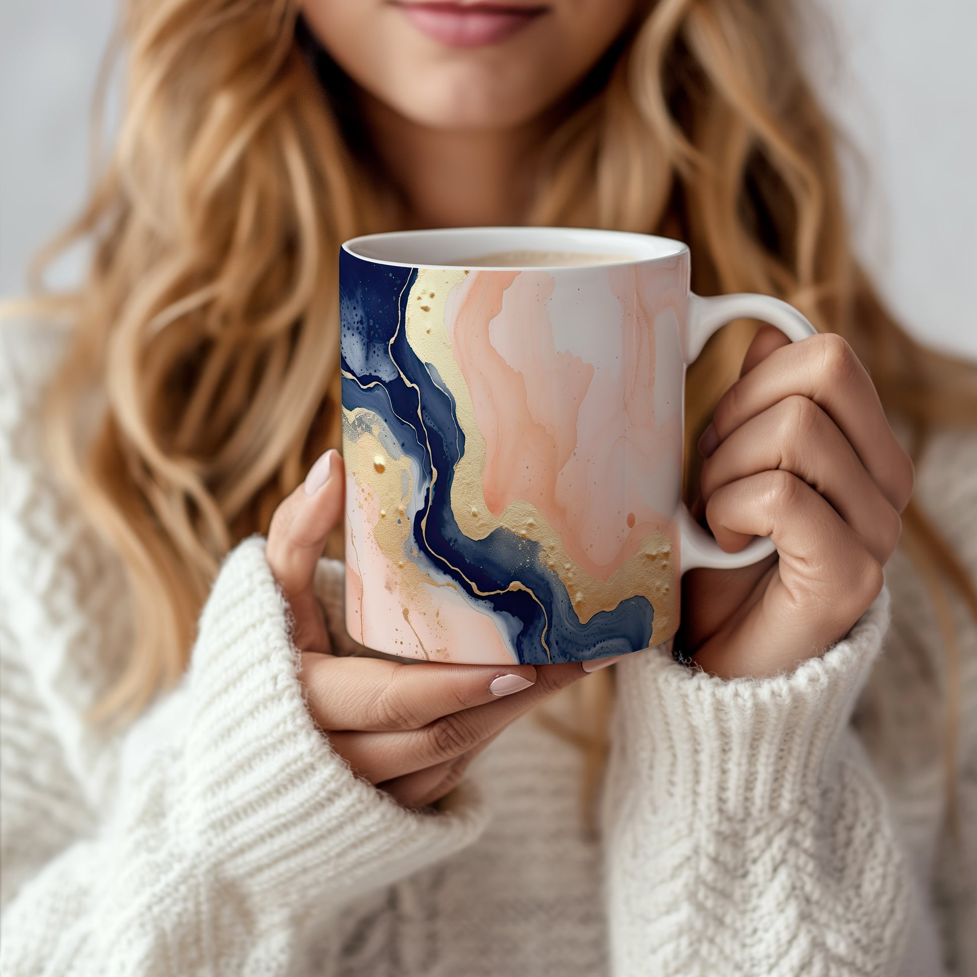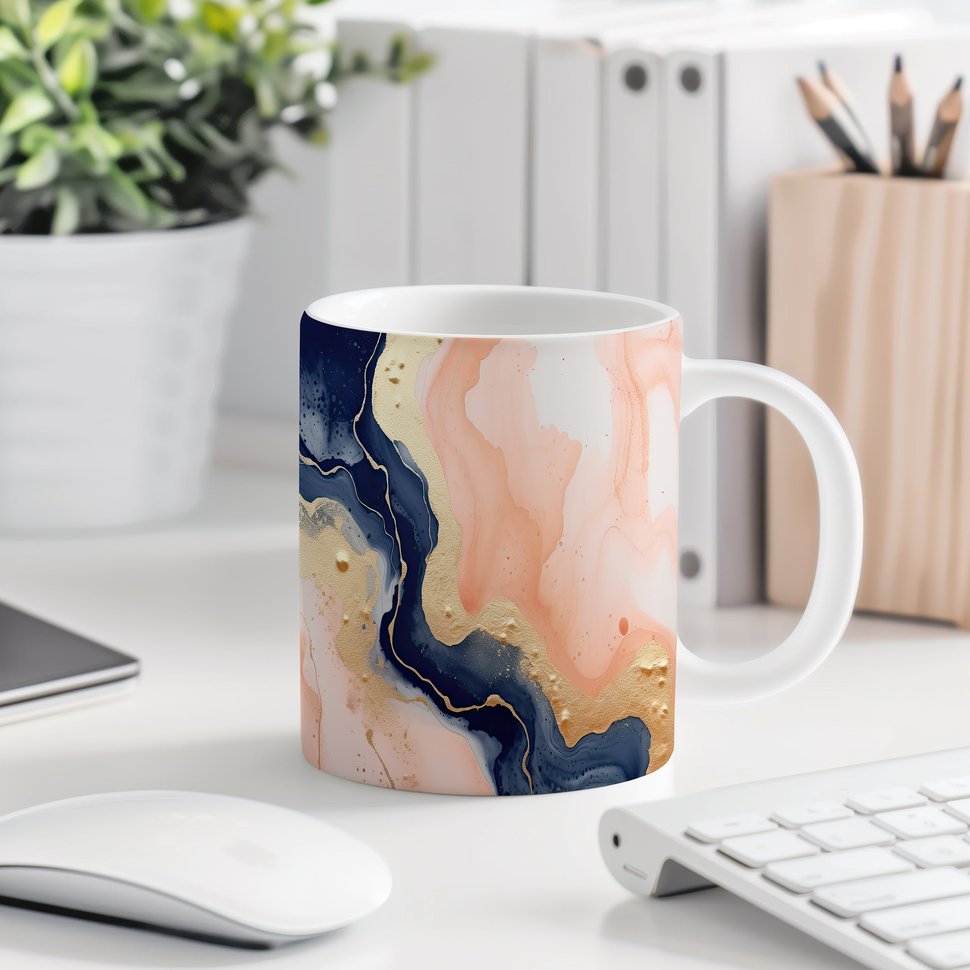 Tento hrnek s mramorováním v růžových a modrých tónech přináší elegantní a moderní vzhled. Je ideální pro milovníky stylového nádobí a skvělým dárkem pro přátele či rodinu. Materiál: keramika. Objem: 330 ml. Vhodné do myčky i mikrovlnky. Díky svému designu přidává do každodenního pití špetku luxusu.